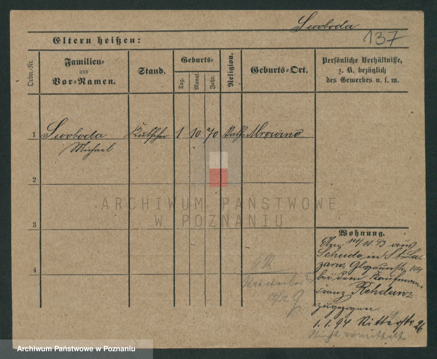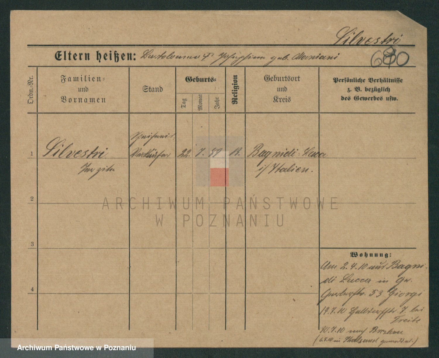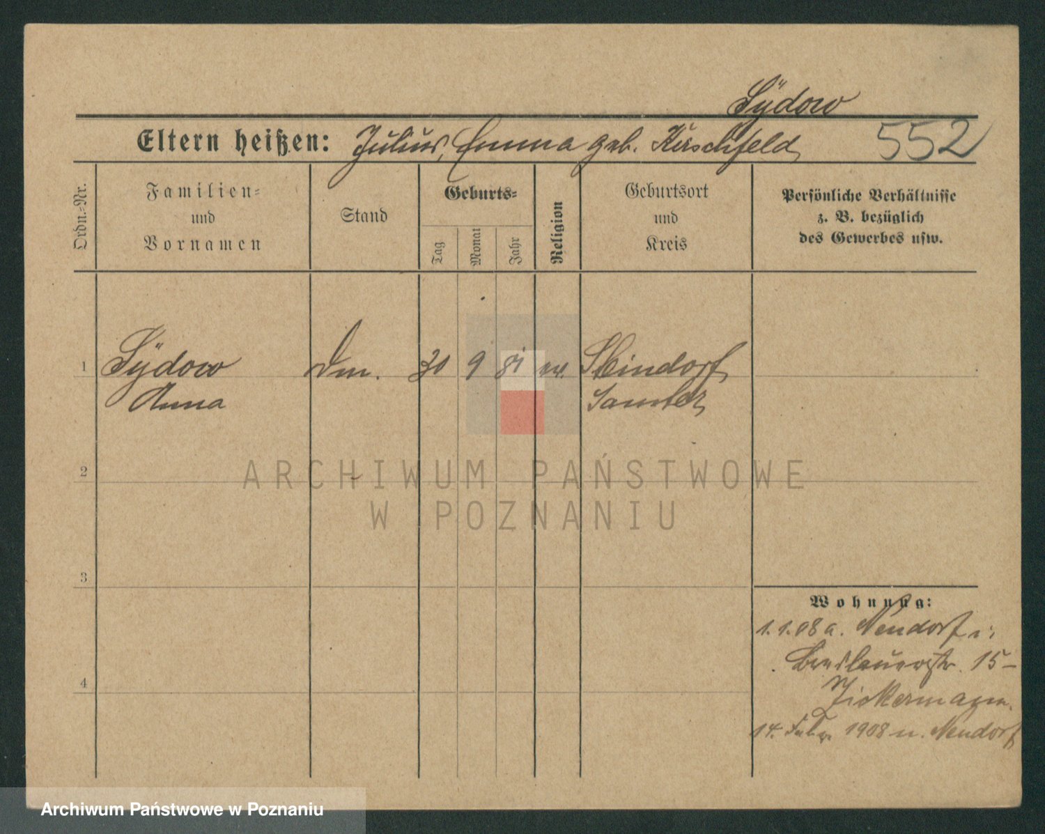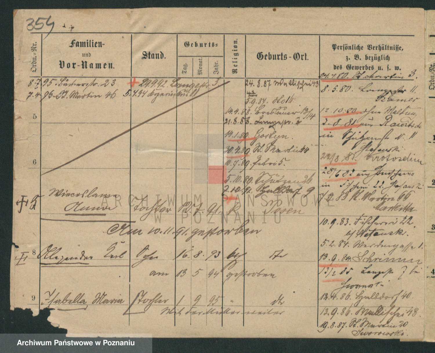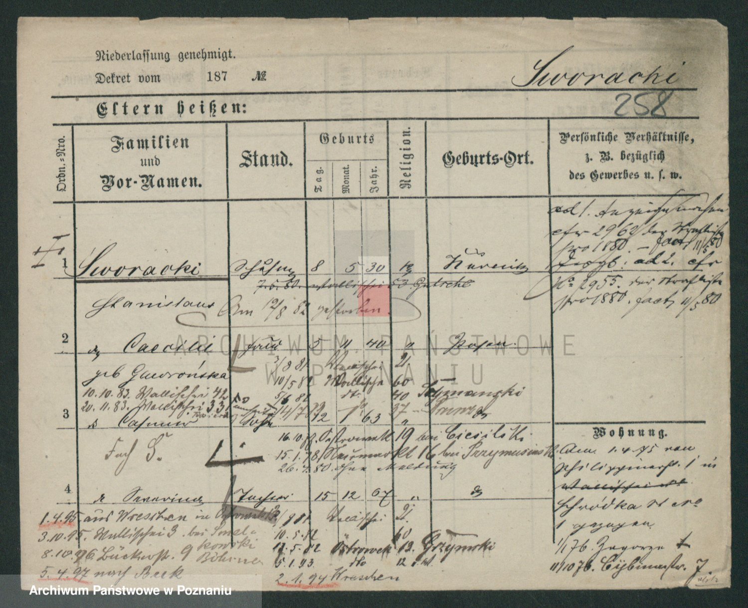 Podgląd karty osobowej dostępny jest po kliknięciu na nazwisko lub ikonkę karty. Można dokonywać powiększenia (ikony na górze) lub przechodzić między kolejnymi skanami (strzałki po bokach).