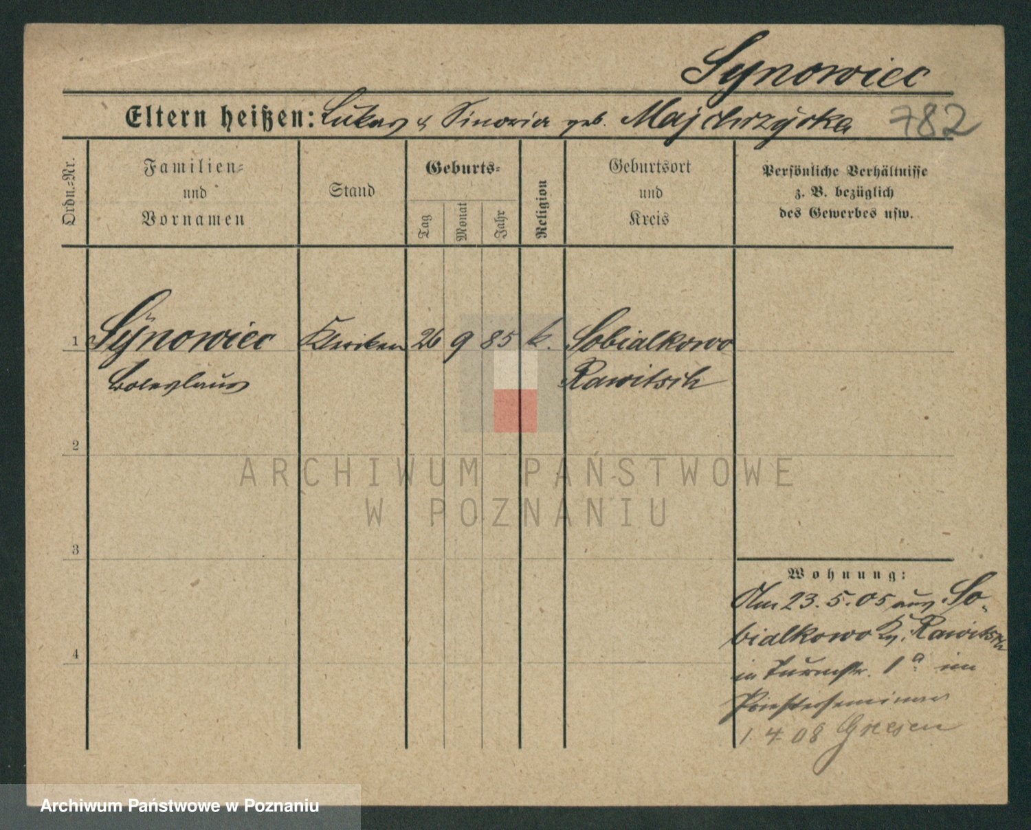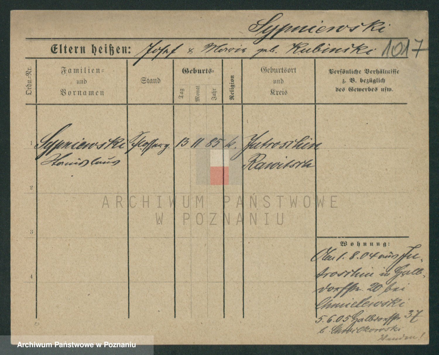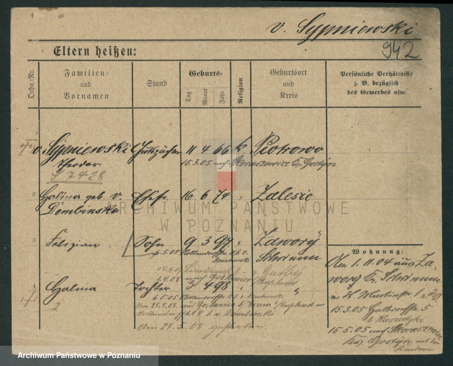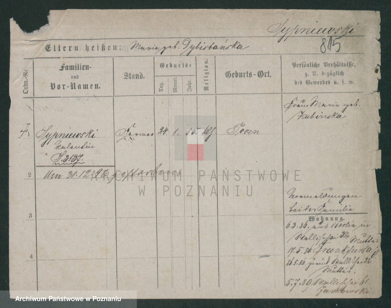 Sypniewski z d. Kozinska, Sofie
