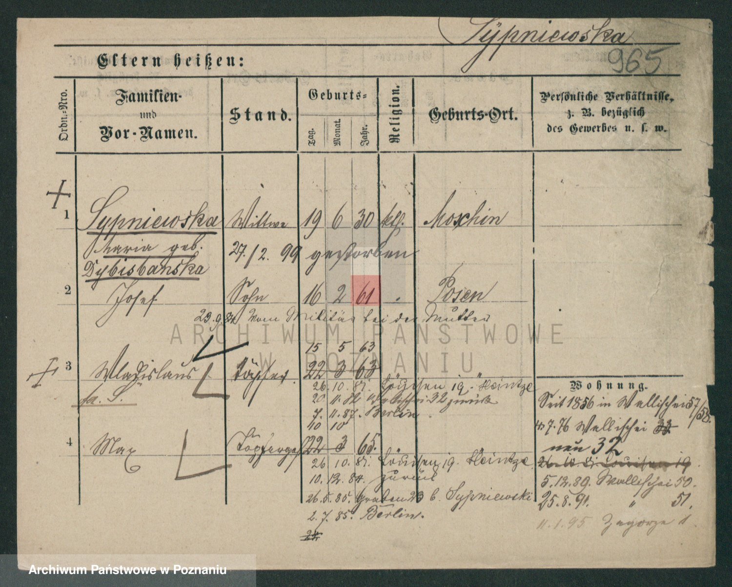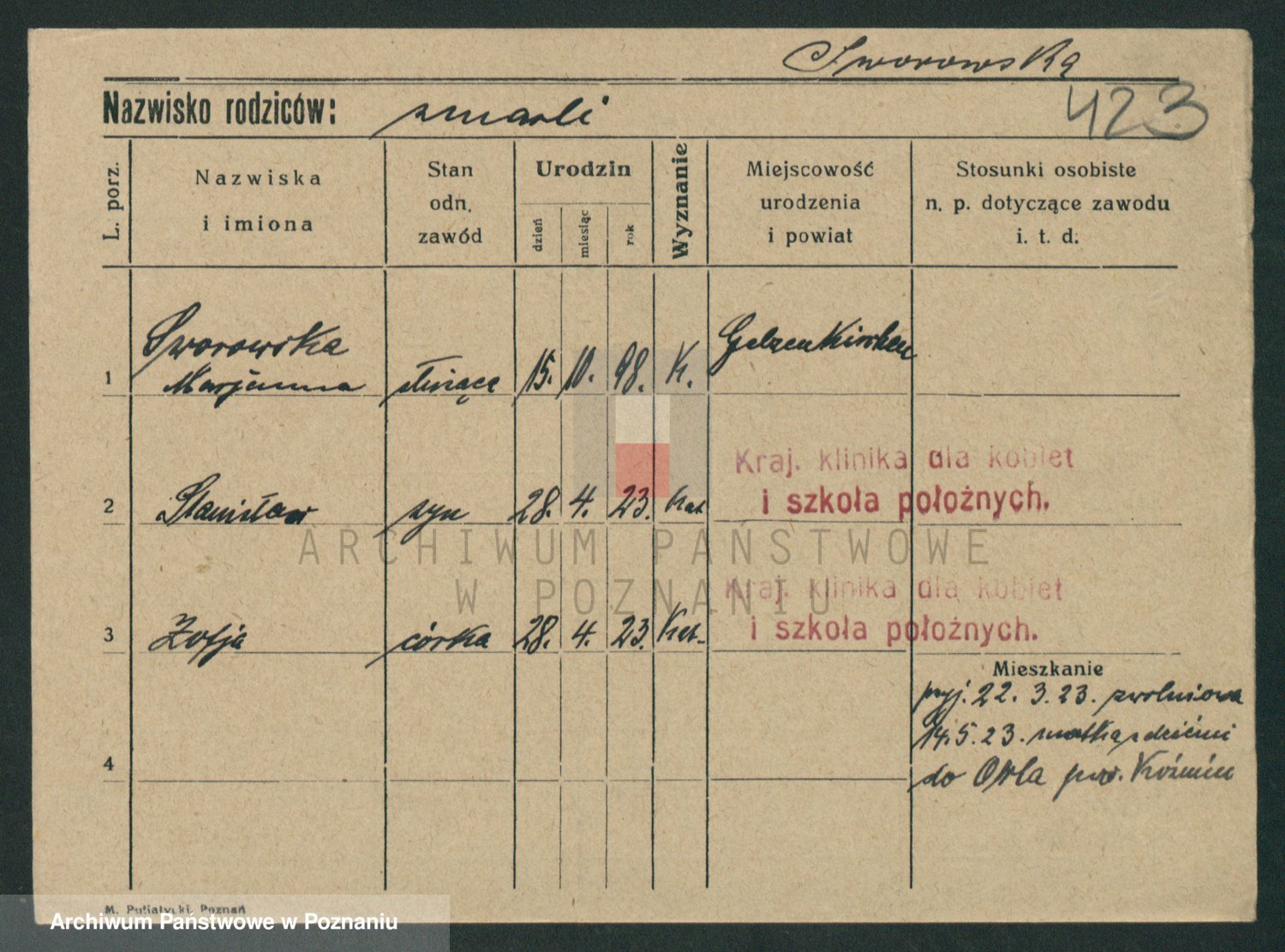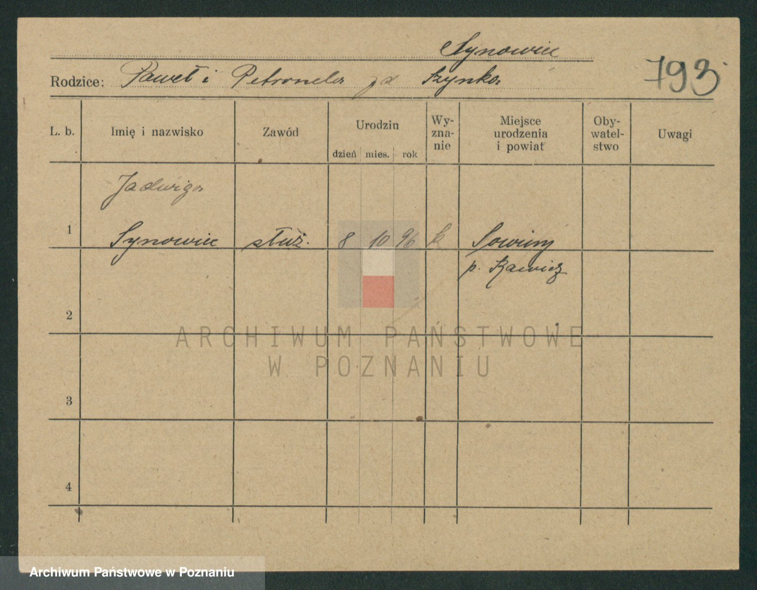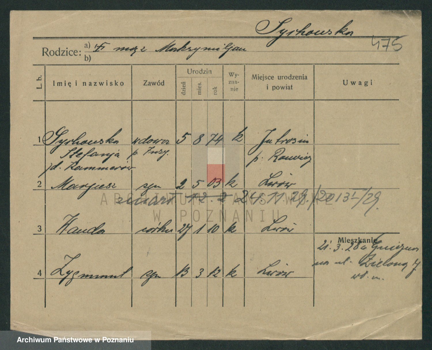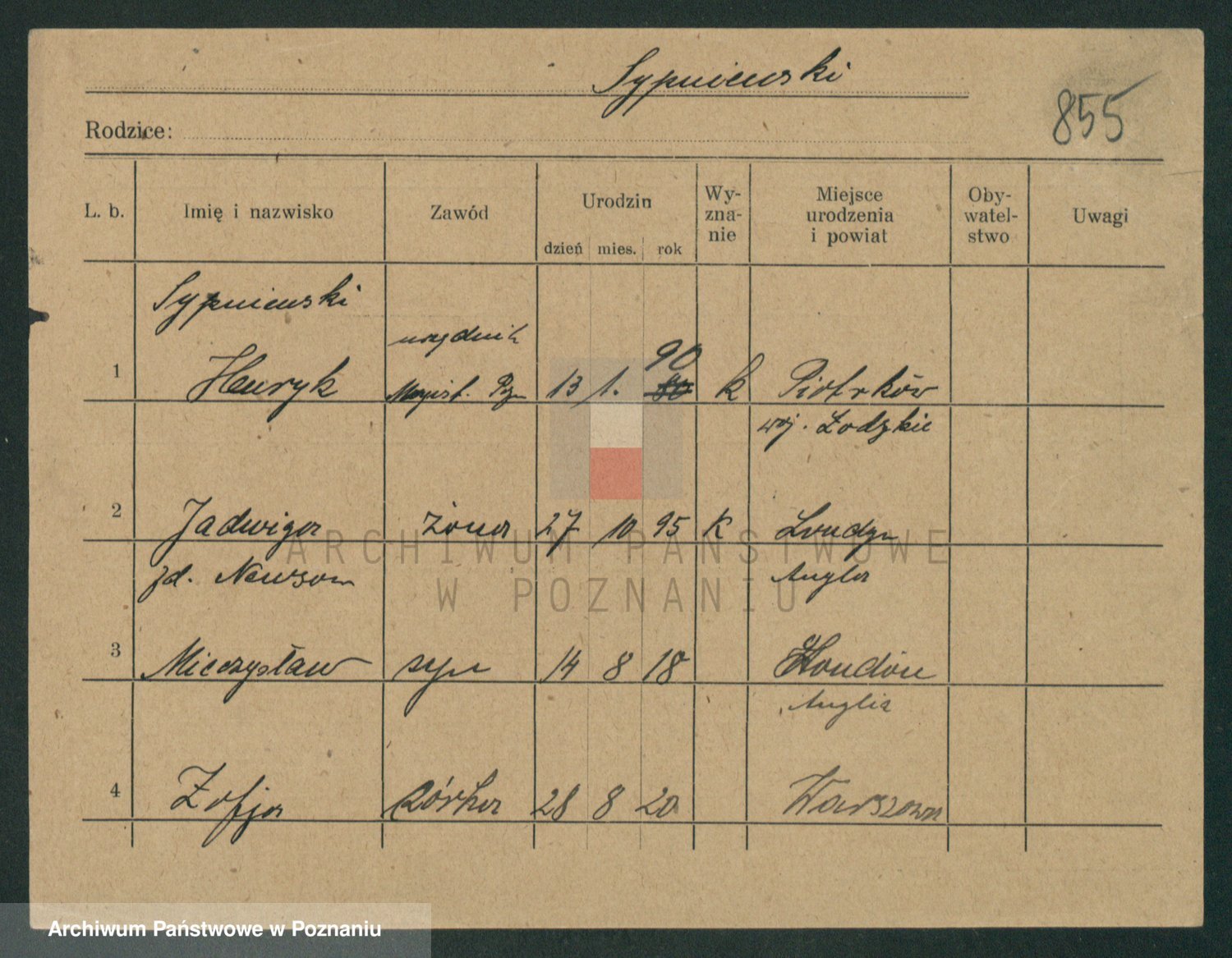 Sypniewski z d. Kozinska, Sofie