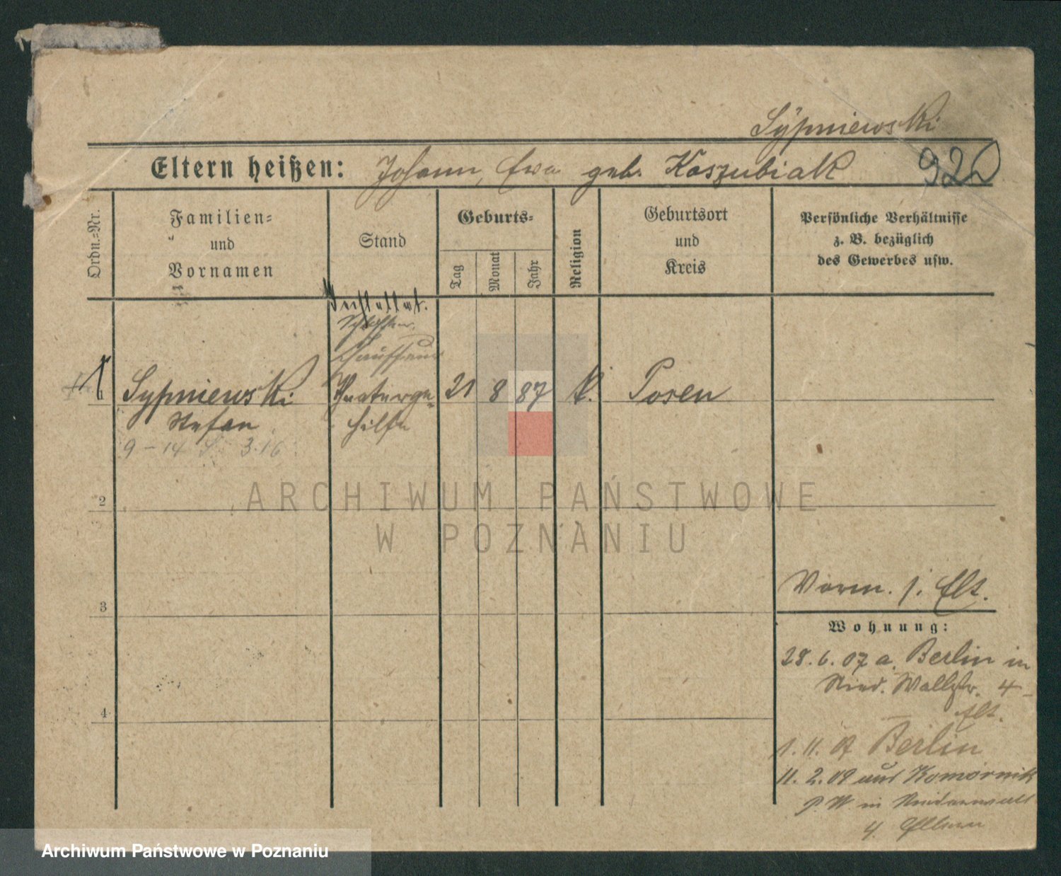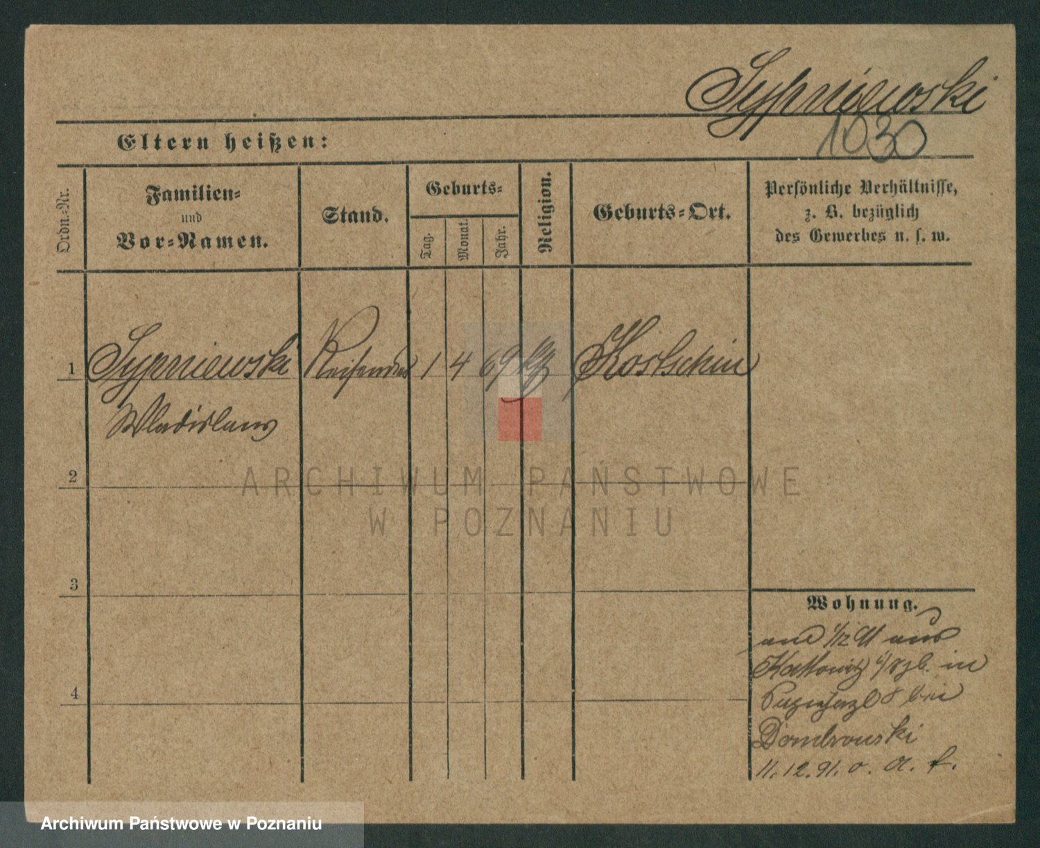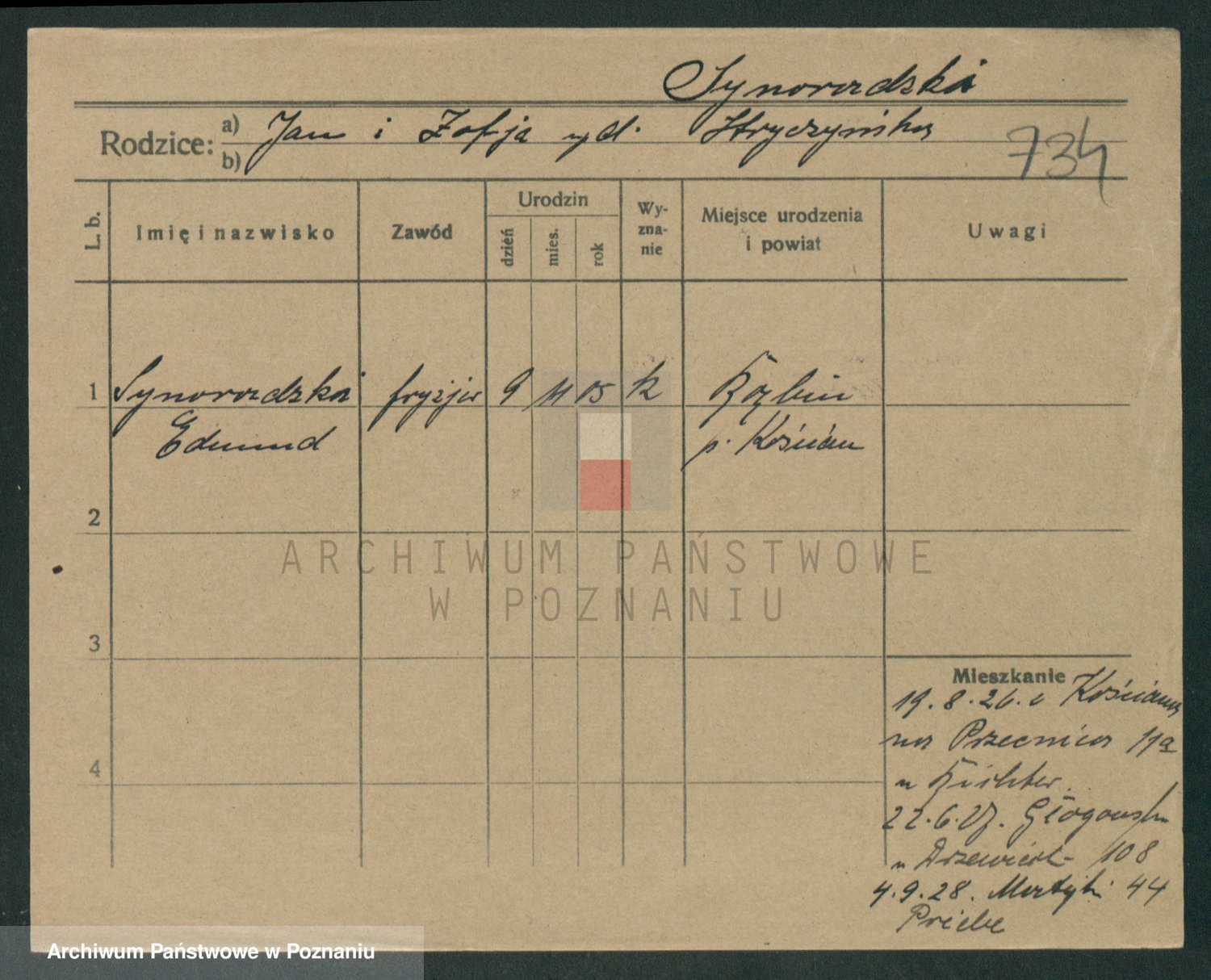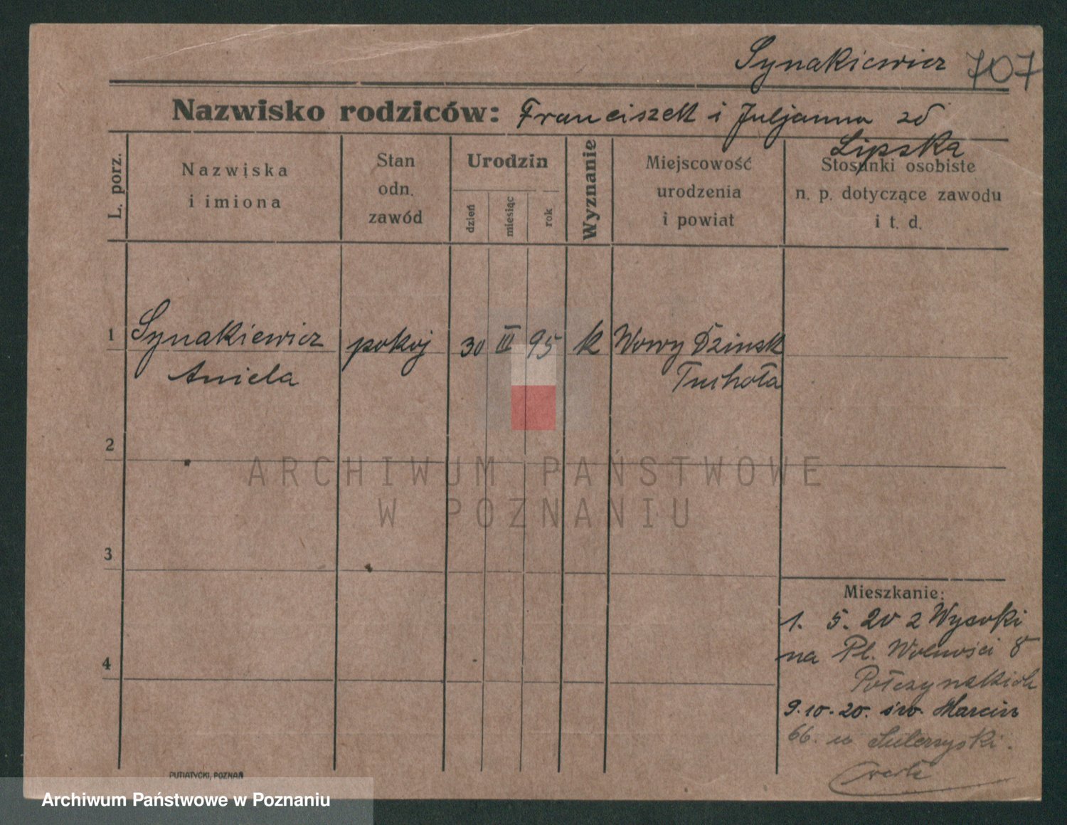 Sypniewski z d. Kozinska, Sofie