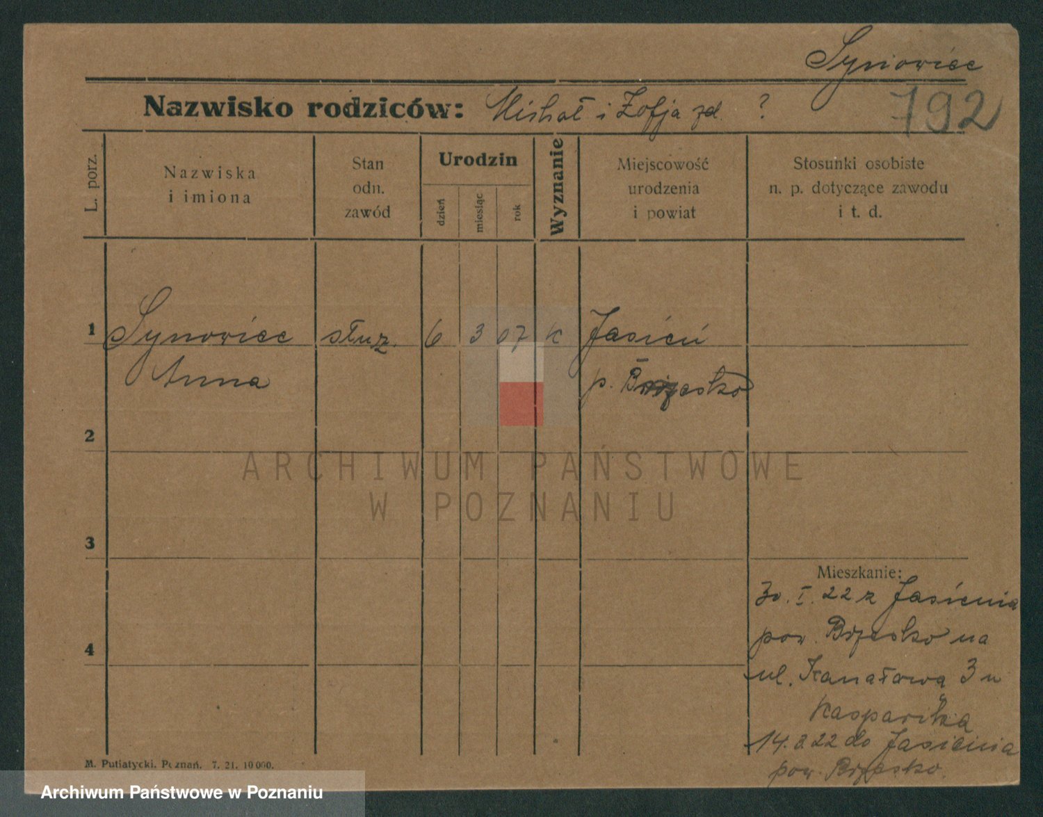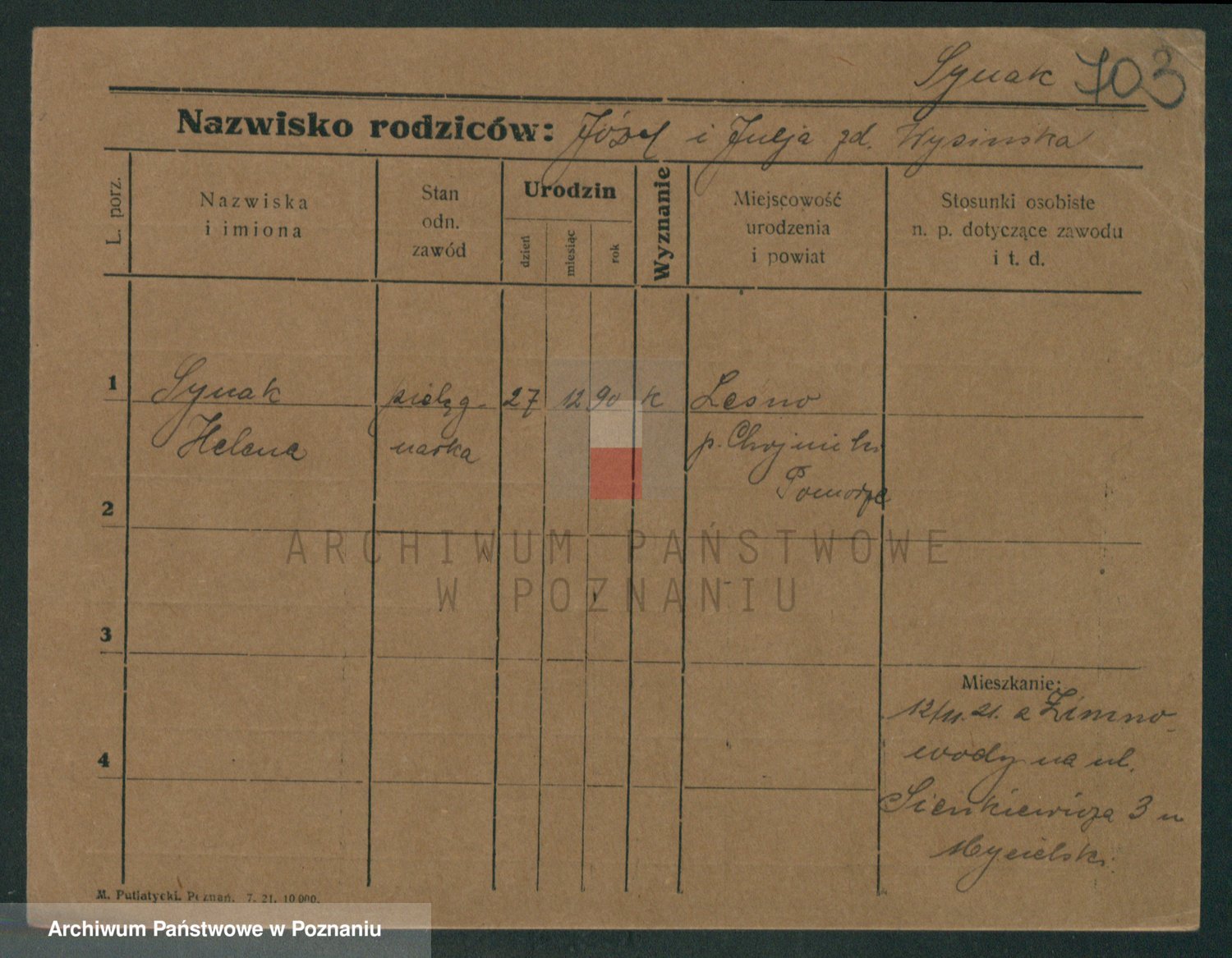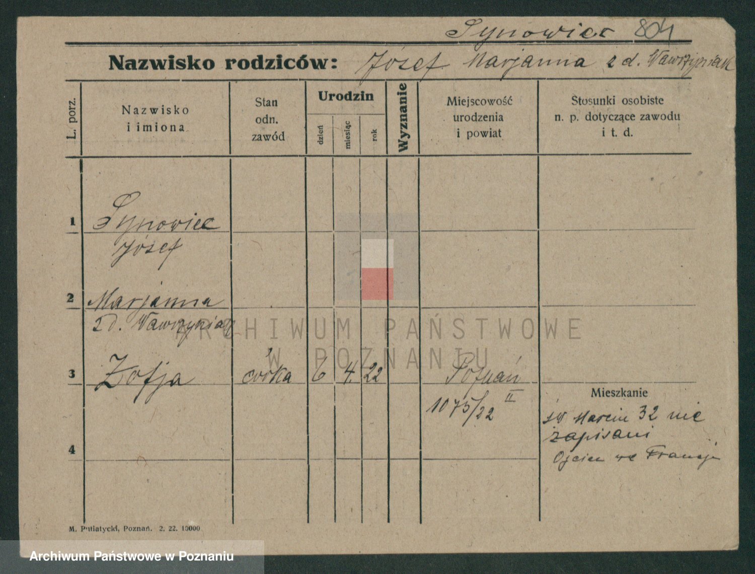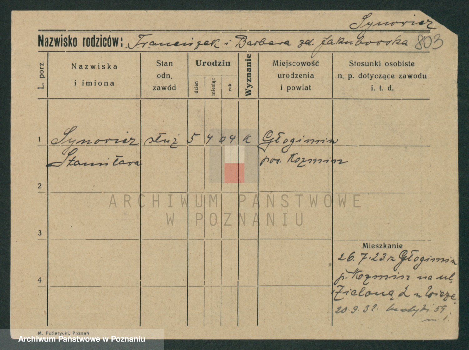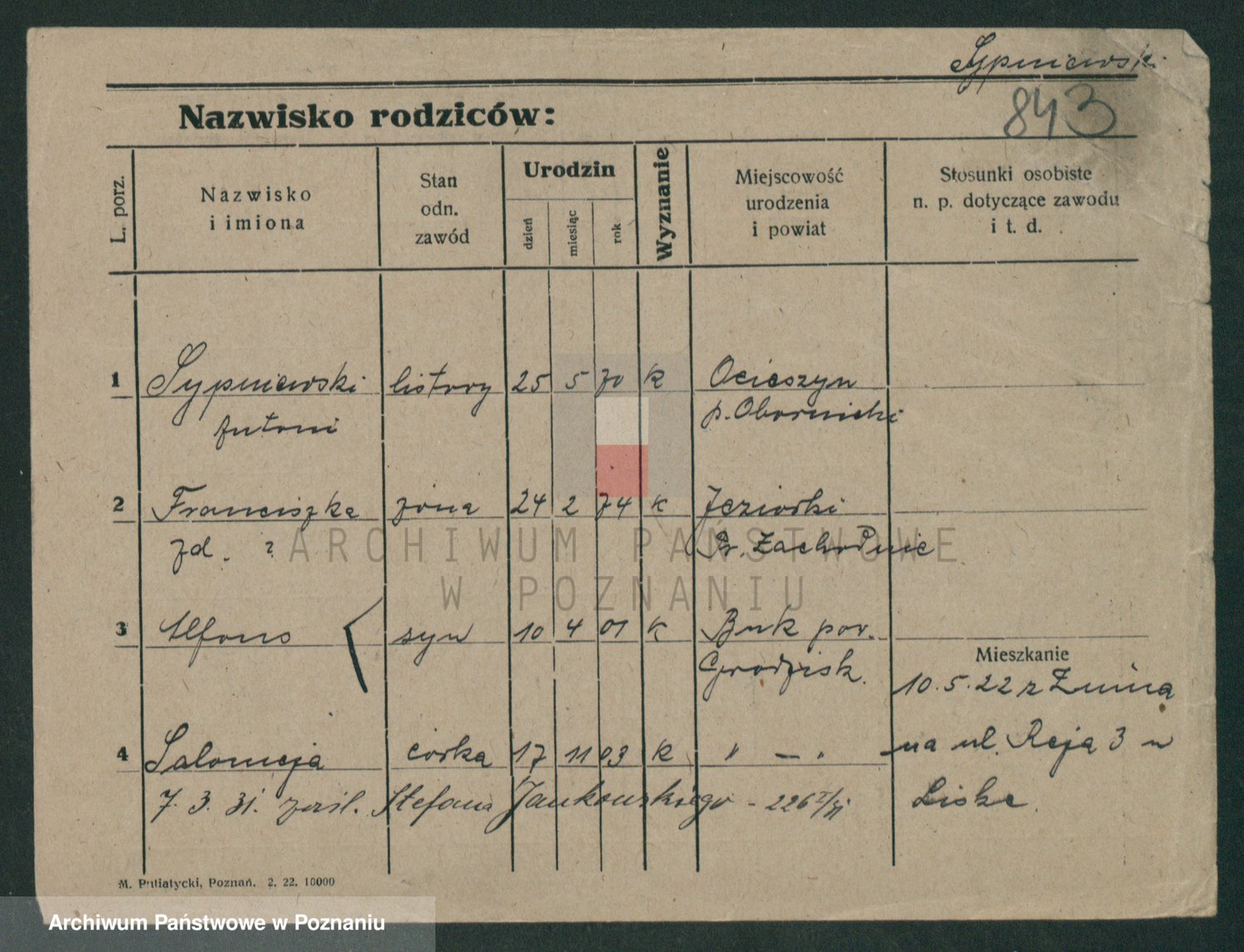 Sypniewski z d. Mocek, Stanislawa