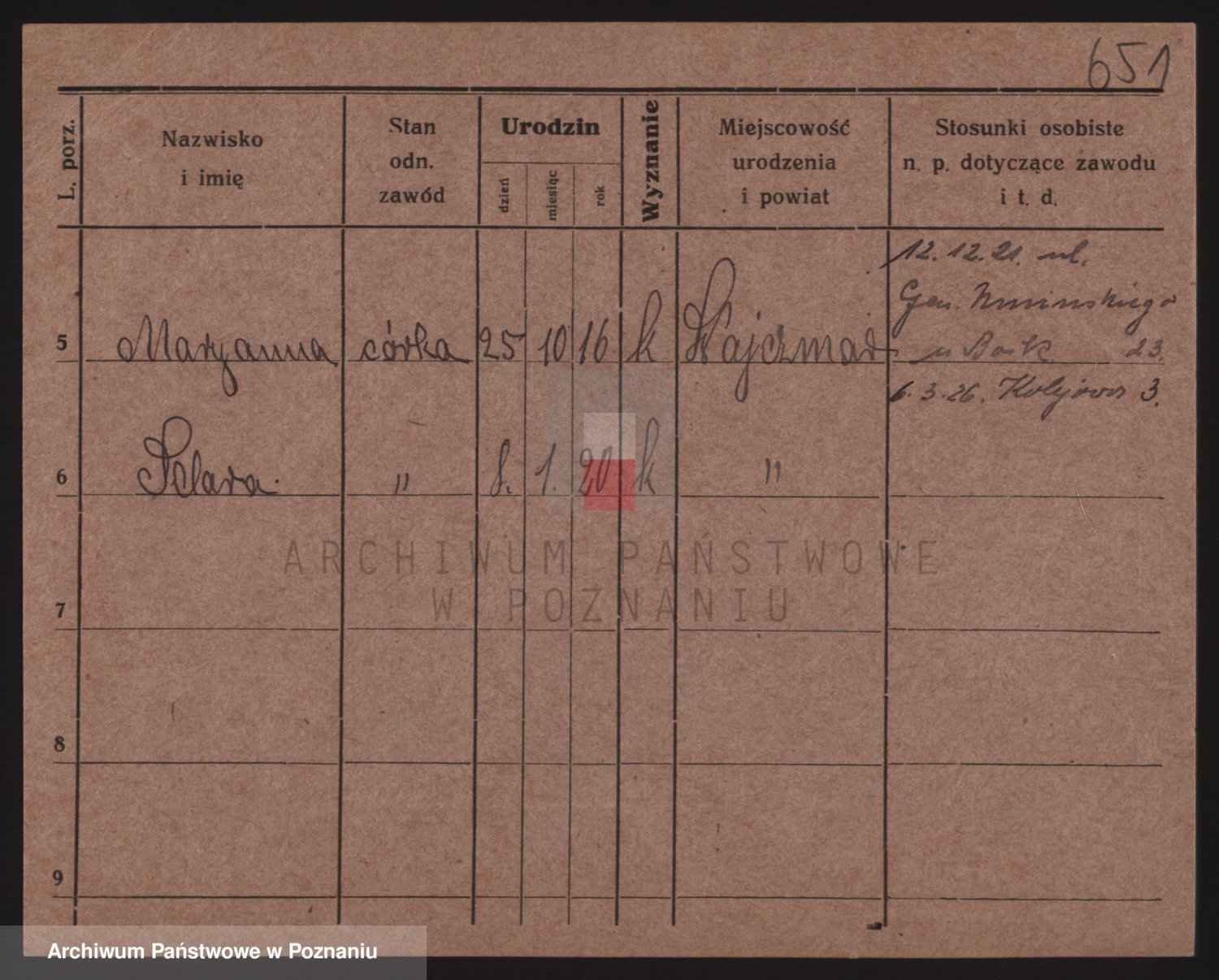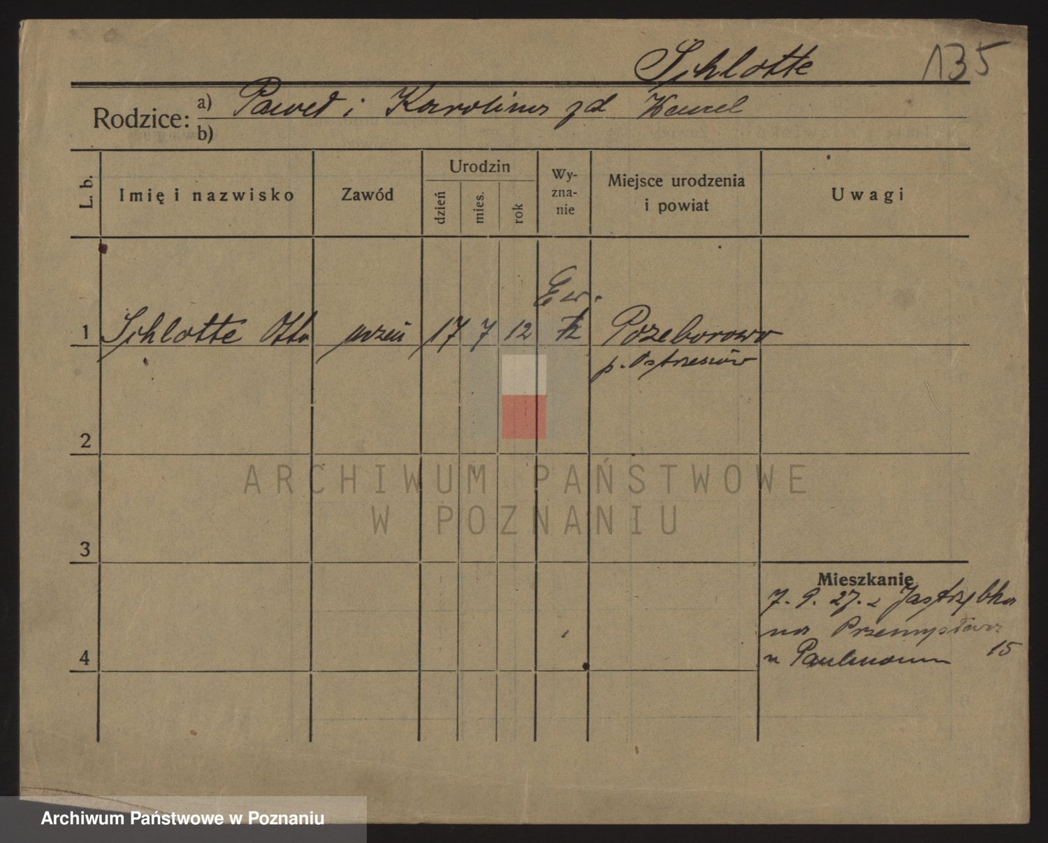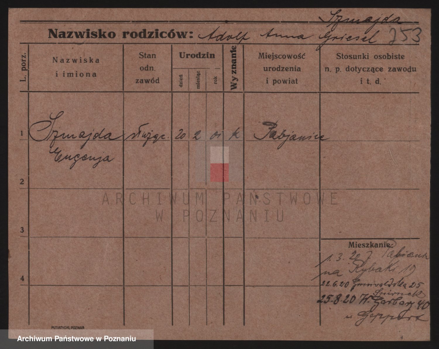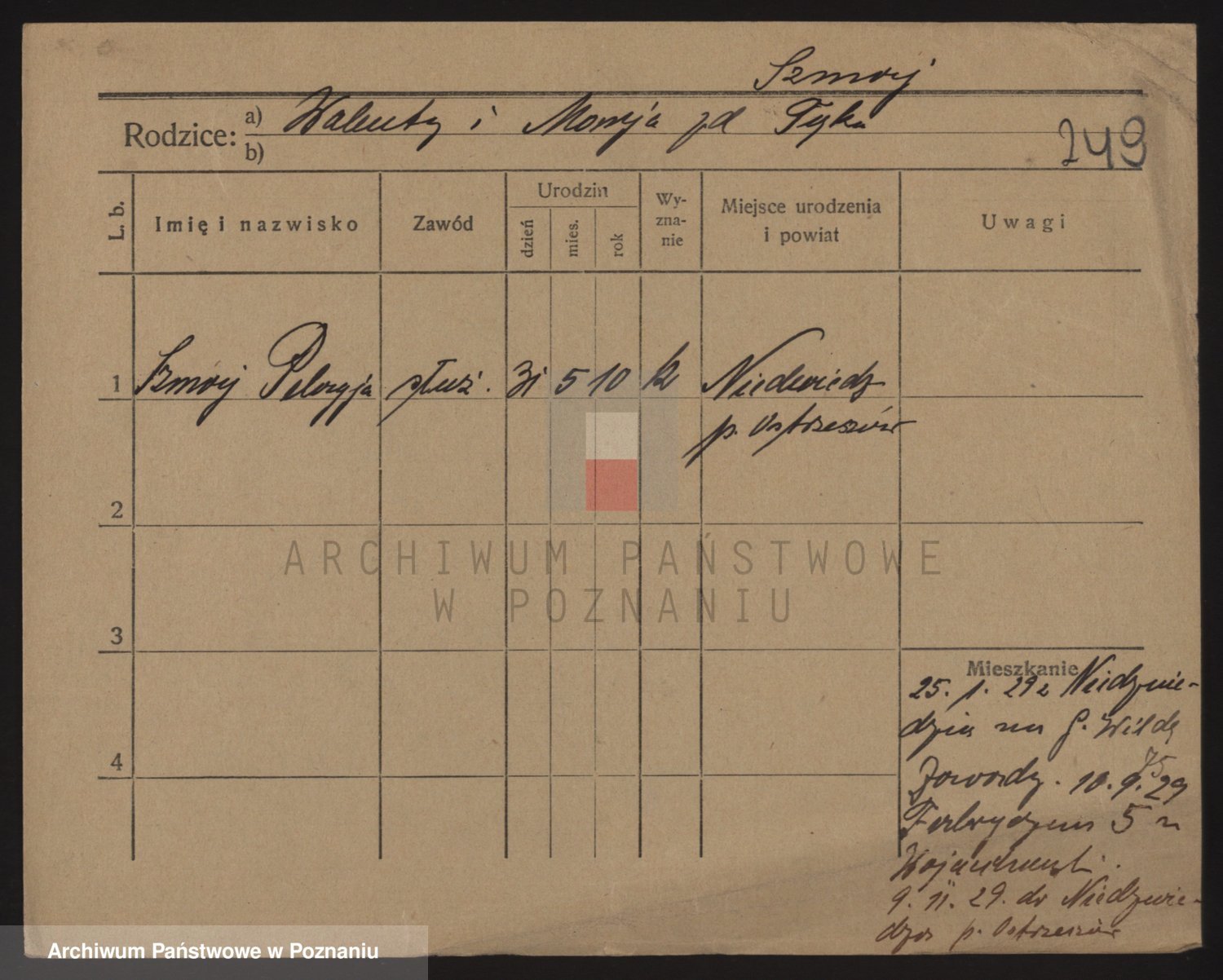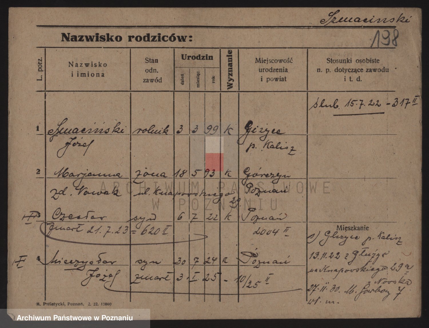 Podgląd karty osobowej dostępny jest po kliknięciu na nazwisko lub ikonkę karty. Można dokonywać powiększenia (ikony na górze) lub przechodzić między kolejnymi skanami (strzałki po bokach).