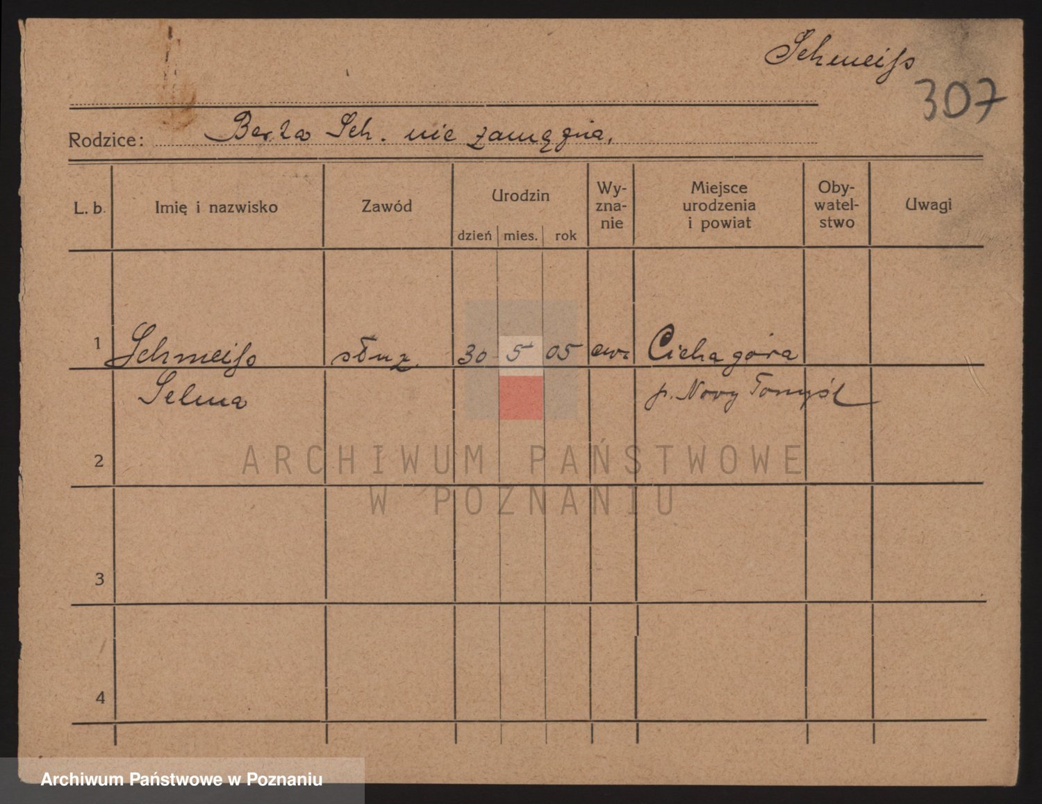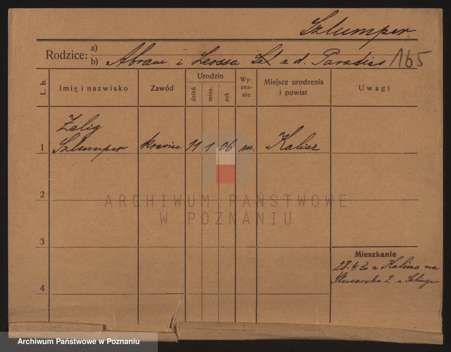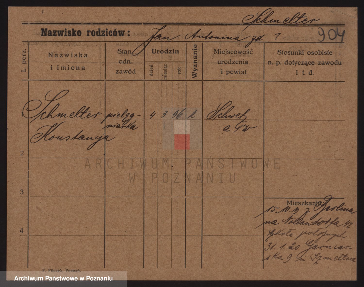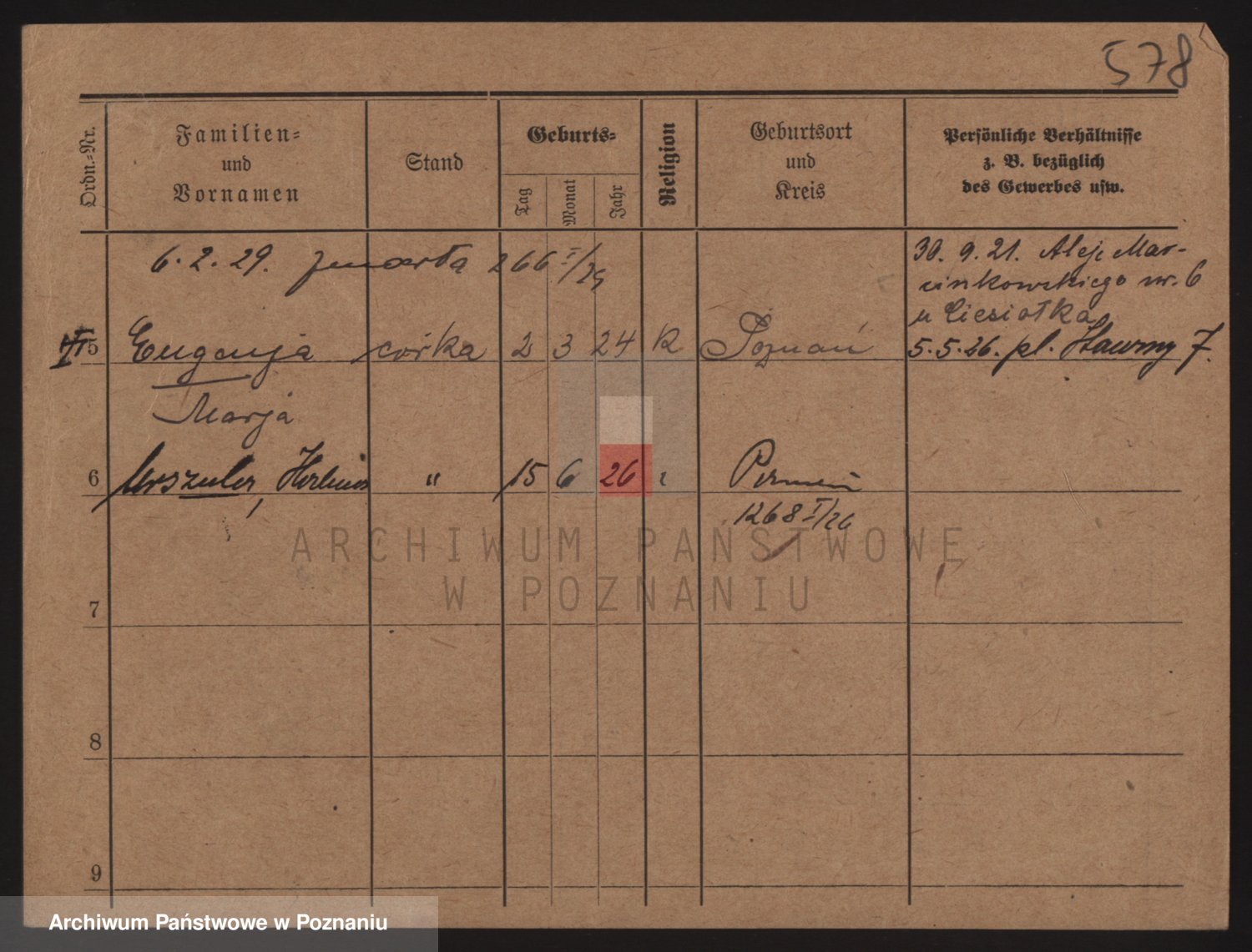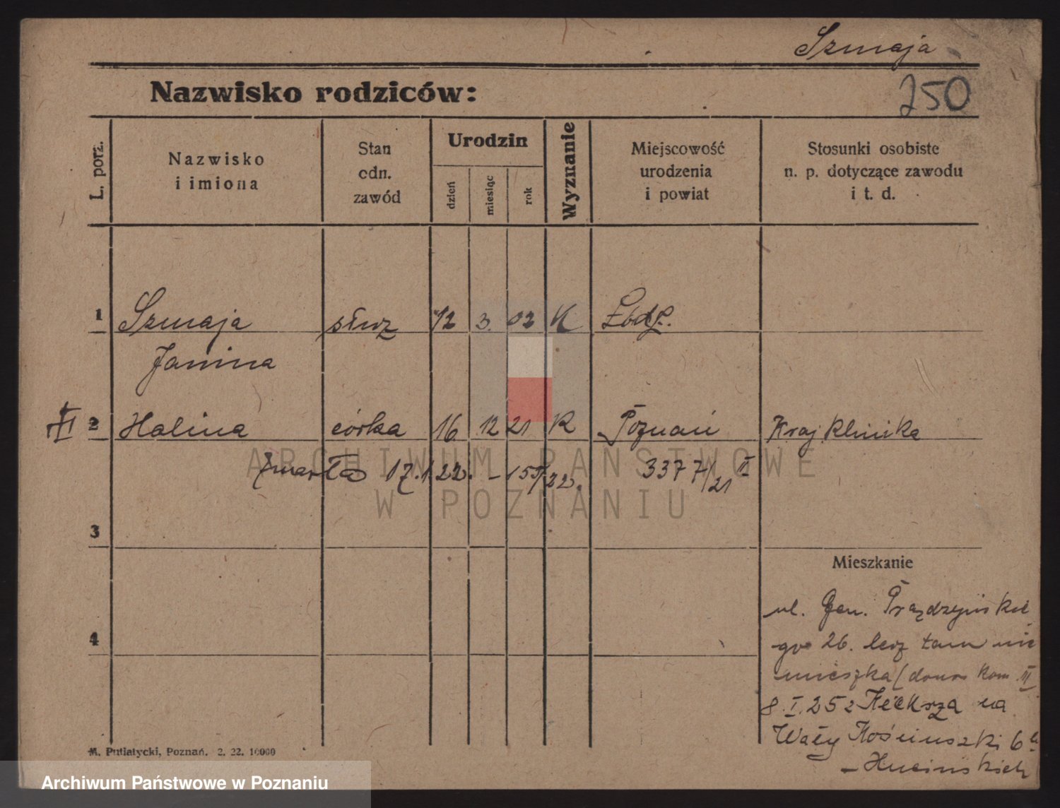 Podgląd karty osobowej dostępny jest po kliknięciu na nazwisko lub ikonkę karty. Można dokonywać powiększenia (ikony na górze) lub przechodzić między kolejnymi skanami (strzałki po bokach).