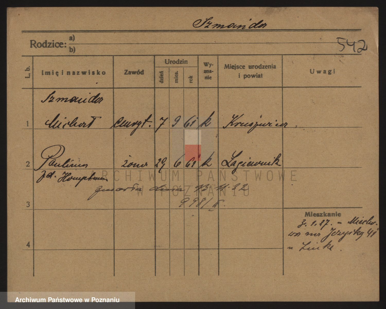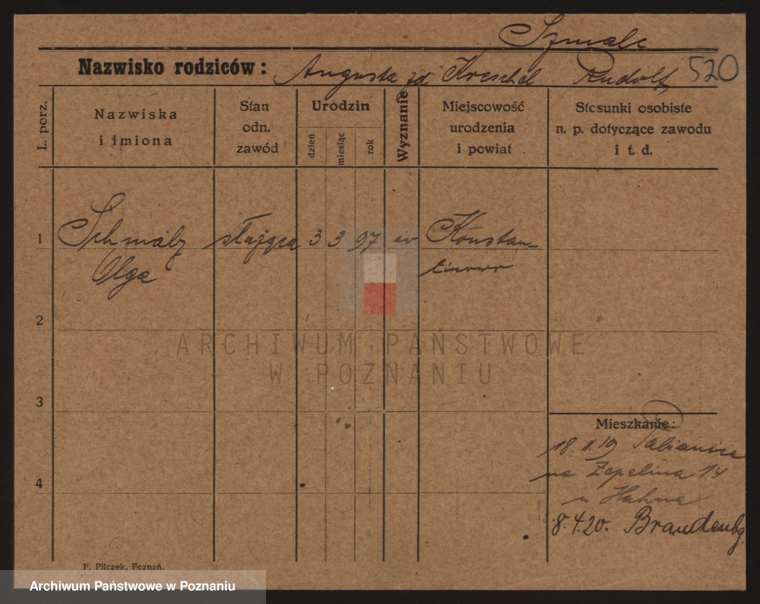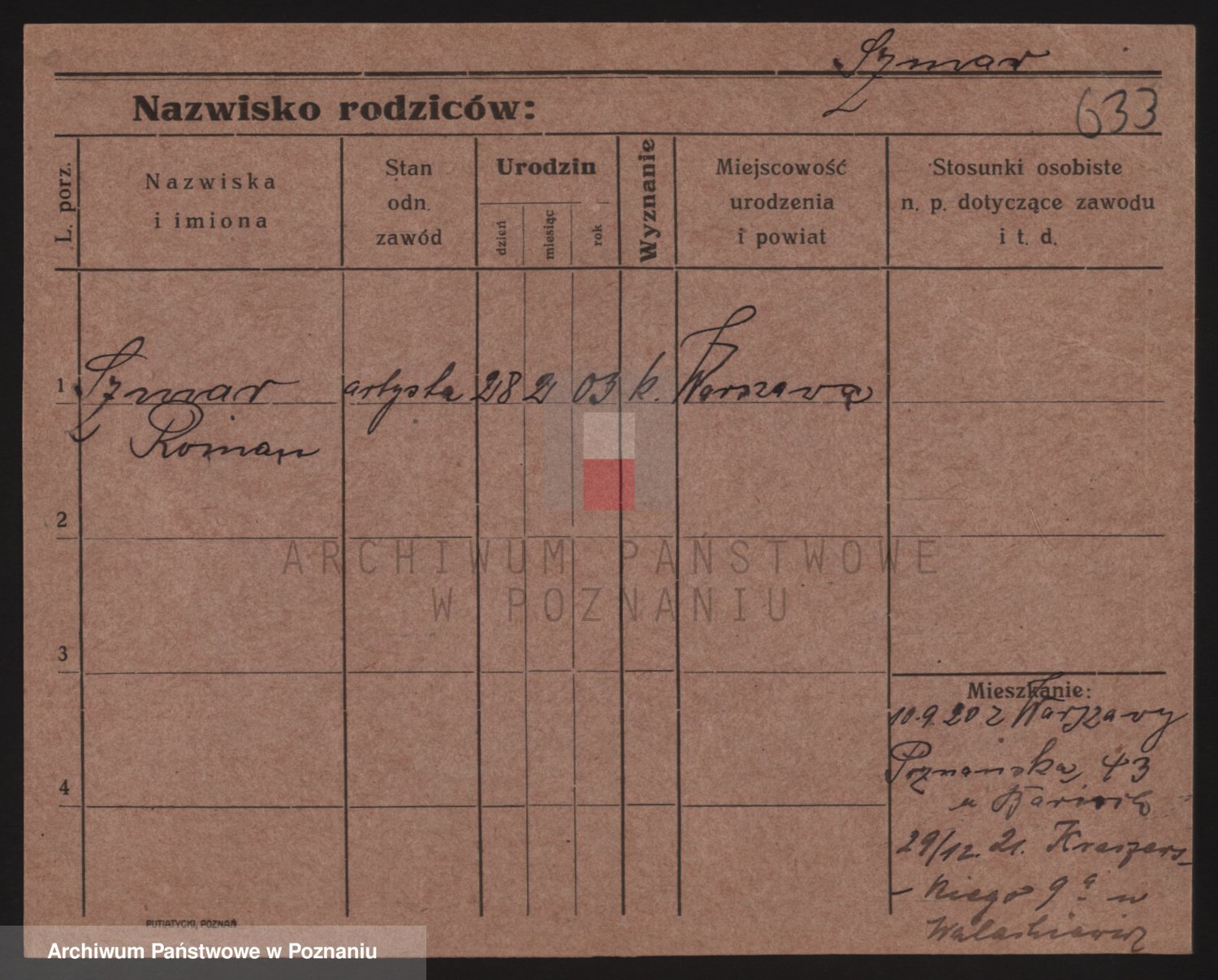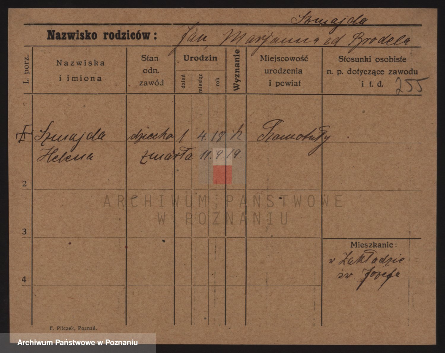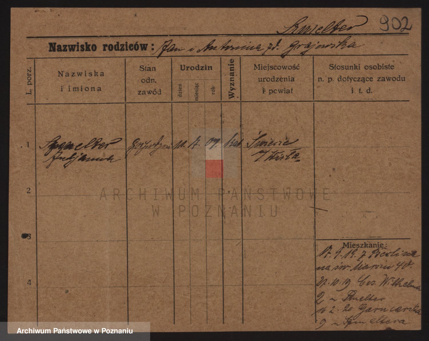 Podgląd karty osobowej dostępny jest po kliknięciu na nazwisko lub ikonkę karty. Można dokonywać powiększenia (ikony na górze) lub przechodzić między kolejnymi skanami (strzałki po bokach).
