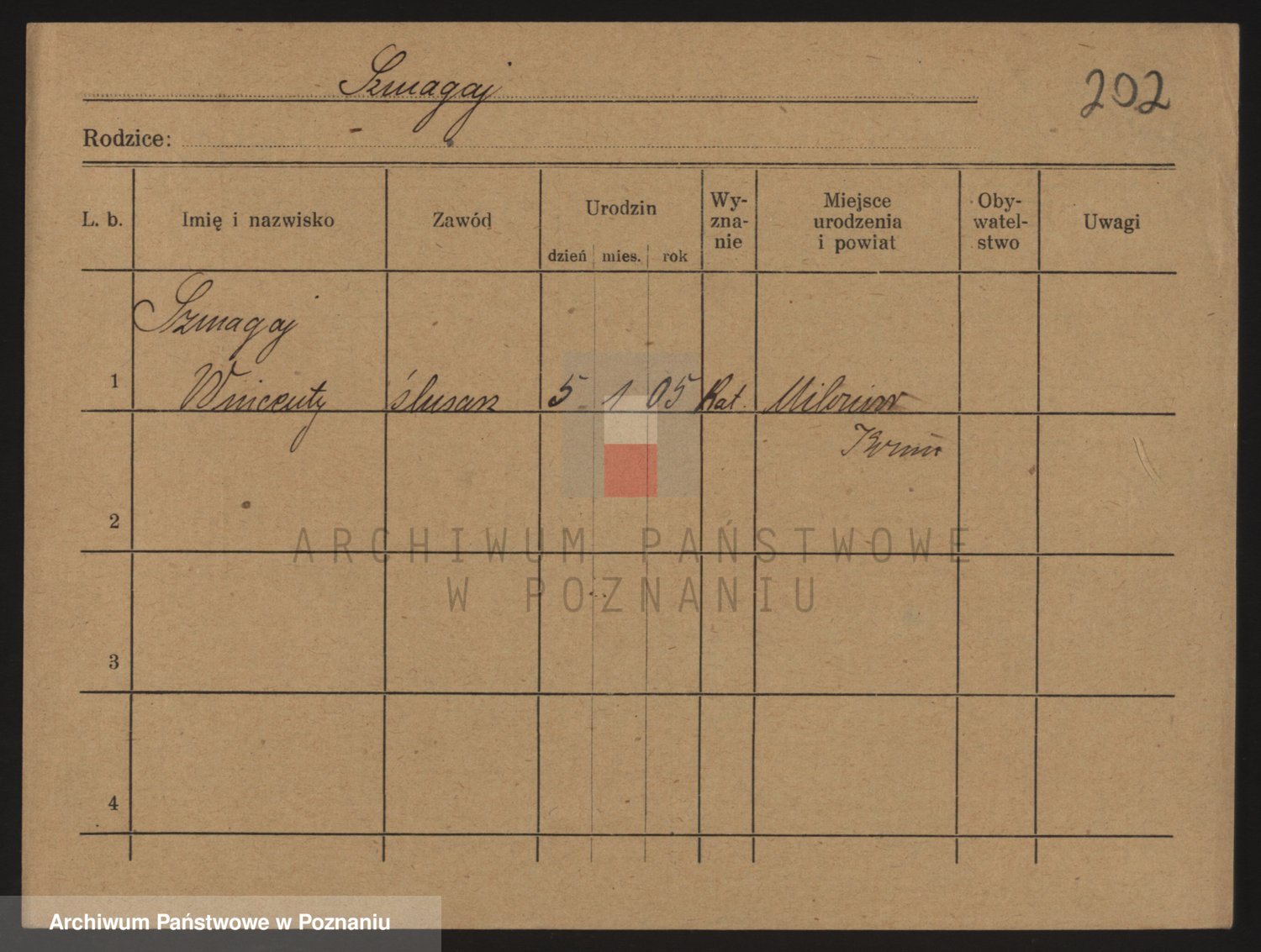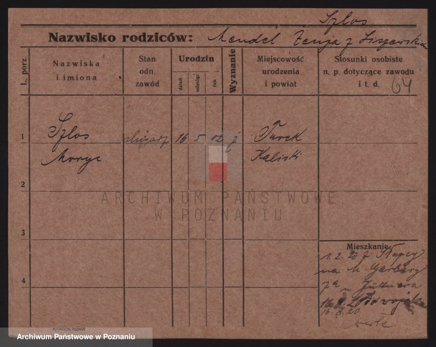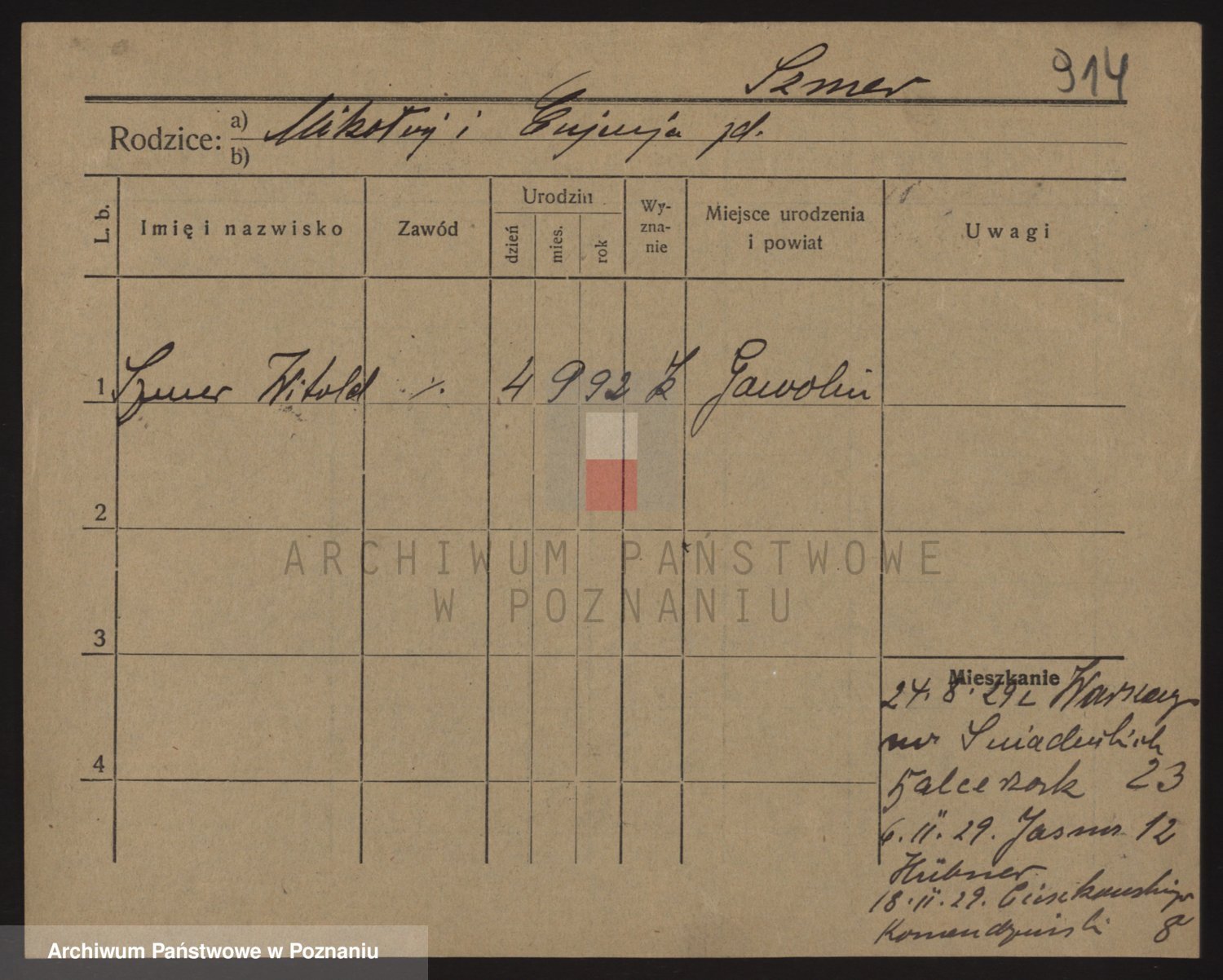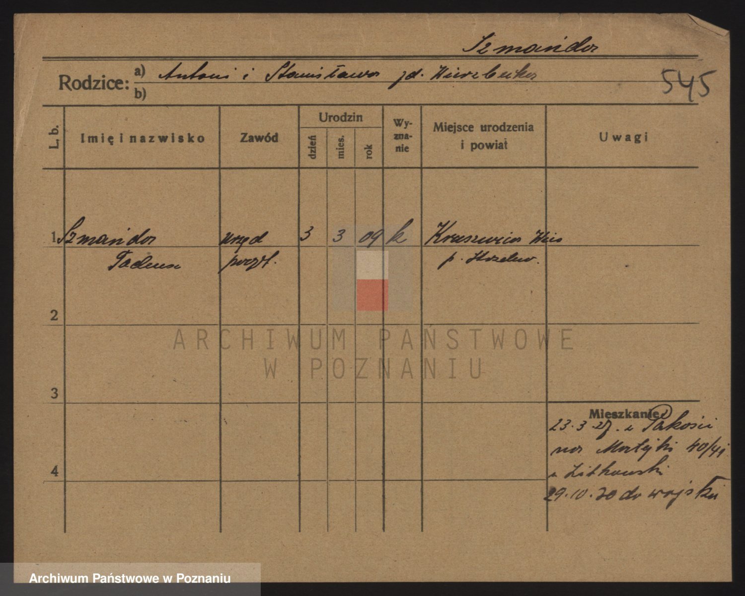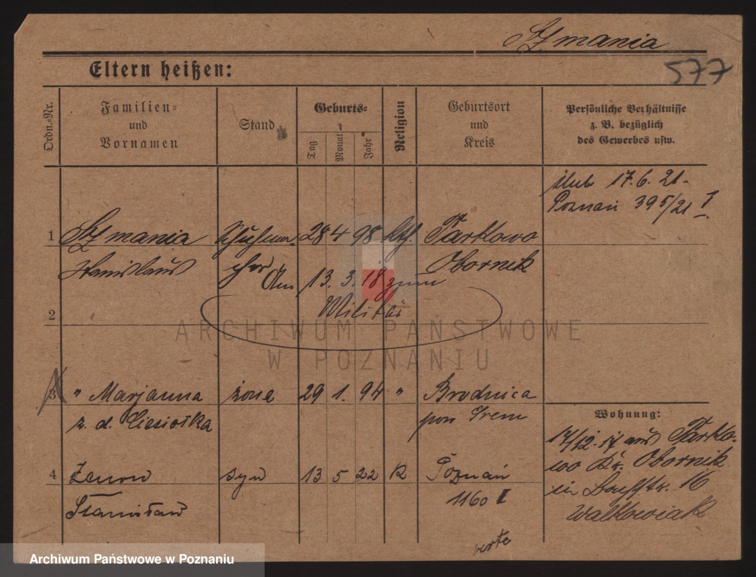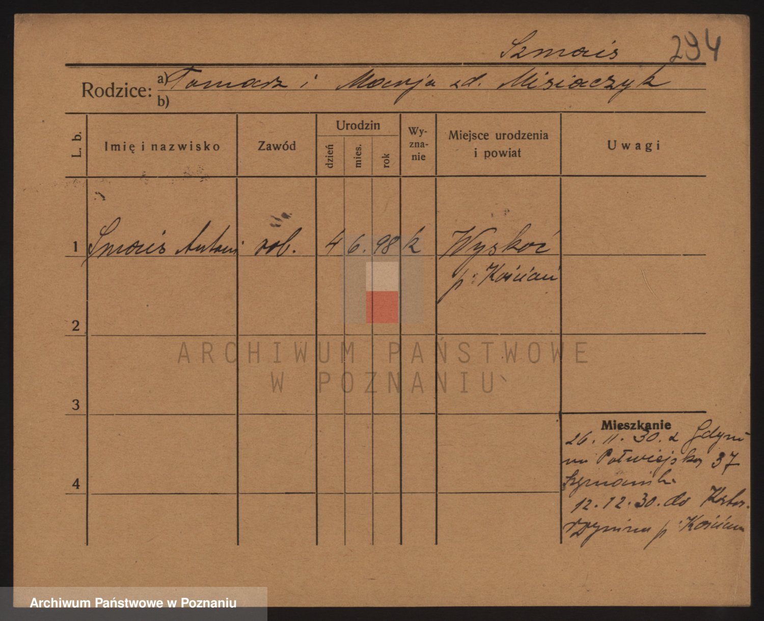 Podgląd karty osobowej dostępny jest po kliknięciu na nazwisko lub ikonkę karty. Można dokonywać powiększenia (ikony na górze) lub przechodzić między kolejnymi skanami (strzałki po bokach).