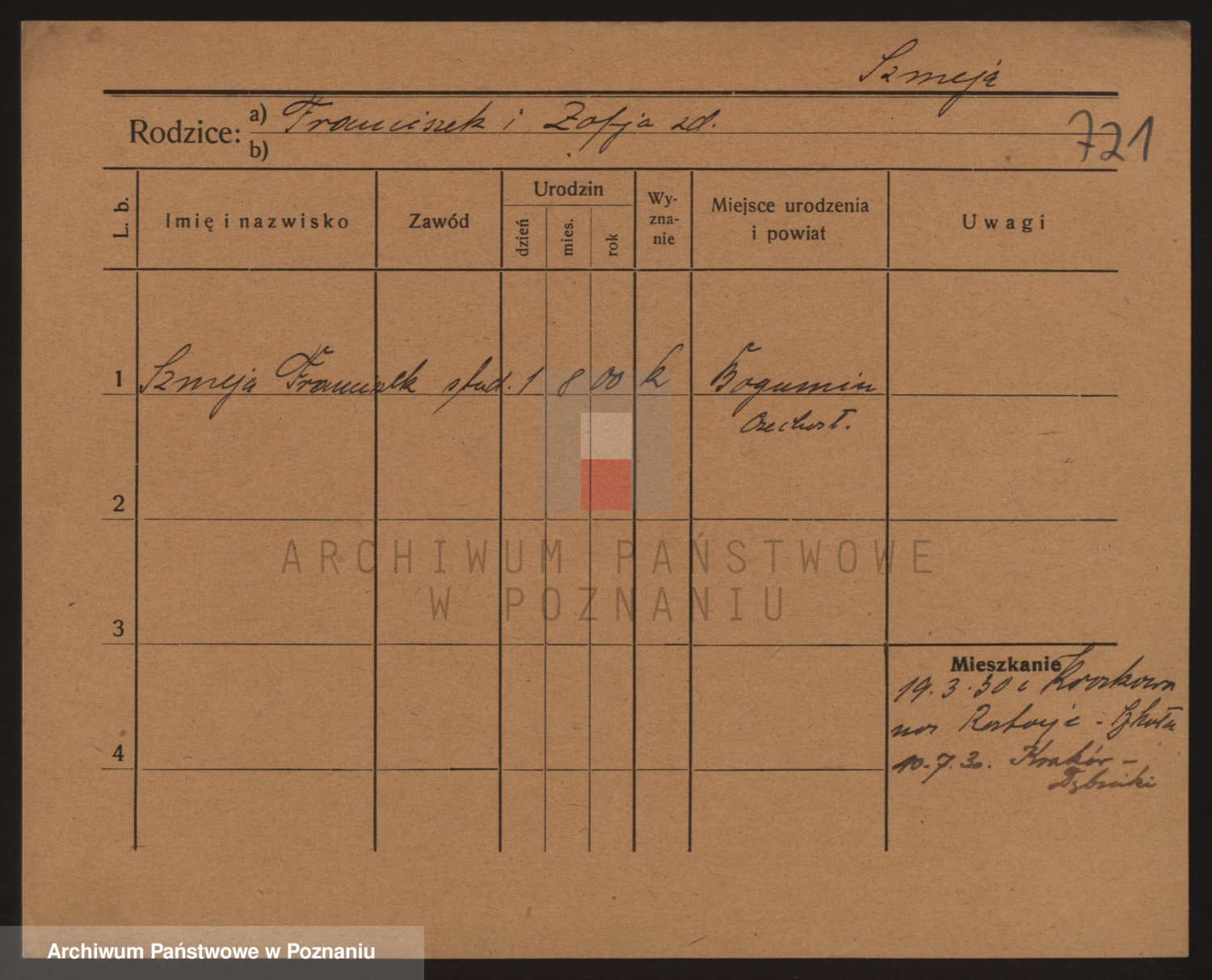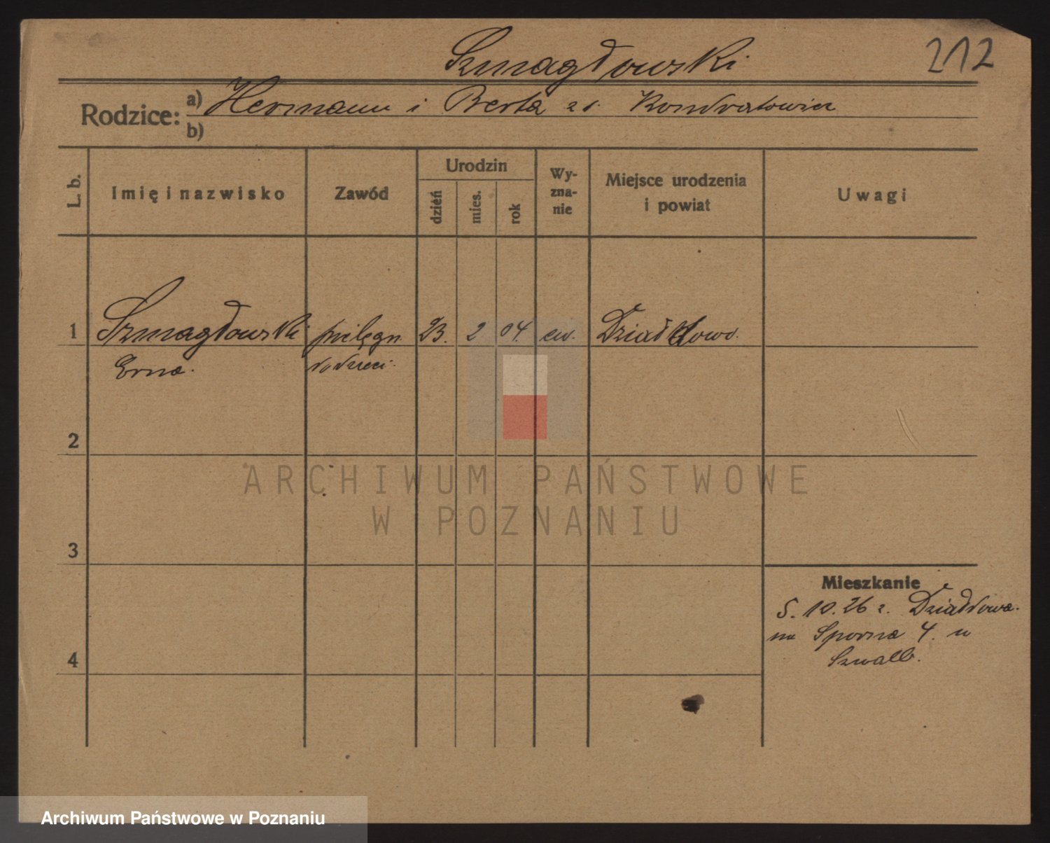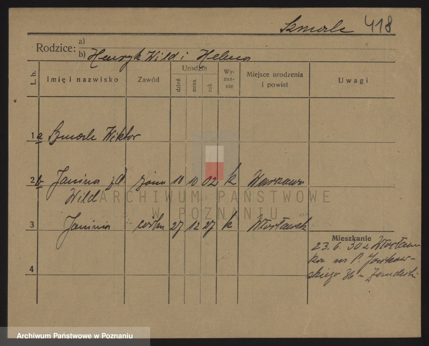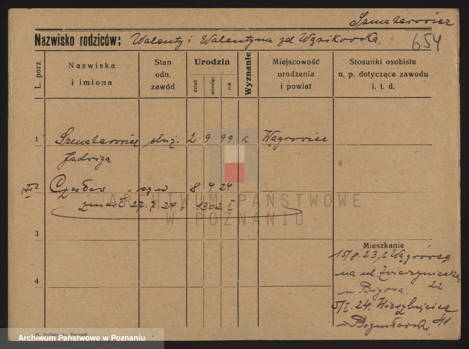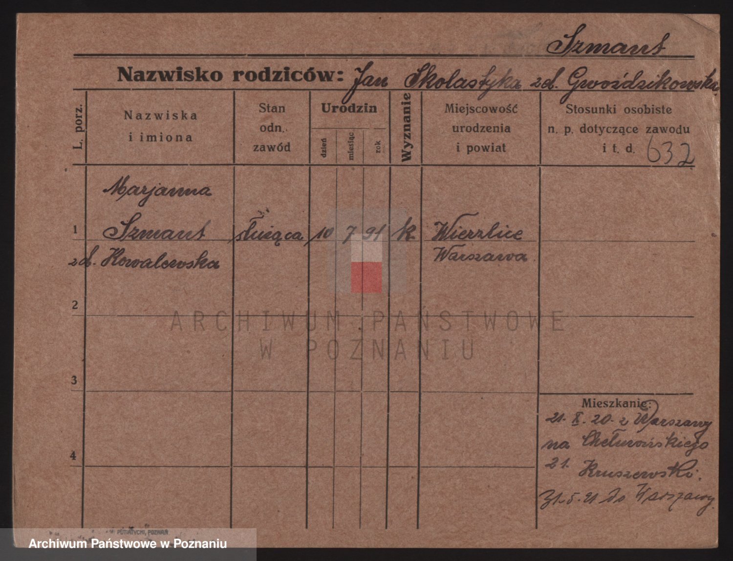 Podgląd karty osobowej dostępny jest po kliknięciu na nazwisko lub ikonkę karty. Można dokonywać powiększenia (ikony na górze) lub przechodzić między kolejnymi skanami (strzałki po bokach).
