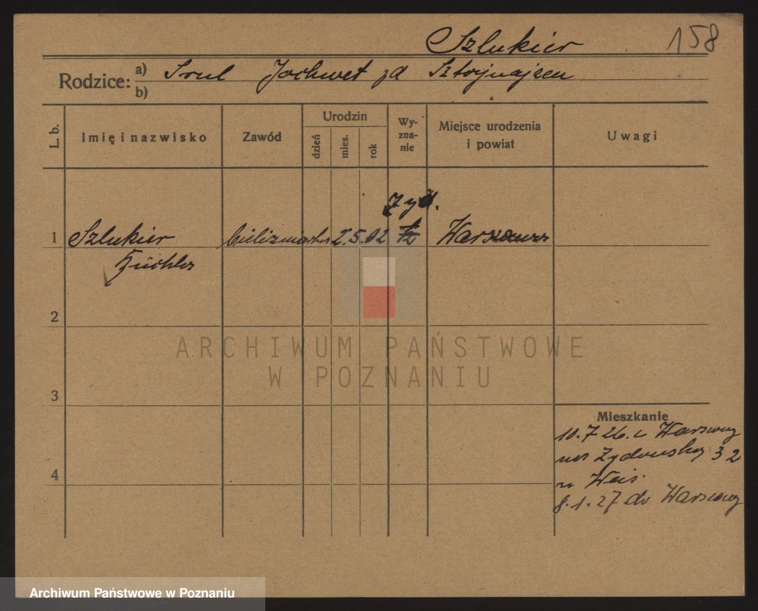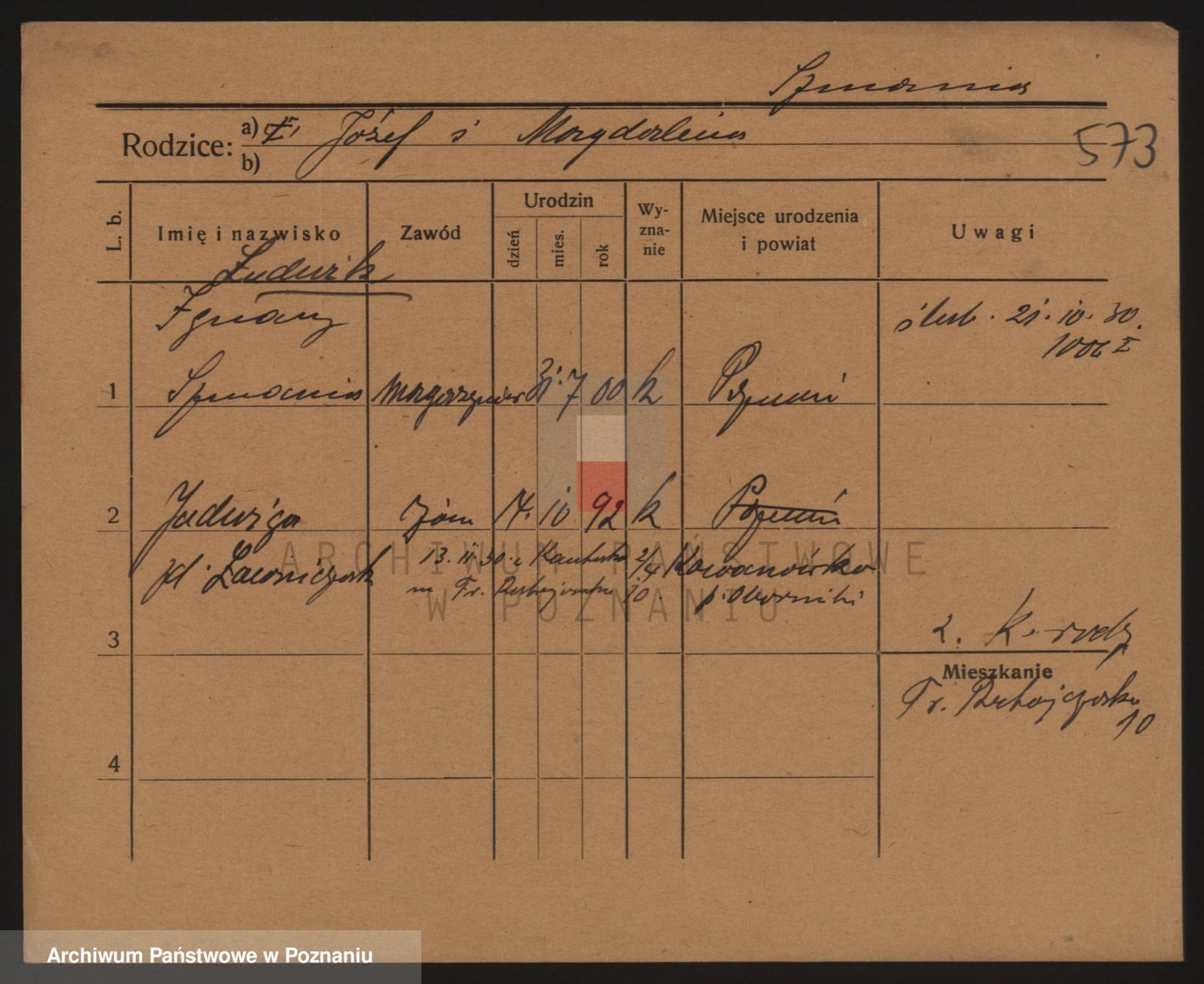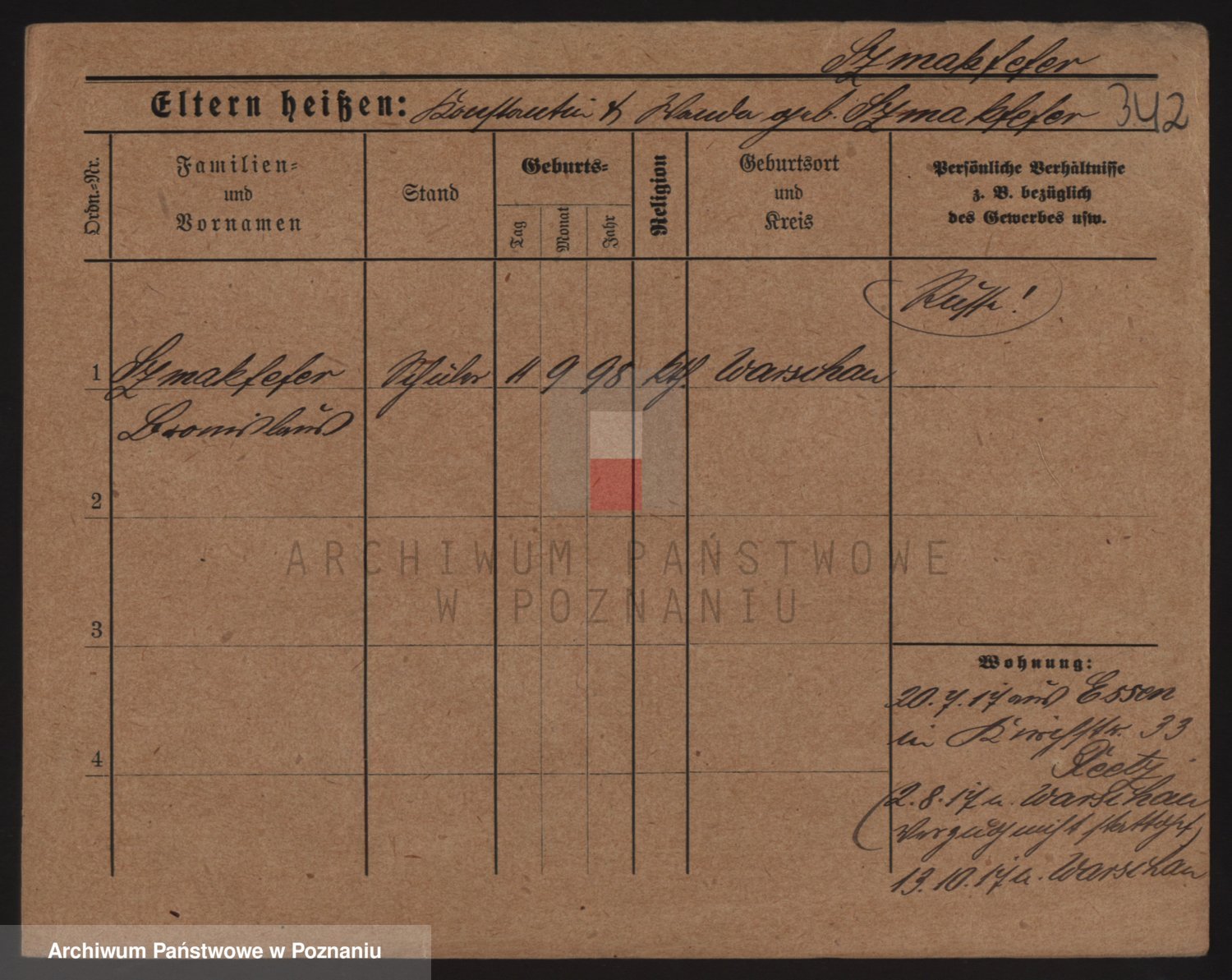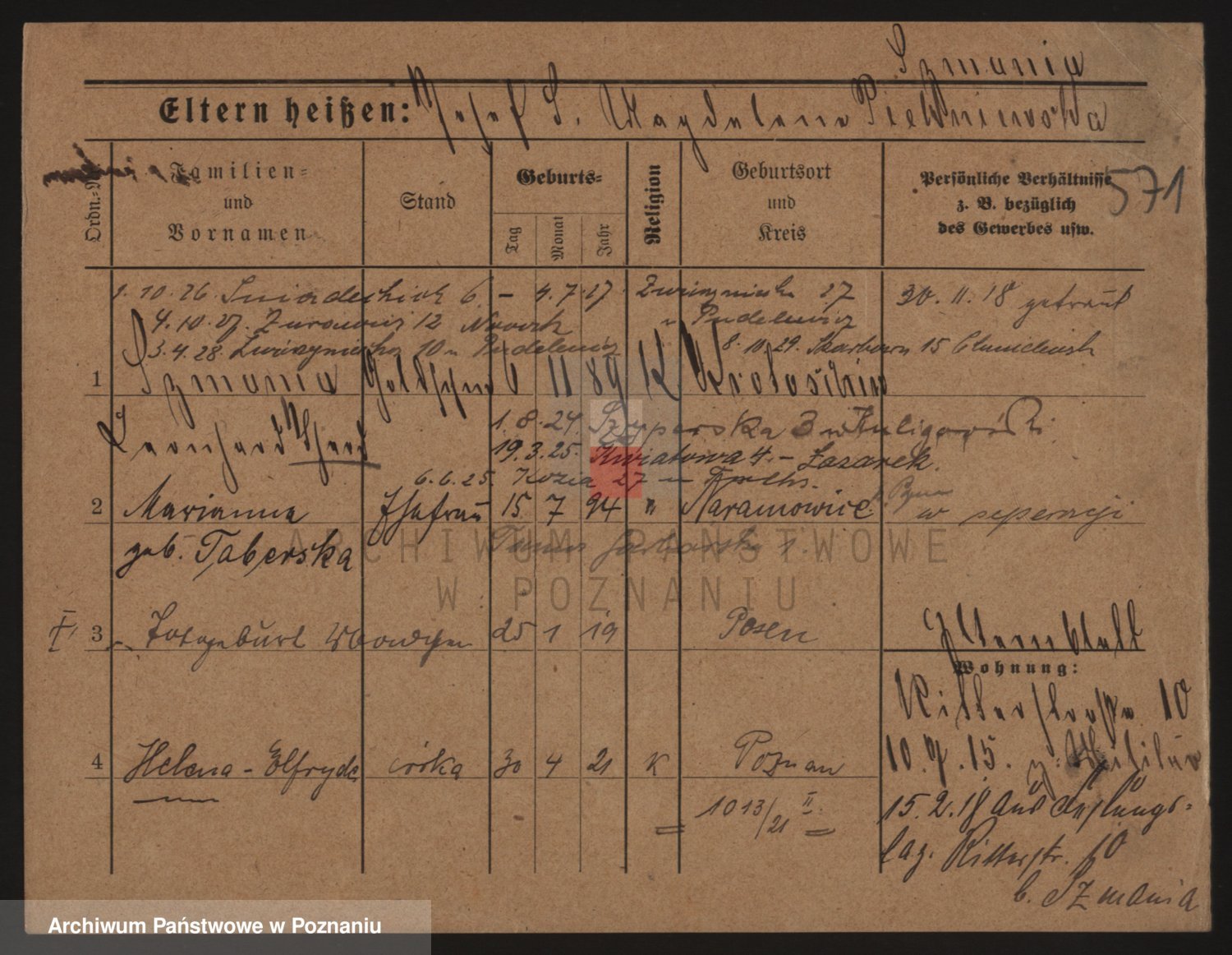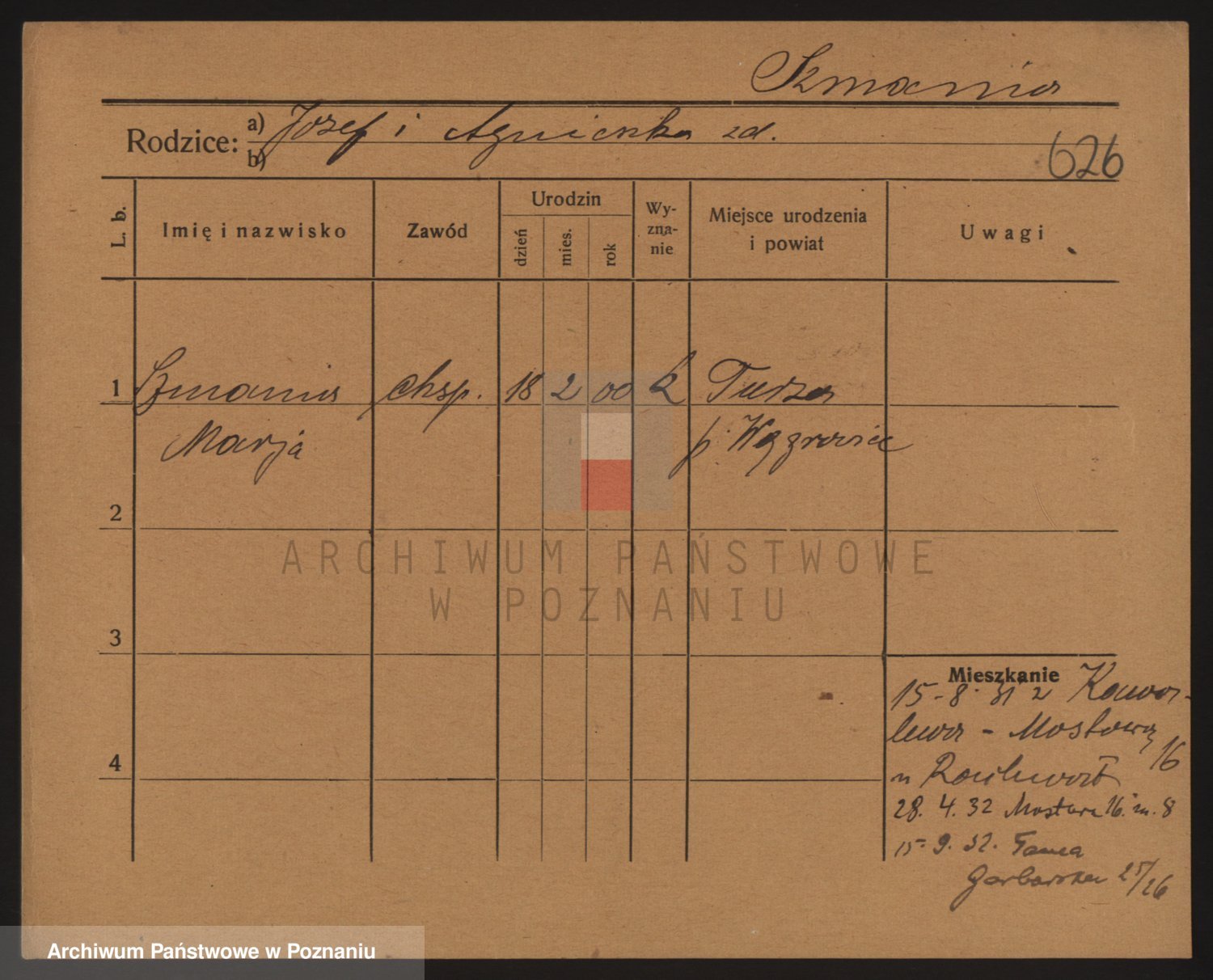 Podgląd karty osobowej dostępny jest po kliknięciu na nazwisko lub ikonkę karty. Można dokonywać powiększenia (ikony na górze) lub przechodzić między kolejnymi skanami (strzałki po bokach).