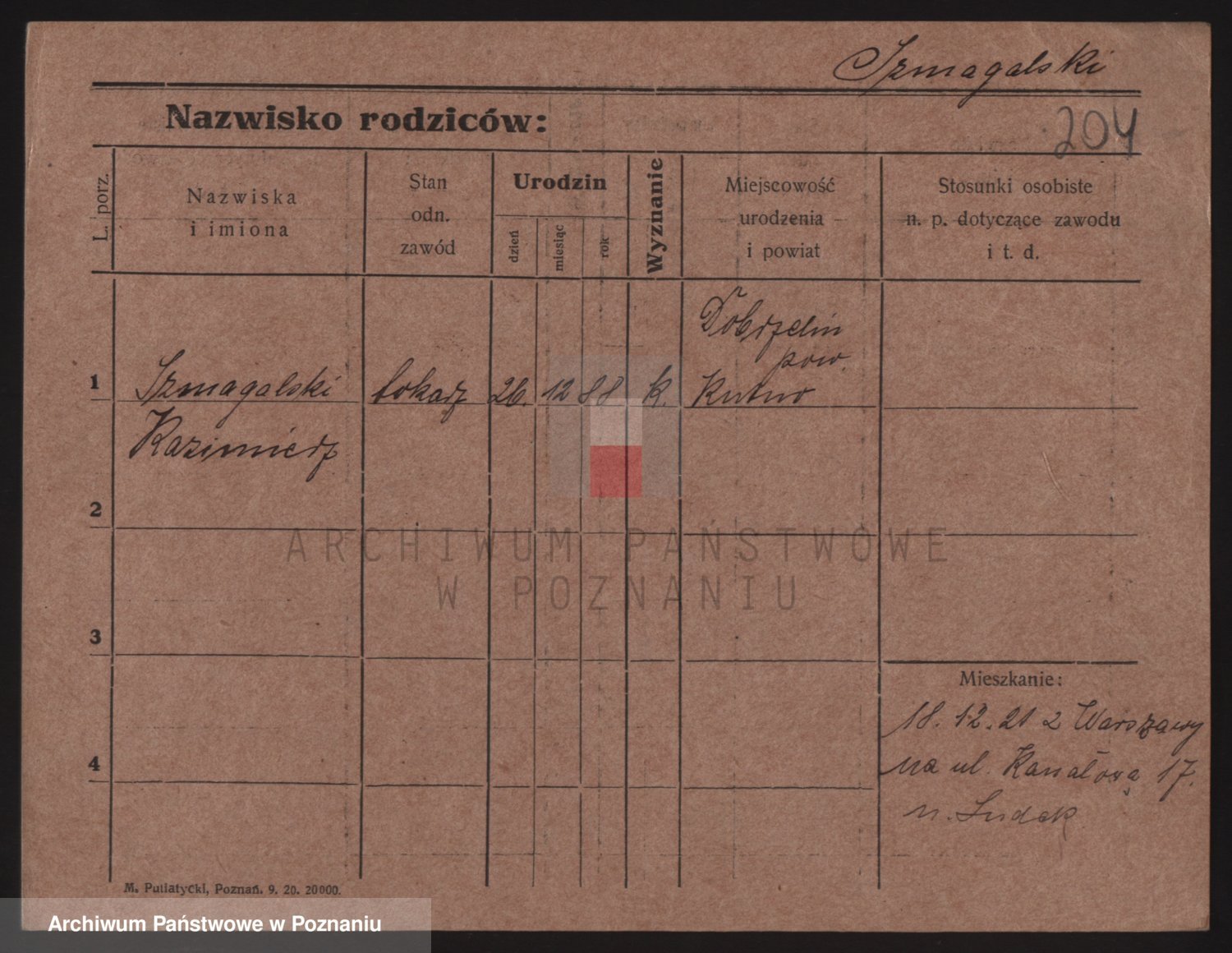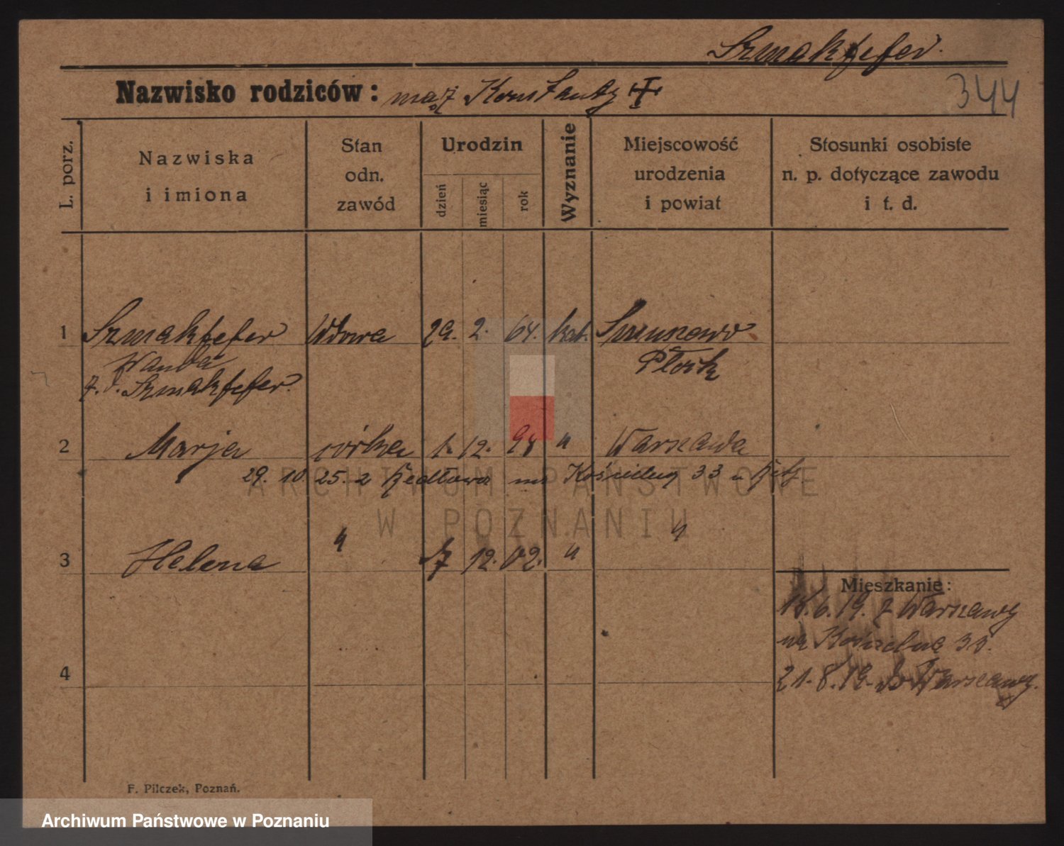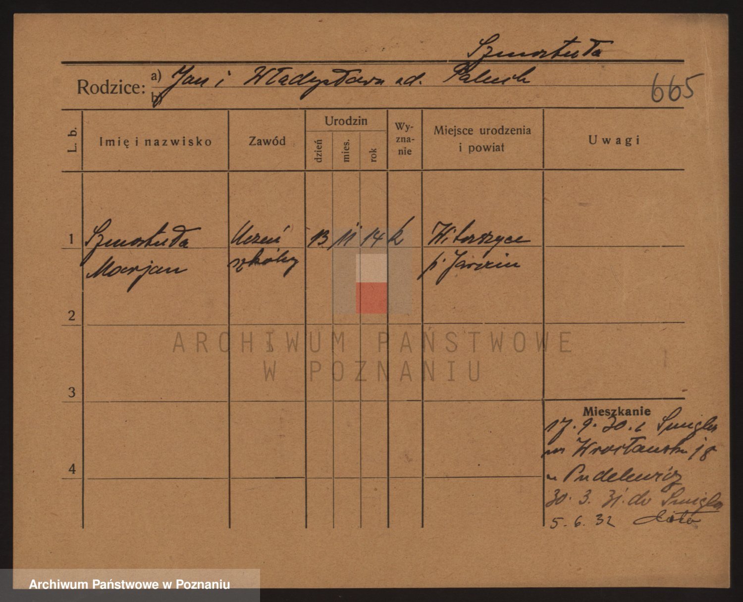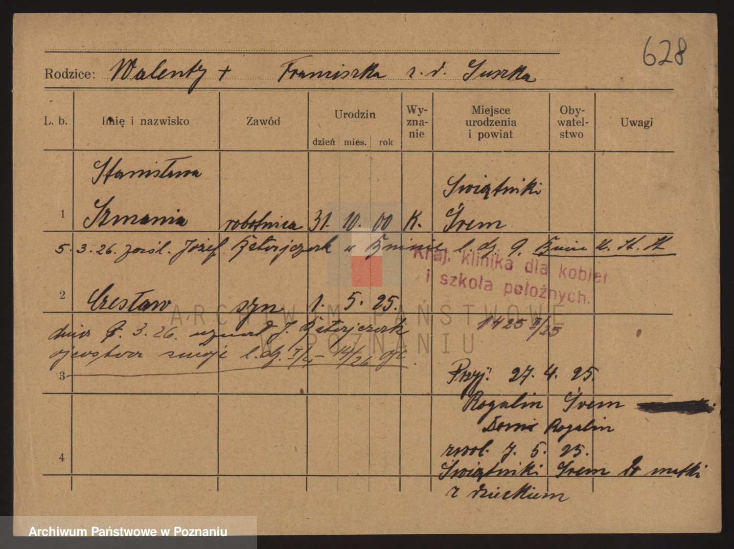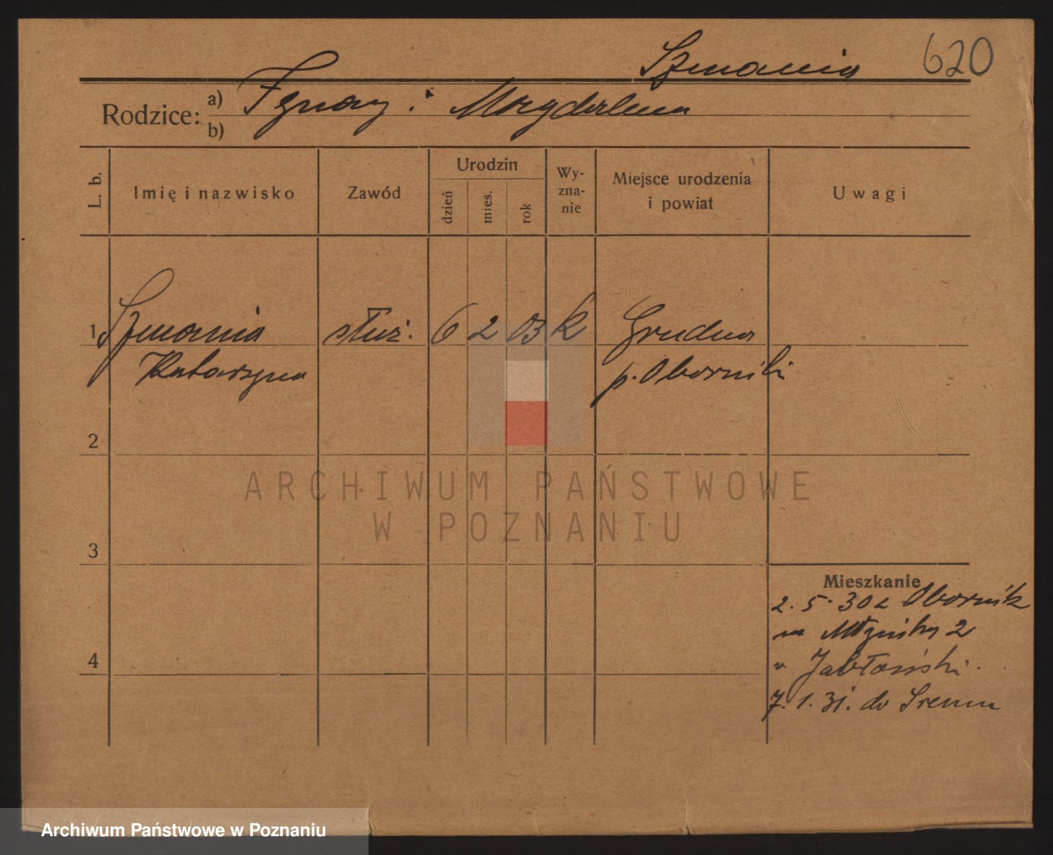 Podgląd karty osobowej dostępny jest po kliknięciu na nazwisko lub ikonkę karty. Można dokonywać powiększenia (ikony na górze) lub przechodzić między kolejnymi skanami (strzałki po bokach).