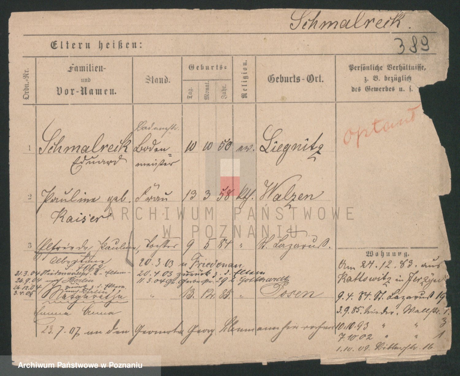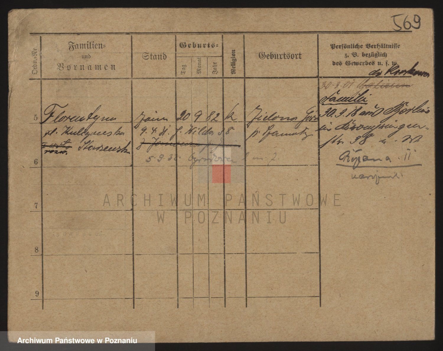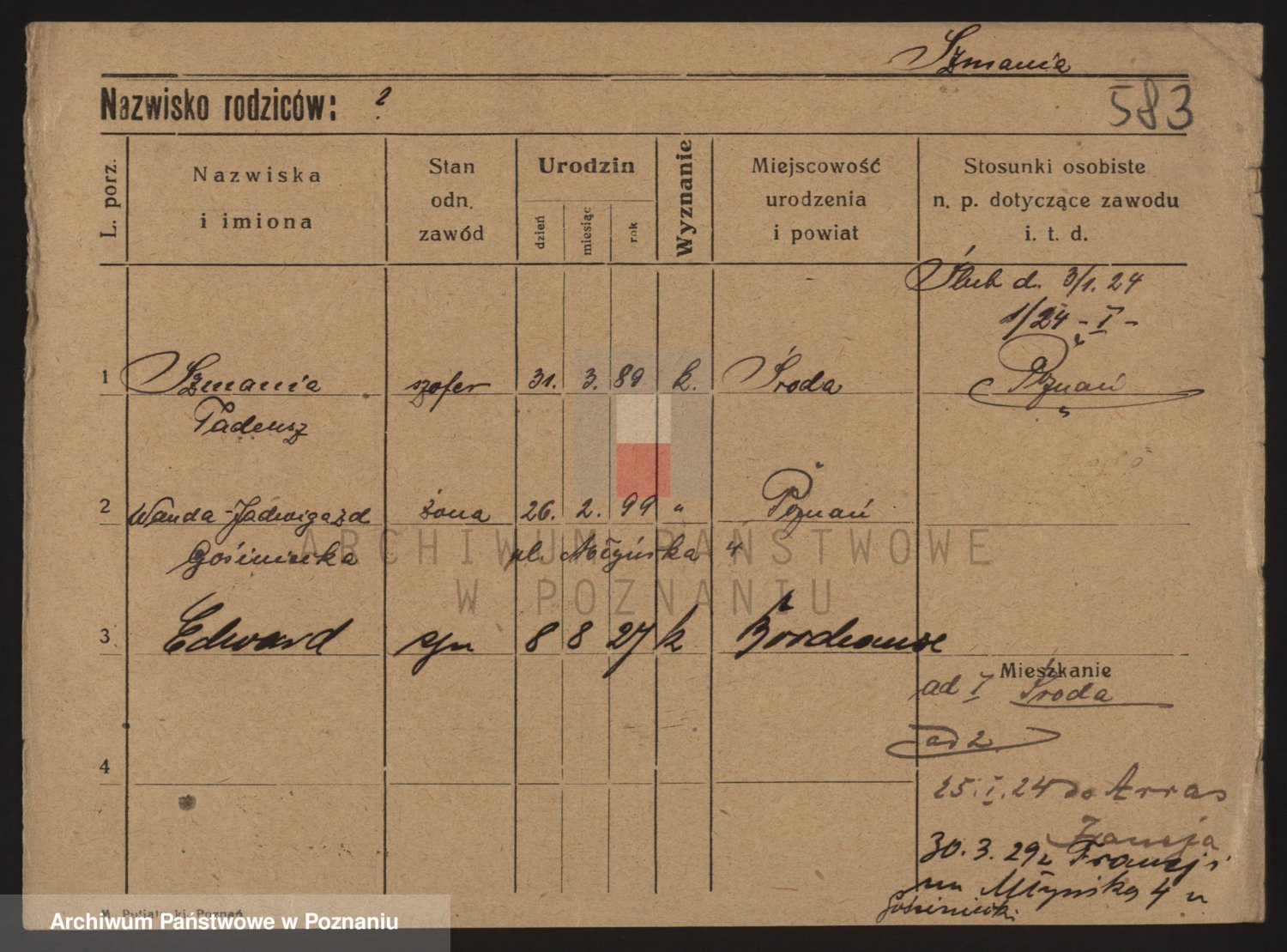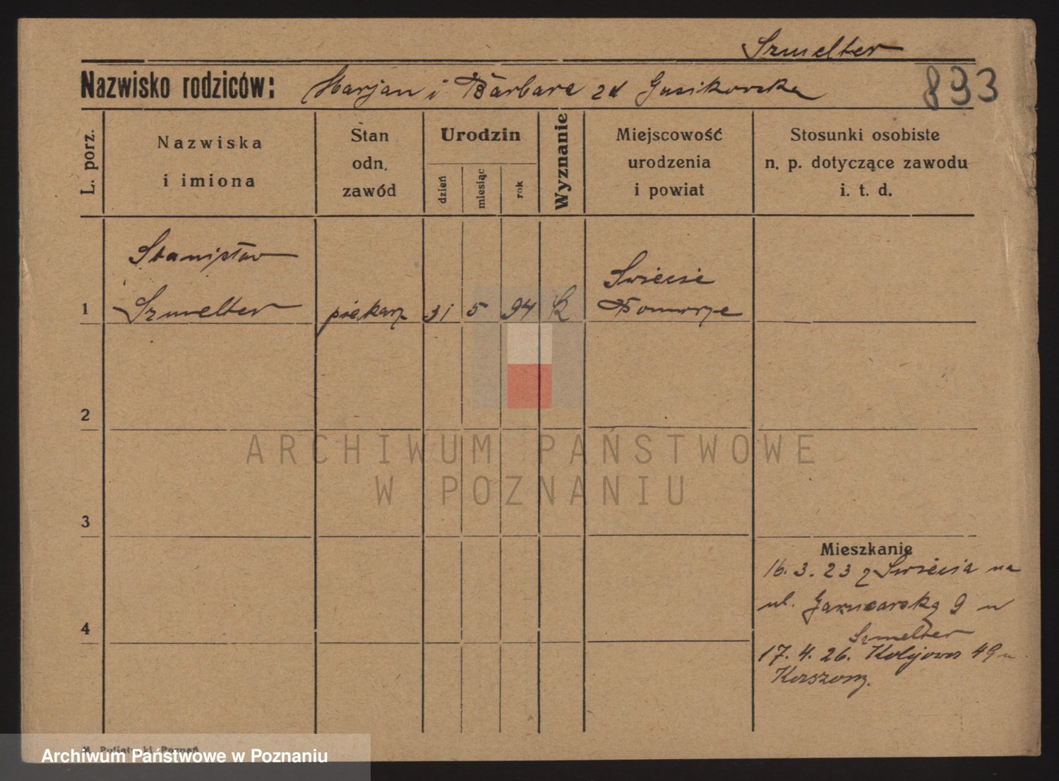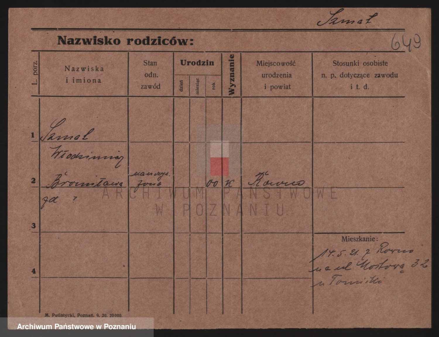 Podgląd karty osobowej dostępny jest po kliknięciu na nazwisko lub ikonkę karty. Można dokonywać powiększenia (ikony na górze) lub przechodzić między kolejnymi skanami (strzałki po bokach).