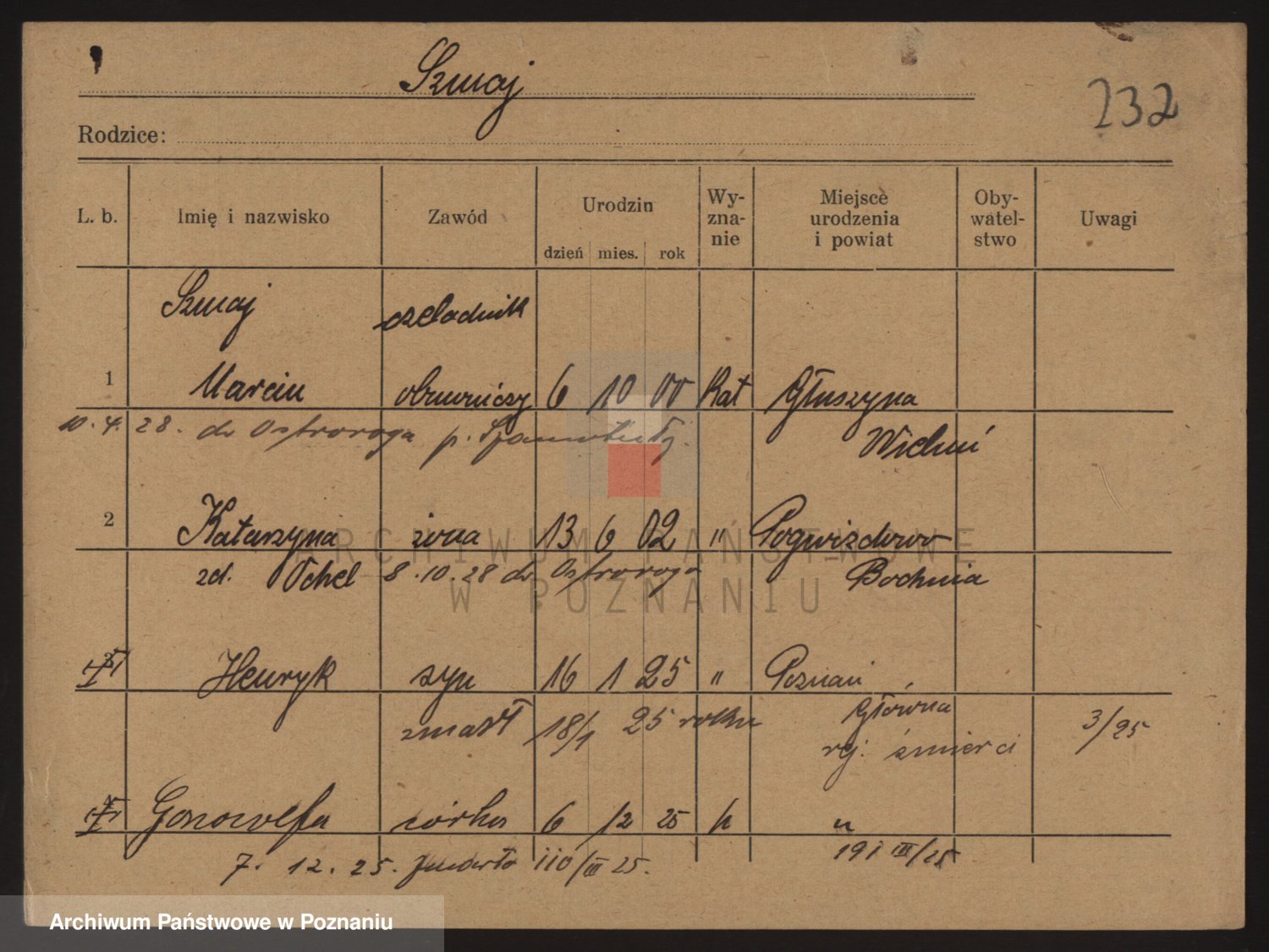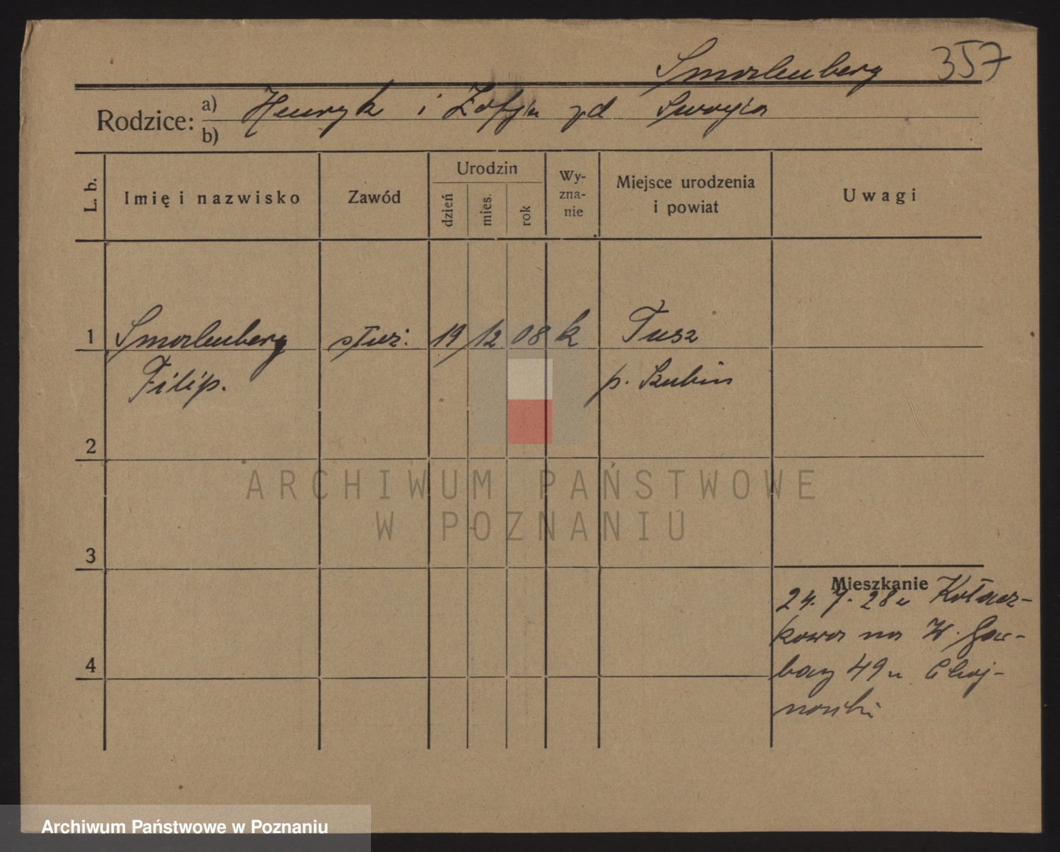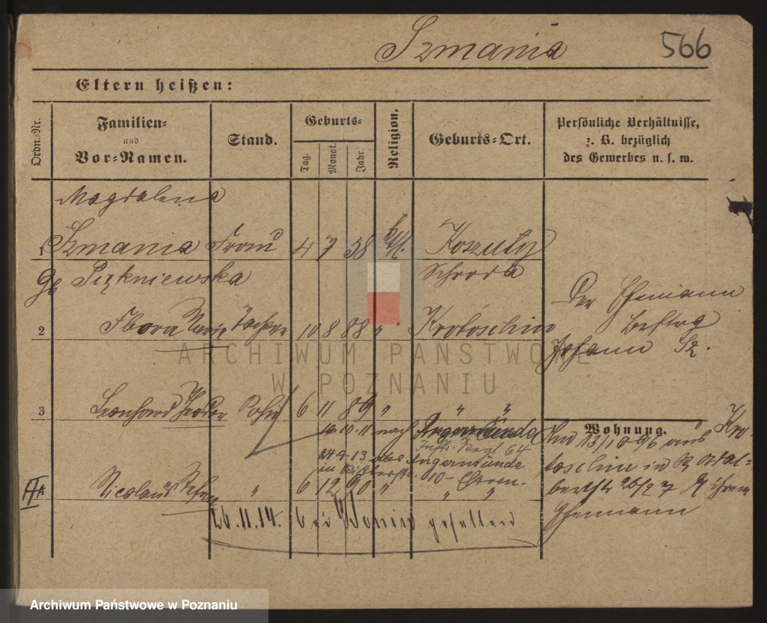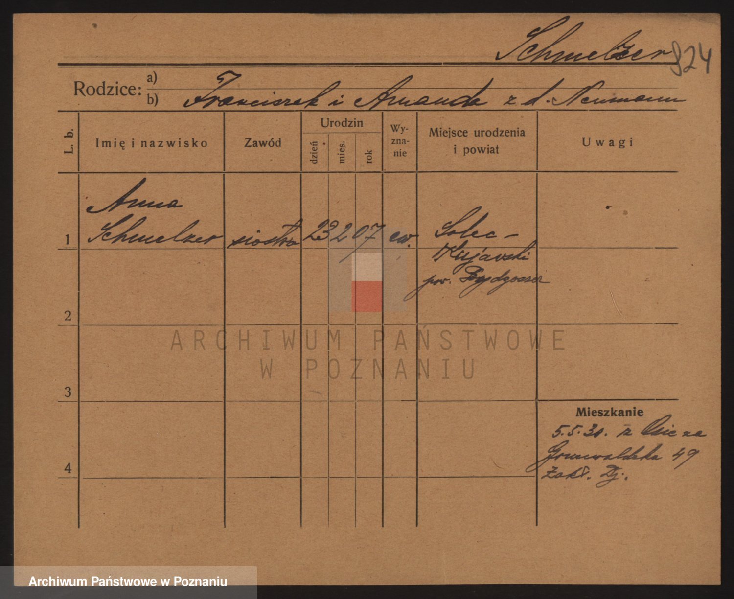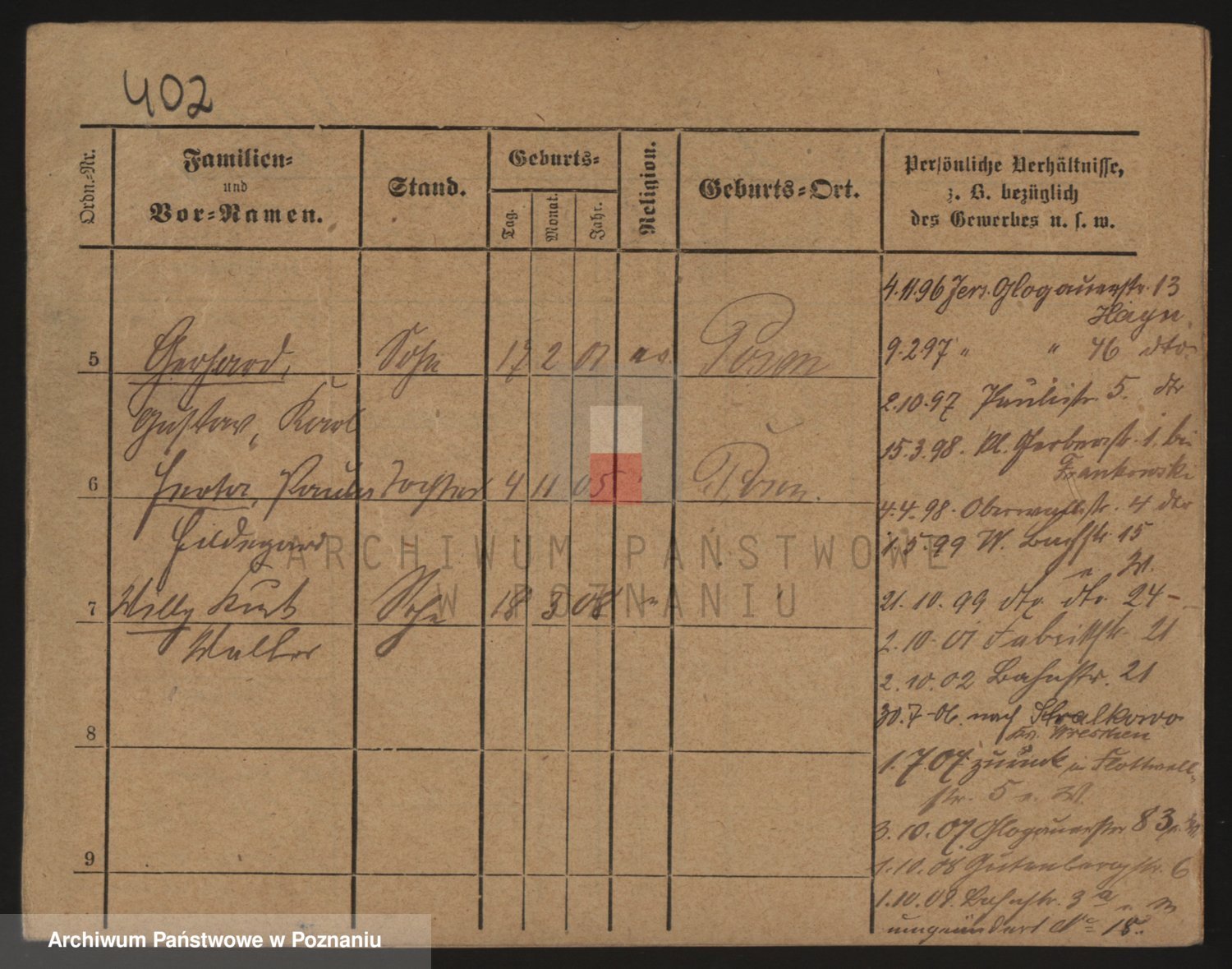 Podgląd karty osobowej dostępny jest po kliknięciu na nazwisko lub ikonkę karty. Można dokonywać powiększenia (ikony na górze) lub przechodzić między kolejnymi skanami (strzałki po bokach).
