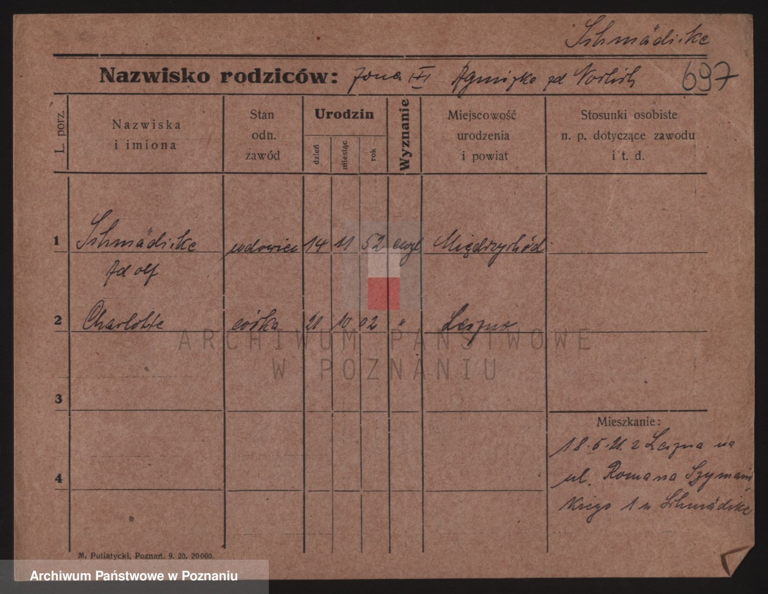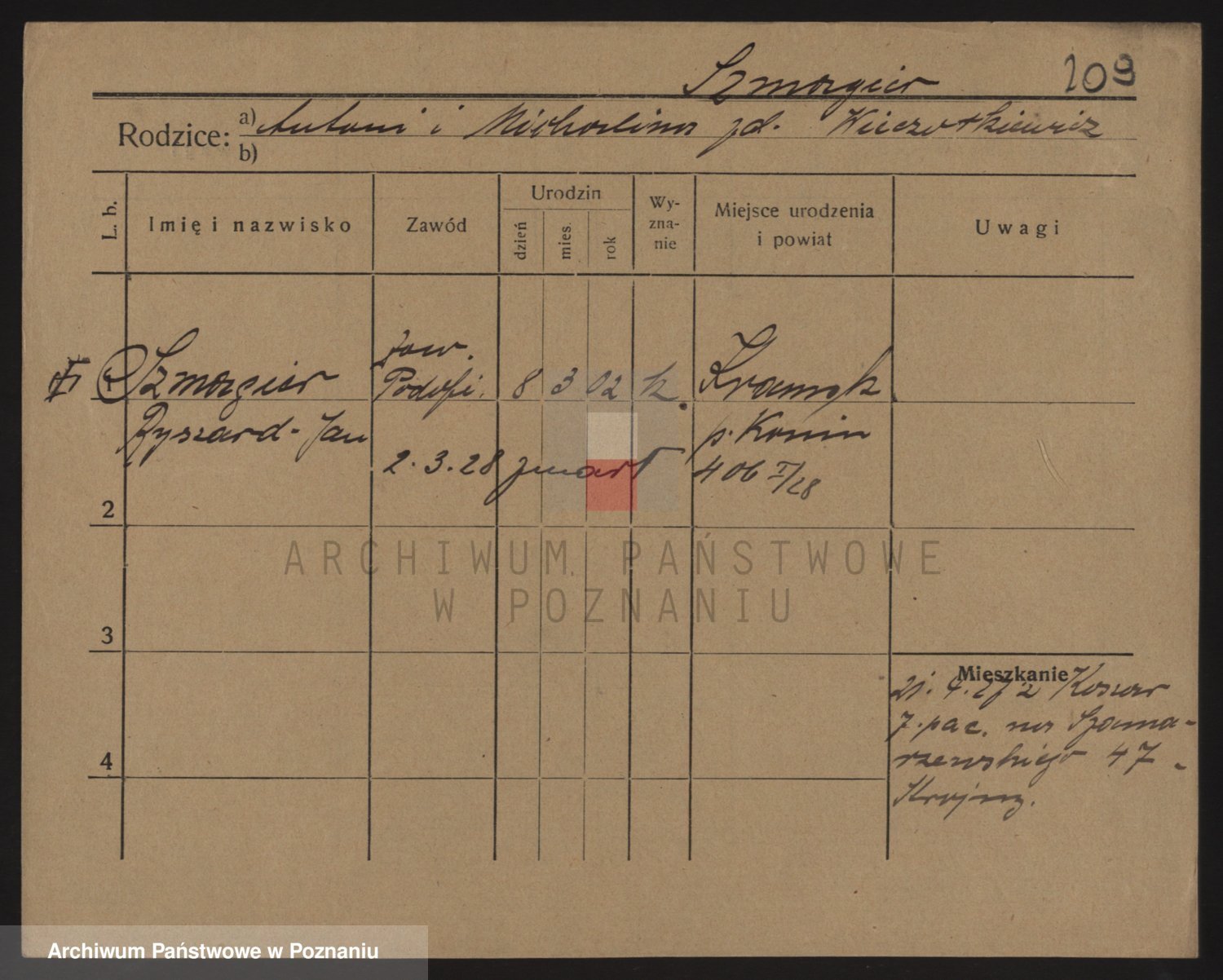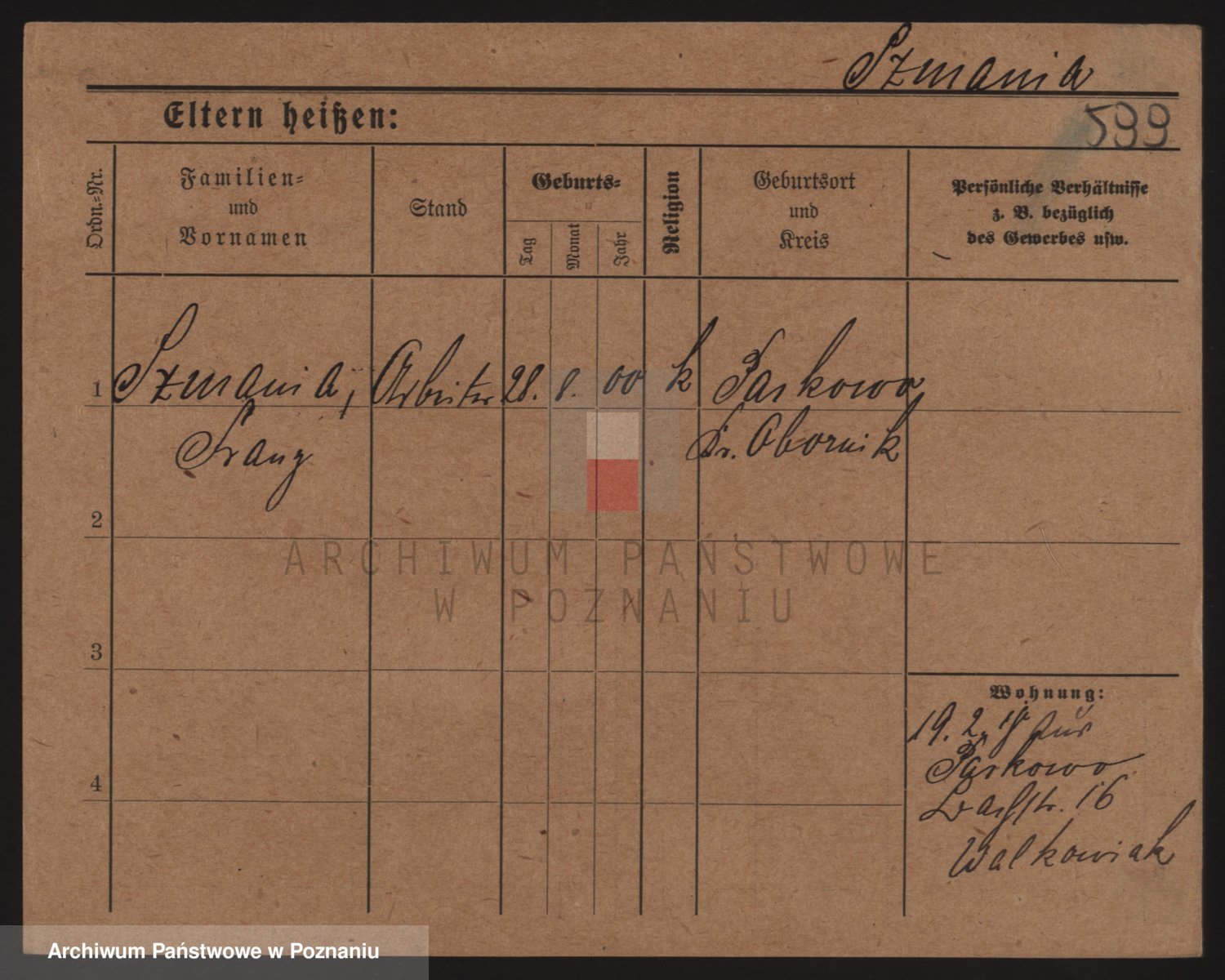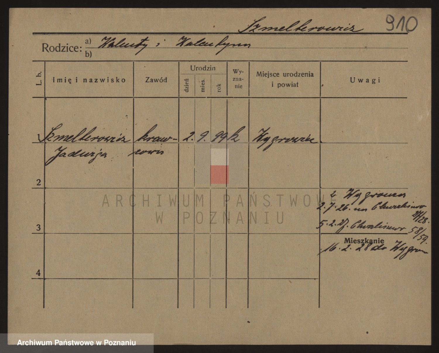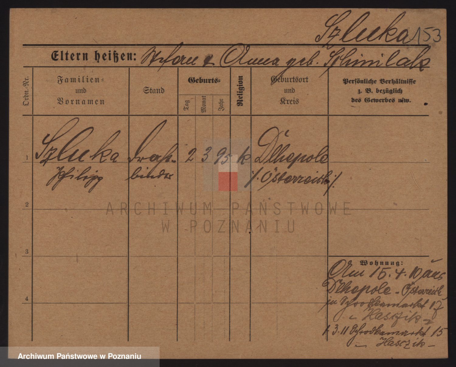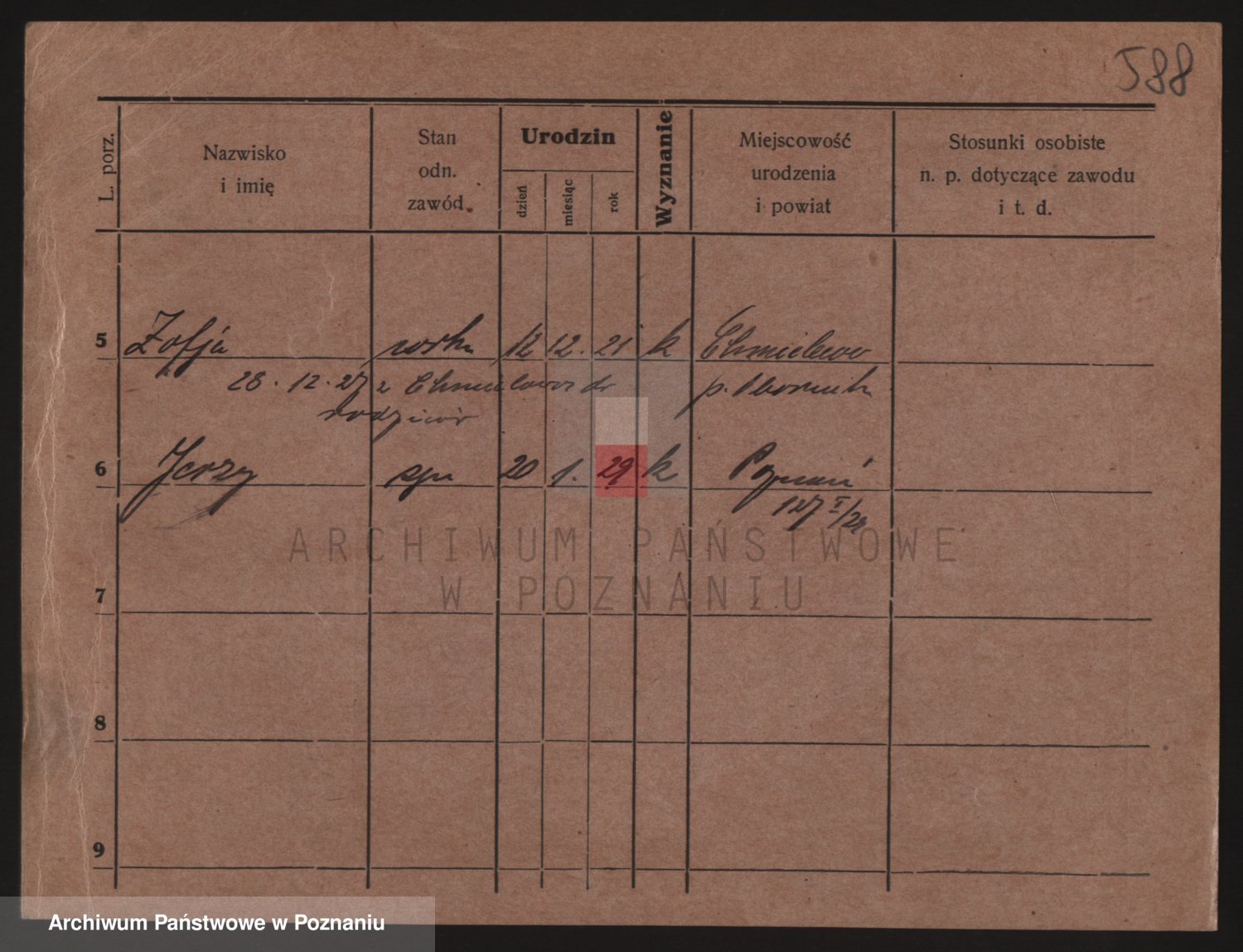 Podgląd karty osobowej dostępny jest po kliknięciu na nazwisko lub ikonkę karty. Można dokonywać powiększenia (ikony na górze) lub przechodzić między kolejnymi skanami (strzałki po bokach).