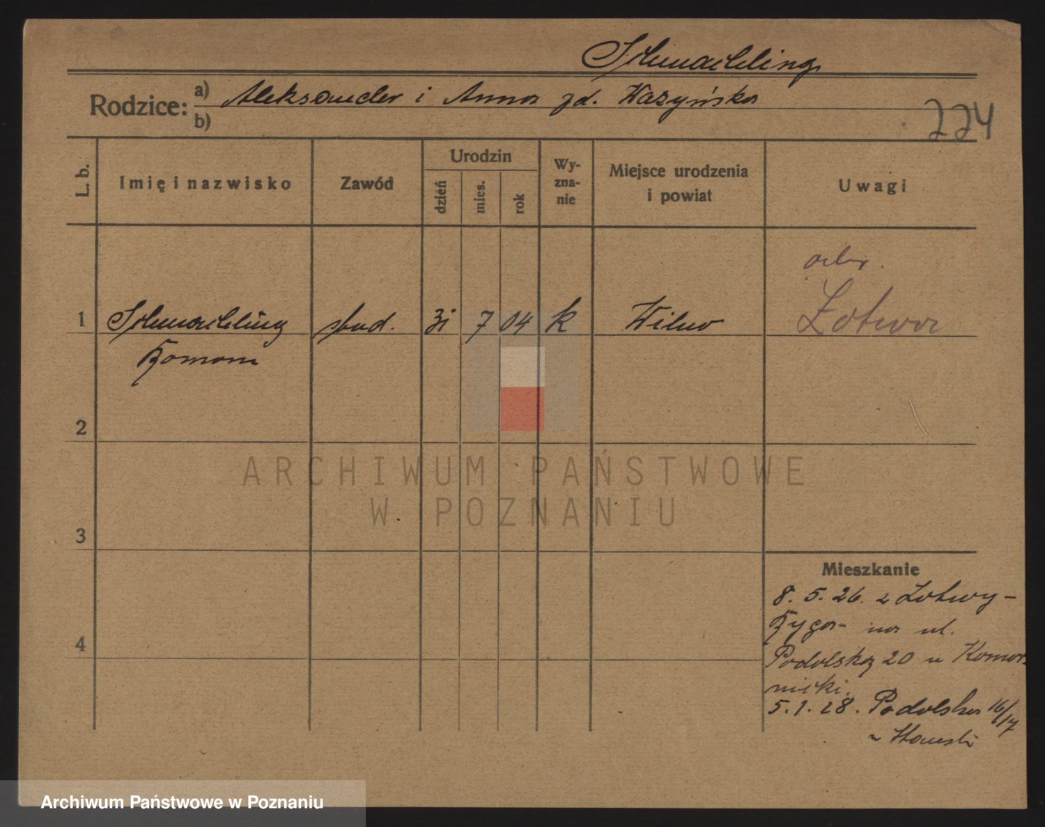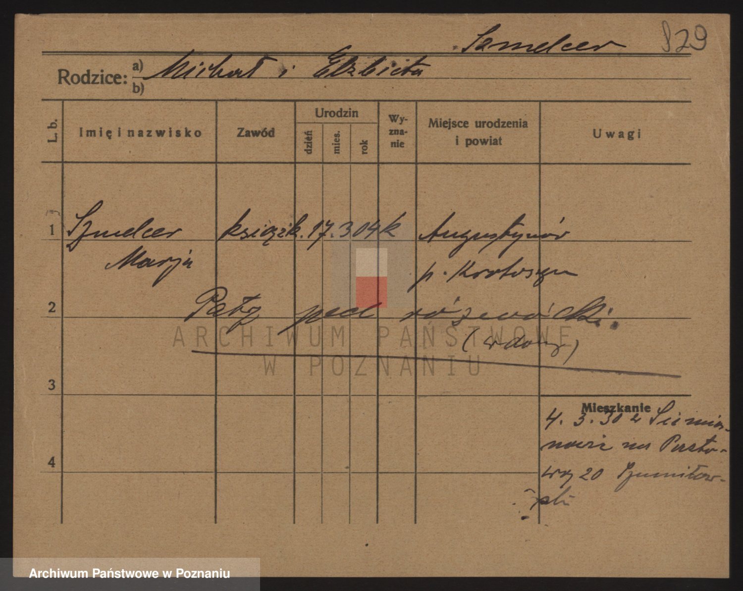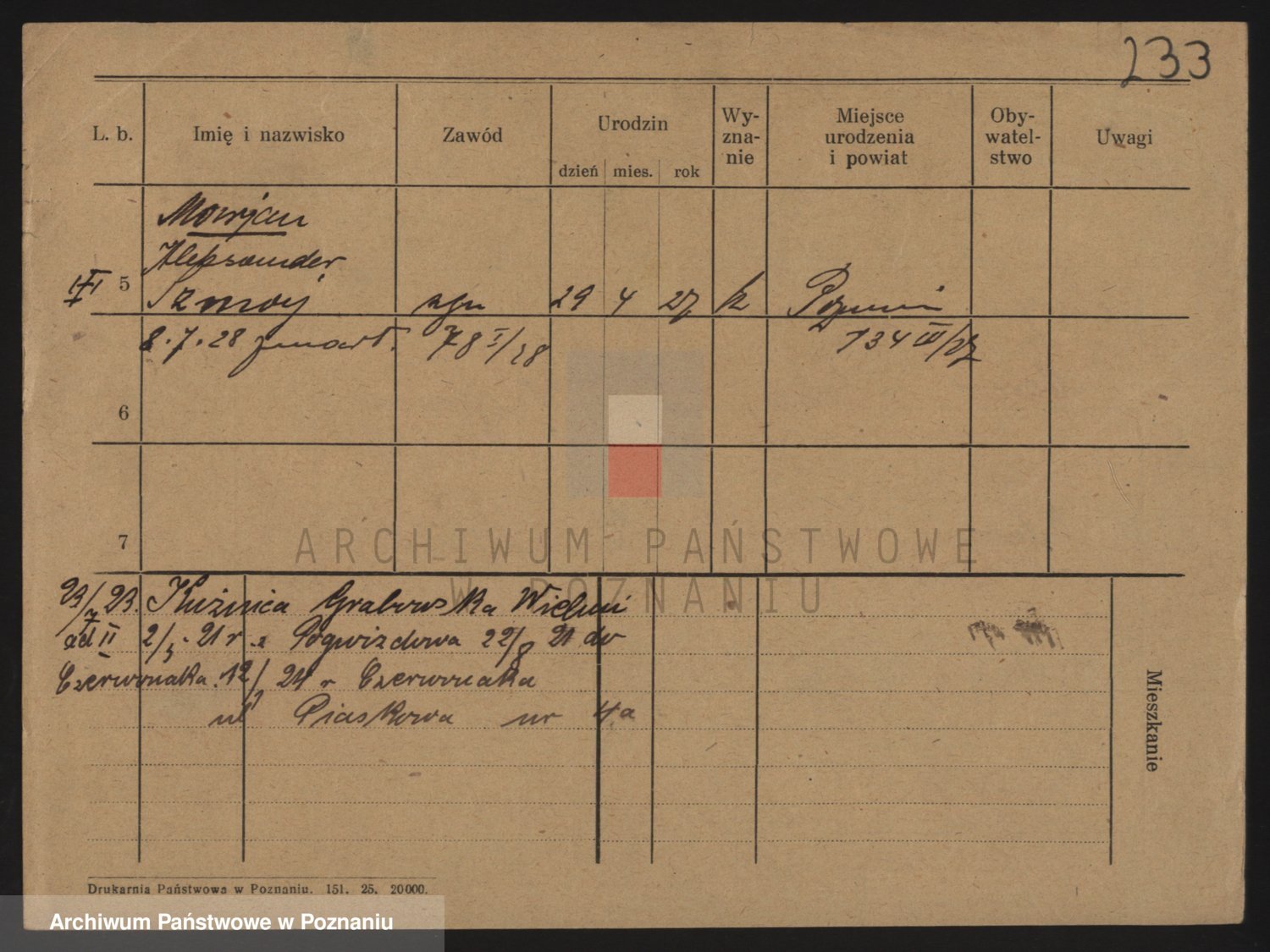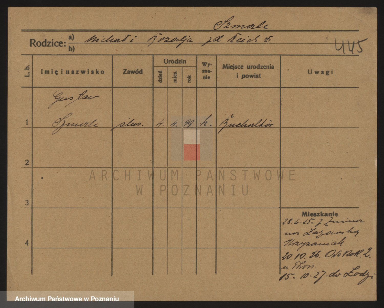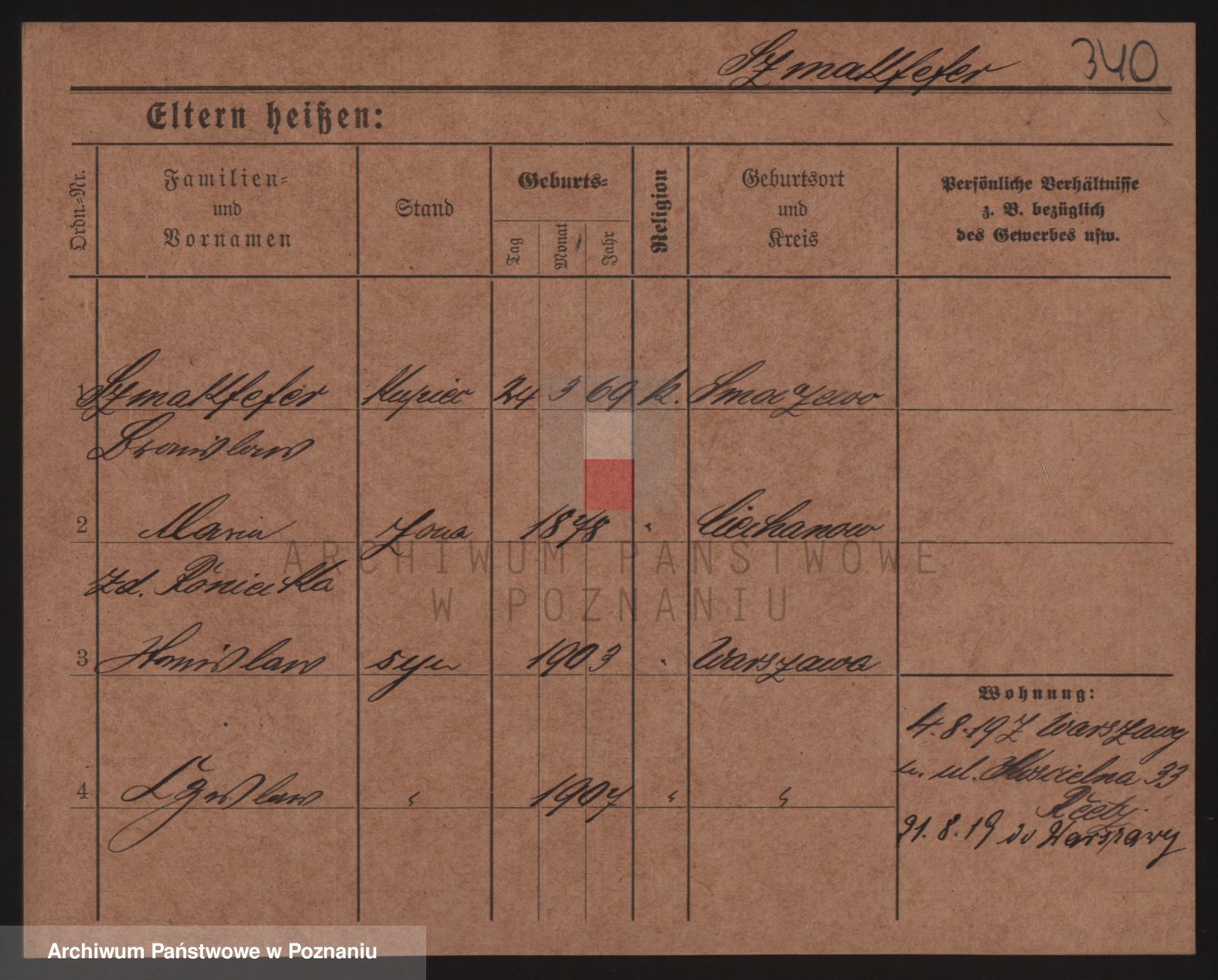 Podgląd karty osobowej dostępny jest po kliknięciu na nazwisko lub ikonkę karty. Można dokonywać powiększenia (ikony na górze) lub przechodzić między kolejnymi skanami (strzałki po bokach).
