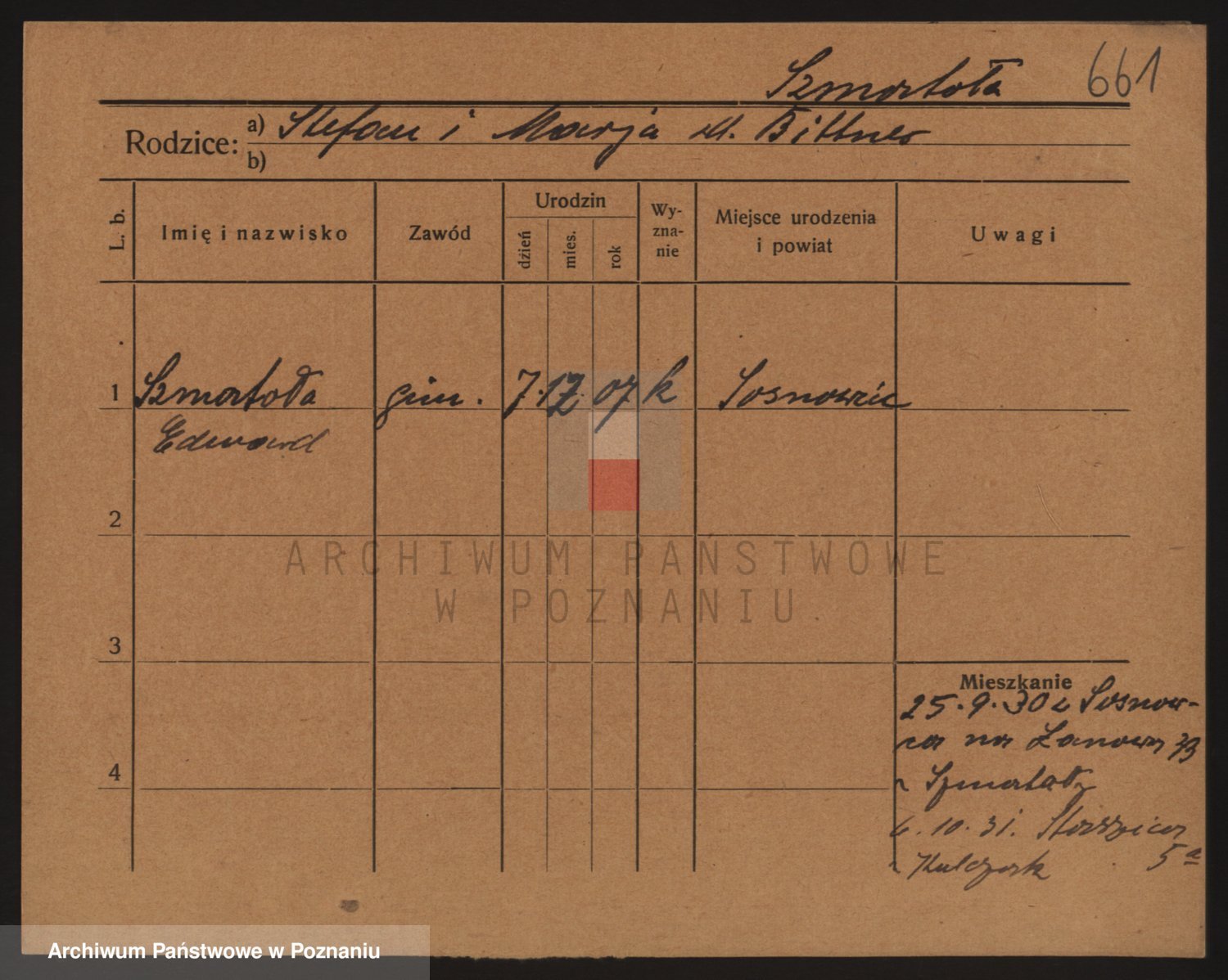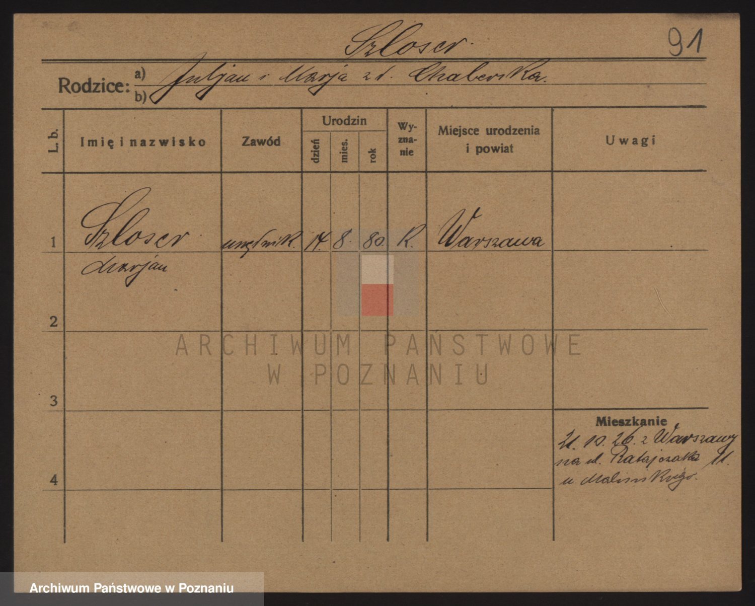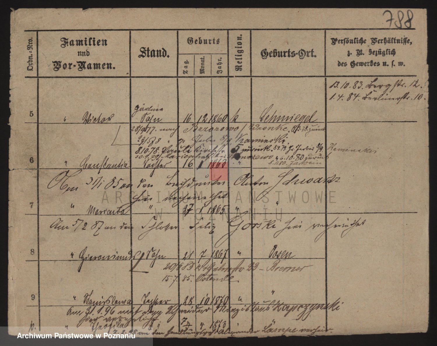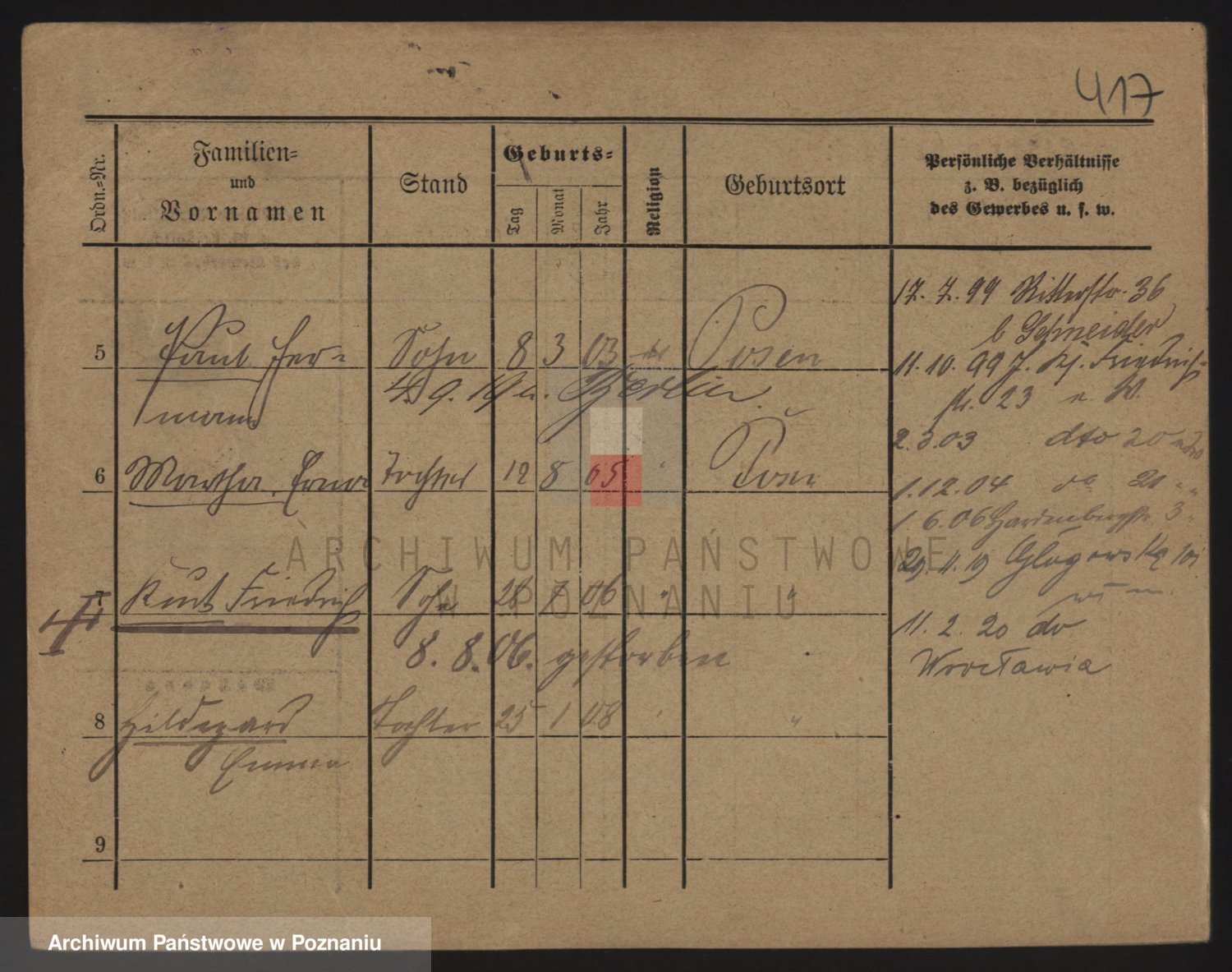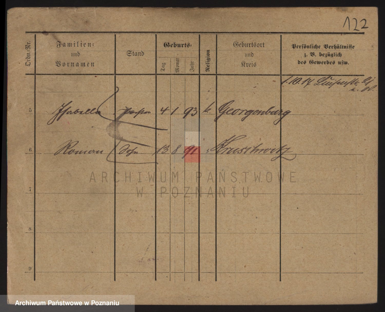 Podgląd karty osobowej dostępny jest po kliknięciu na nazwisko lub ikonkę karty. Można dokonywać powiększenia (ikony na górze) lub przechodzić między kolejnymi skanami (strzałki po bokach).