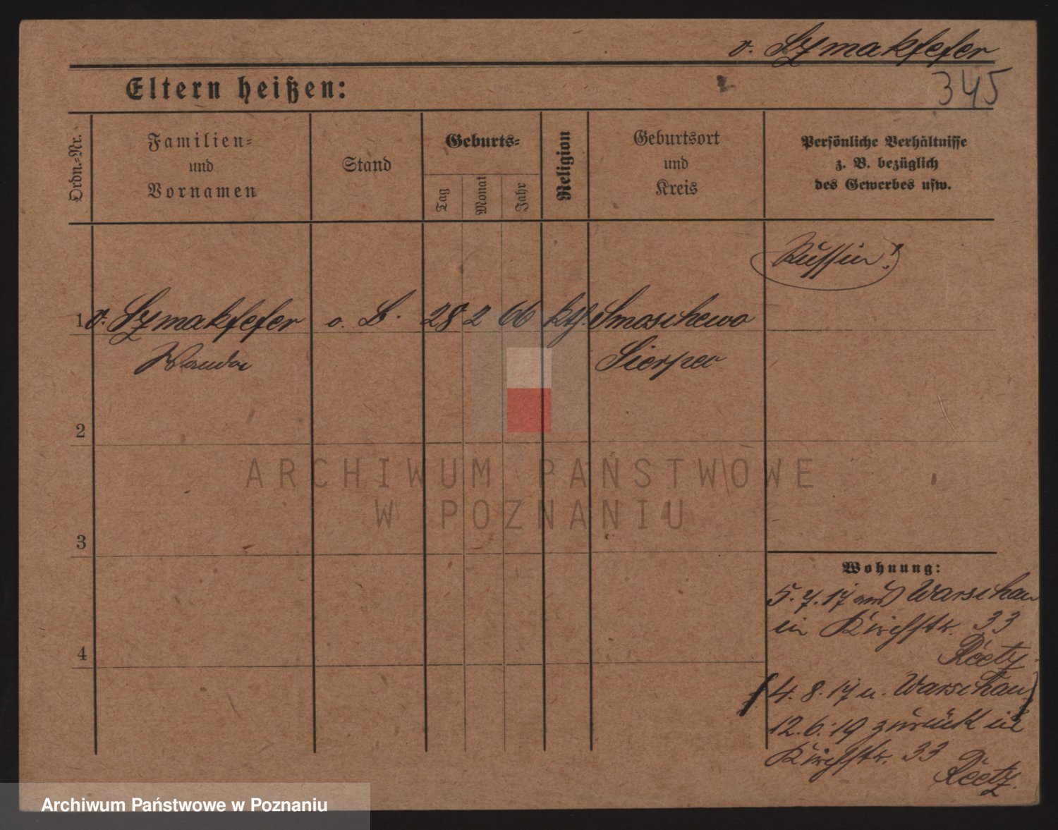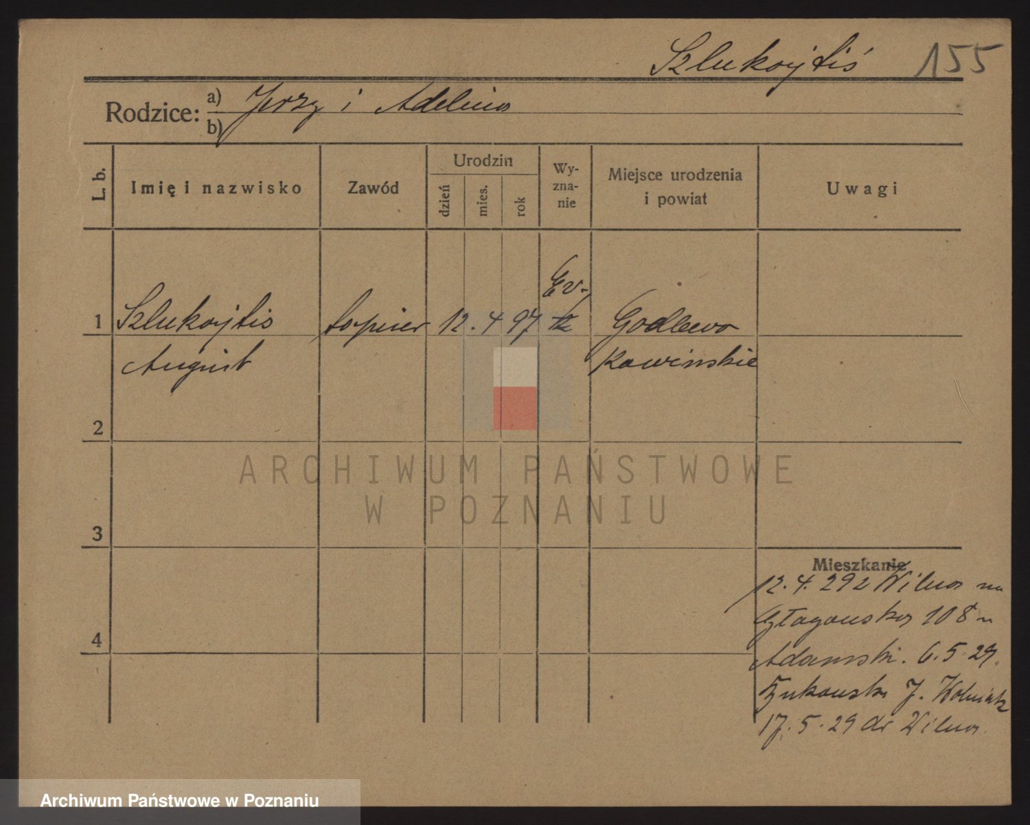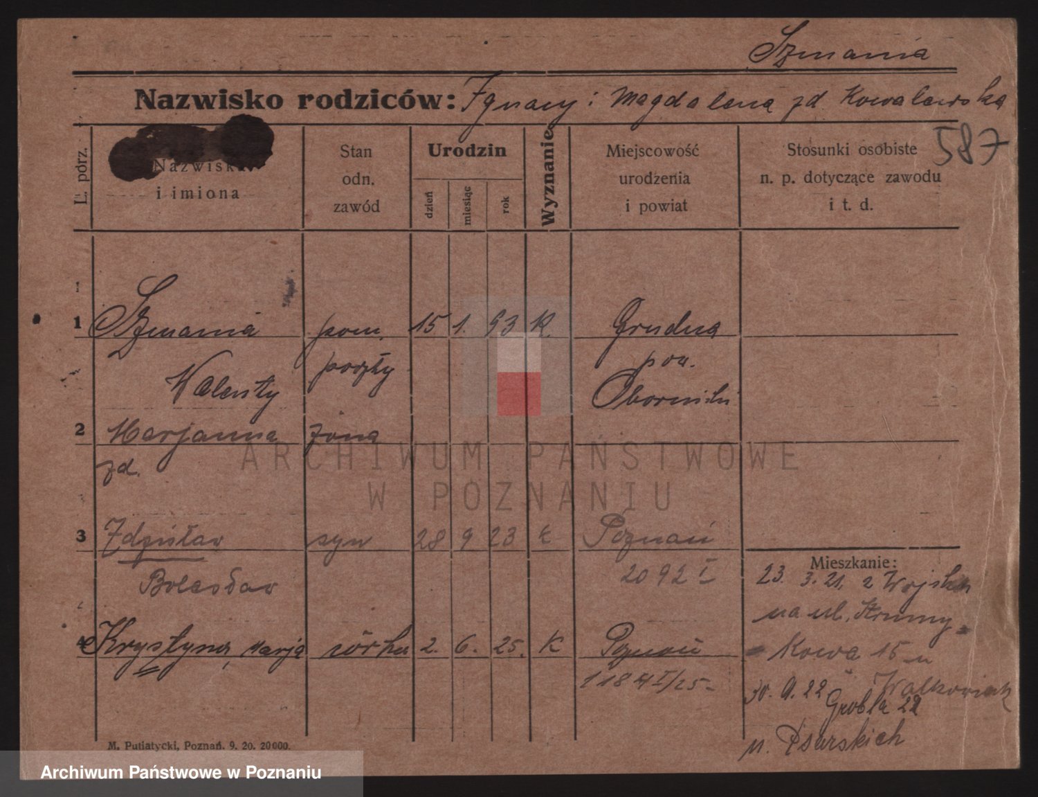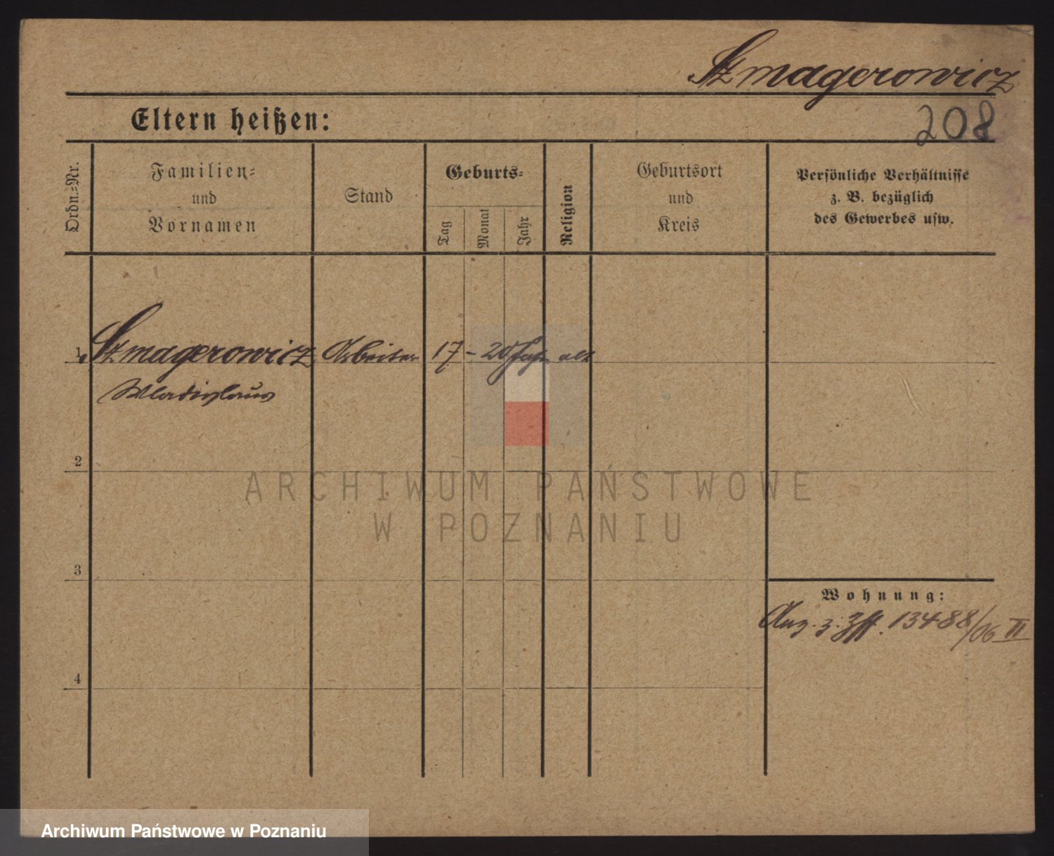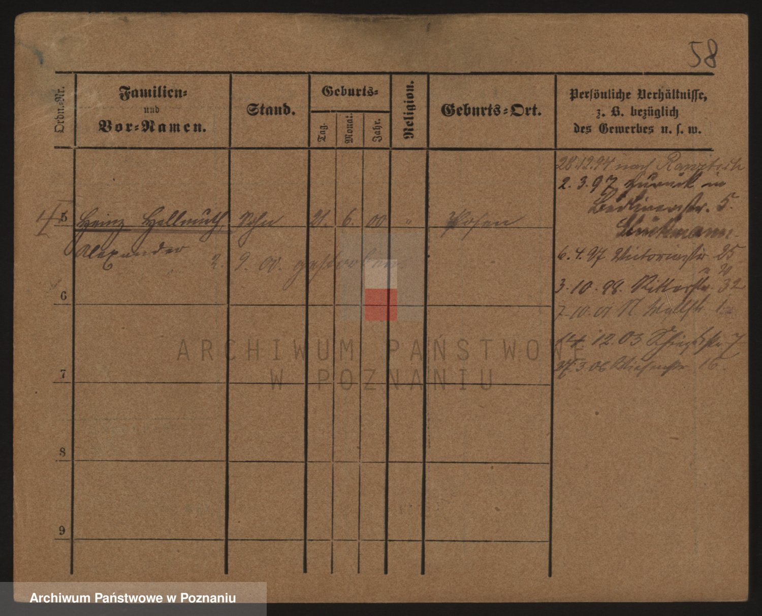 Podgląd karty osobowej dostępny jest po kliknięciu na nazwisko lub ikonkę karty. Można dokonywać powiększenia (ikony na górze) lub przechodzić między kolejnymi skanami (strzałki po bokach).
