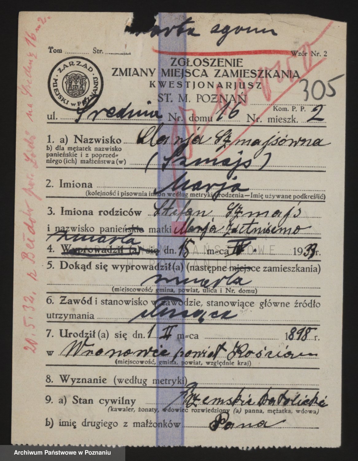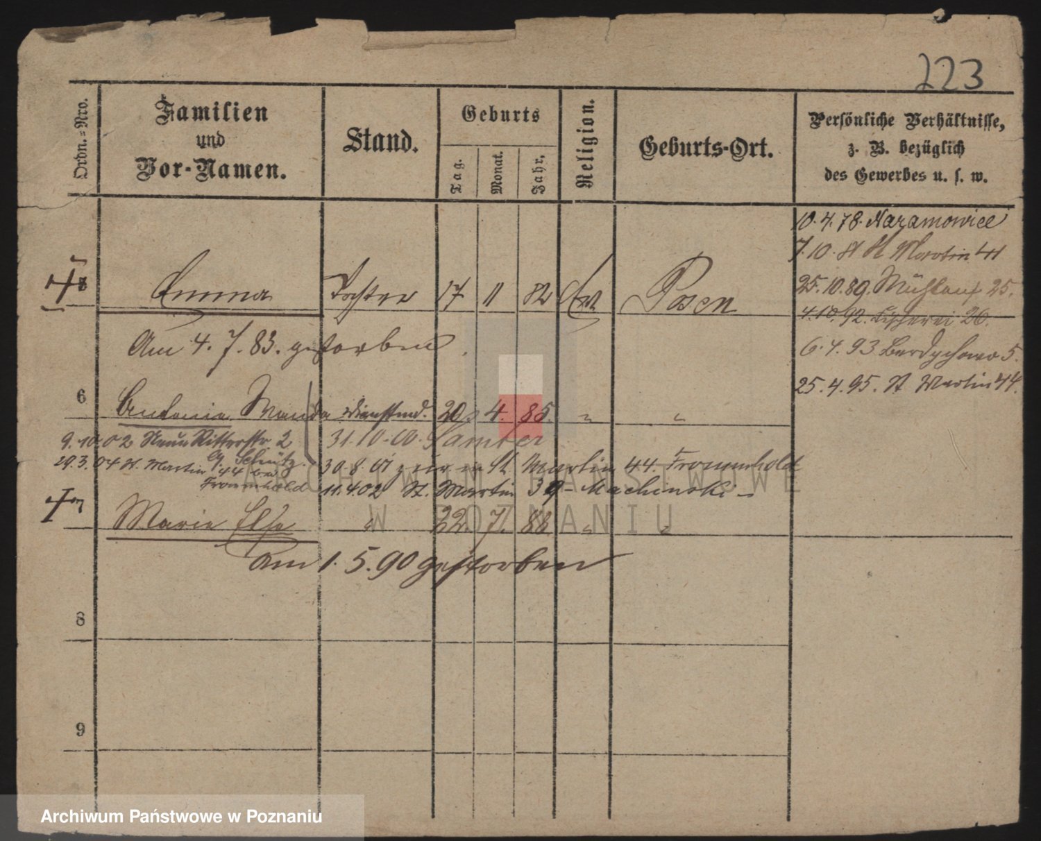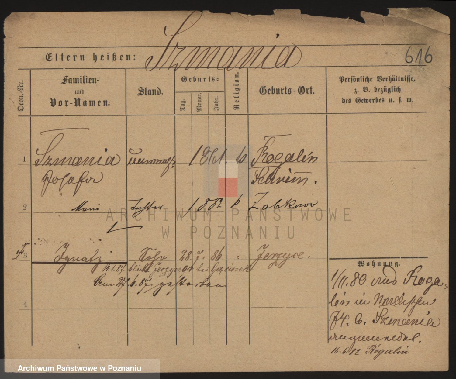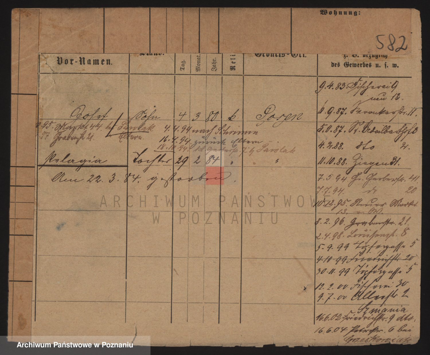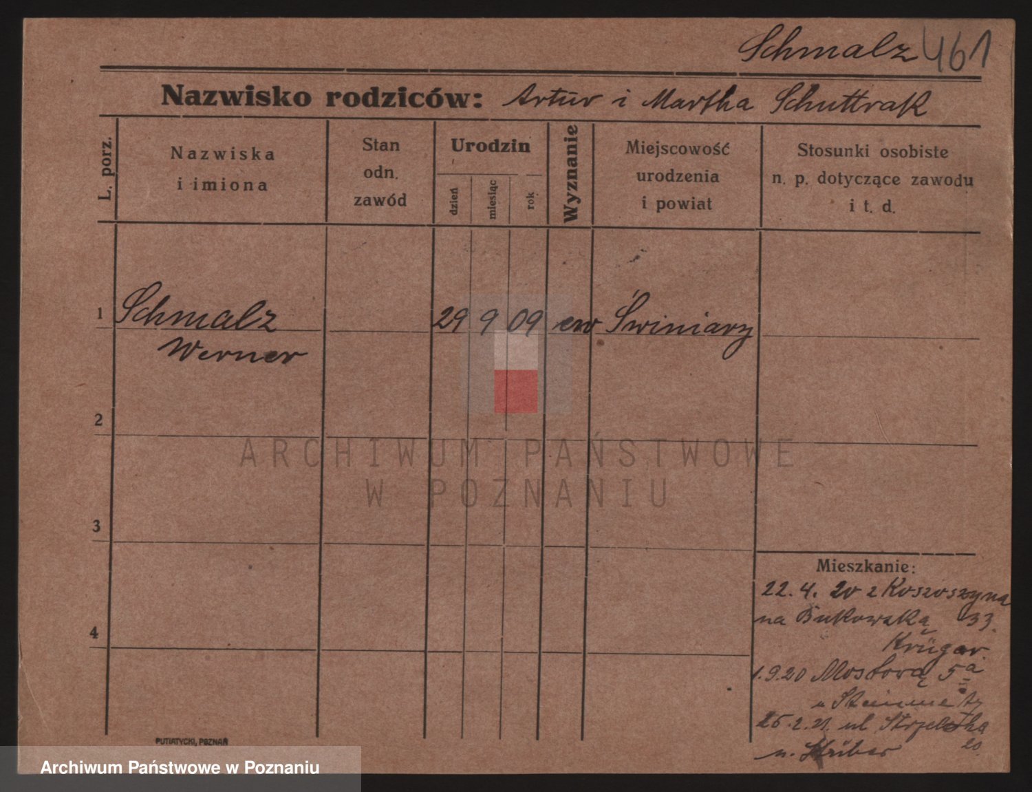 Podgląd karty osobowej dostępny jest po kliknięciu na nazwisko lub ikonkę karty. Można dokonywać powiększenia (ikony na górze) lub przechodzić między kolejnymi skanami (strzałki po bokach).