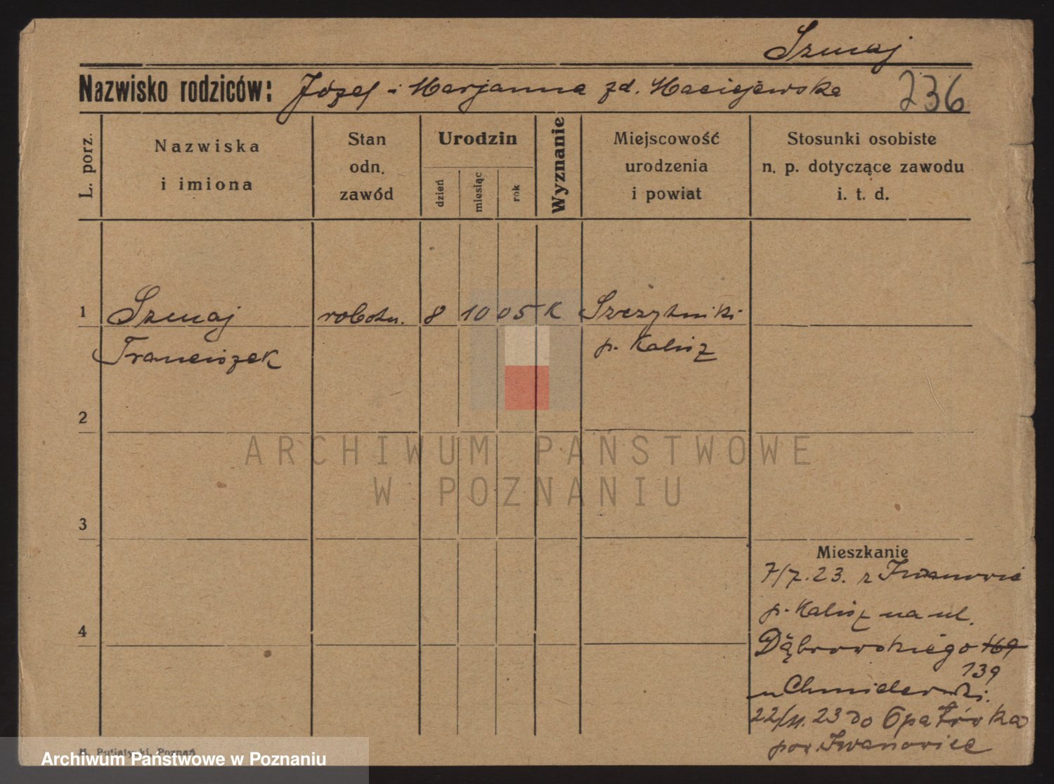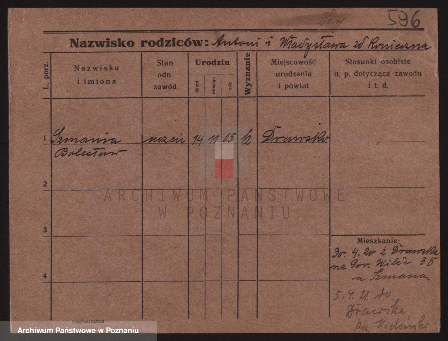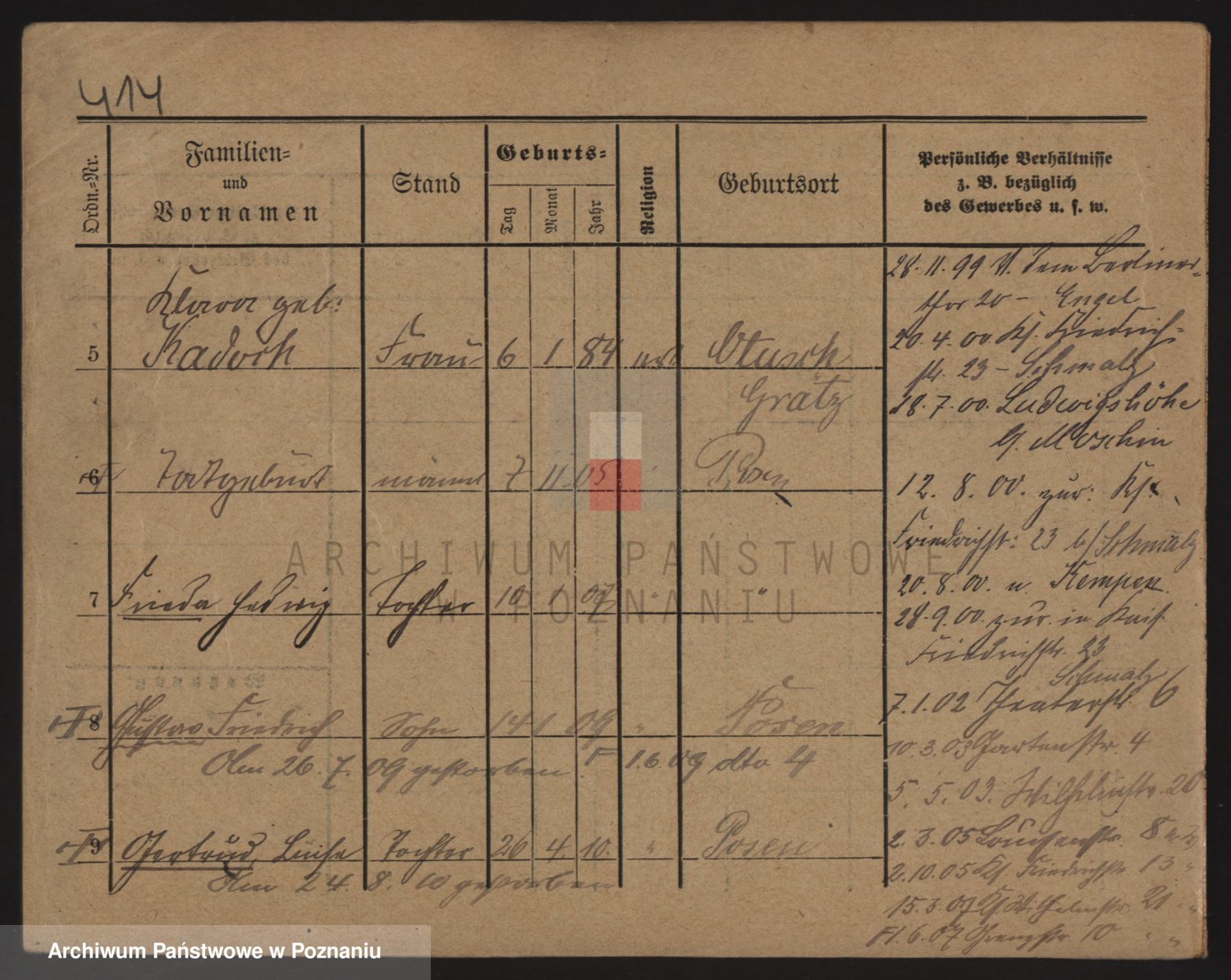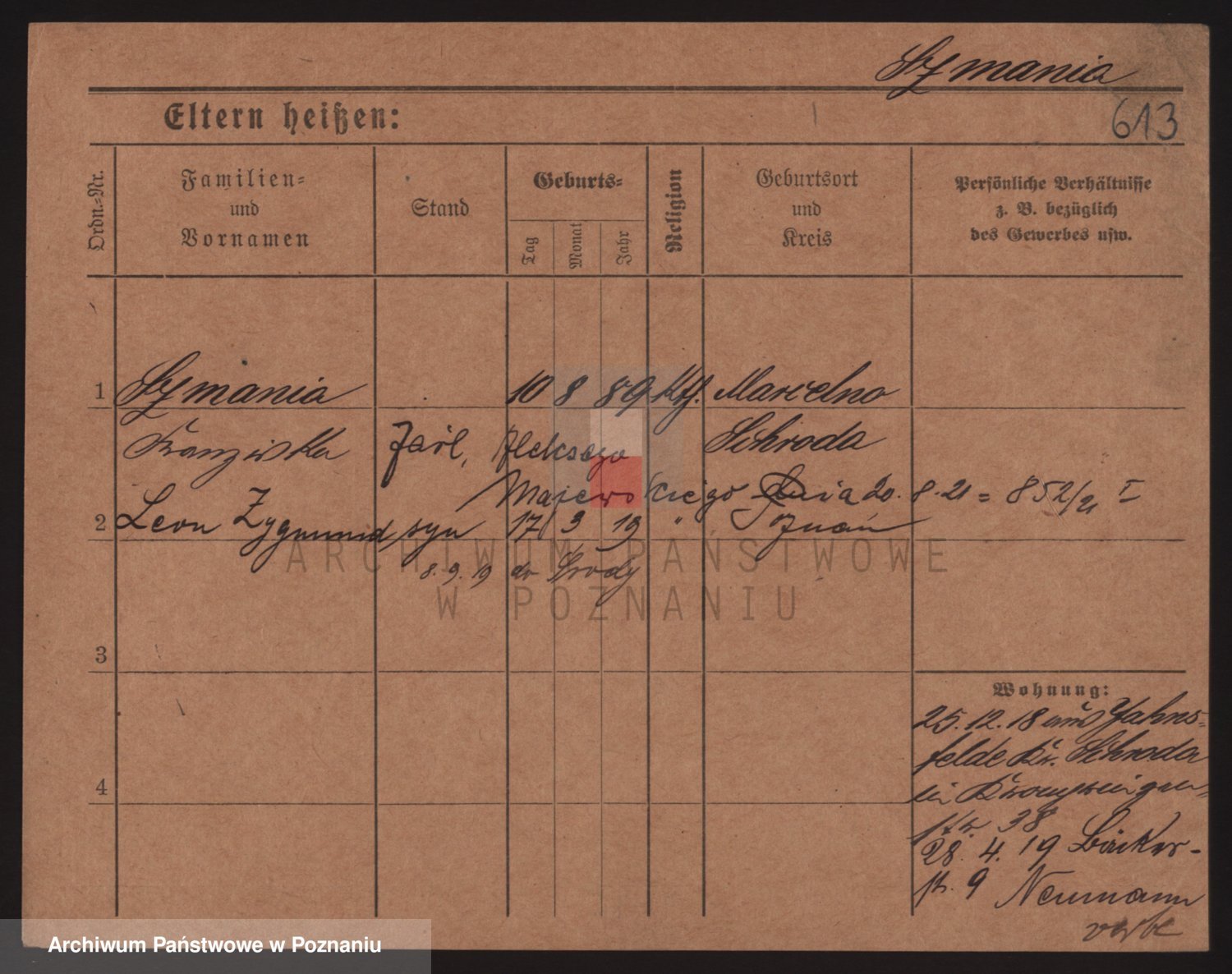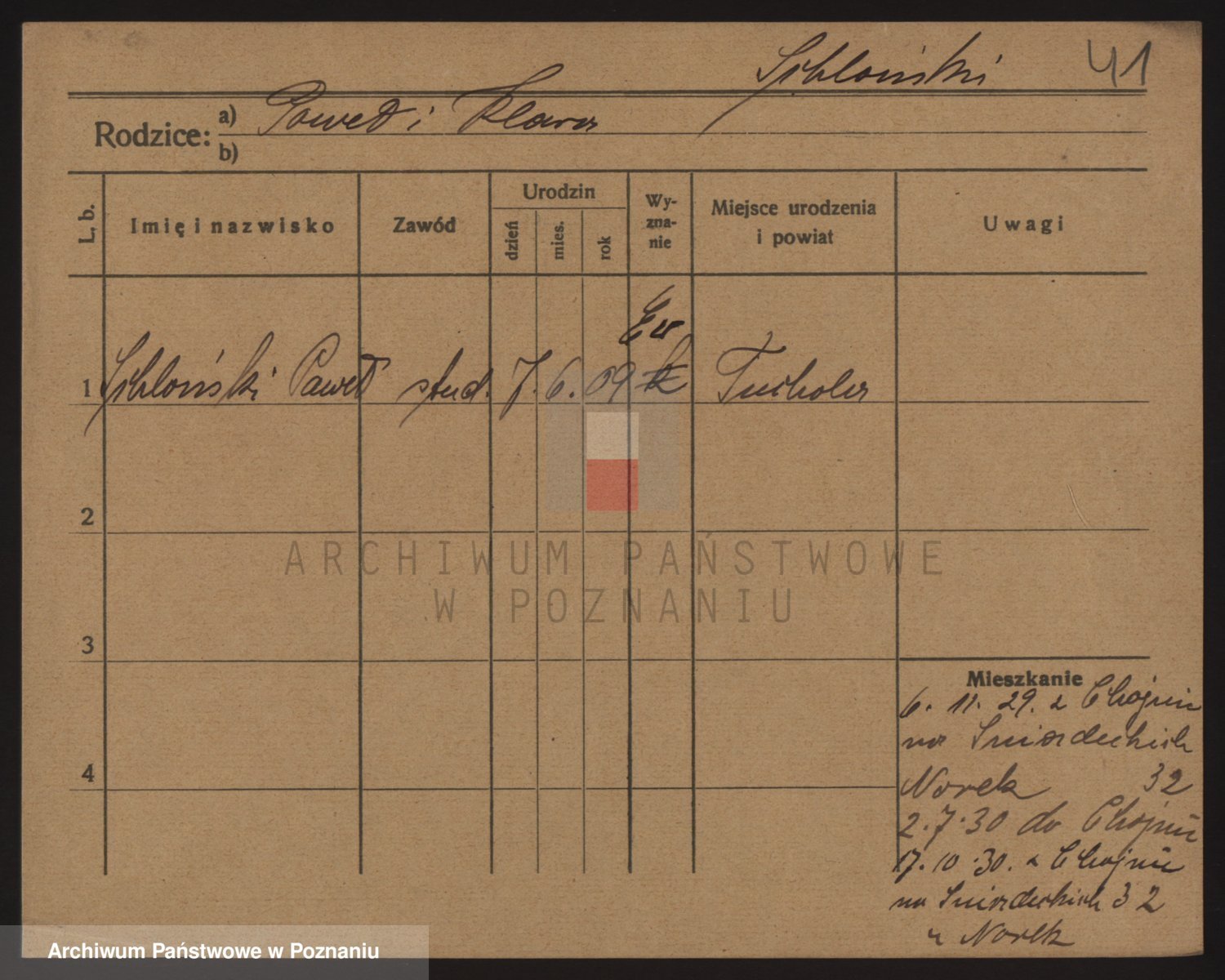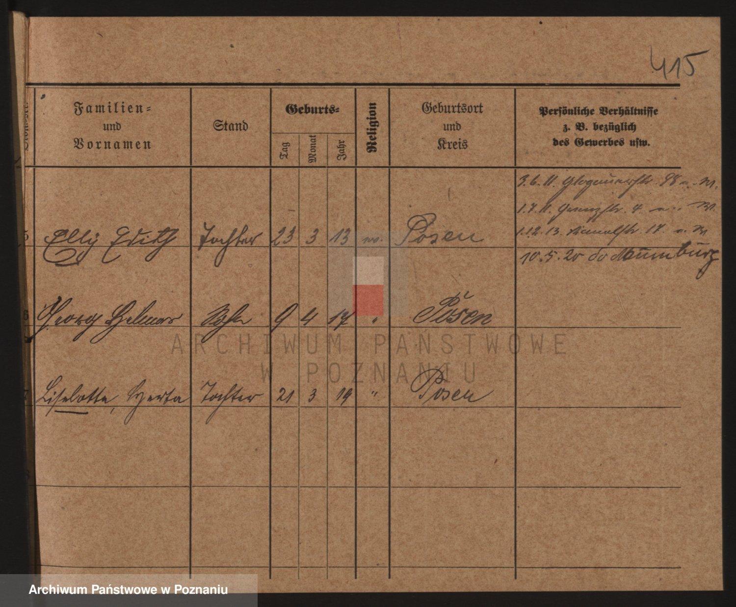 Podgląd karty osobowej dostępny jest po kliknięciu na nazwisko lub ikonkę karty. Można dokonywać powiększenia (ikony na górze) lub przechodzić między kolejnymi skanami (strzałki po bokach).