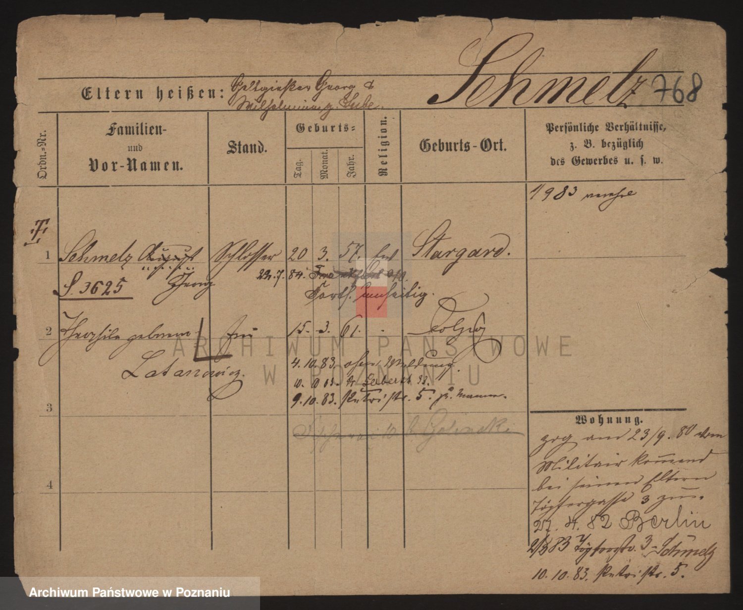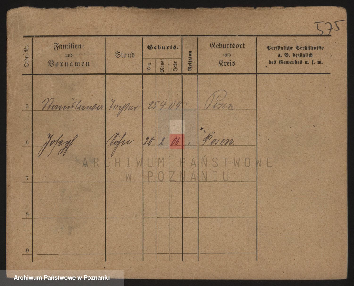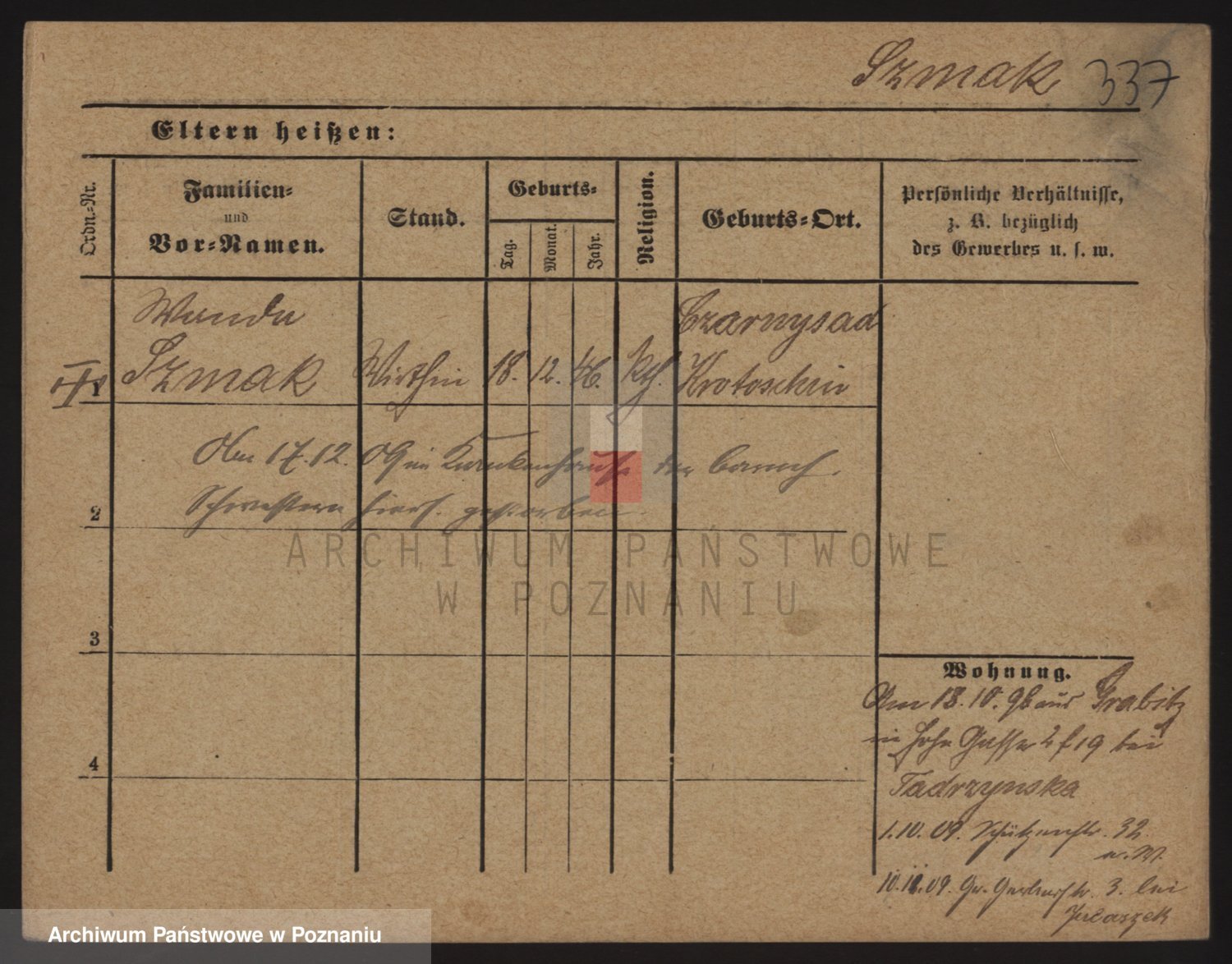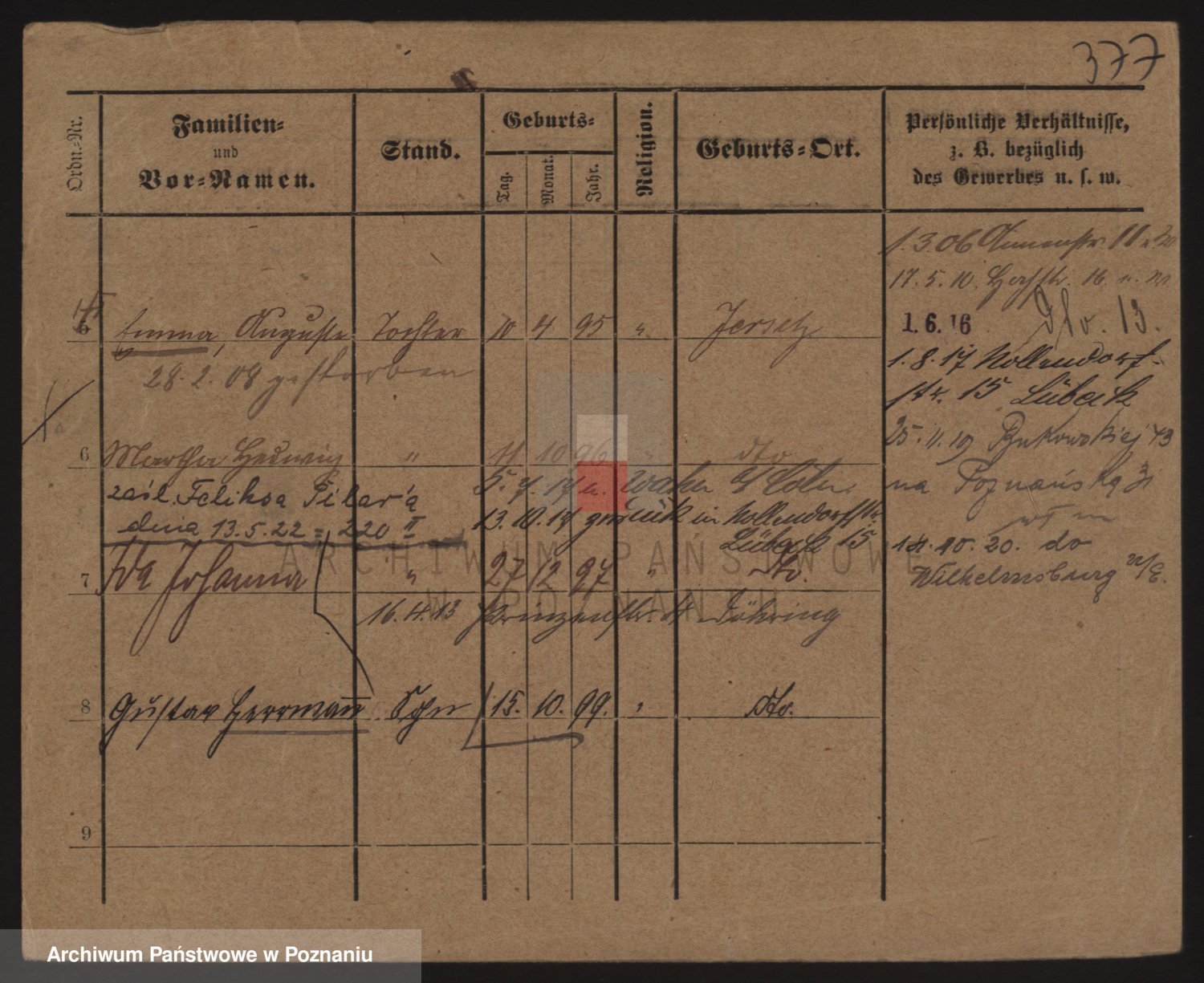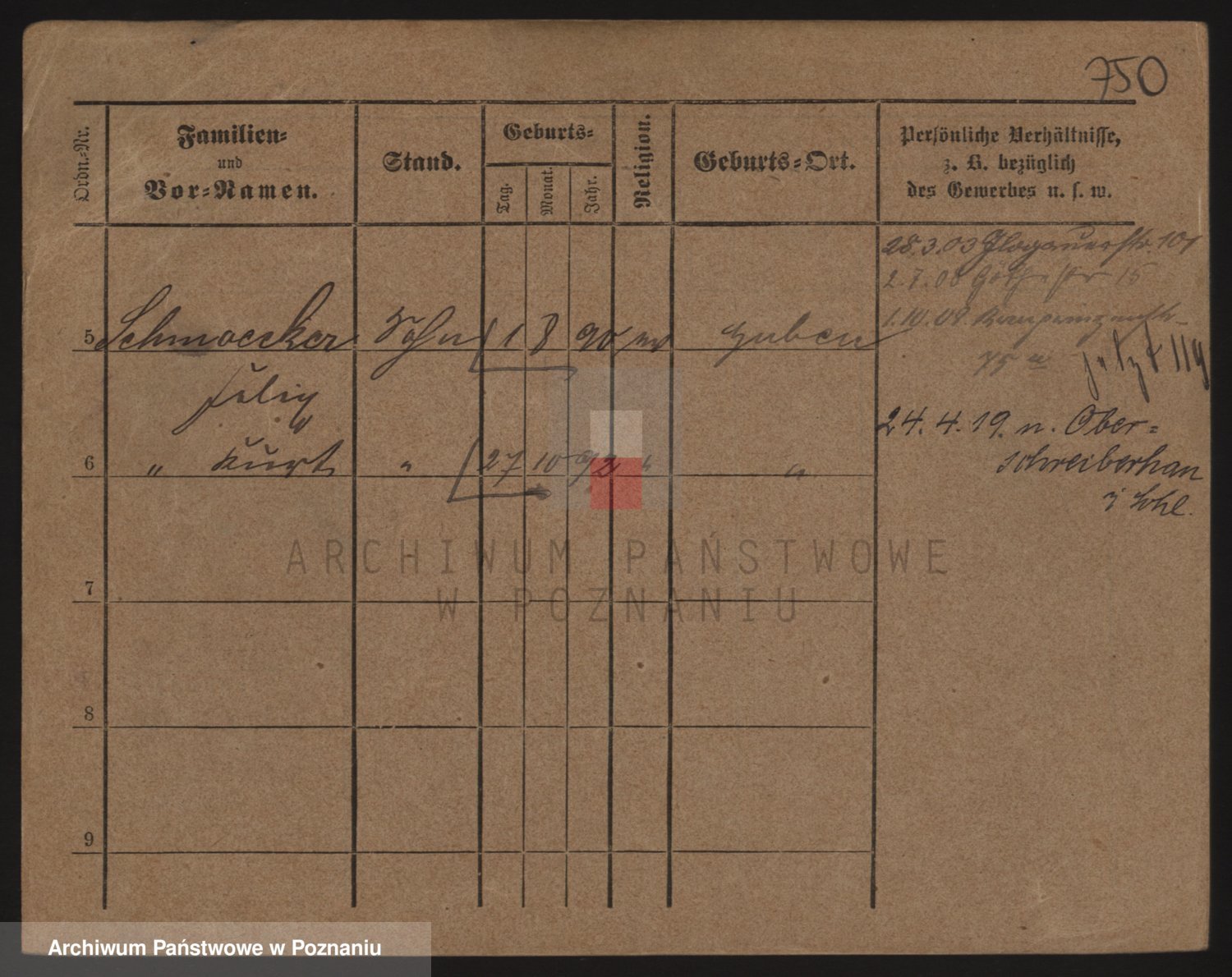 Podgląd karty osobowej dostępny jest po kliknięciu na nazwisko lub ikonkę karty. Można dokonywać powiększenia (ikony na górze) lub przechodzić między kolejnymi skanami (strzałki po bokach).