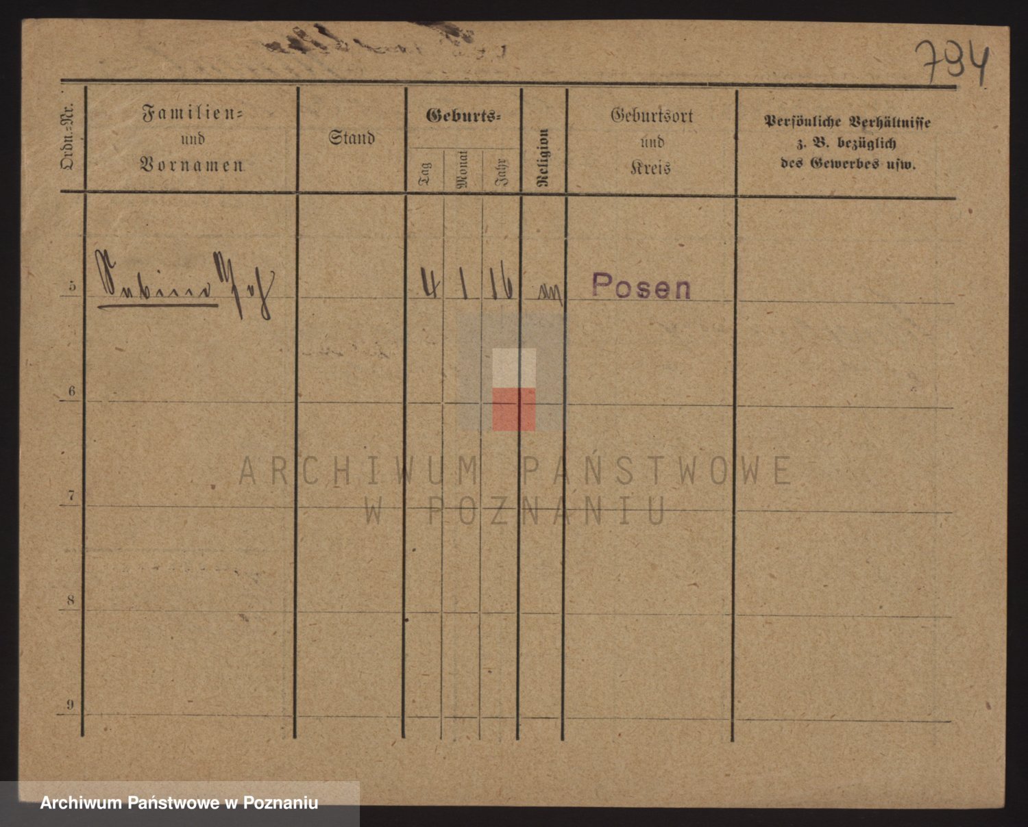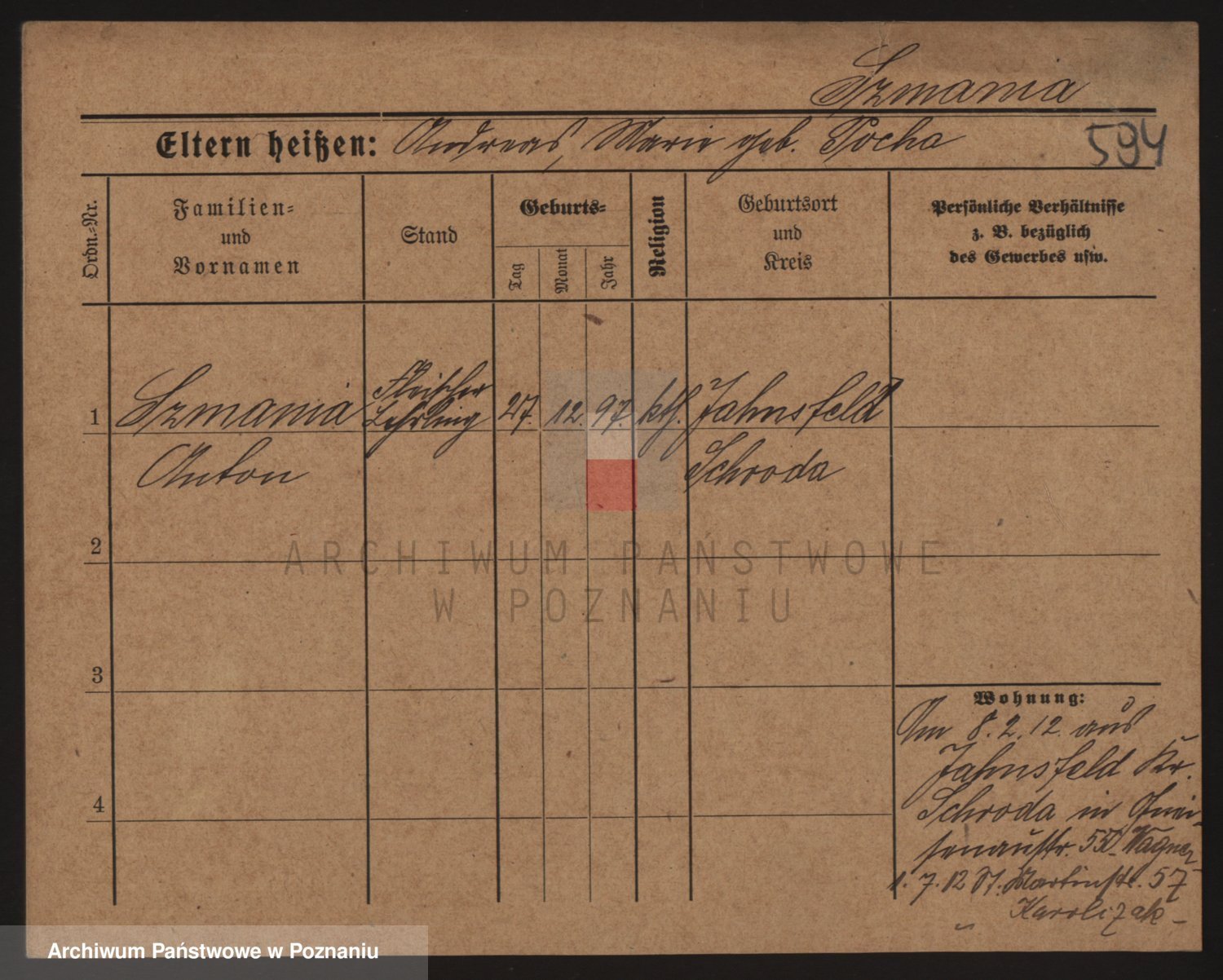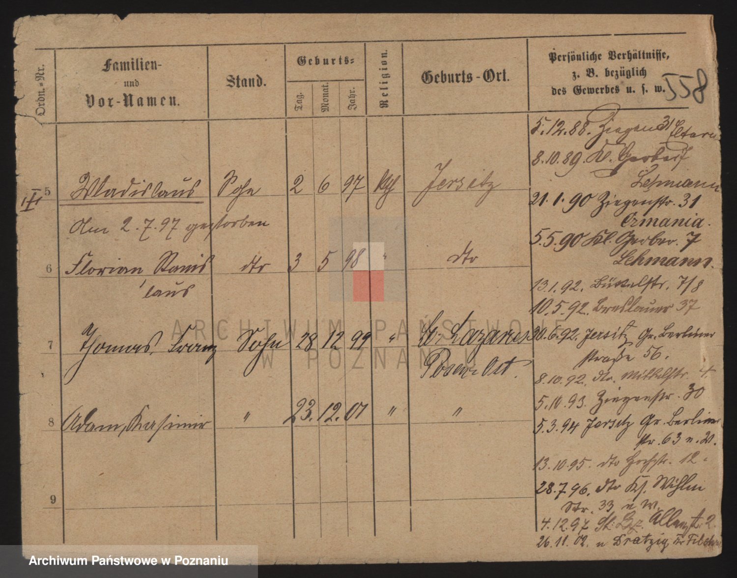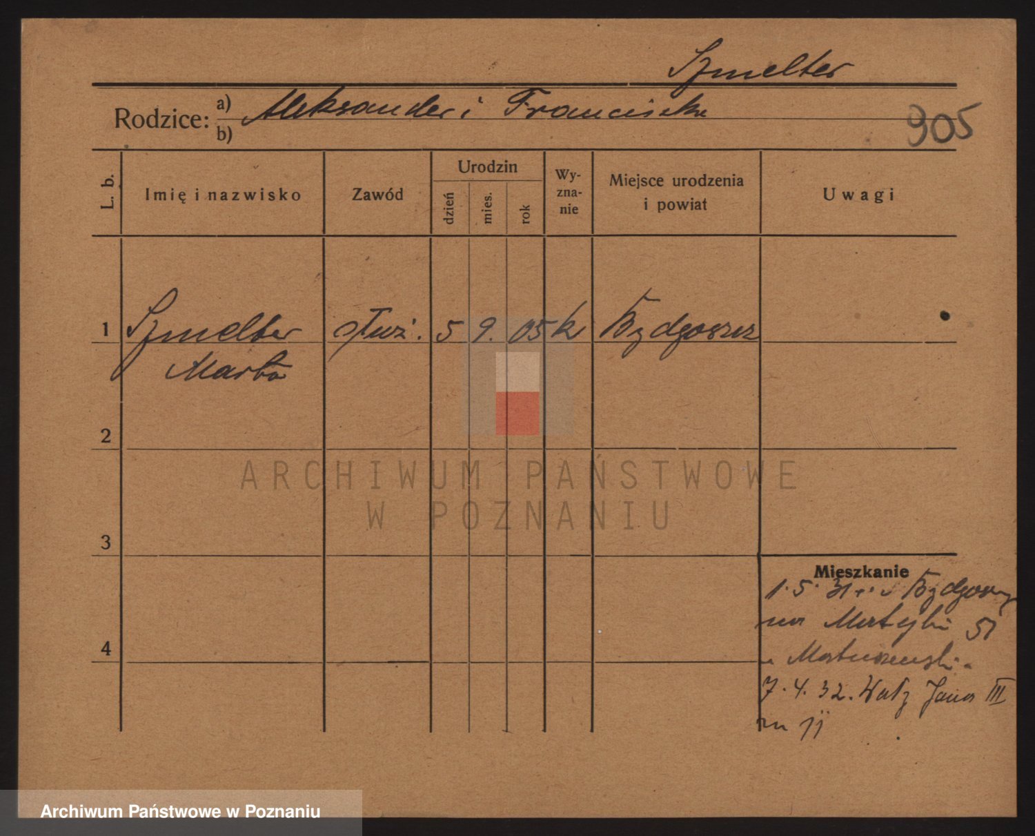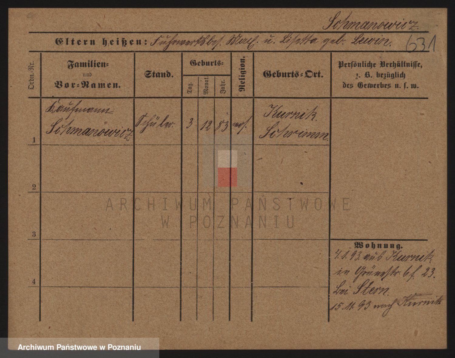 Podgląd karty osobowej dostępny jest po kliknięciu na nazwisko lub ikonkę karty. Można dokonywać powiększenia (ikony na górze) lub przechodzić między kolejnymi skanami (strzałki po bokach).