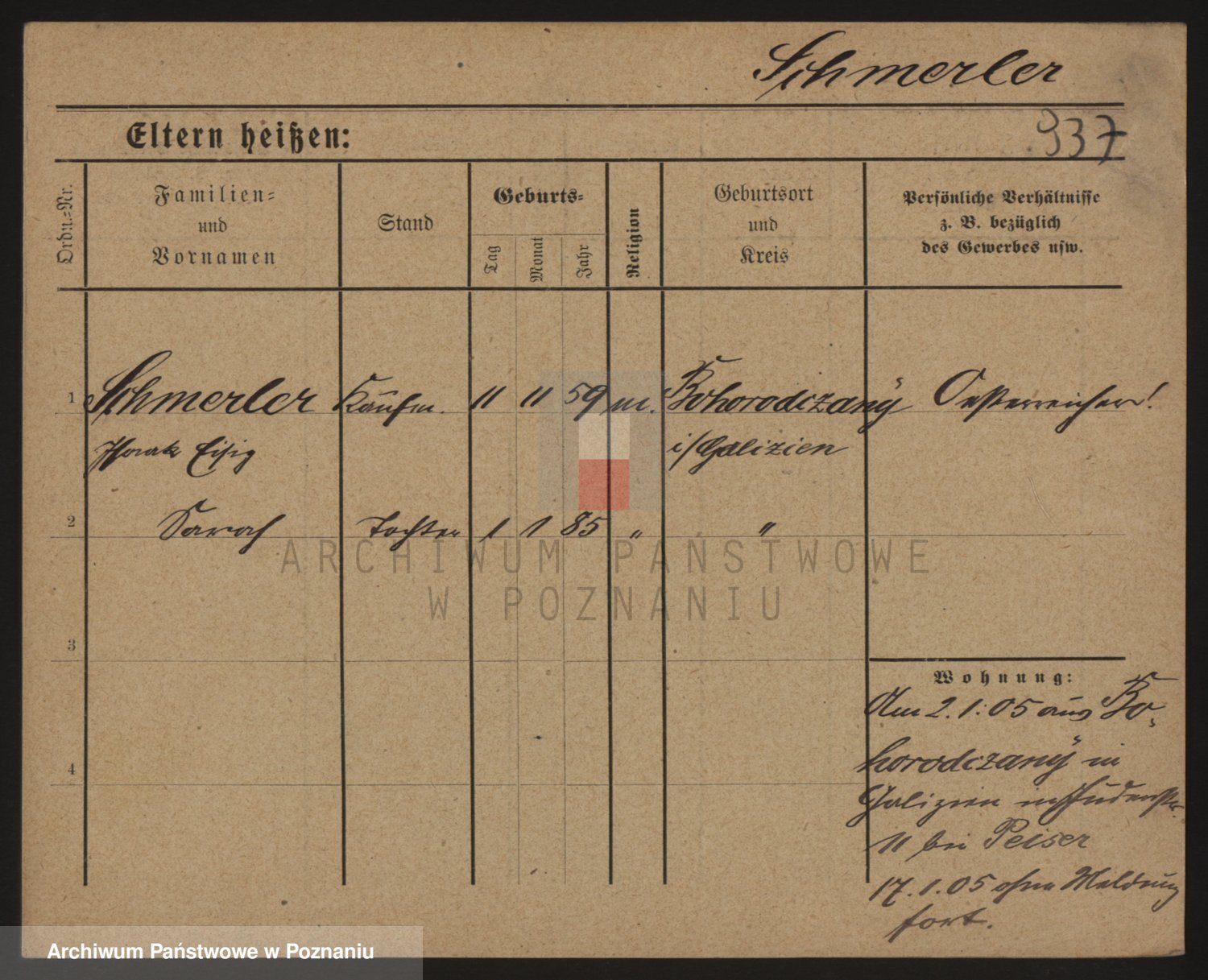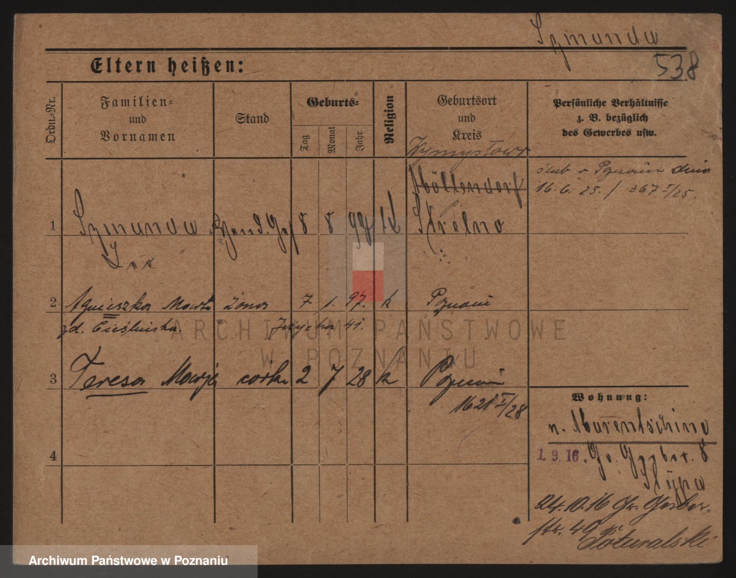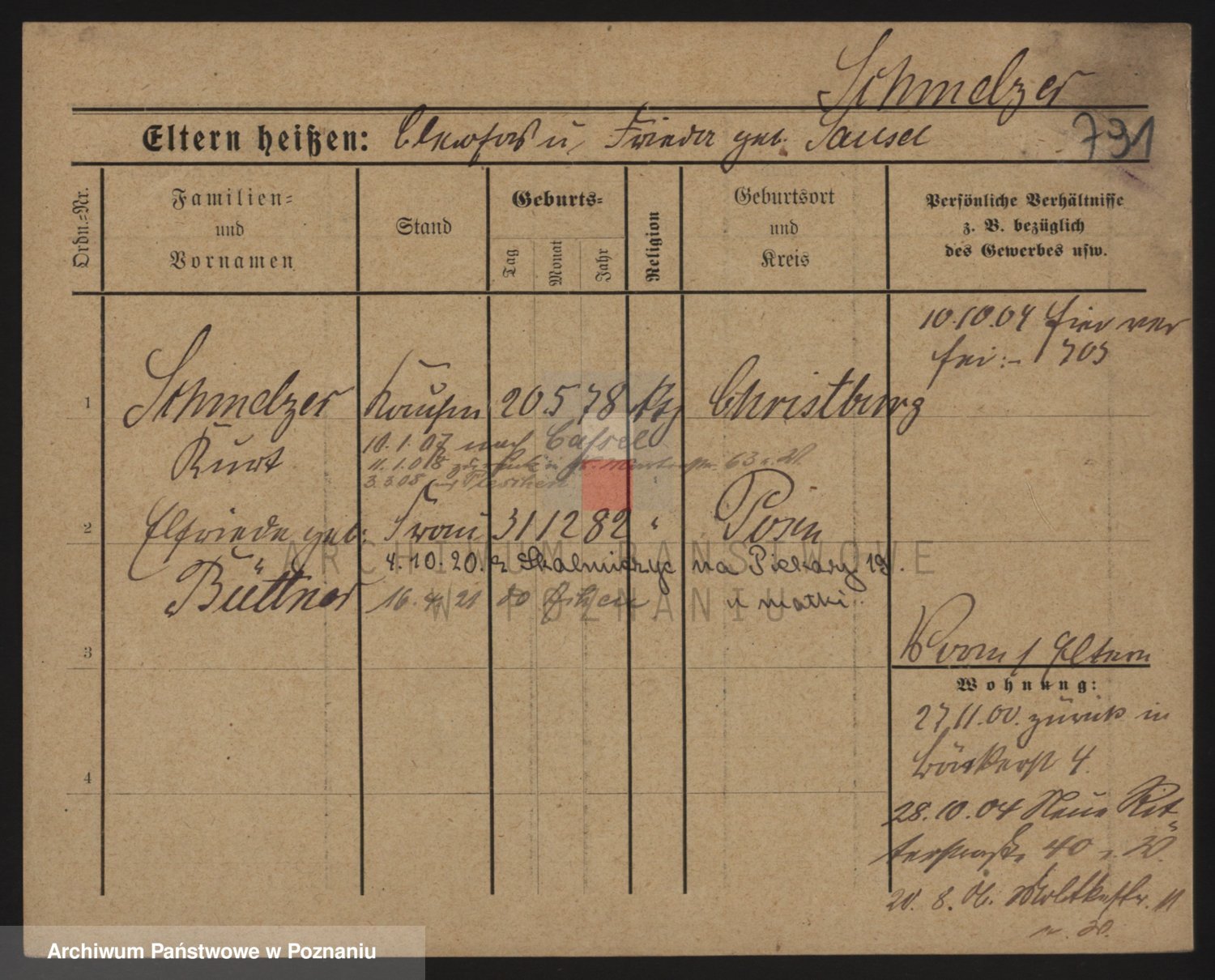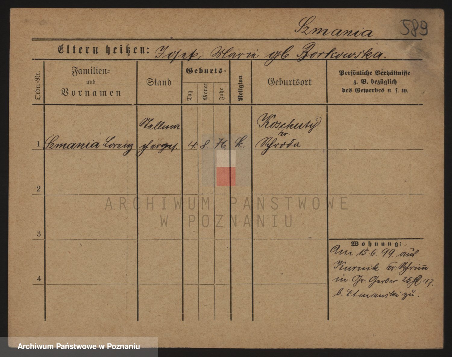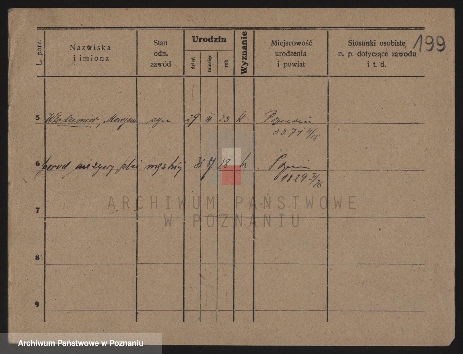 Podgląd karty osobowej dostępny jest po kliknięciu na nazwisko lub ikonkę karty. Można dokonywać powiększenia (ikony na górze) lub przechodzić między kolejnymi skanami (strzałki po bokach).