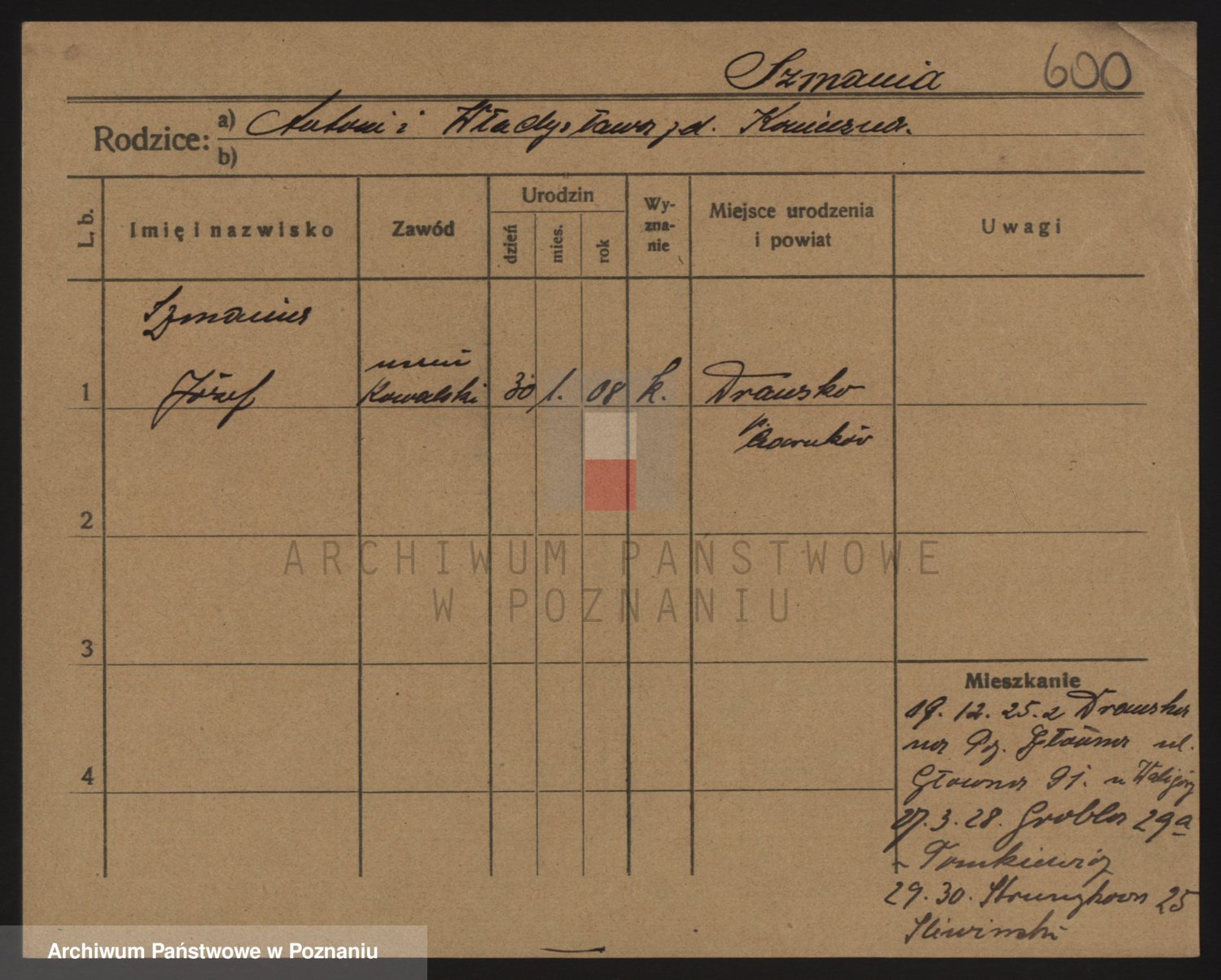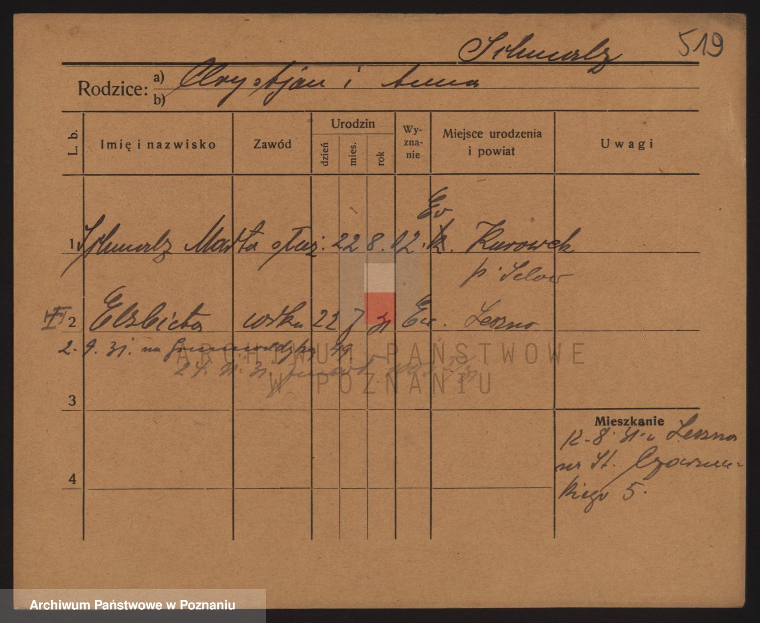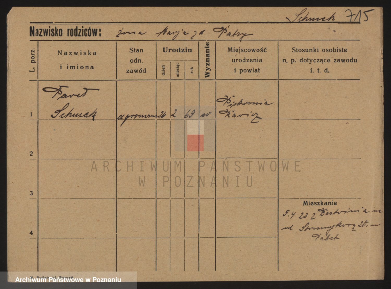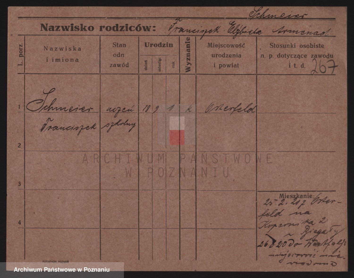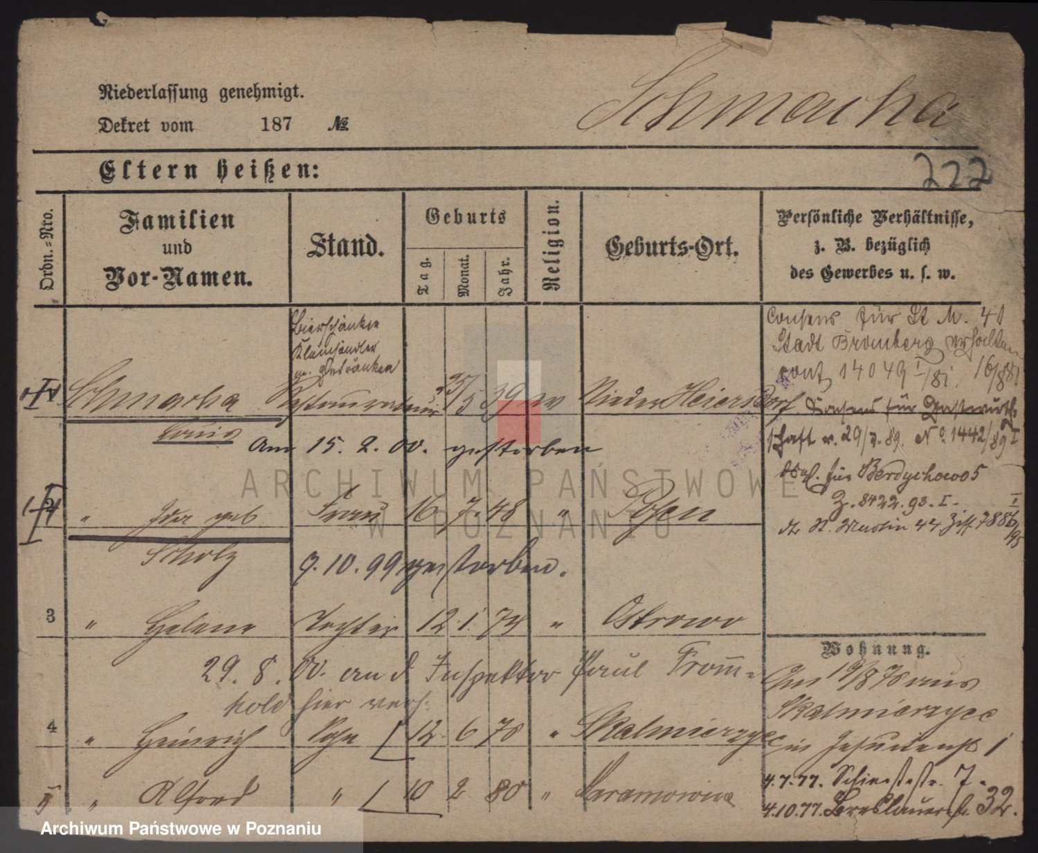 Podgląd karty osobowej dostępny jest po kliknięciu na nazwisko lub ikonkę karty. Można dokonywać powiększenia (ikony na górze) lub przechodzić między kolejnymi skanami (strzałki po bokach).