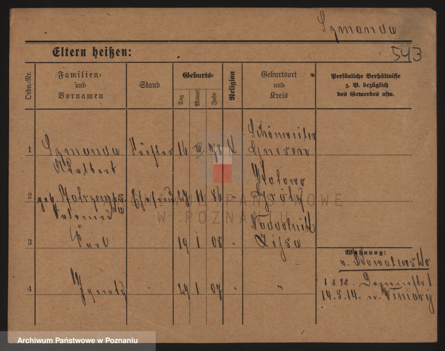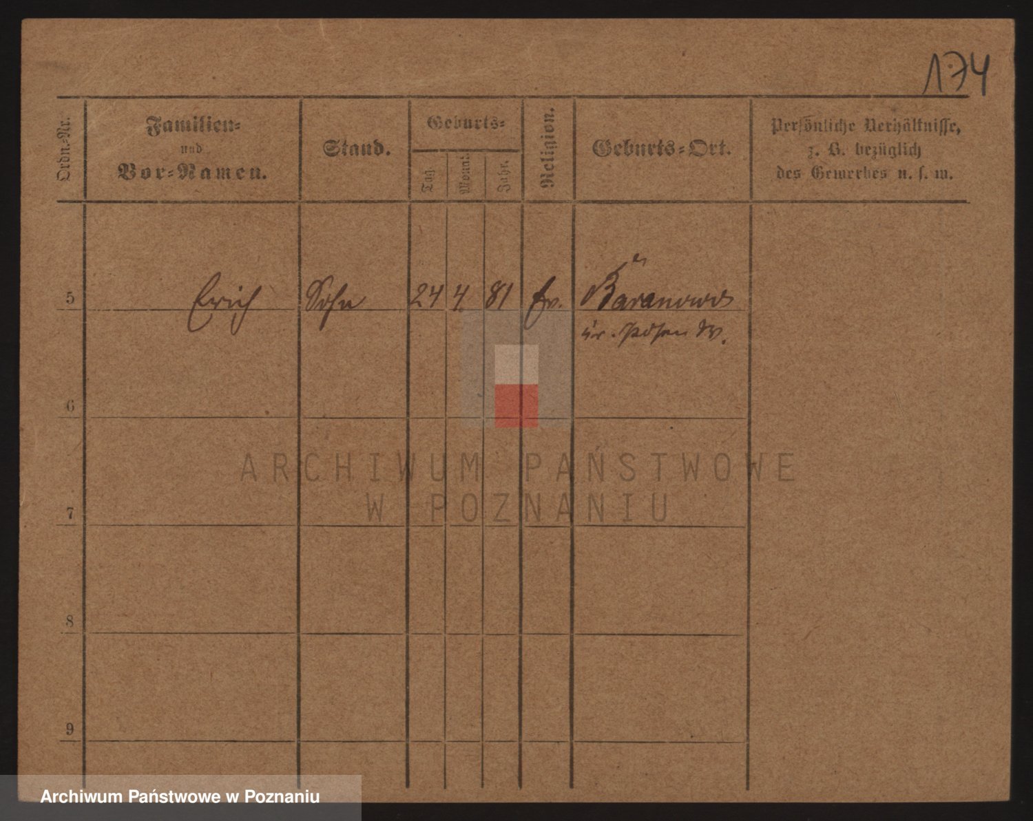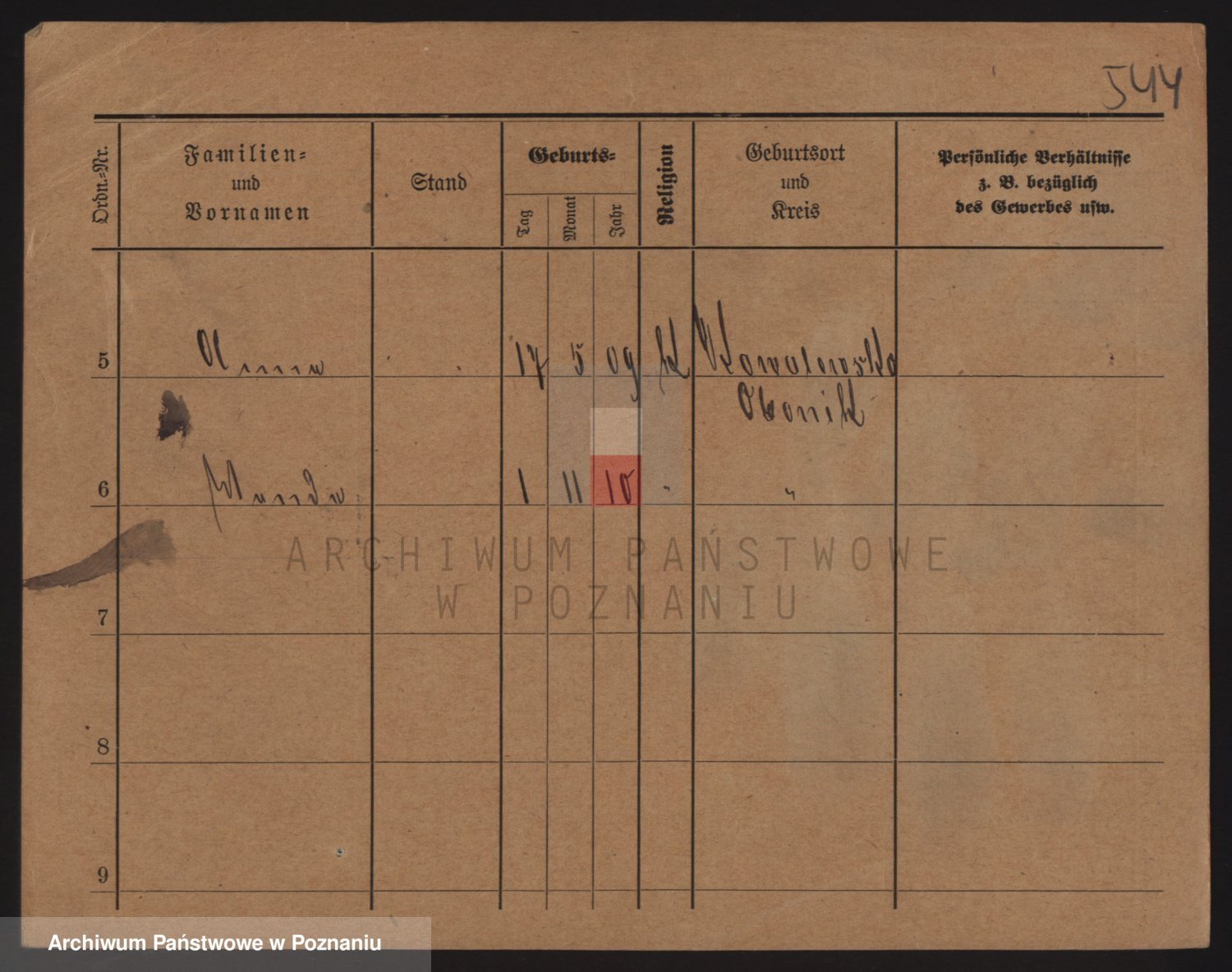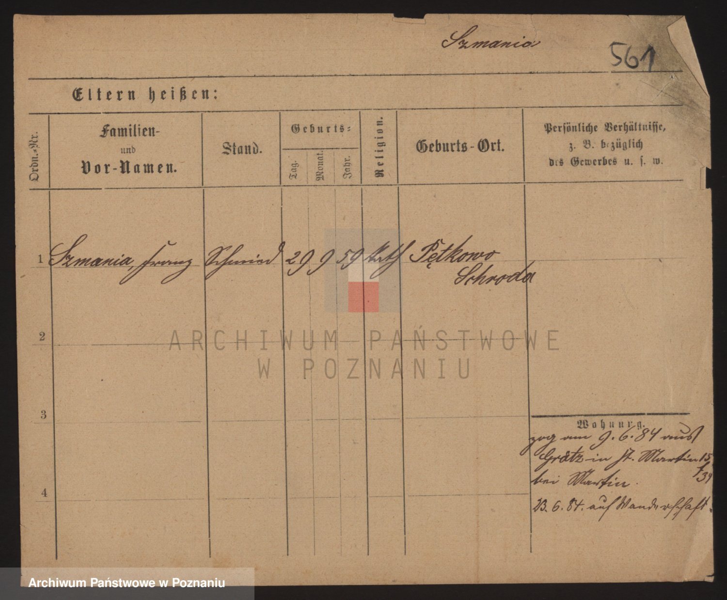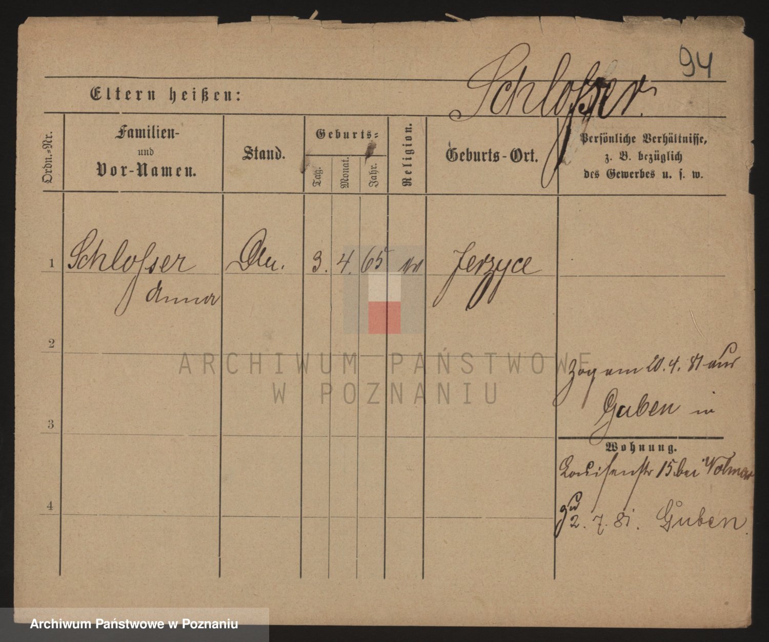 Podgląd karty osobowej dostępny jest po kliknięciu na nazwisko lub ikonkę karty. Można dokonywać powiększenia (ikony na górze) lub przechodzić między kolejnymi skanami (strzałki po bokach).