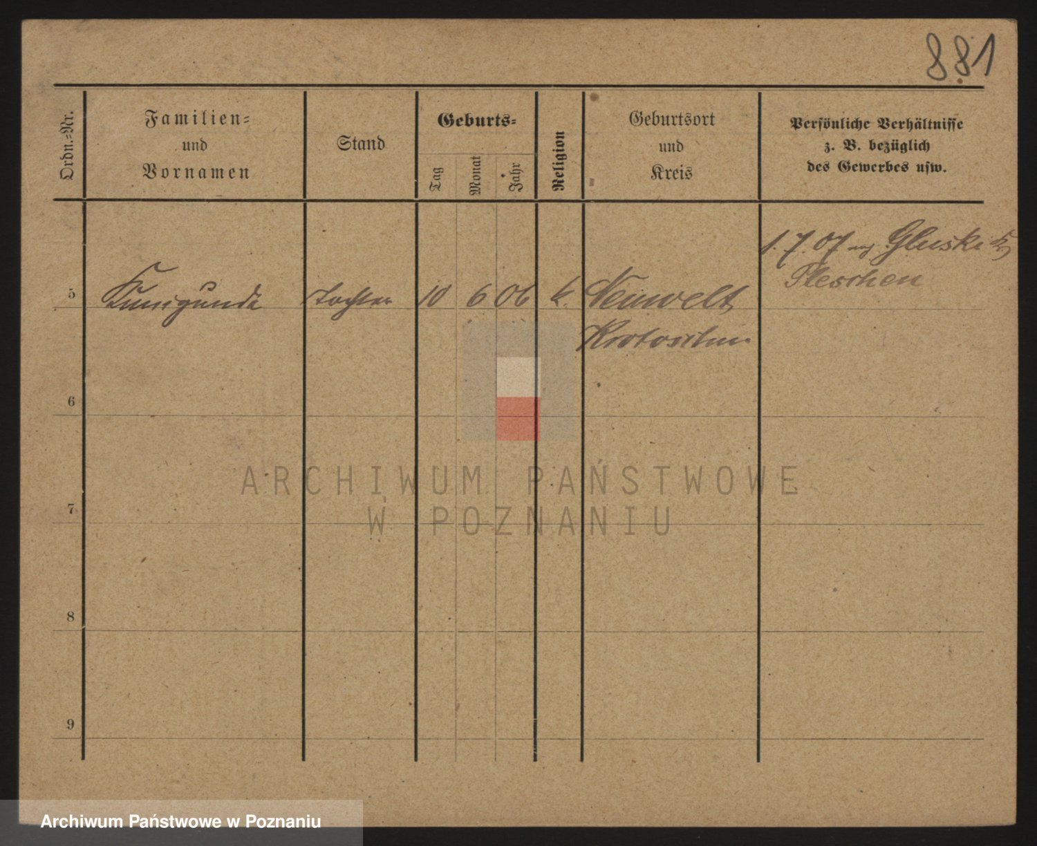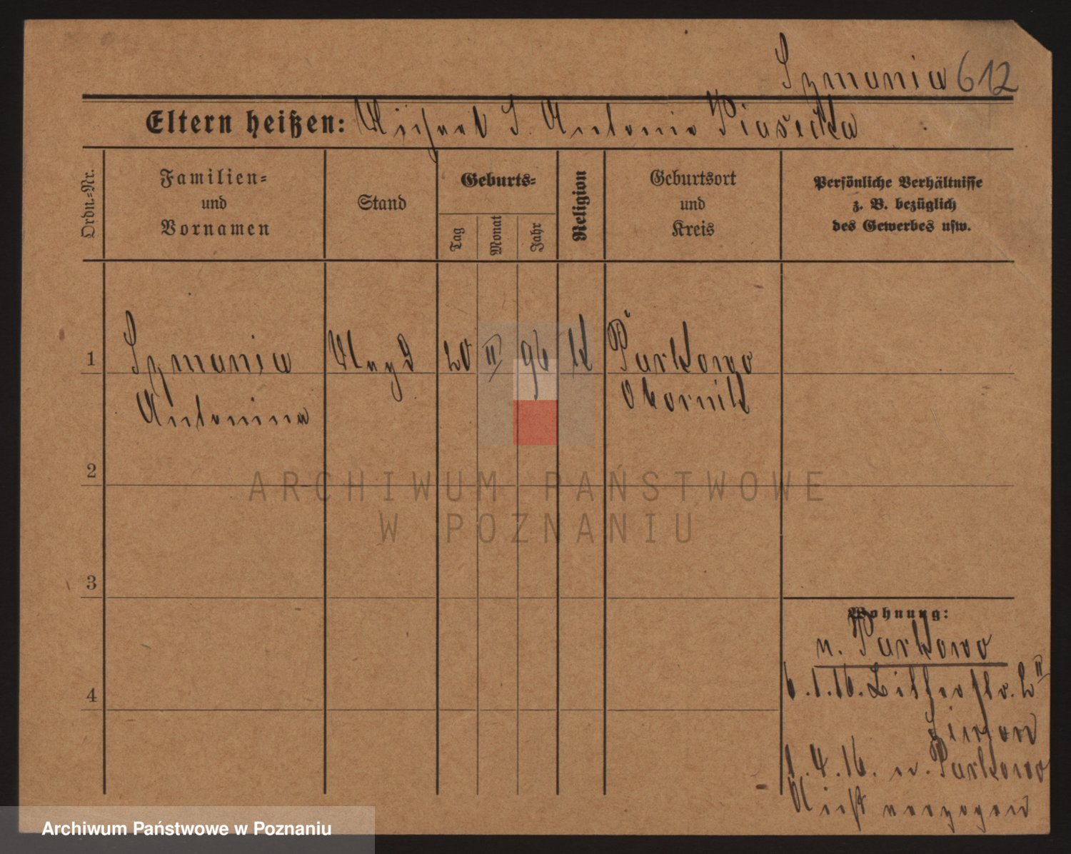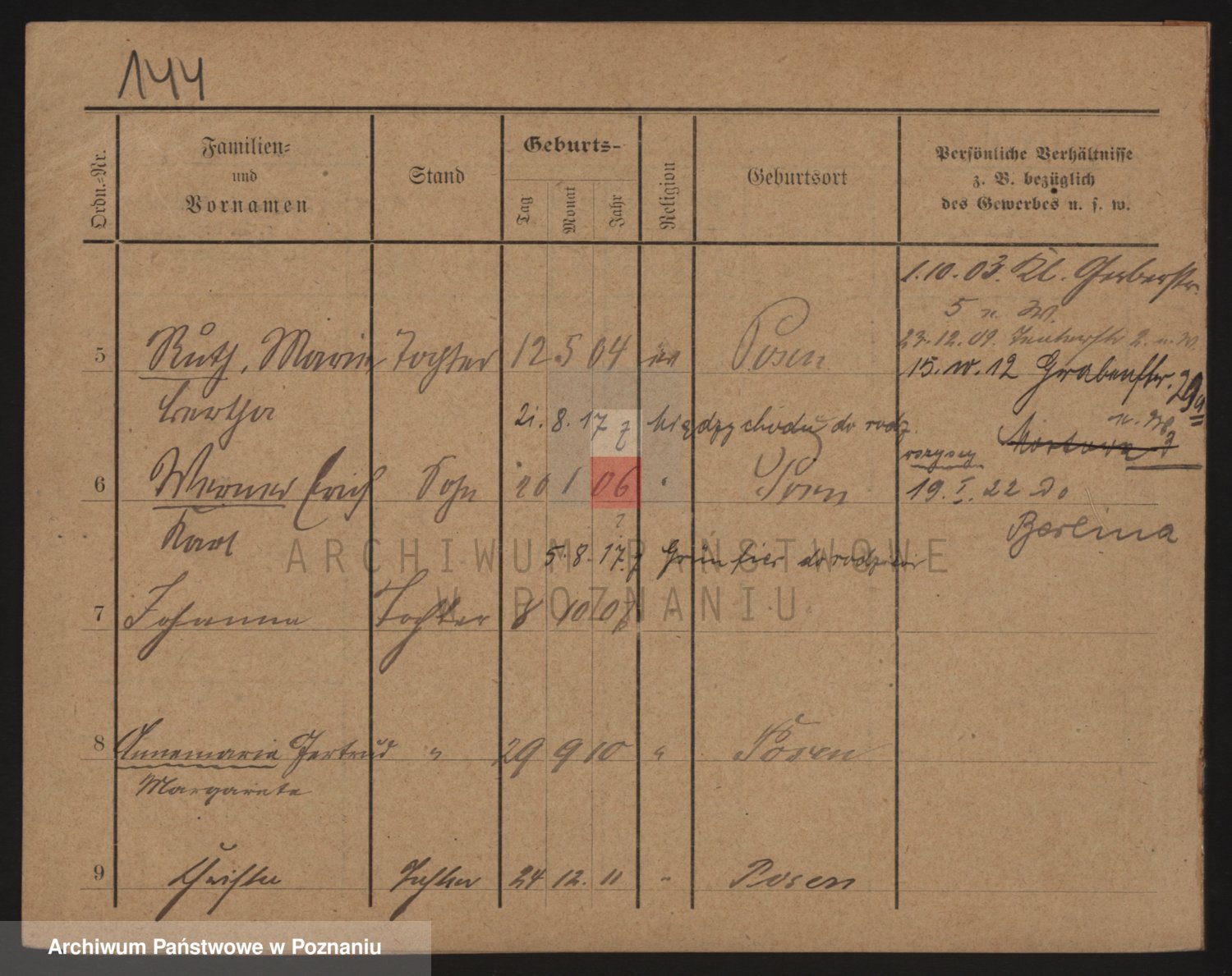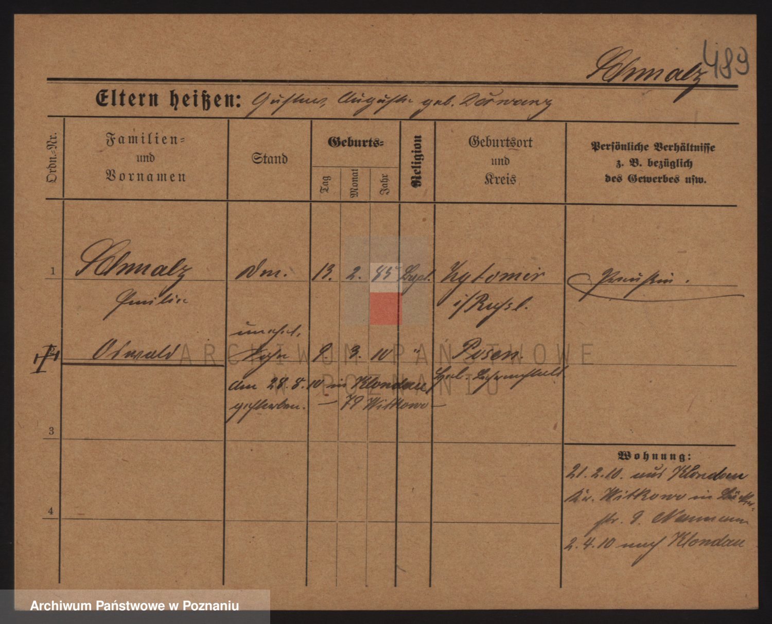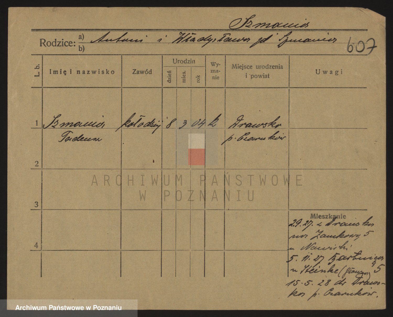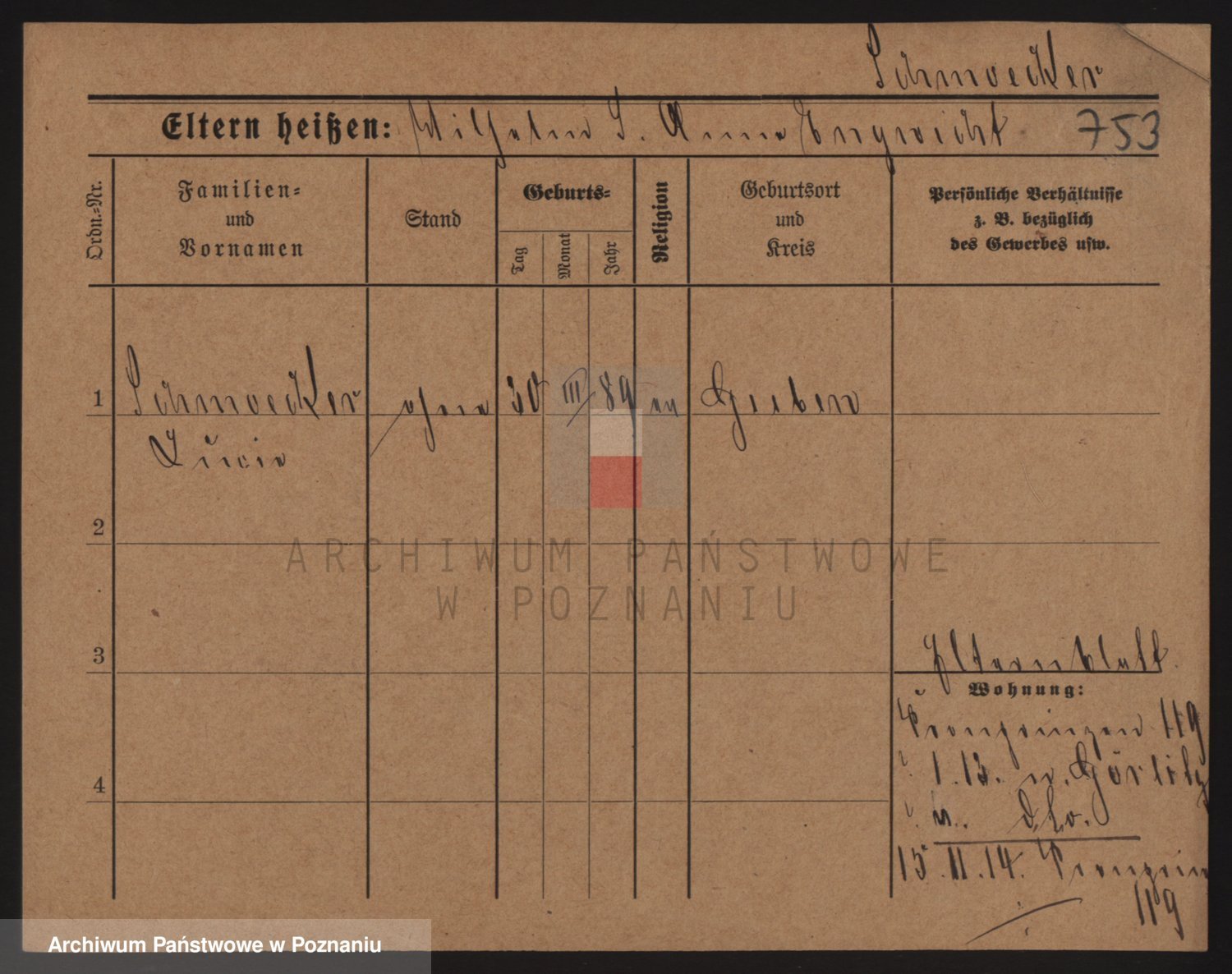 Podgląd karty osobowej dostępny jest po kliknięciu na nazwisko lub ikonkę karty. Można dokonywać powiększenia (ikony na górze) lub przechodzić między kolejnymi skanami (strzałki po bokach).