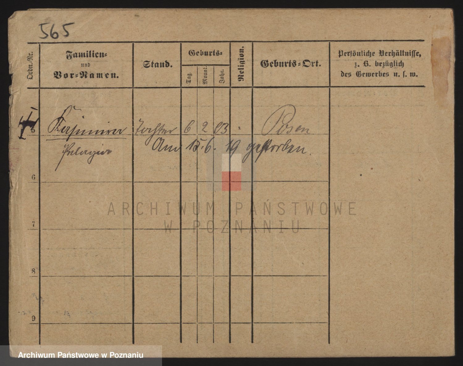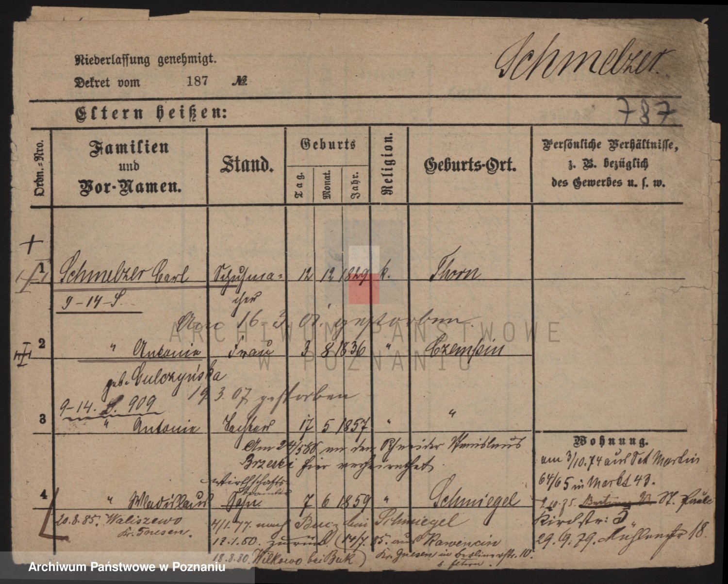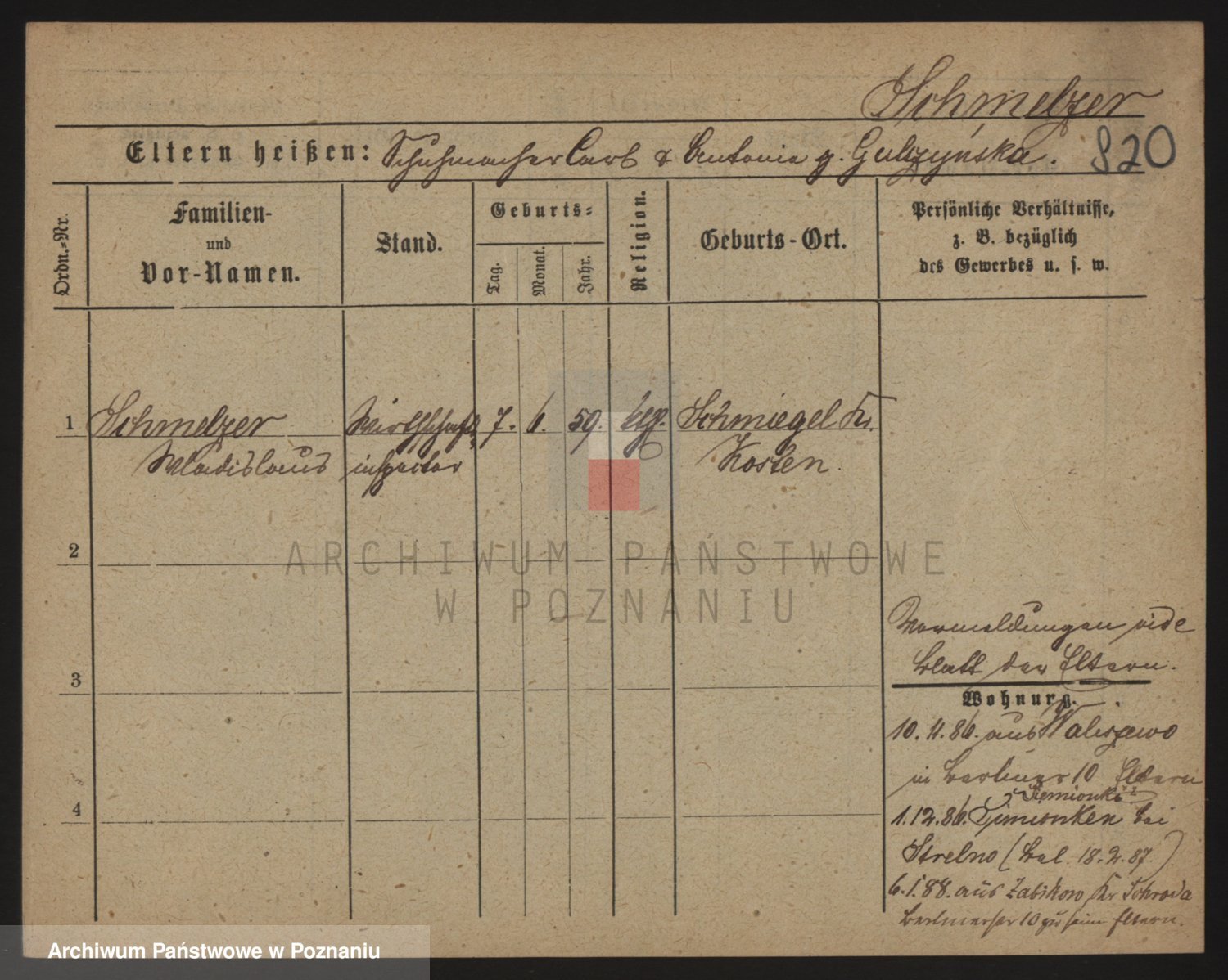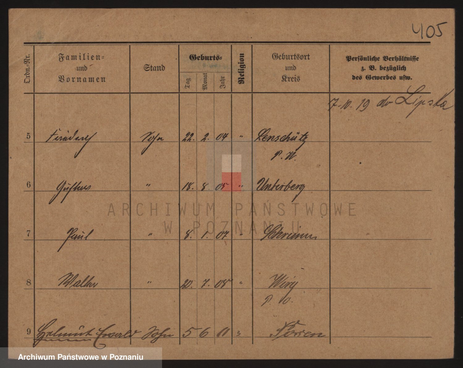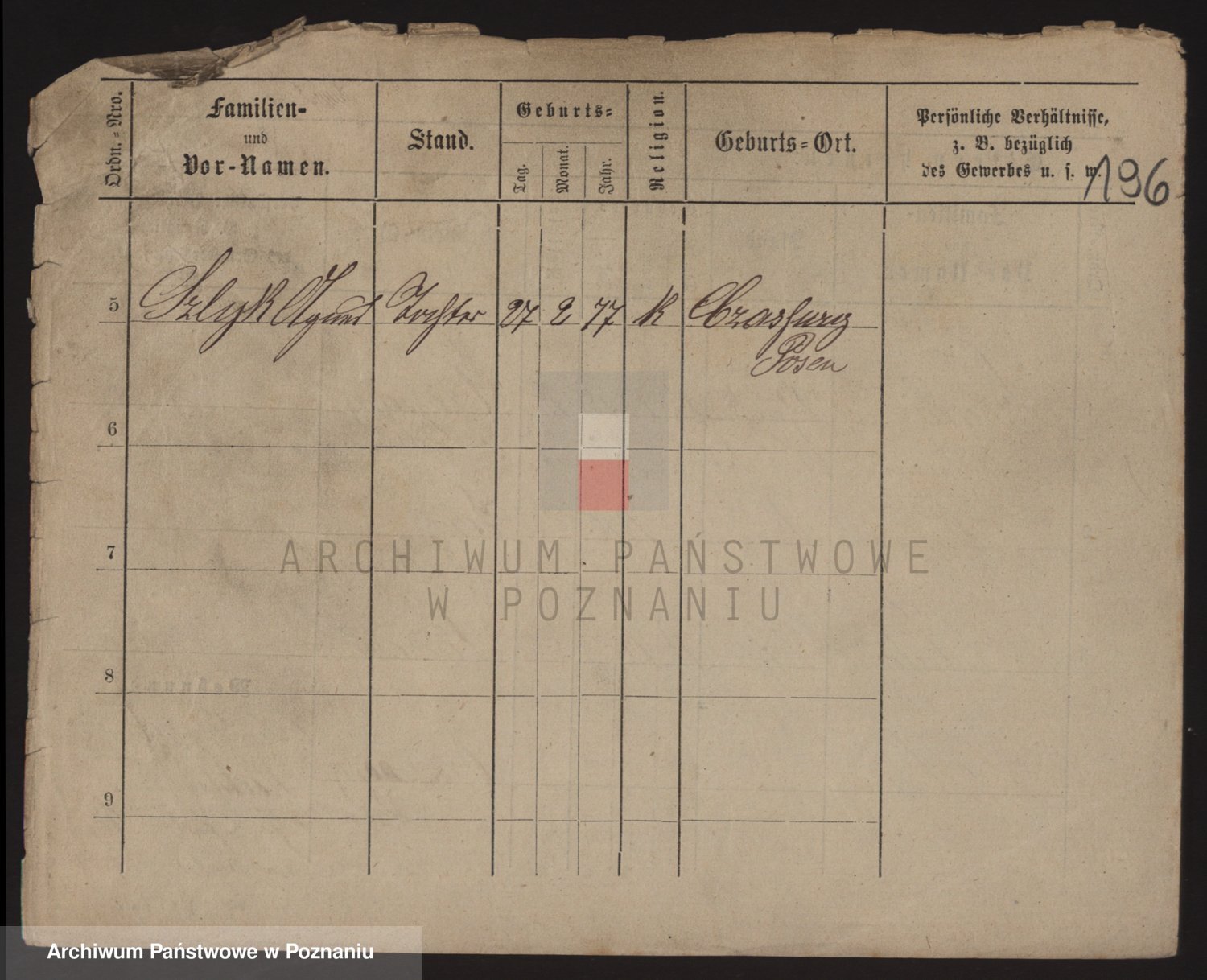 Podgląd karty osobowej dostępny jest po kliknięciu na nazwisko lub ikonkę karty. Można dokonywać powiększenia (ikony na górze) lub przechodzić między kolejnymi skanami (strzałki po bokach).