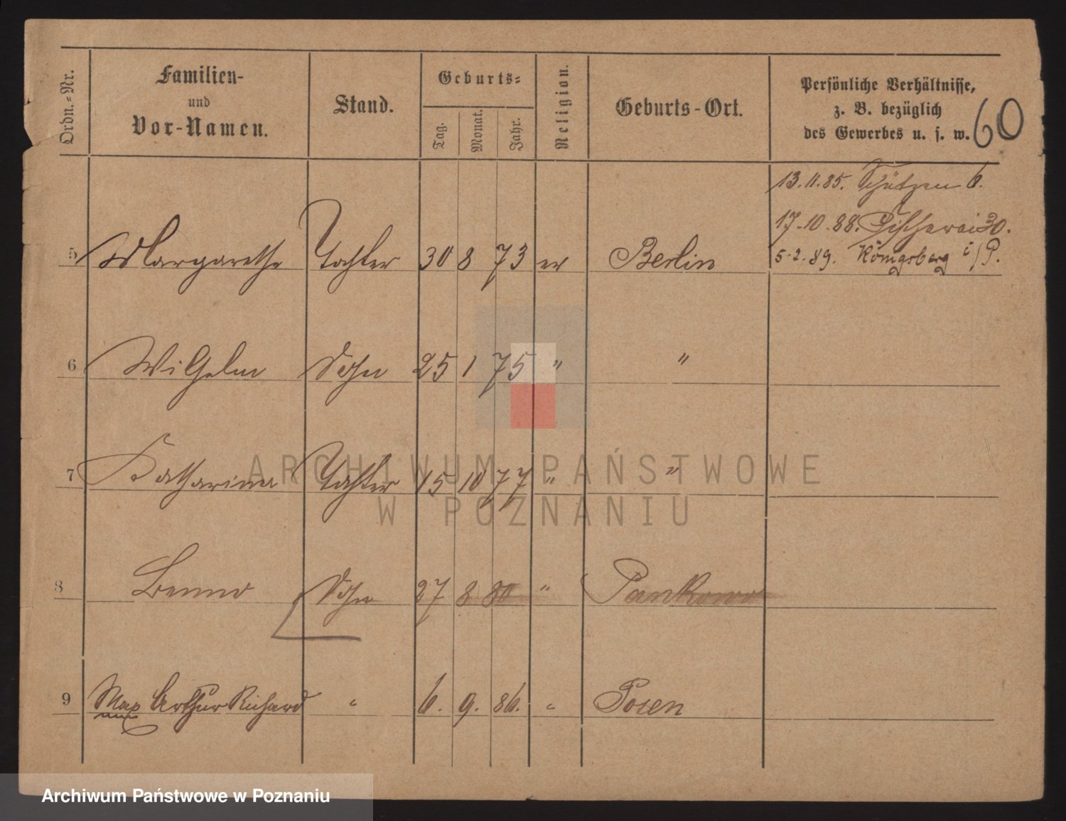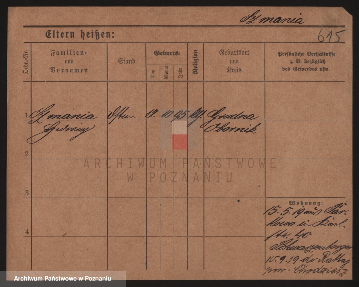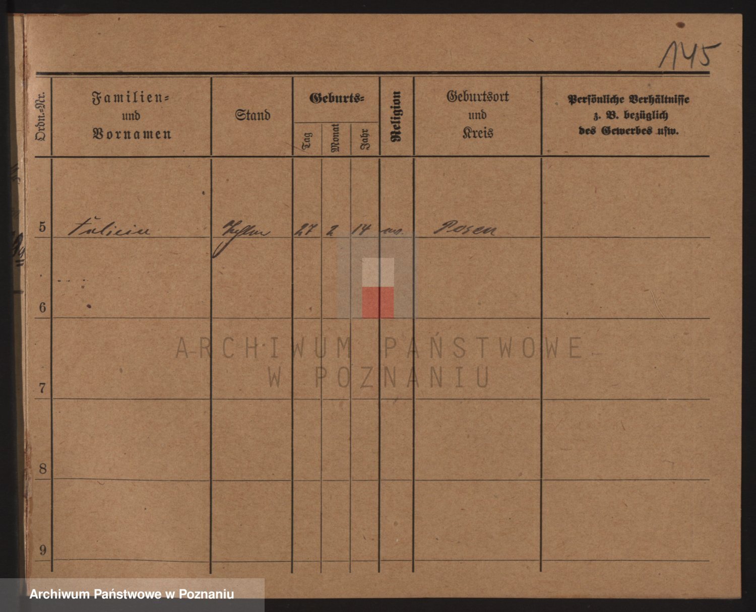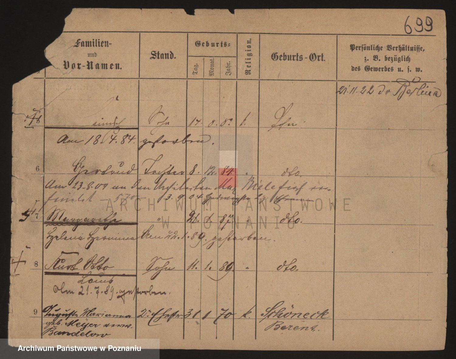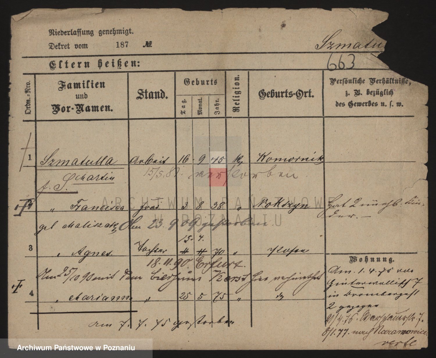 Podgląd karty osobowej dostępny jest po kliknięciu na nazwisko lub ikonkę karty. Można dokonywać powiększenia (ikony na górze) lub przechodzić między kolejnymi skanami (strzałki po bokach).