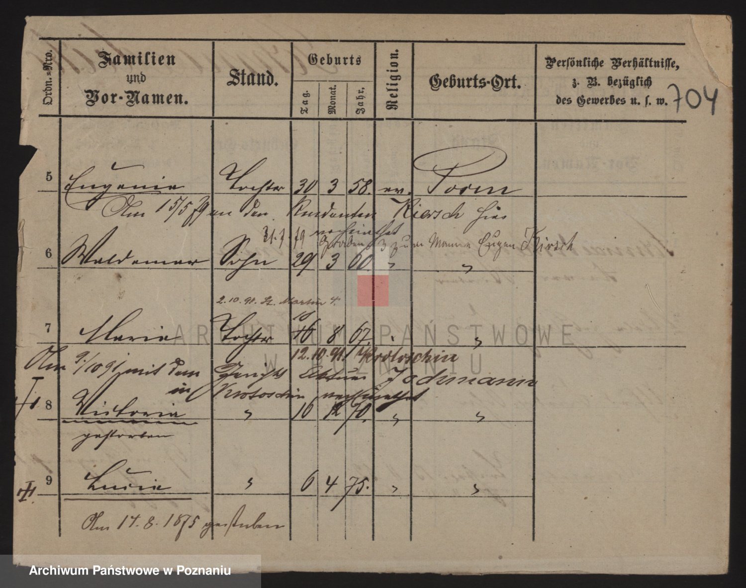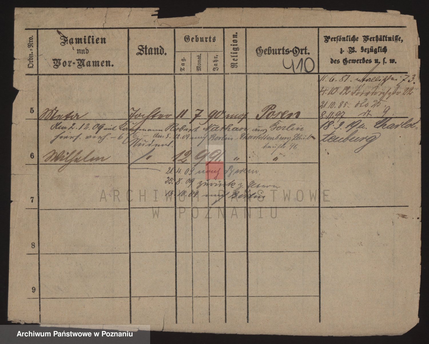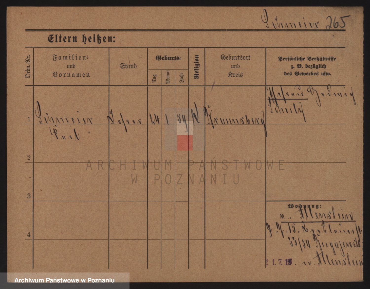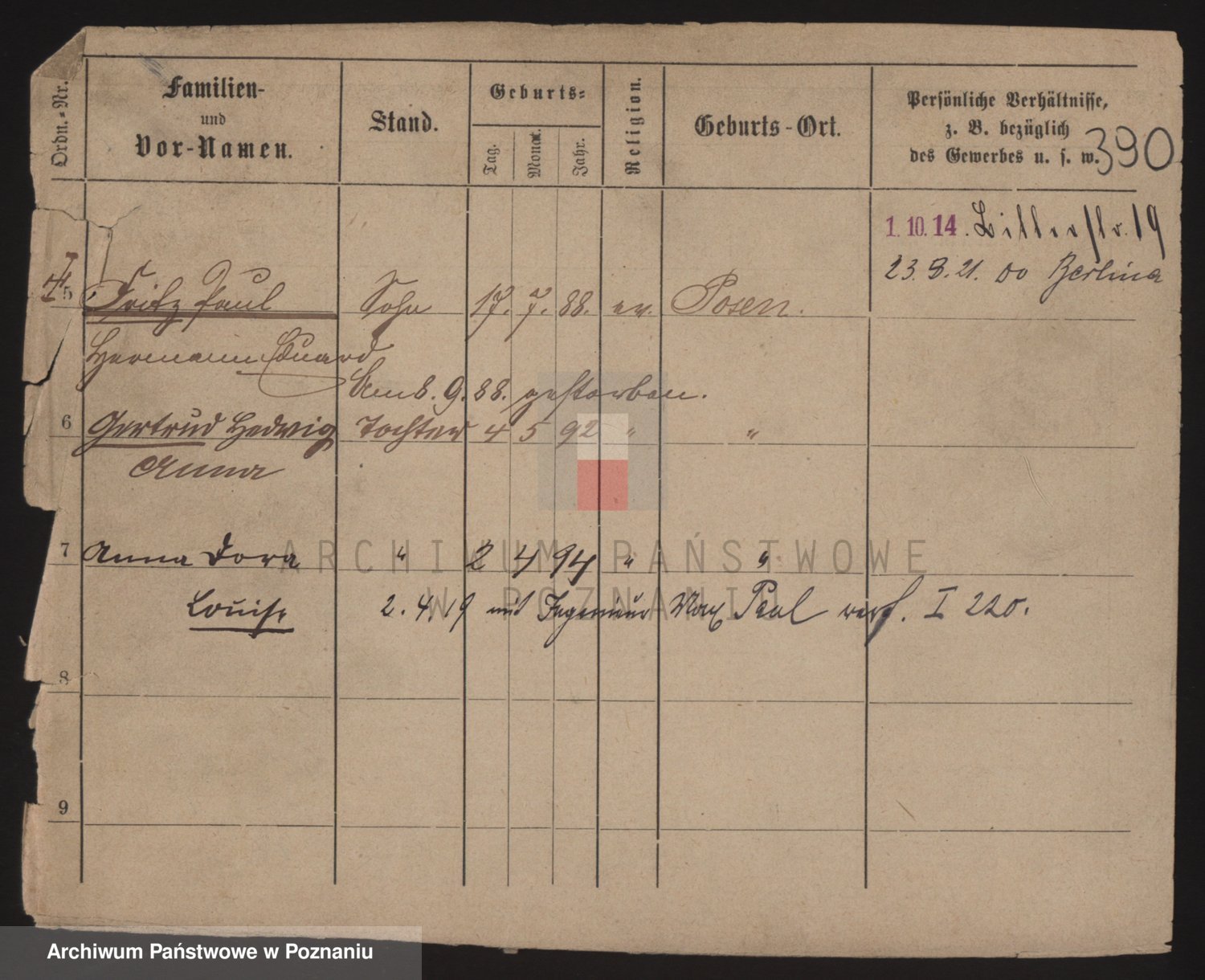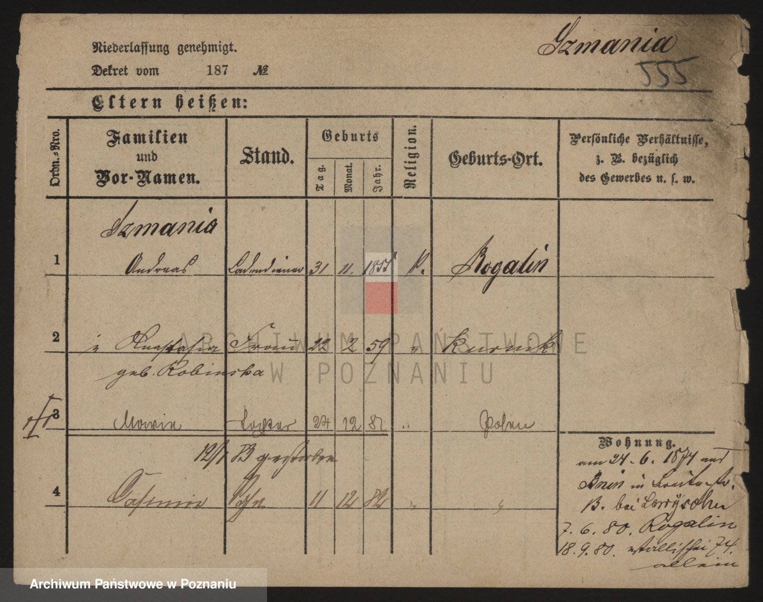 Podgląd karty osobowej dostępny jest po kliknięciu na nazwisko lub ikonkę karty. Można dokonywać powiększenia (ikony na górze) lub przechodzić między kolejnymi skanami (strzałki po bokach).