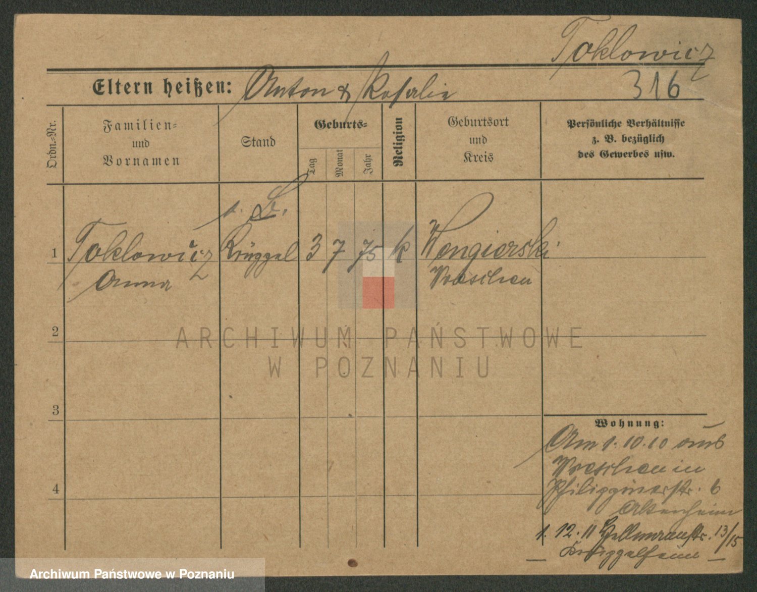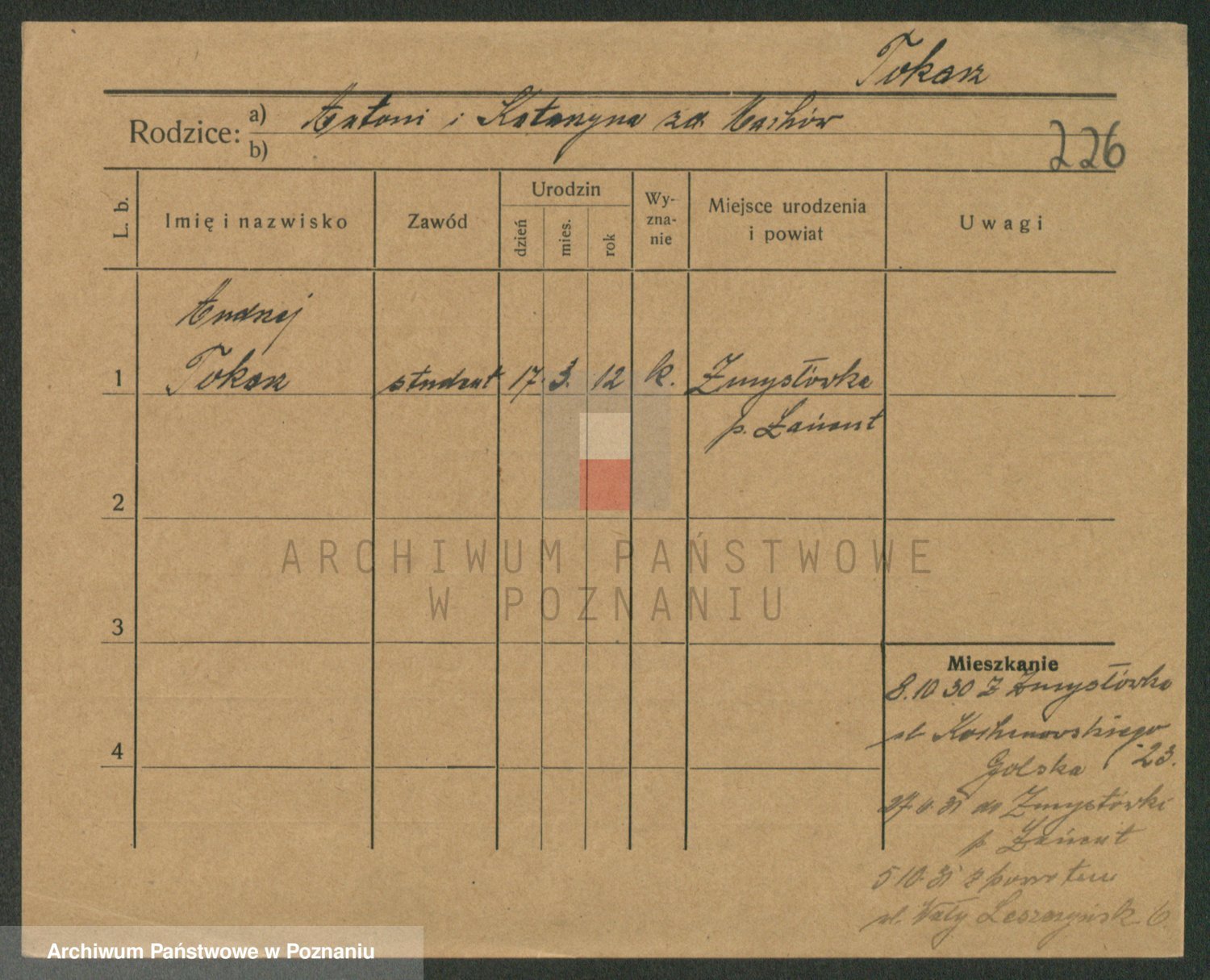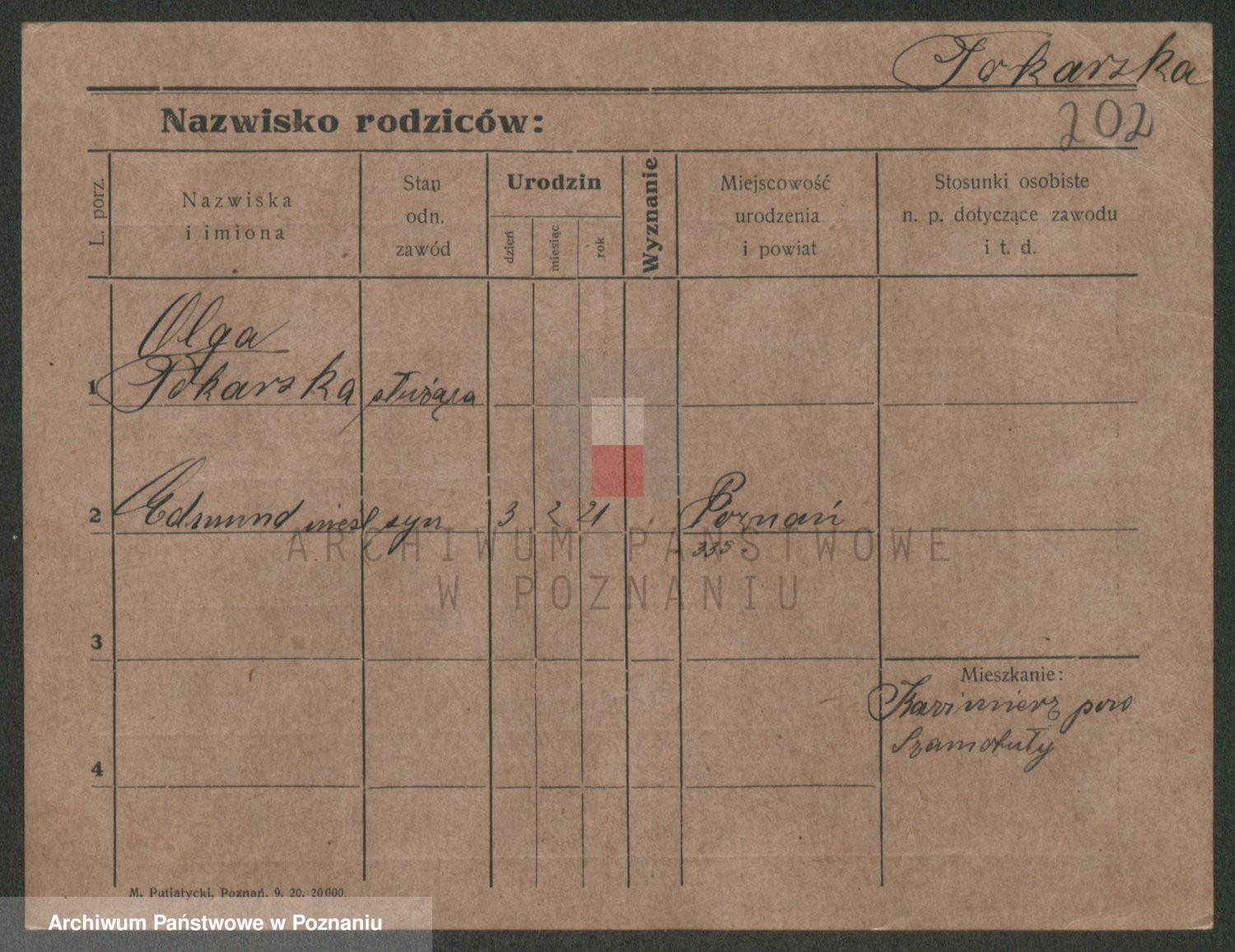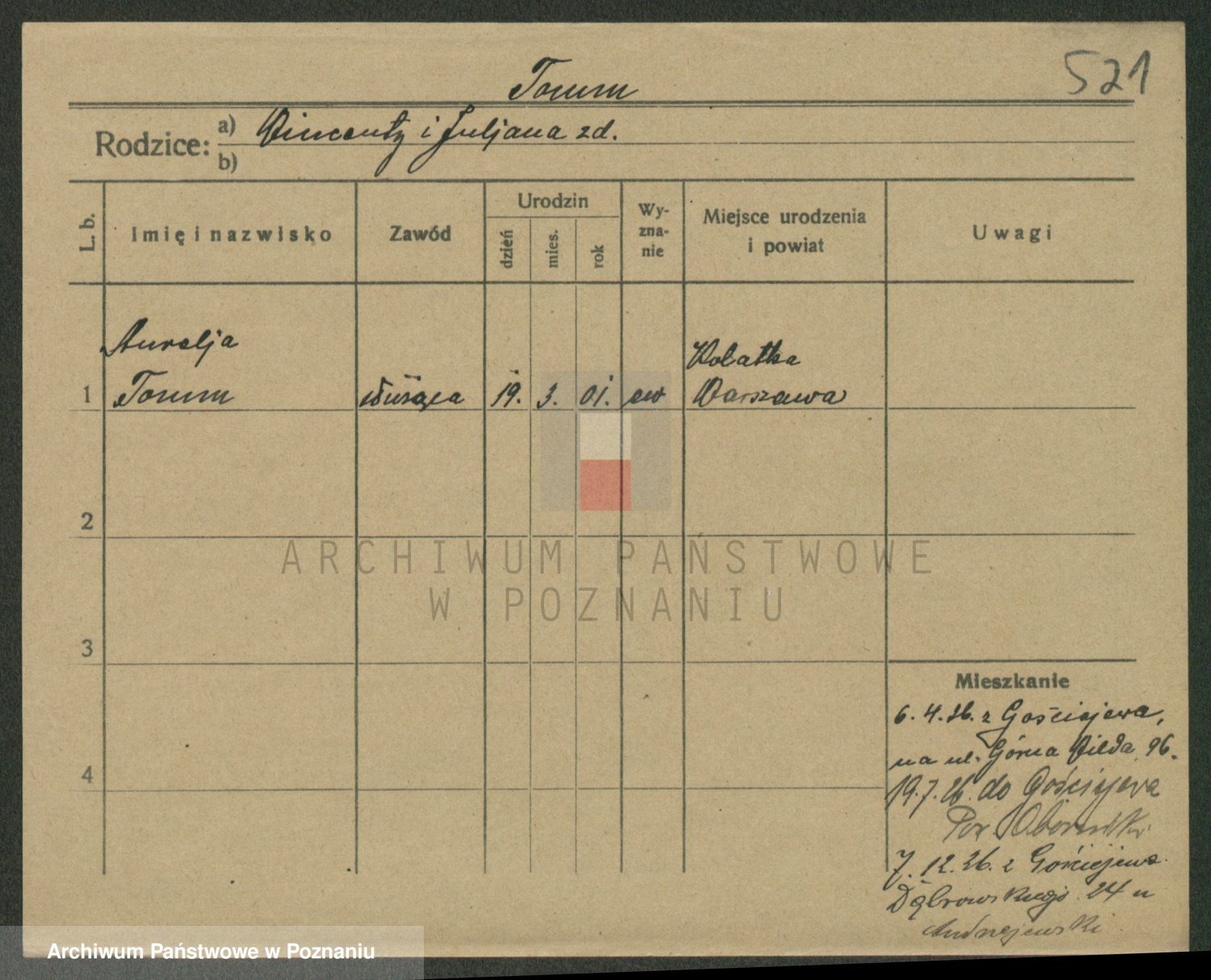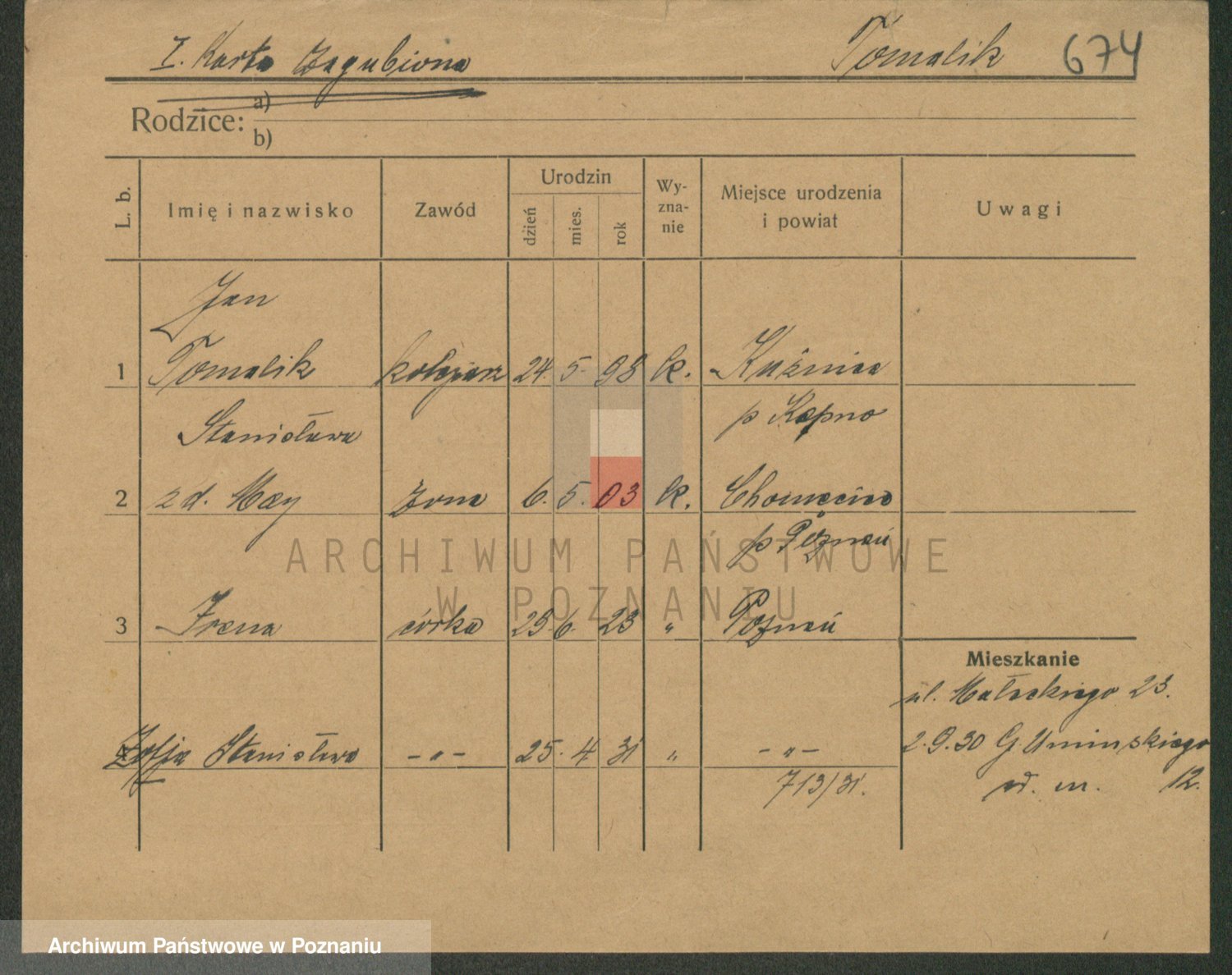 Podgląd karty osobowej dostępny jest po kliknięciu na nazwisko lub ikonkę karty. Można dokonywać powiększenia (ikony na górze) lub przechodzić między kolejnymi skanami (strzałki po bokach).