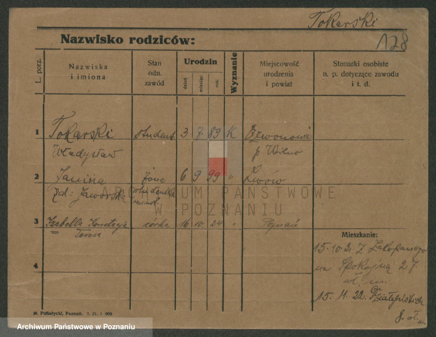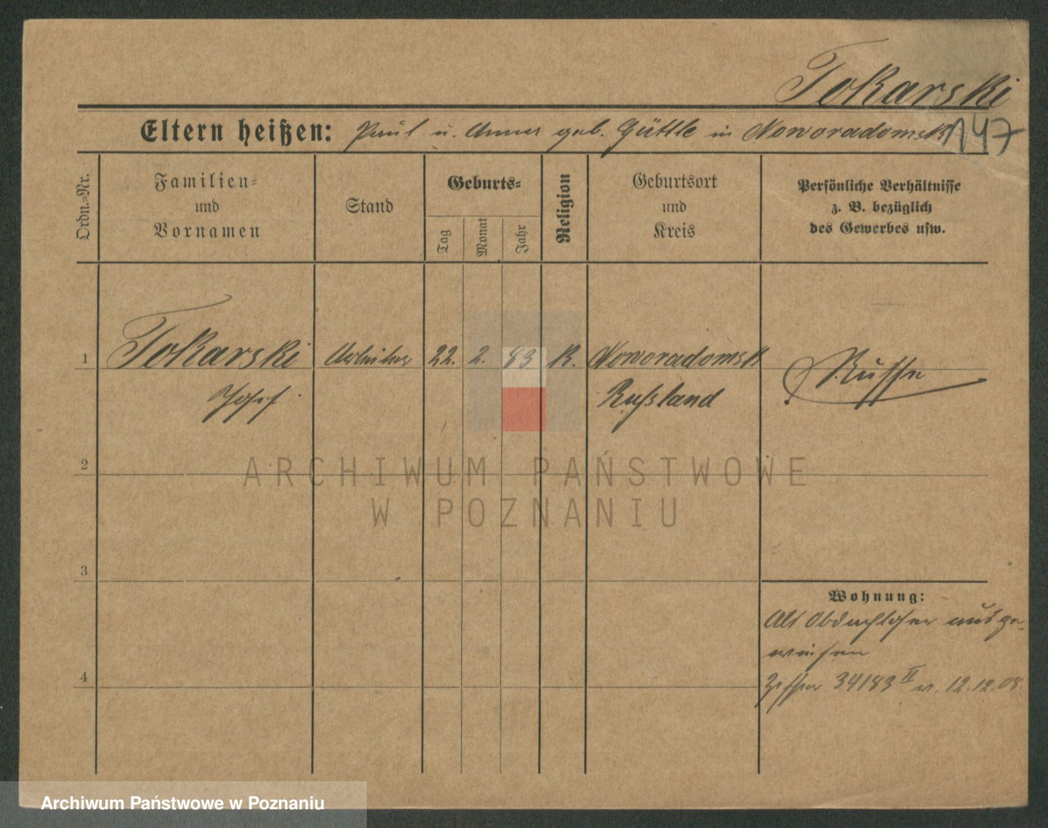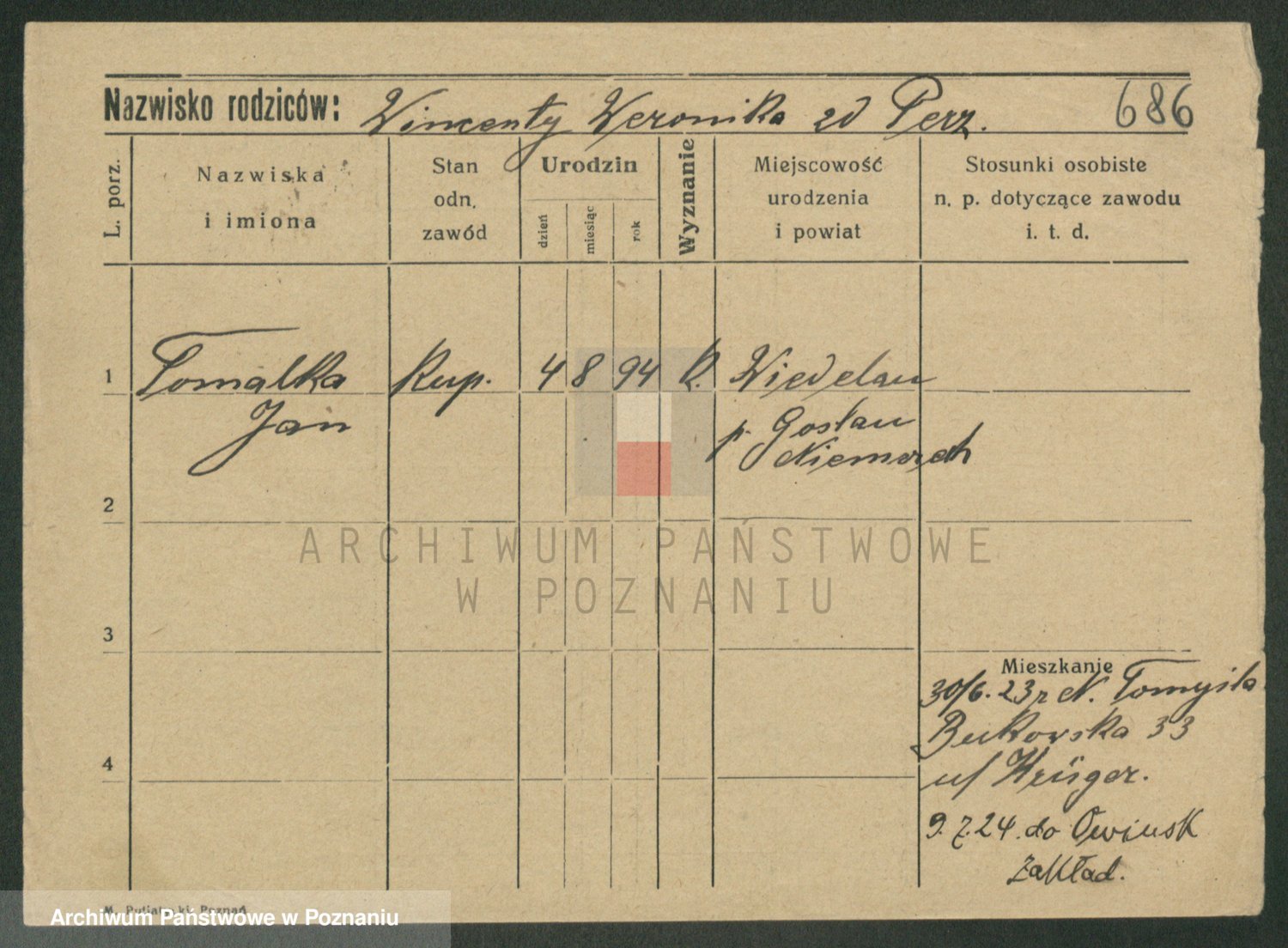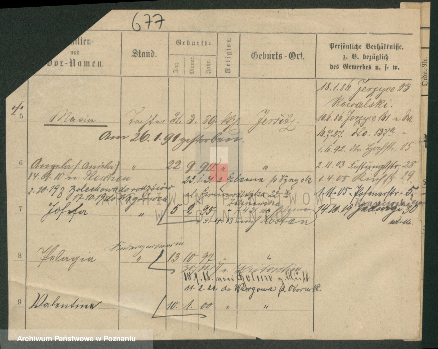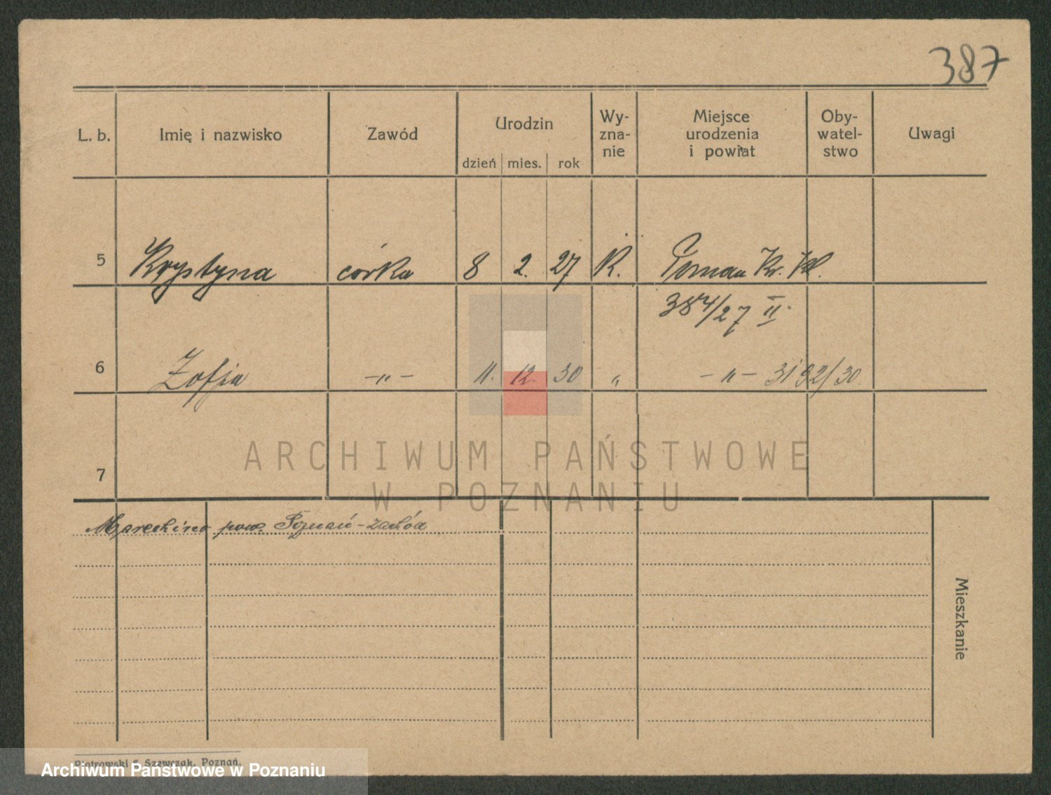 Podgląd karty osobowej dostępny jest po kliknięciu na nazwisko lub ikonkę karty. Można dokonywać powiększenia (ikony na górze) lub przechodzić między kolejnymi skanami (strzałki po bokach).