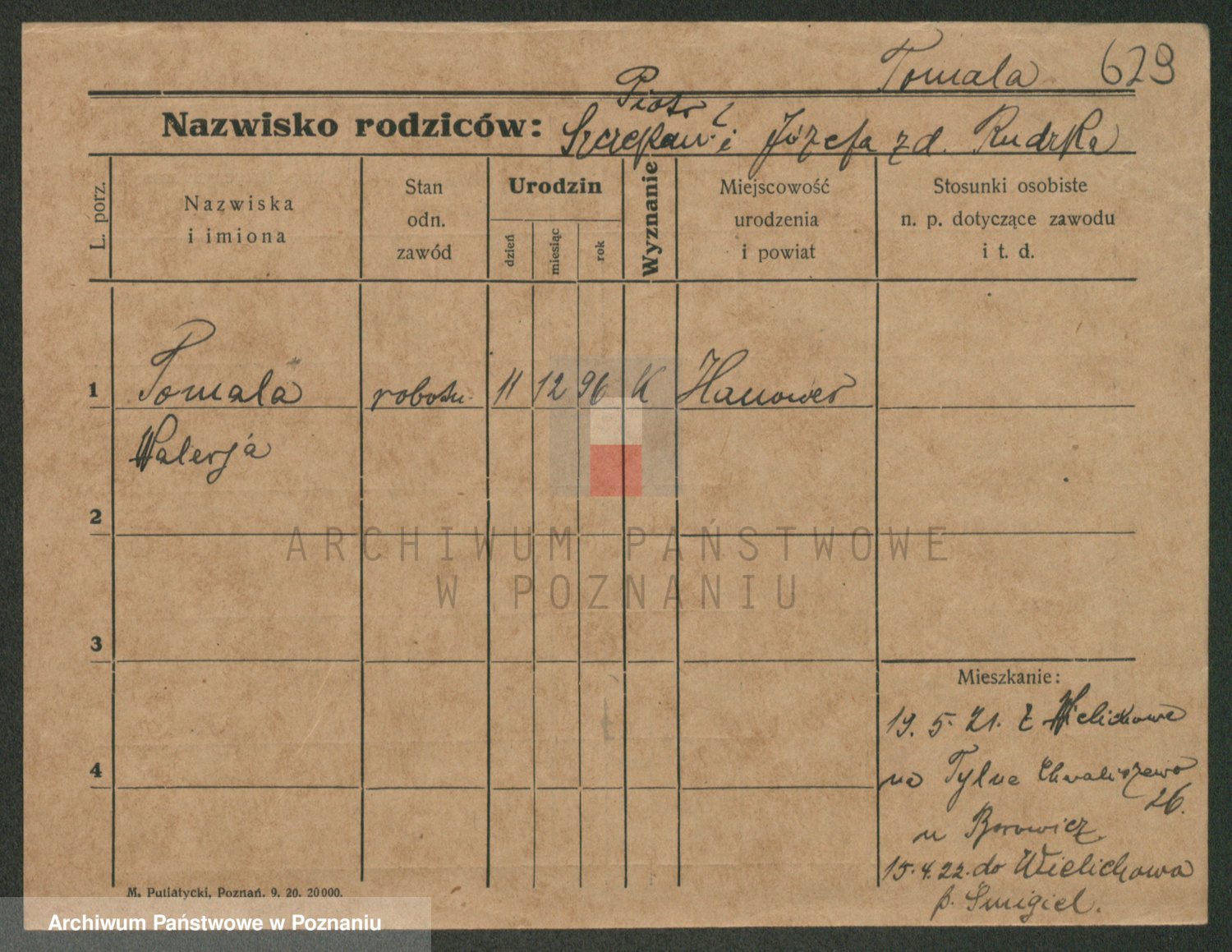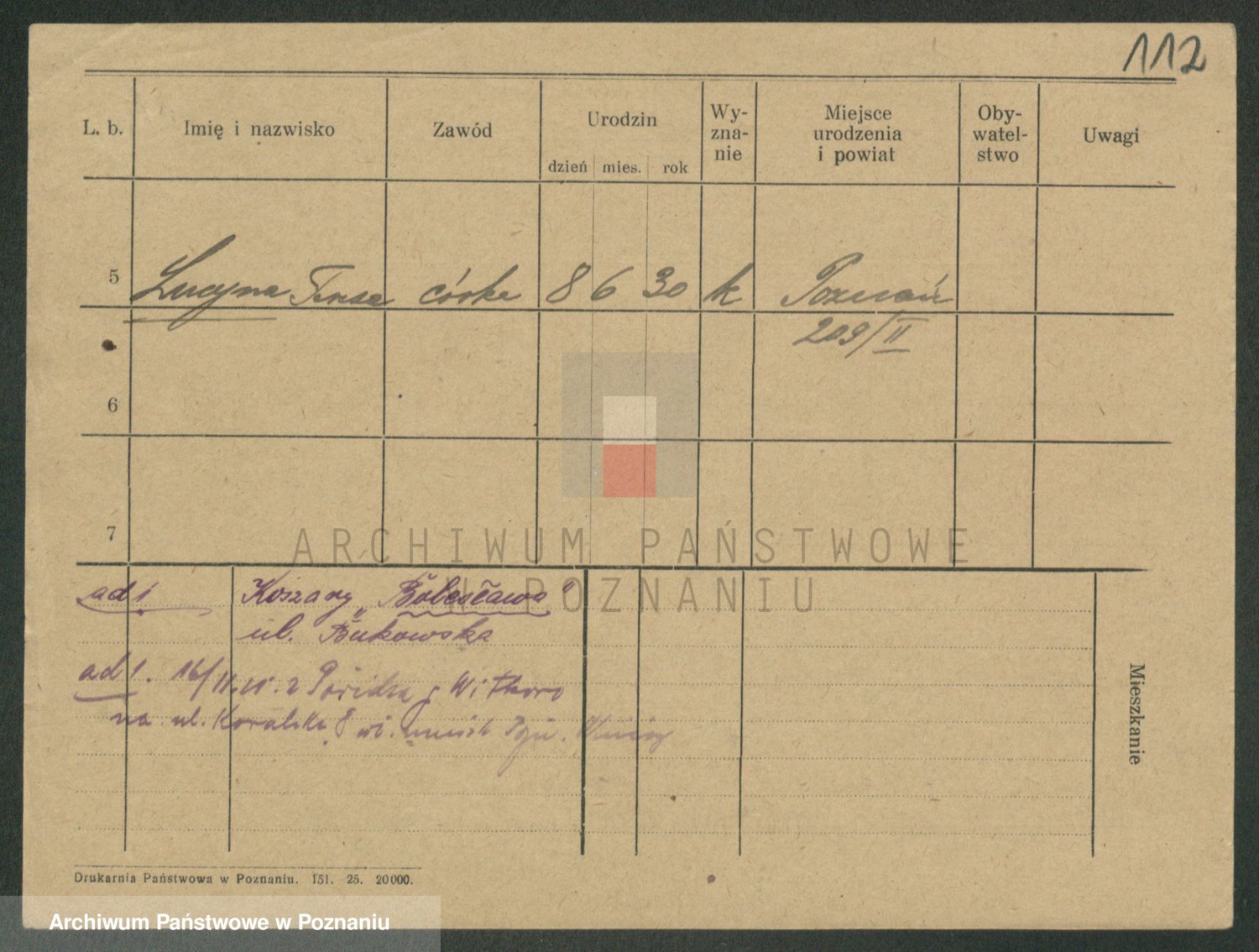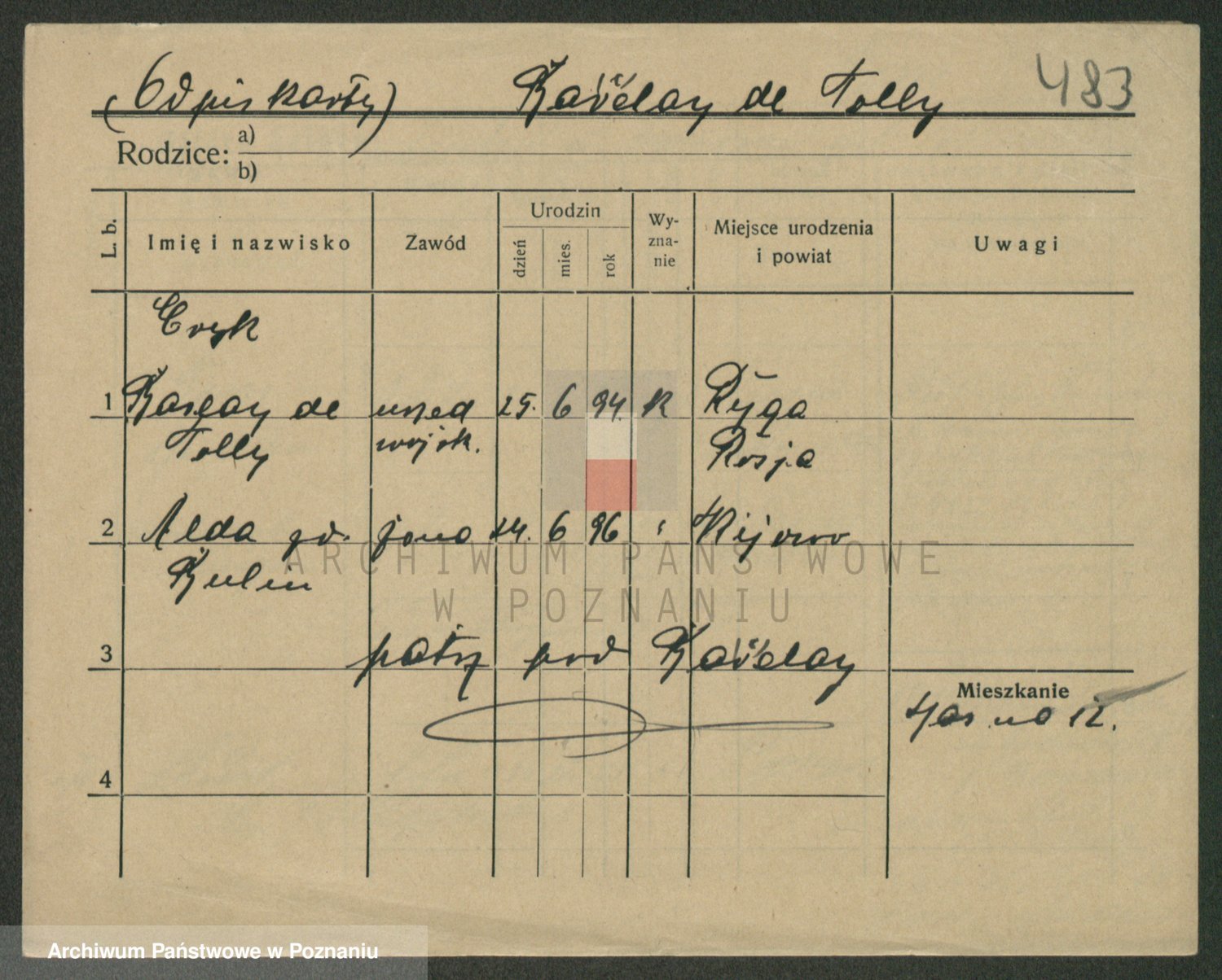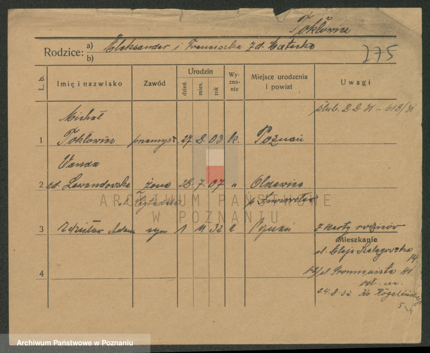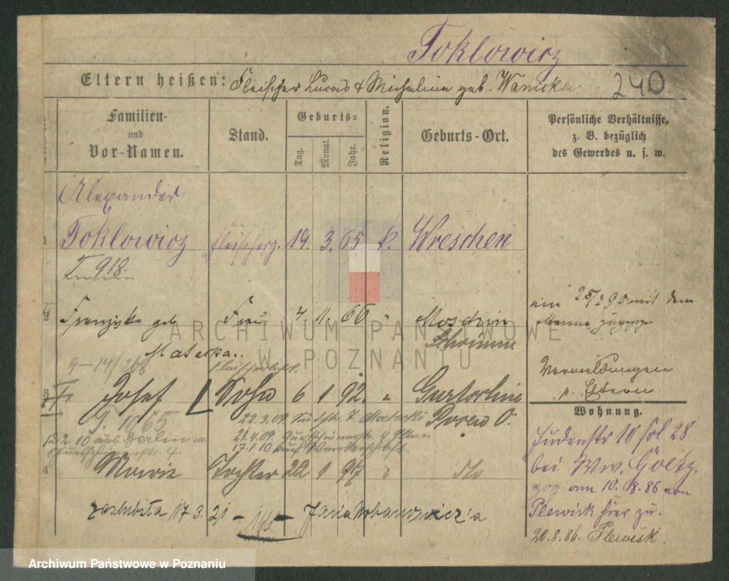 Podgląd karty osobowej dostępny jest po kliknięciu na nazwisko lub ikonkę karty. Można dokonywać powiększenia (ikony na górze) lub przechodzić między kolejnymi skanami (strzałki po bokach).