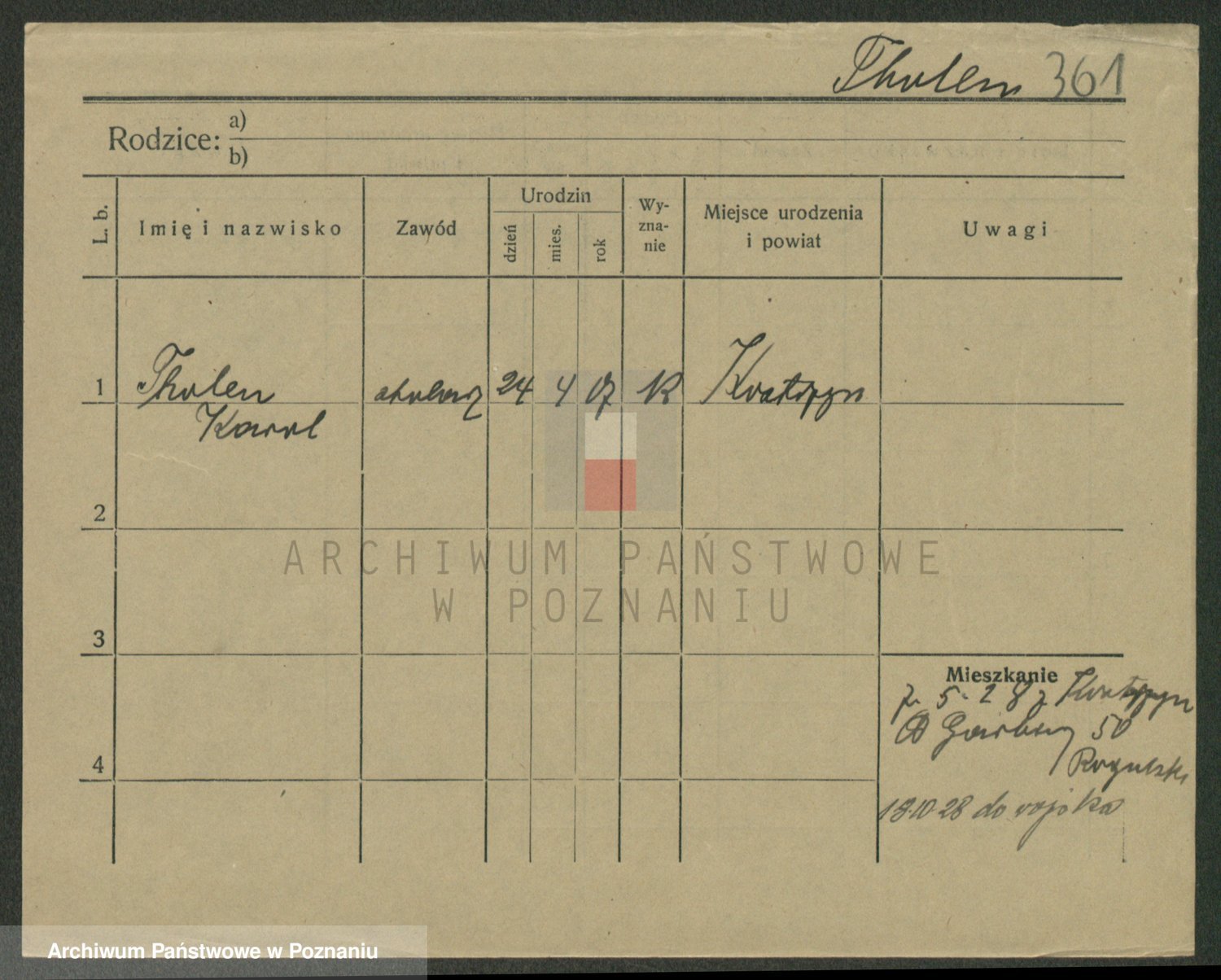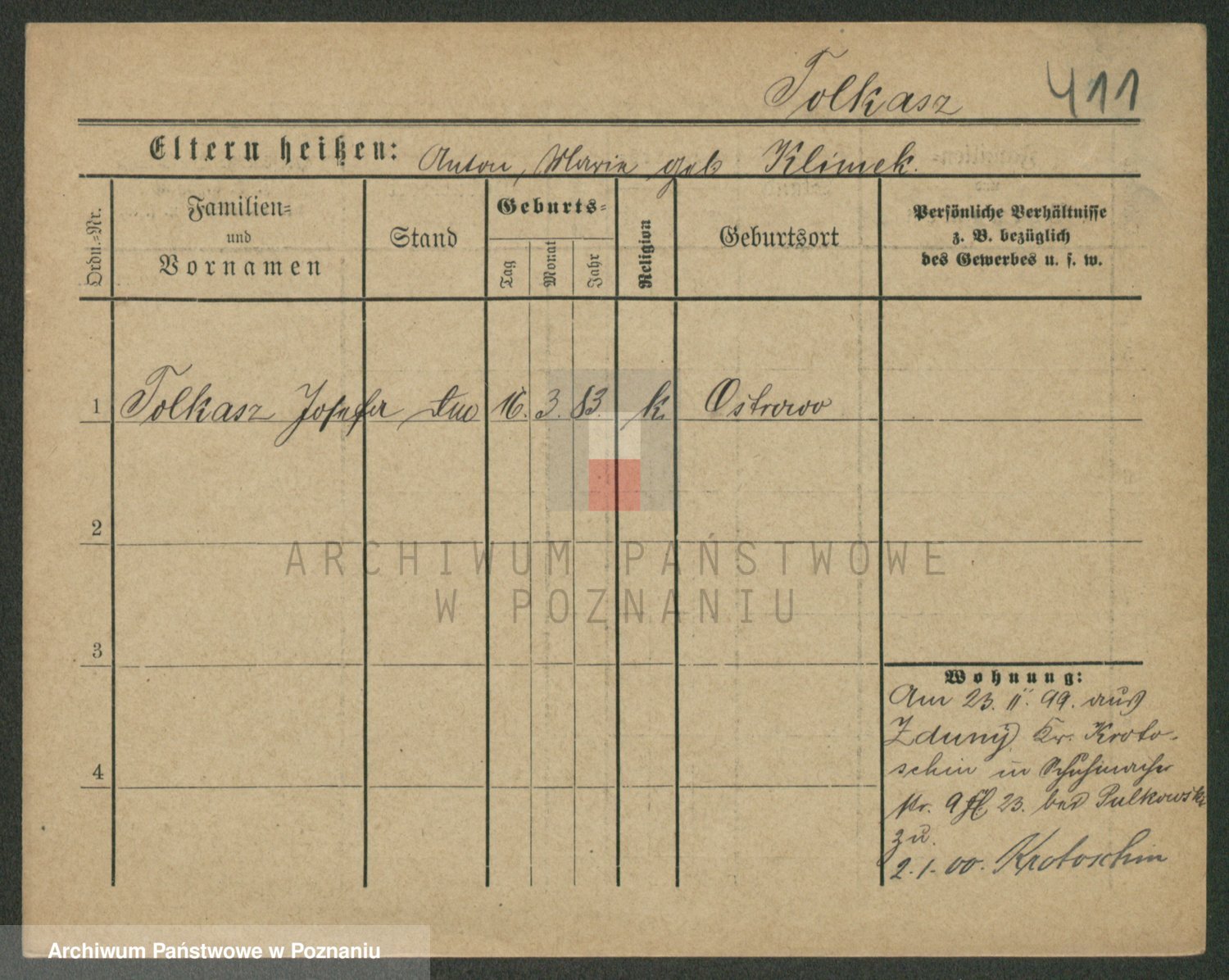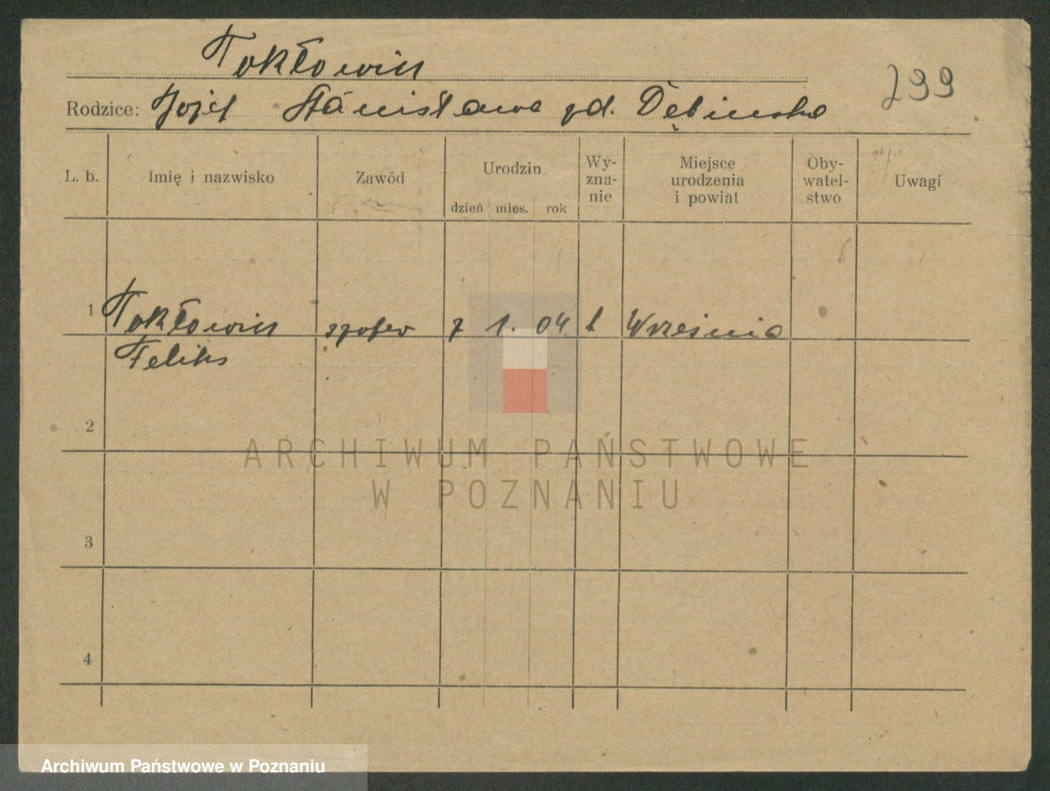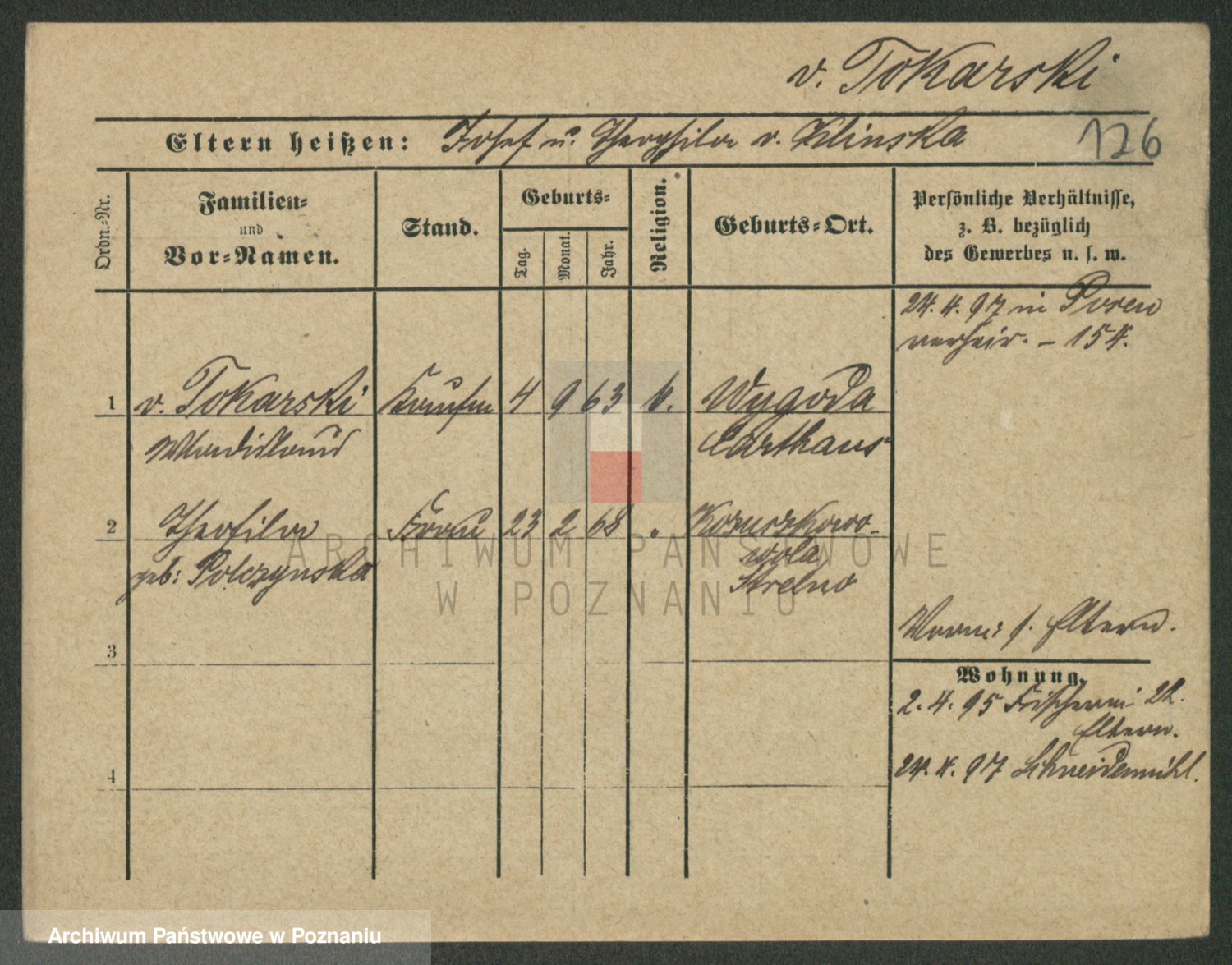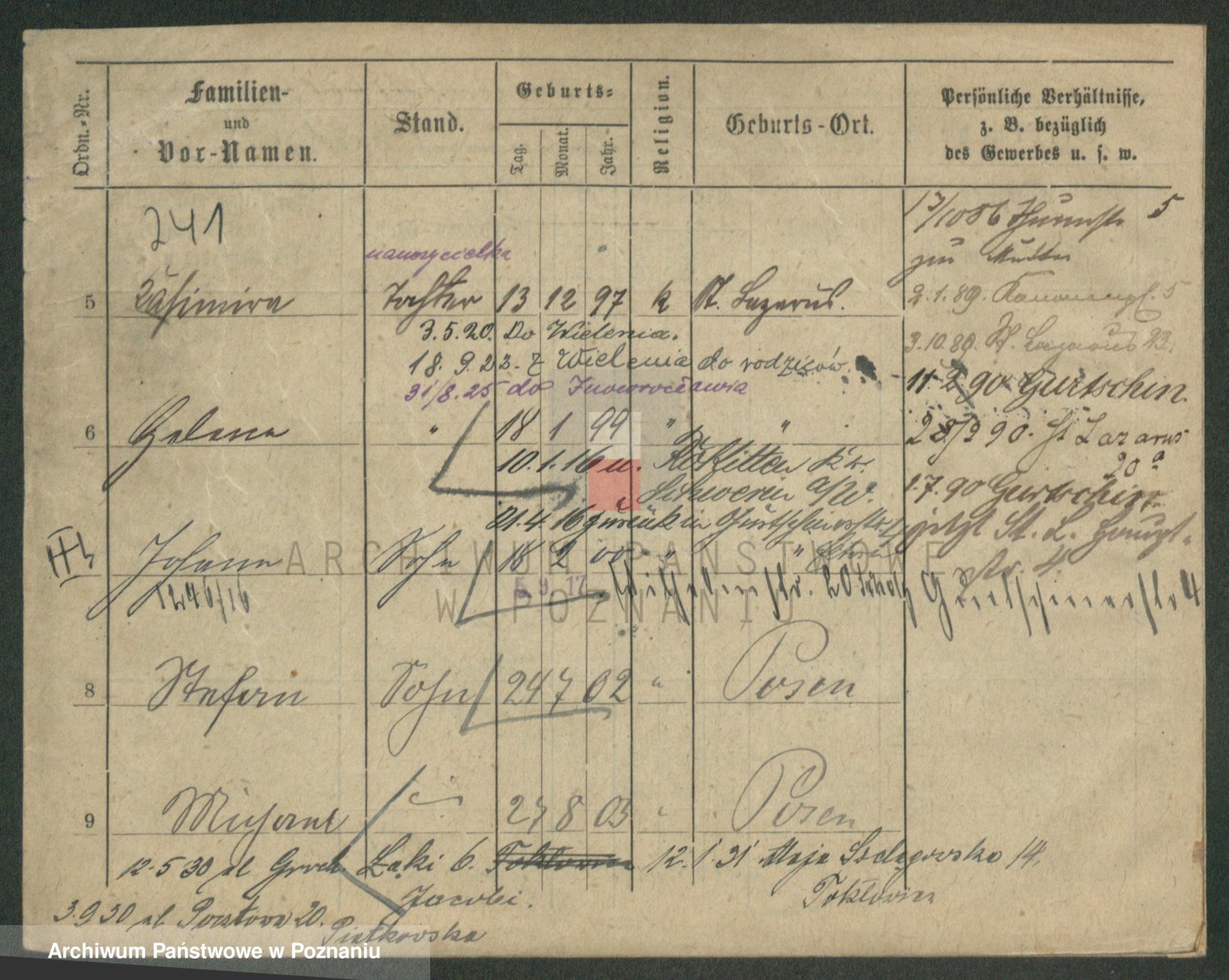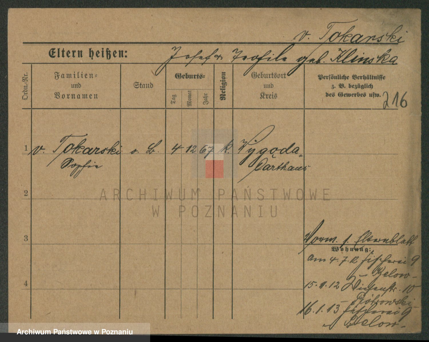 Podgląd karty osobowej dostępny jest po kliknięciu na nazwisko lub ikonkę karty. Można dokonywać powiększenia (ikony na górze) lub przechodzić między kolejnymi skanami (strzałki po bokach).