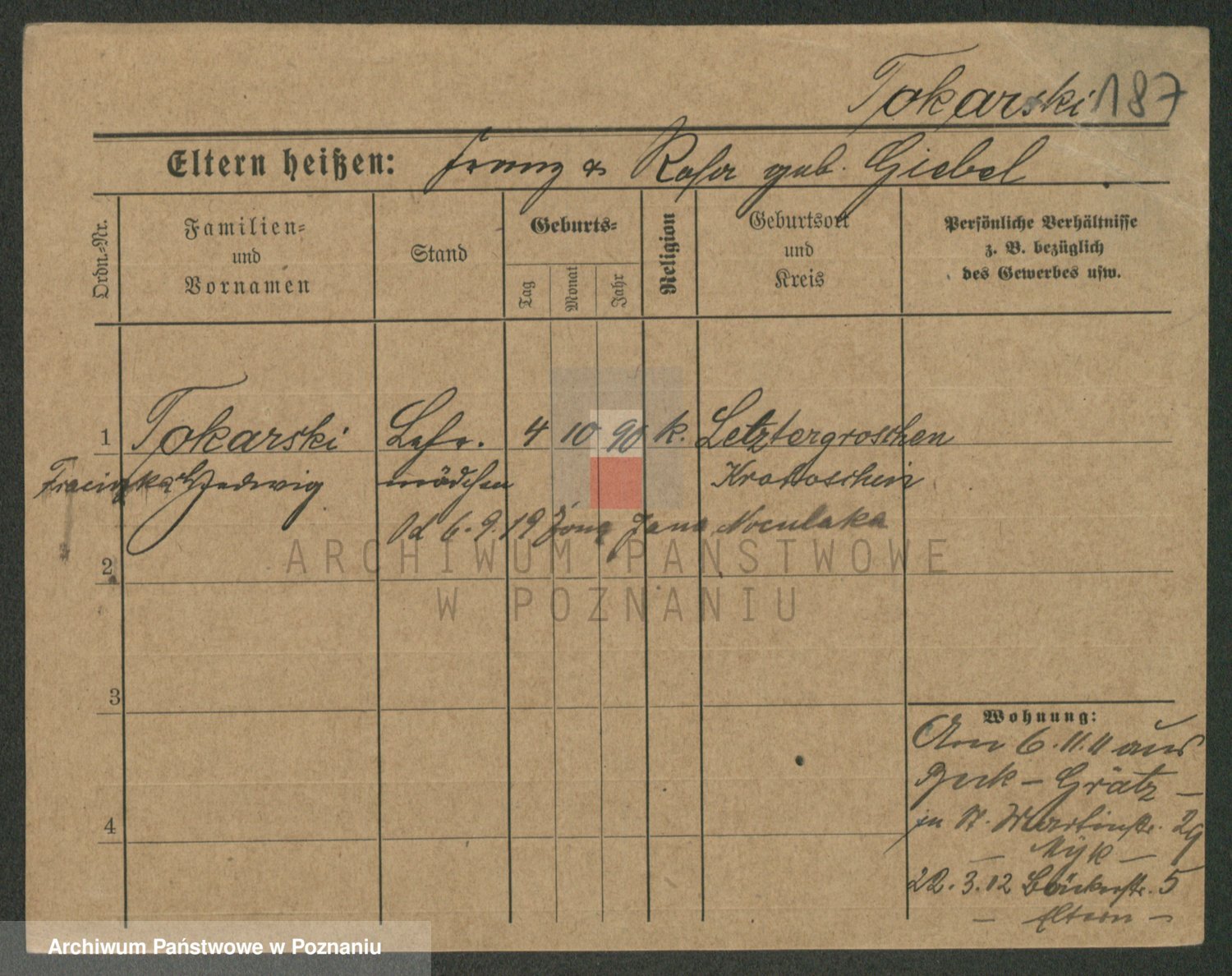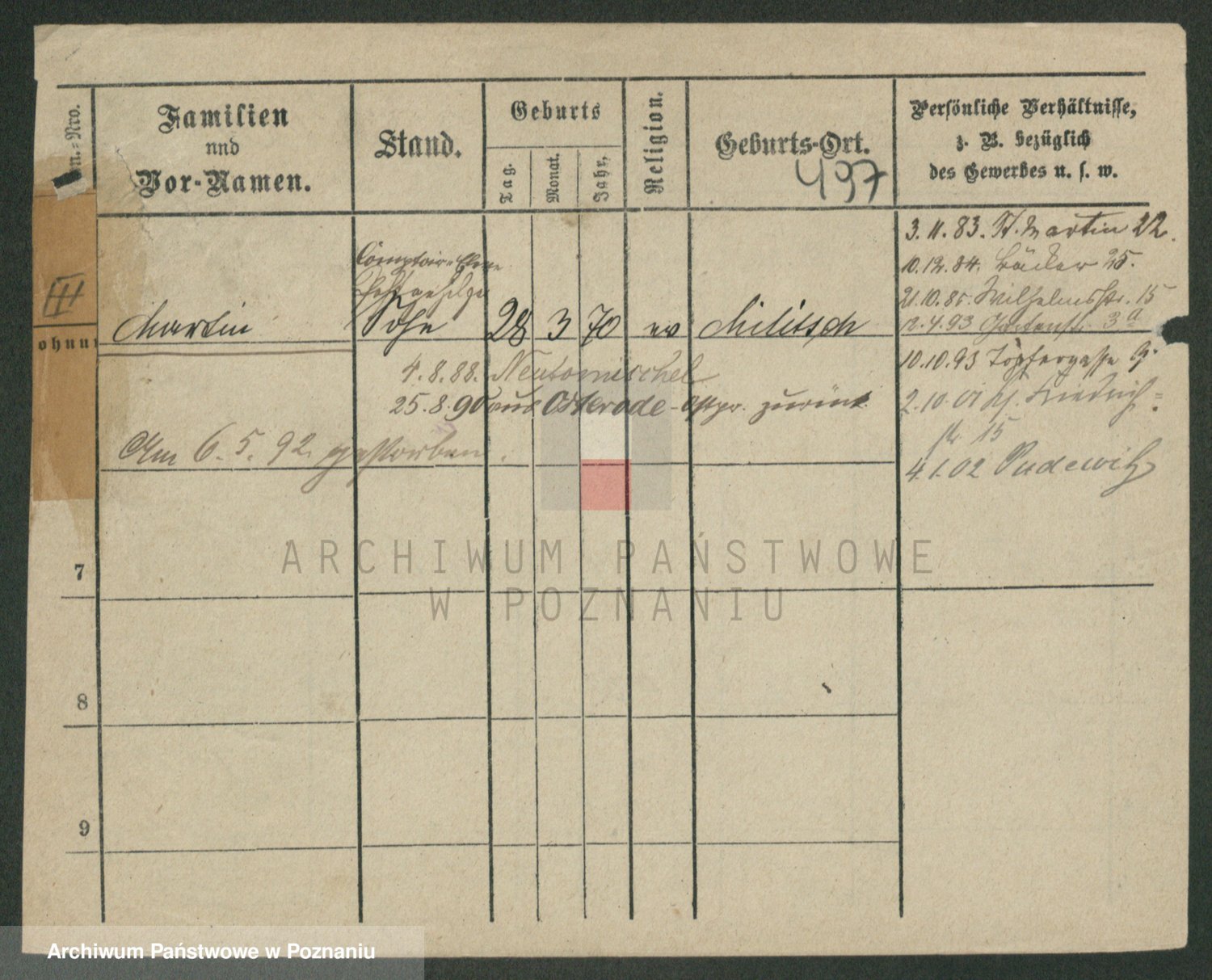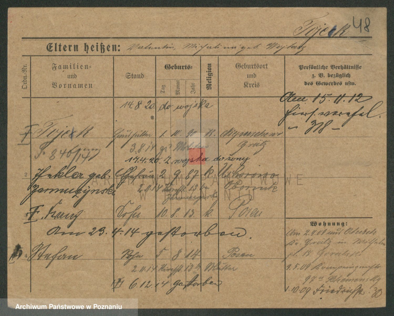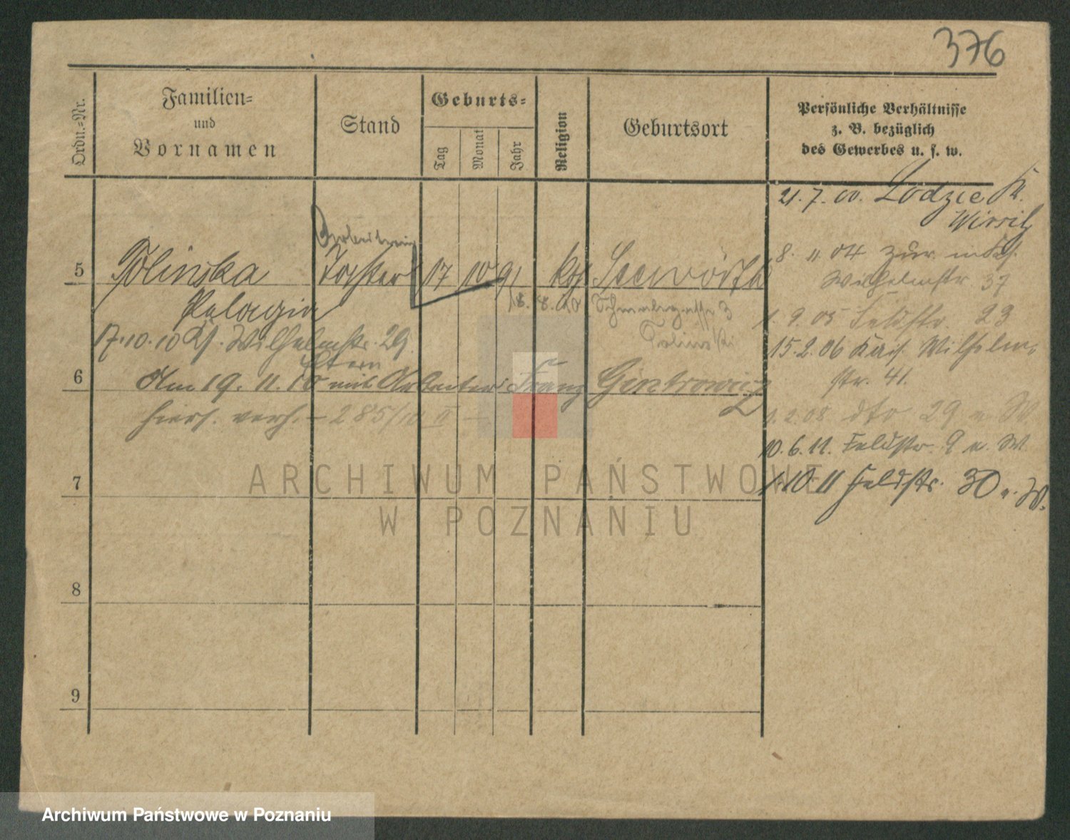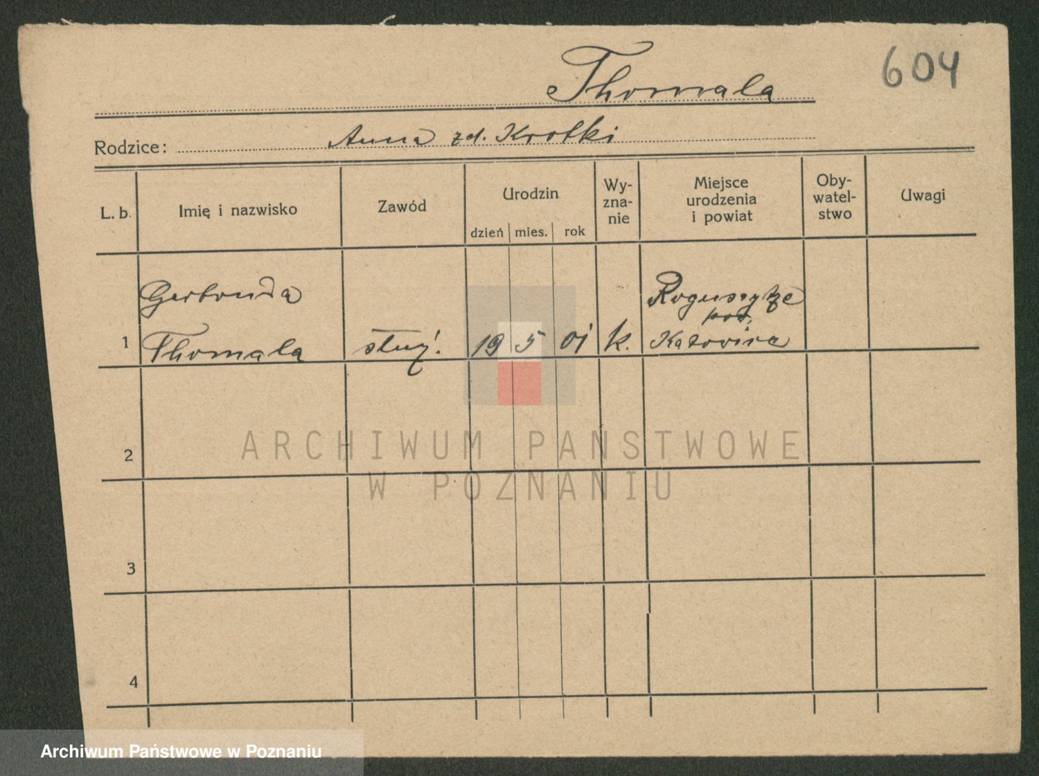 Podgląd karty osobowej dostępny jest po kliknięciu na nazwisko lub ikonkę karty. Można dokonywać powiększenia (ikony na górze) lub przechodzić między kolejnymi skanami (strzałki po bokach).
