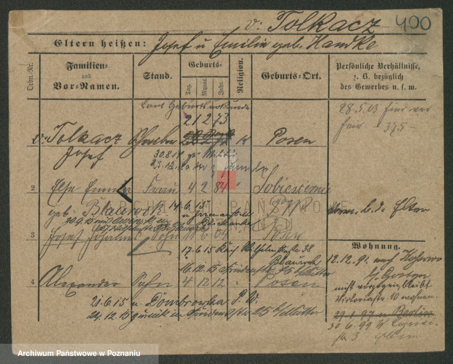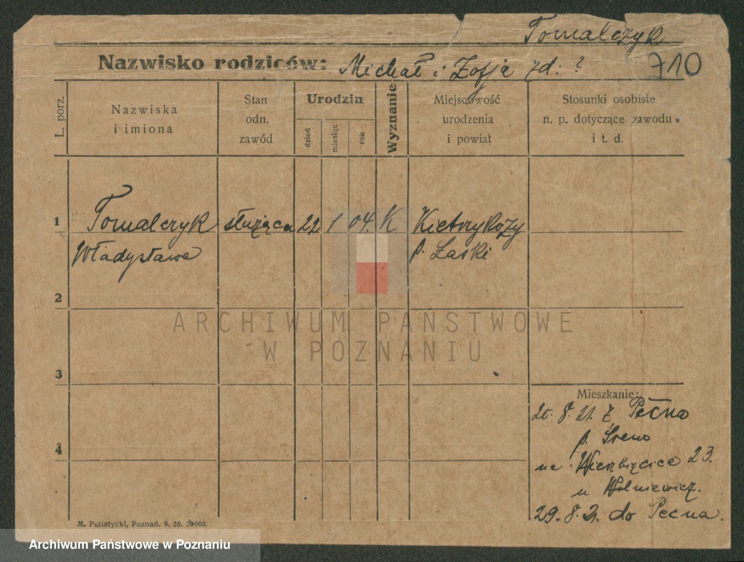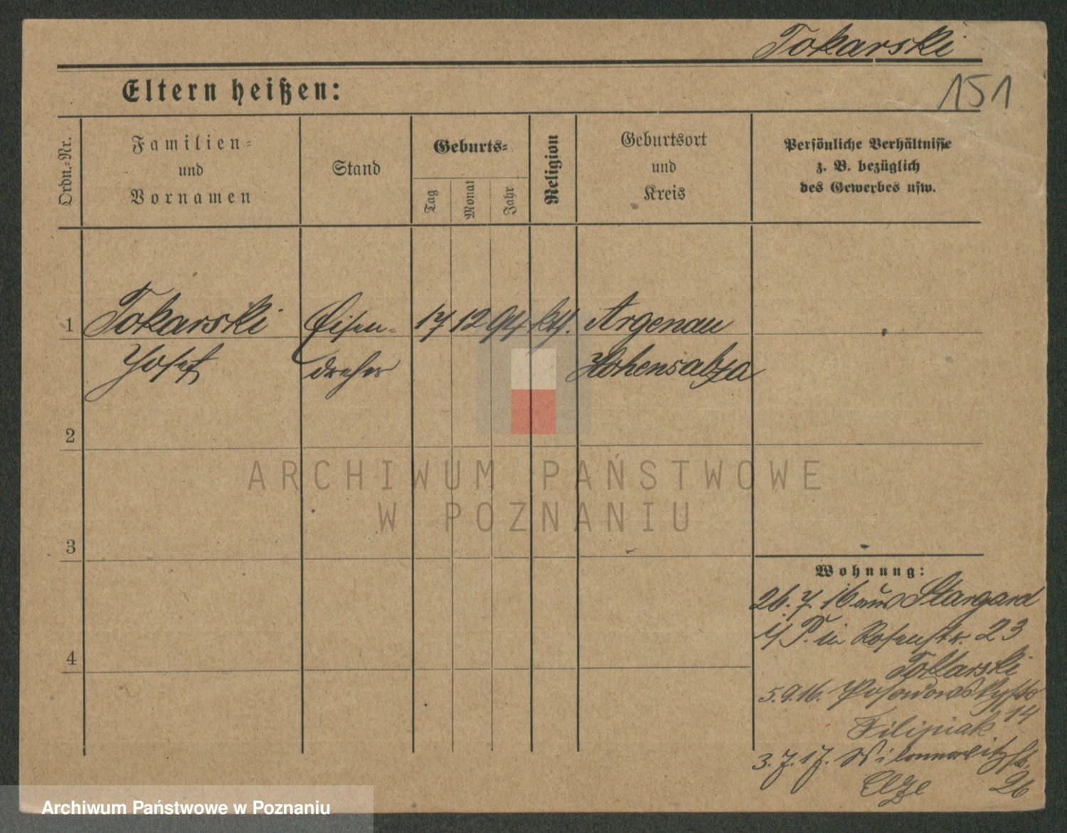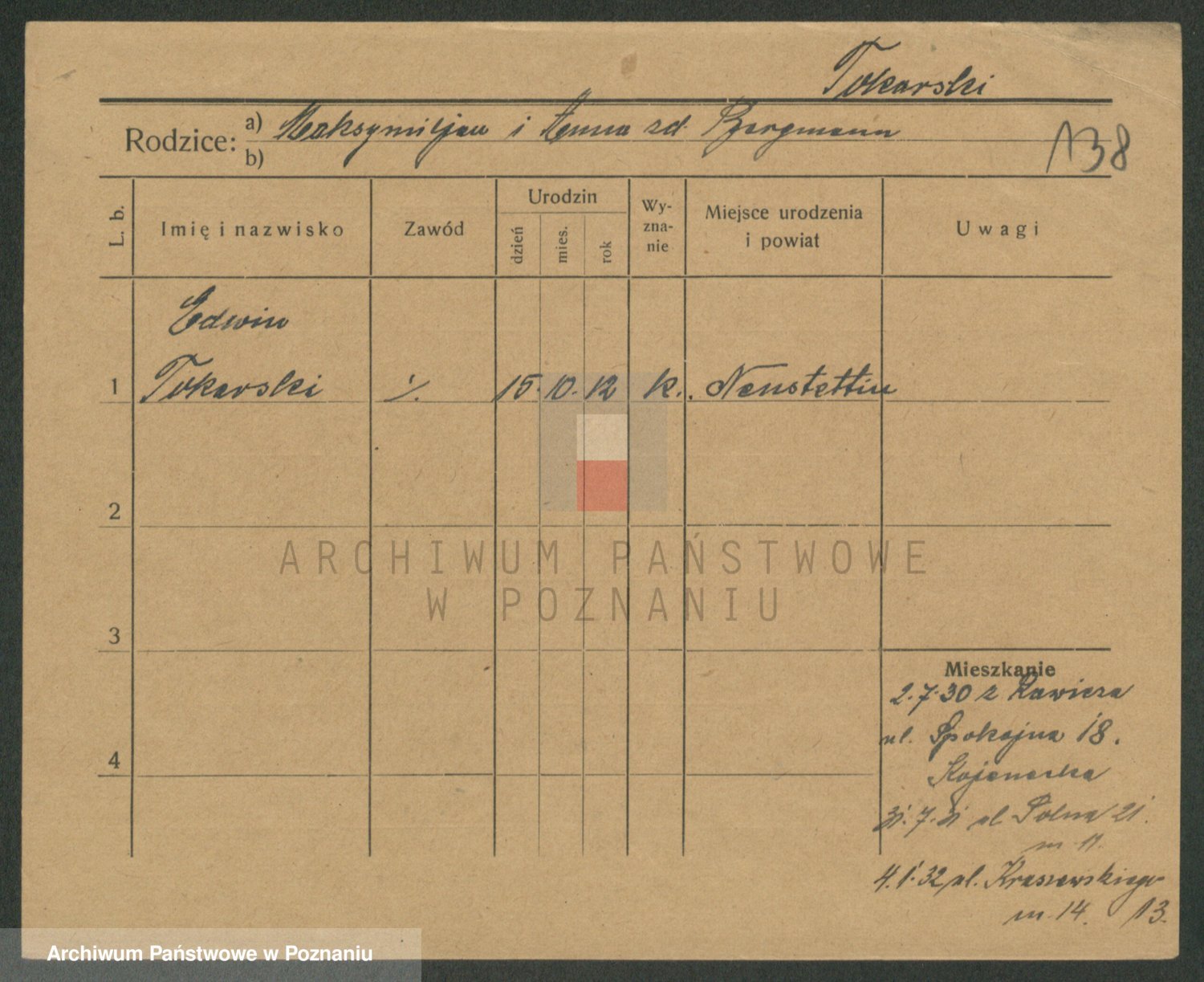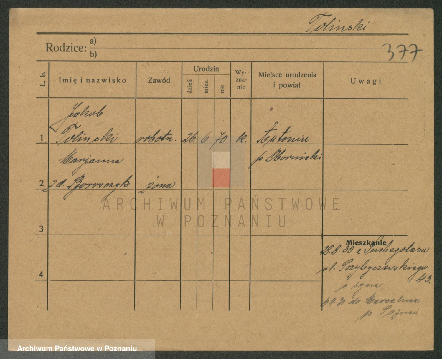 Podgląd karty osobowej dostępny jest po kliknięciu na nazwisko lub ikonkę karty. Można dokonywać powiększenia (ikony na górze) lub przechodzić między kolejnymi skanami (strzałki po bokach).