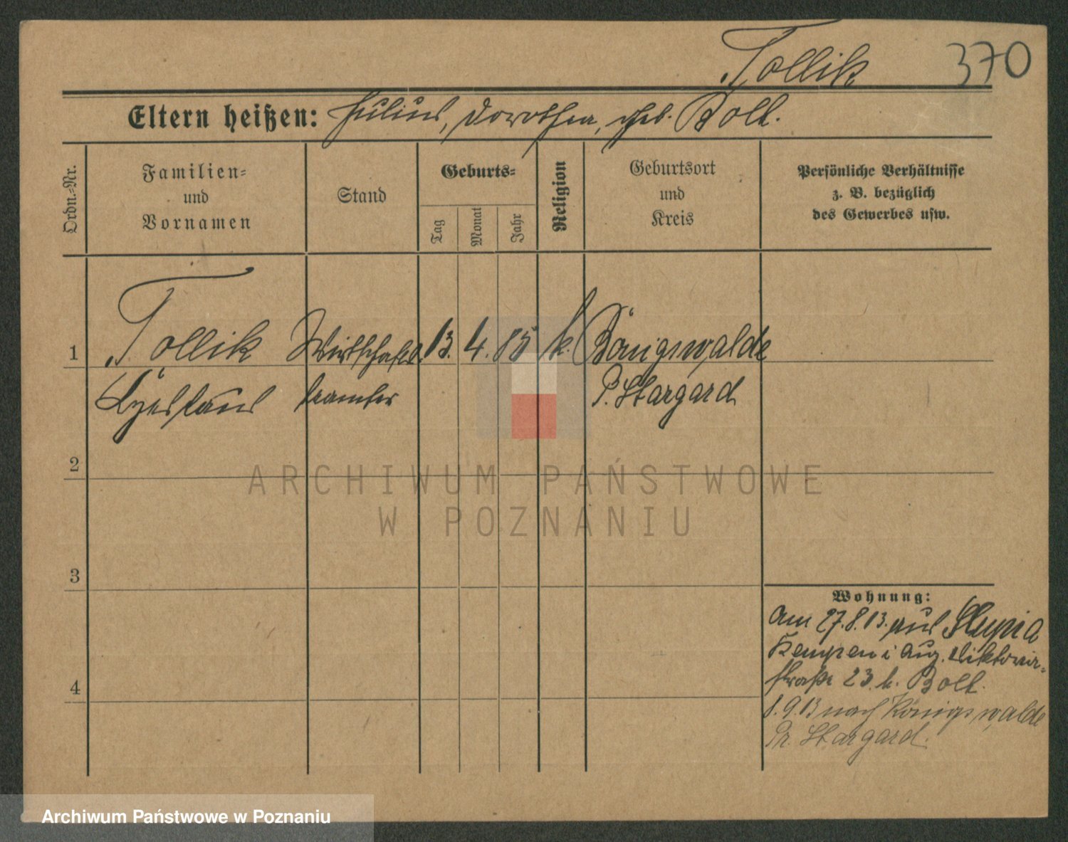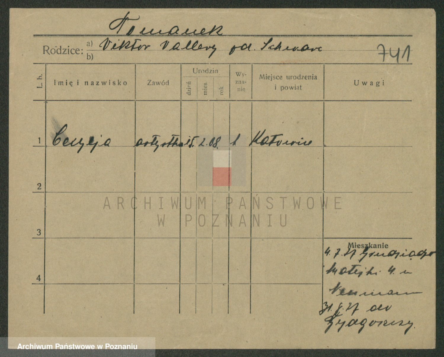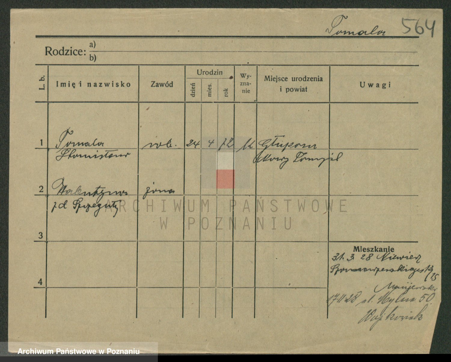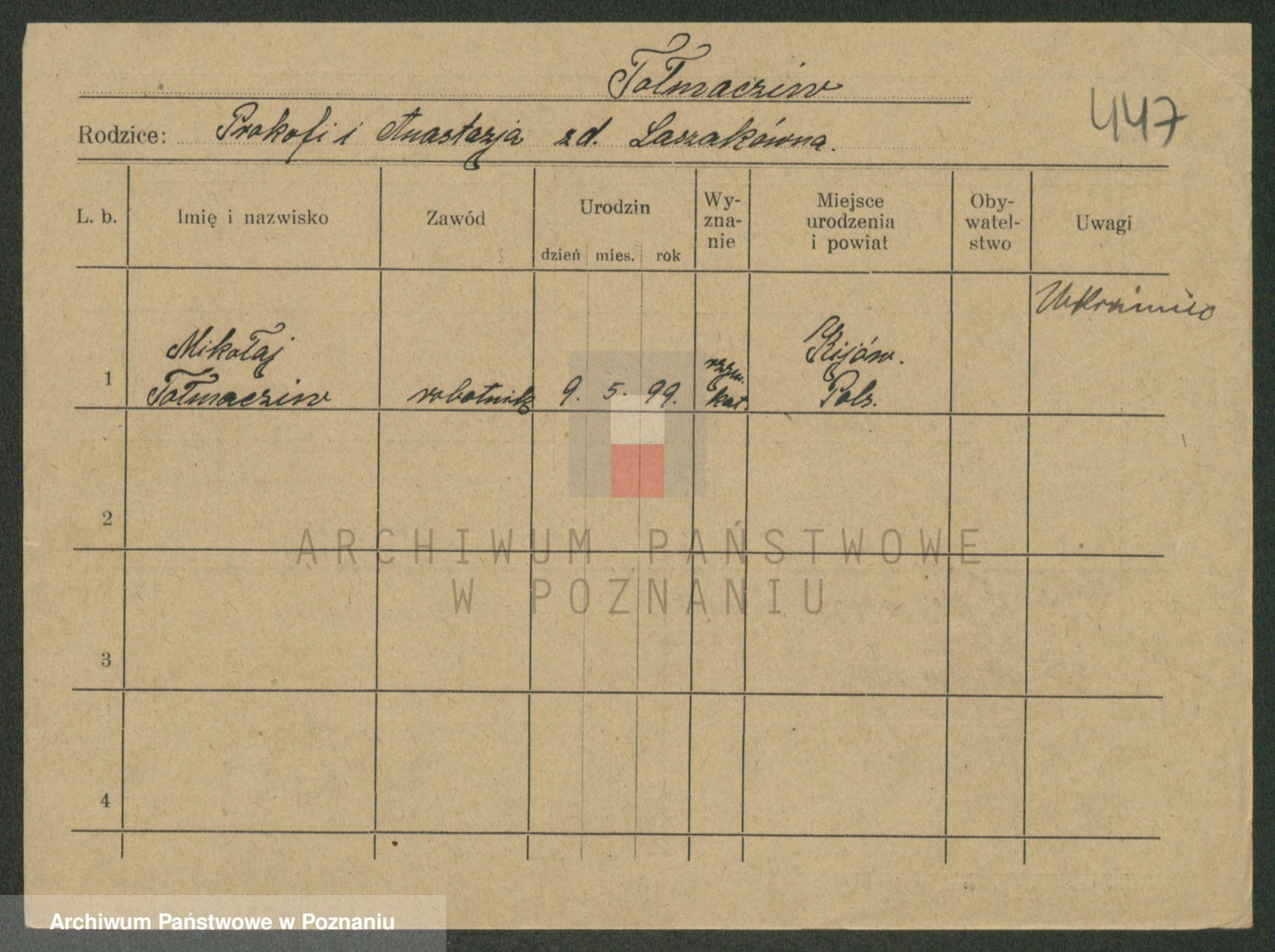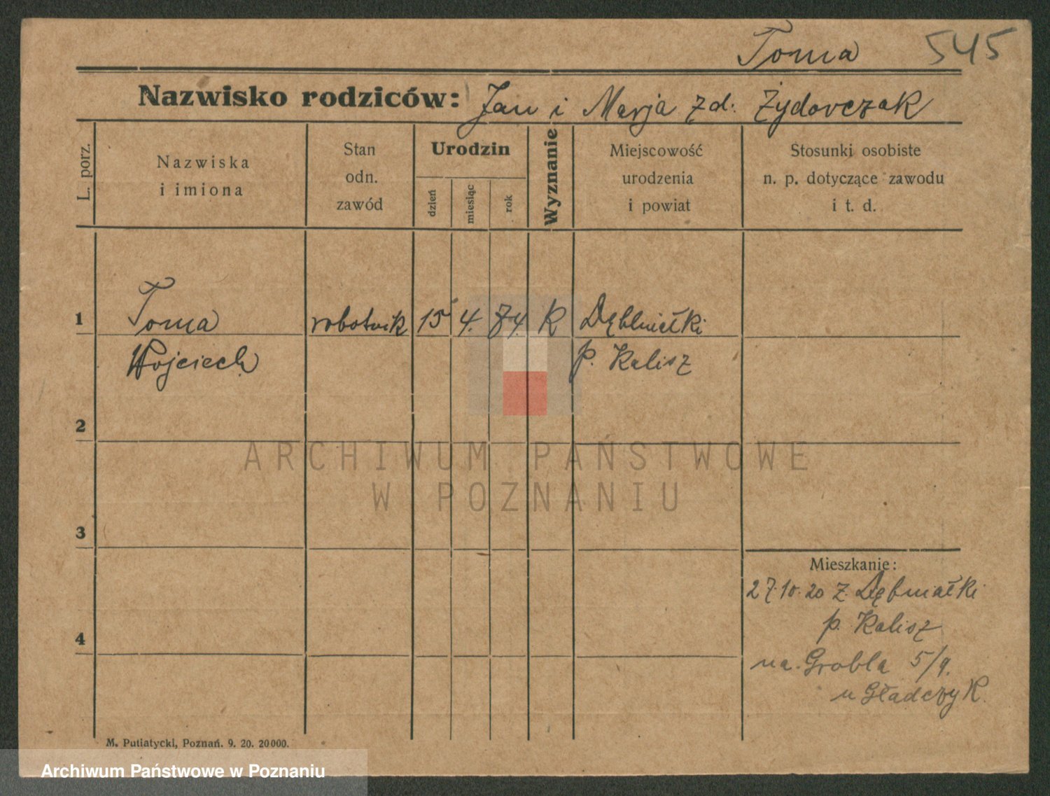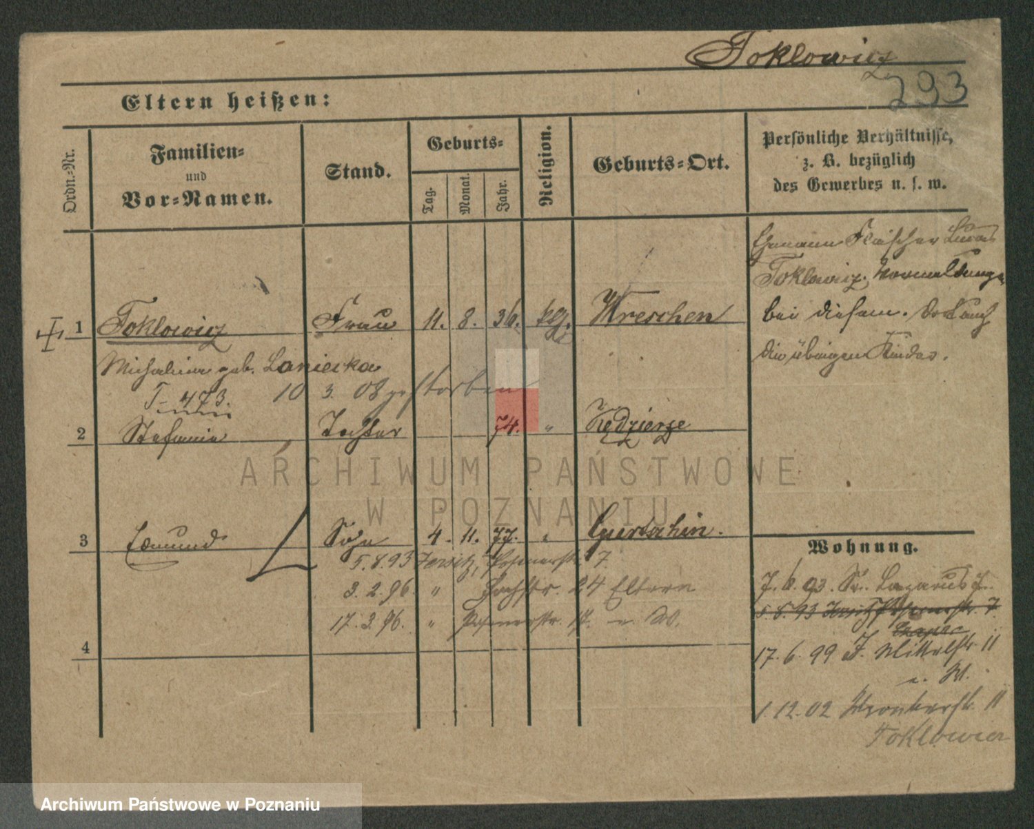 Podgląd karty osobowej dostępny jest po kliknięciu na nazwisko lub ikonkę karty. Można dokonywać powiększenia (ikony na górze) lub przechodzić między kolejnymi skanami (strzałki po bokach).