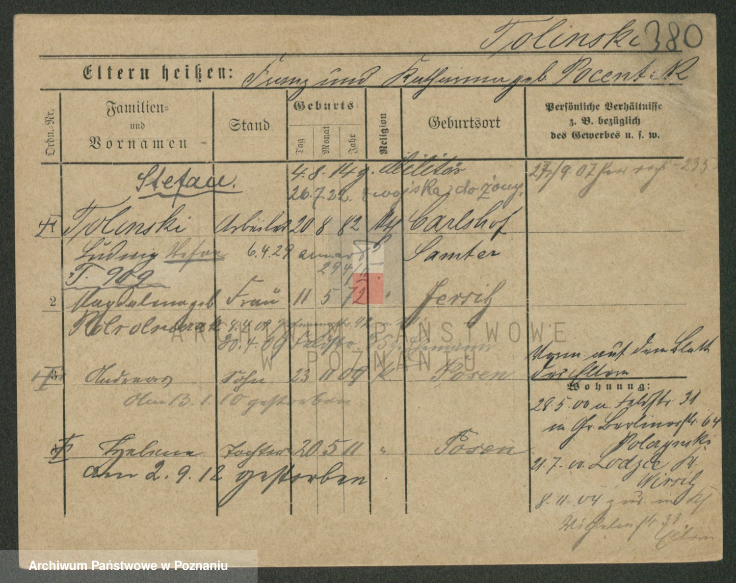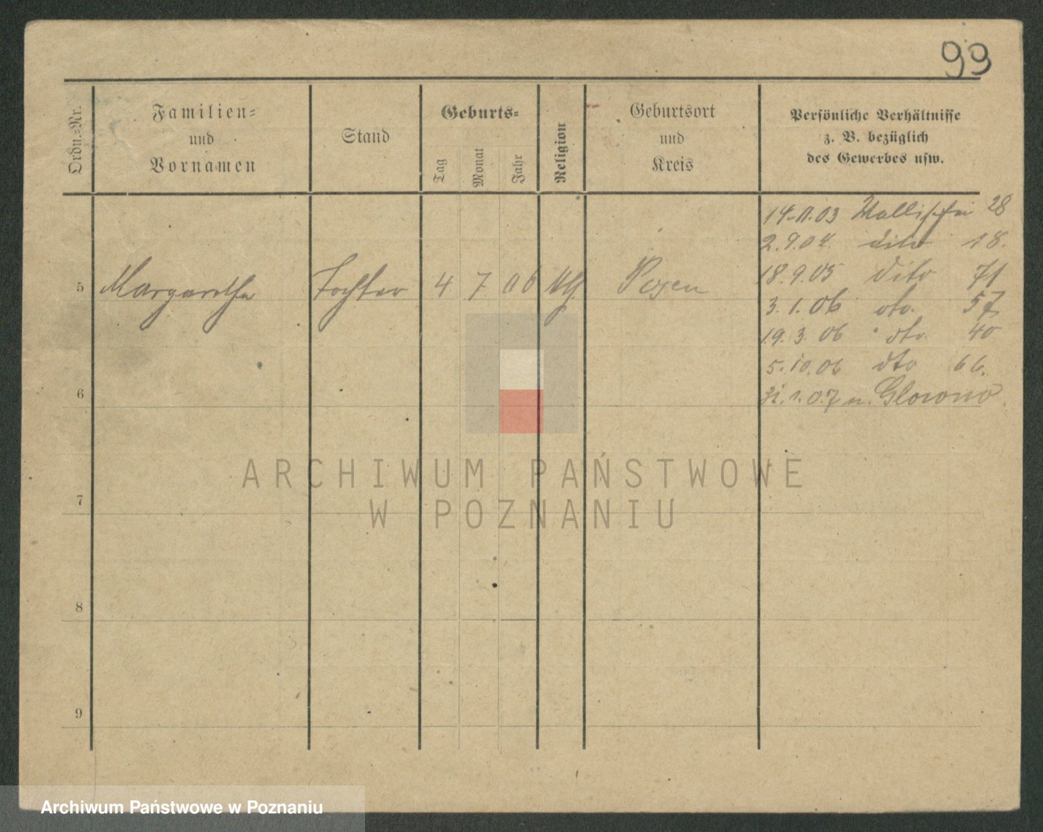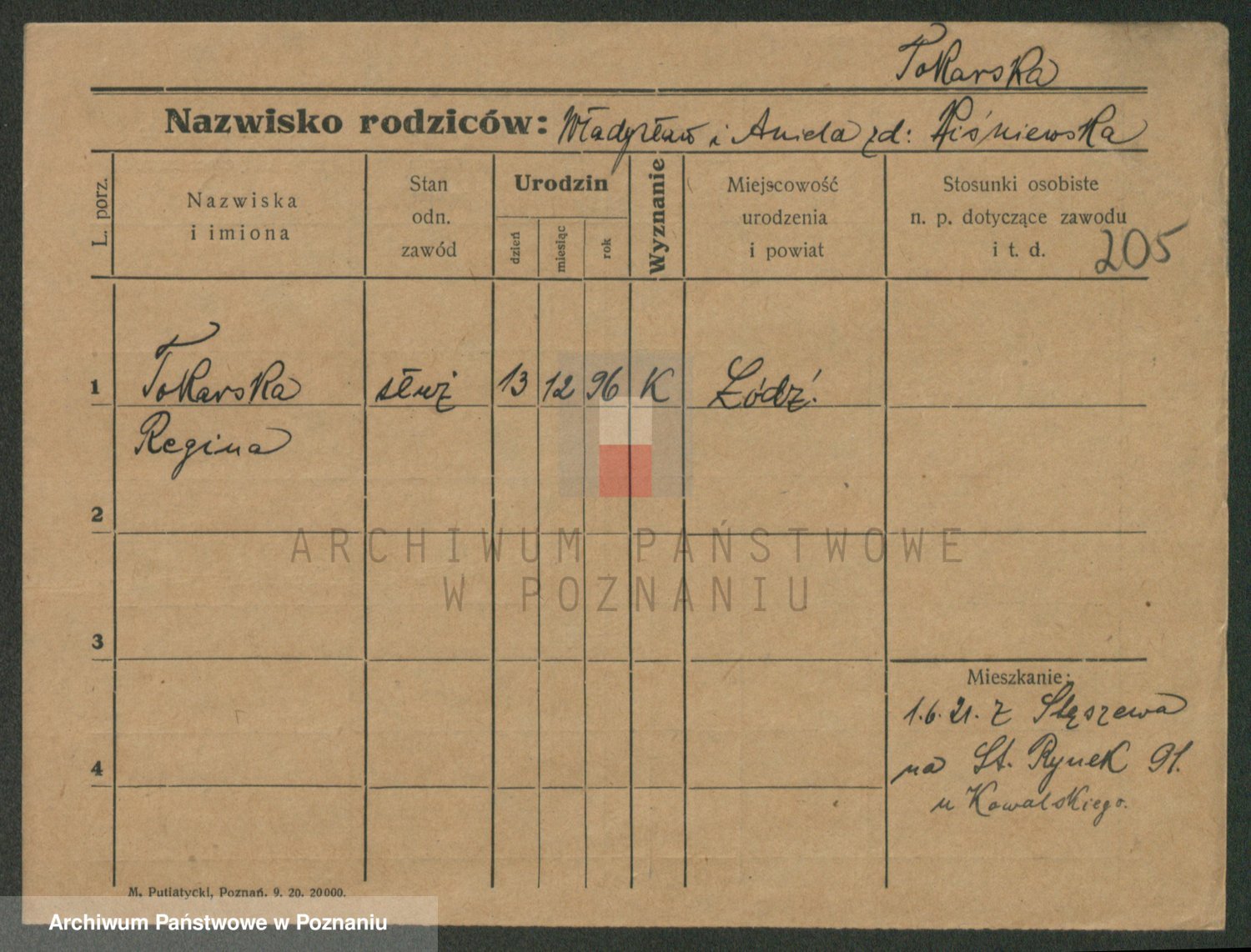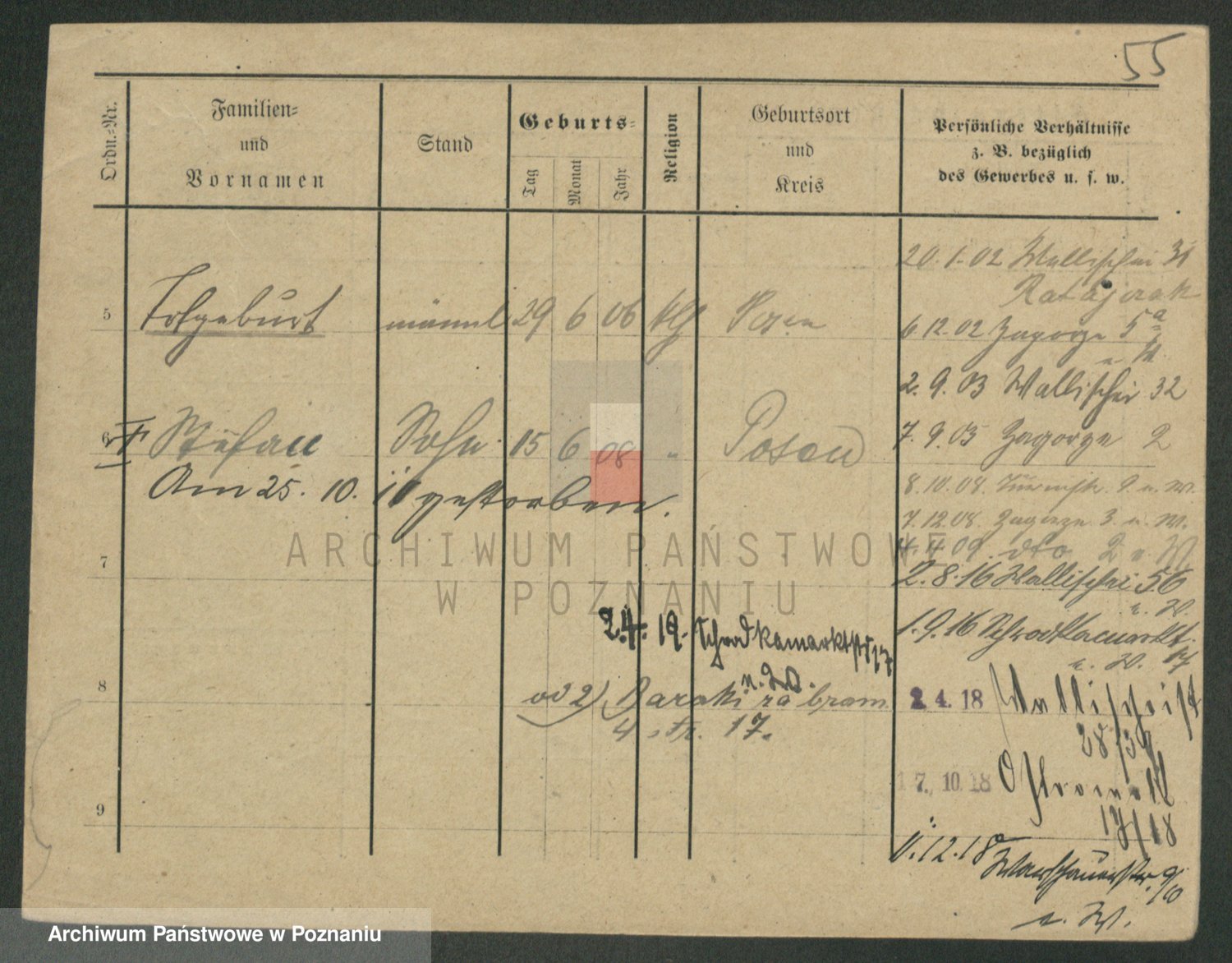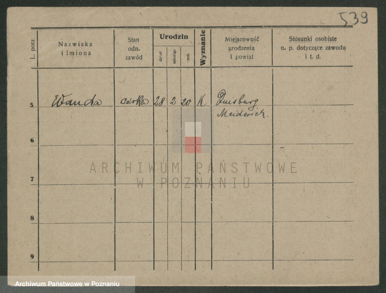 Podgląd karty osobowej dostępny jest po kliknięciu na nazwisko lub ikonkę karty. Można dokonywać powiększenia (ikony na górze) lub przechodzić między kolejnymi skanami (strzałki po bokach).