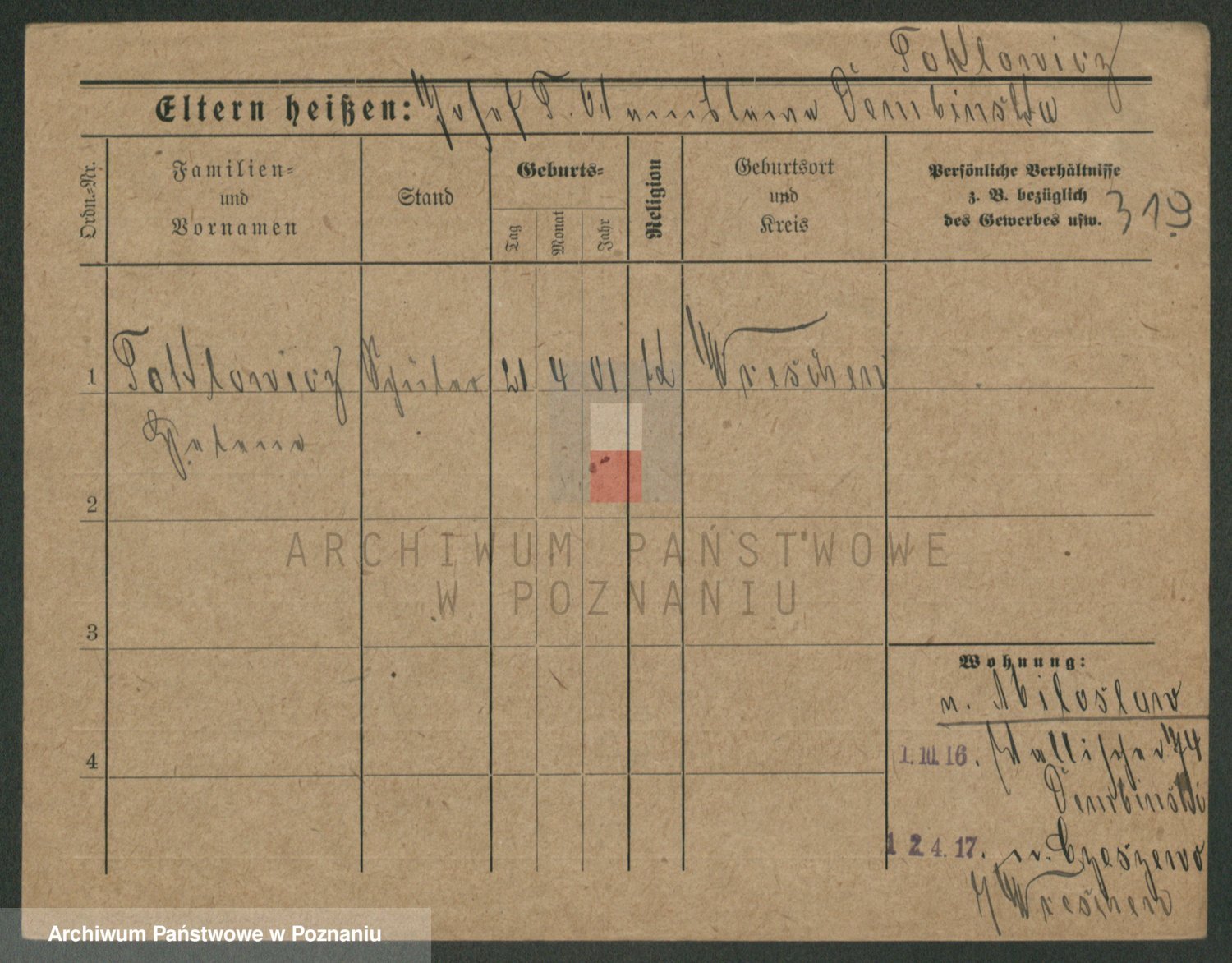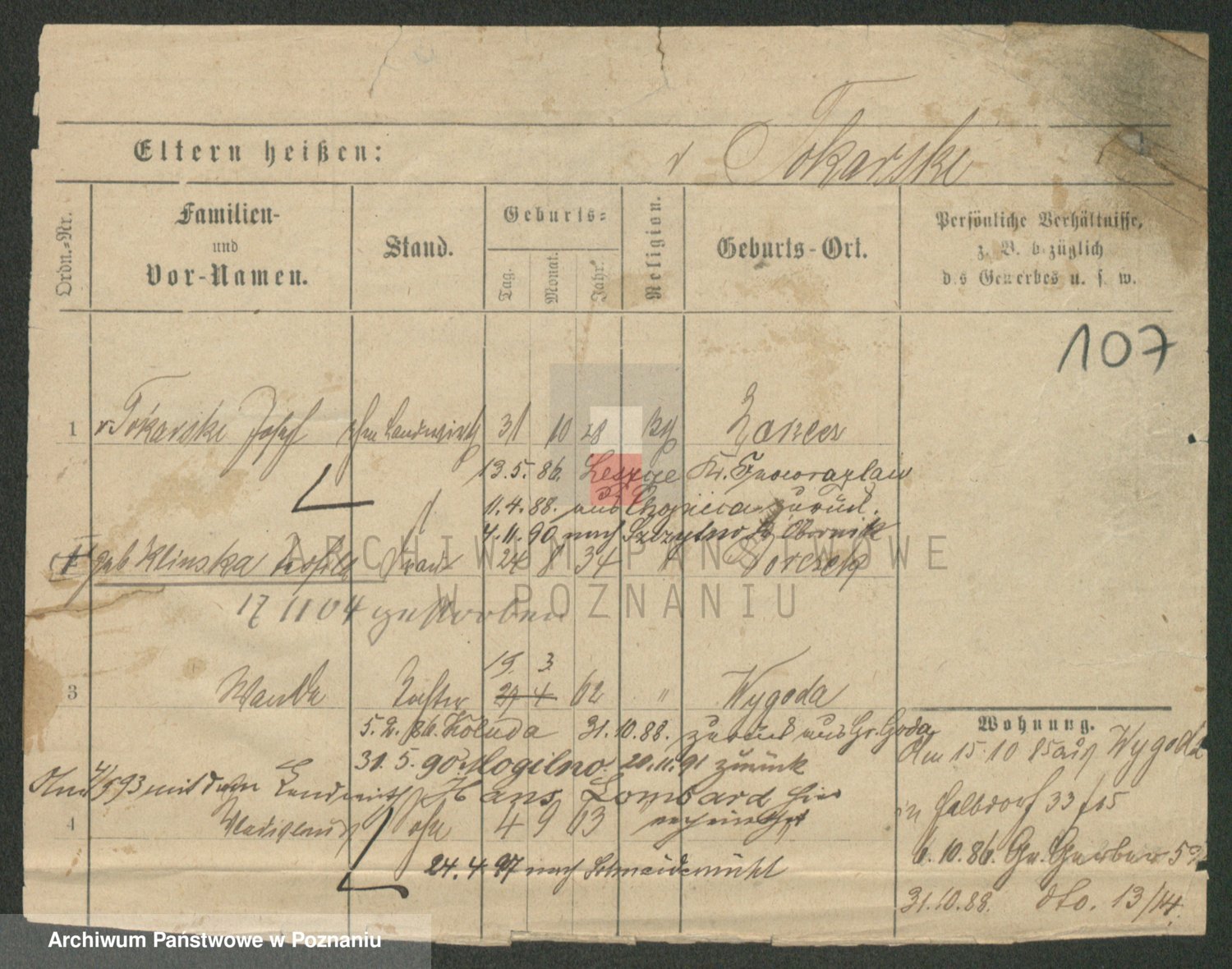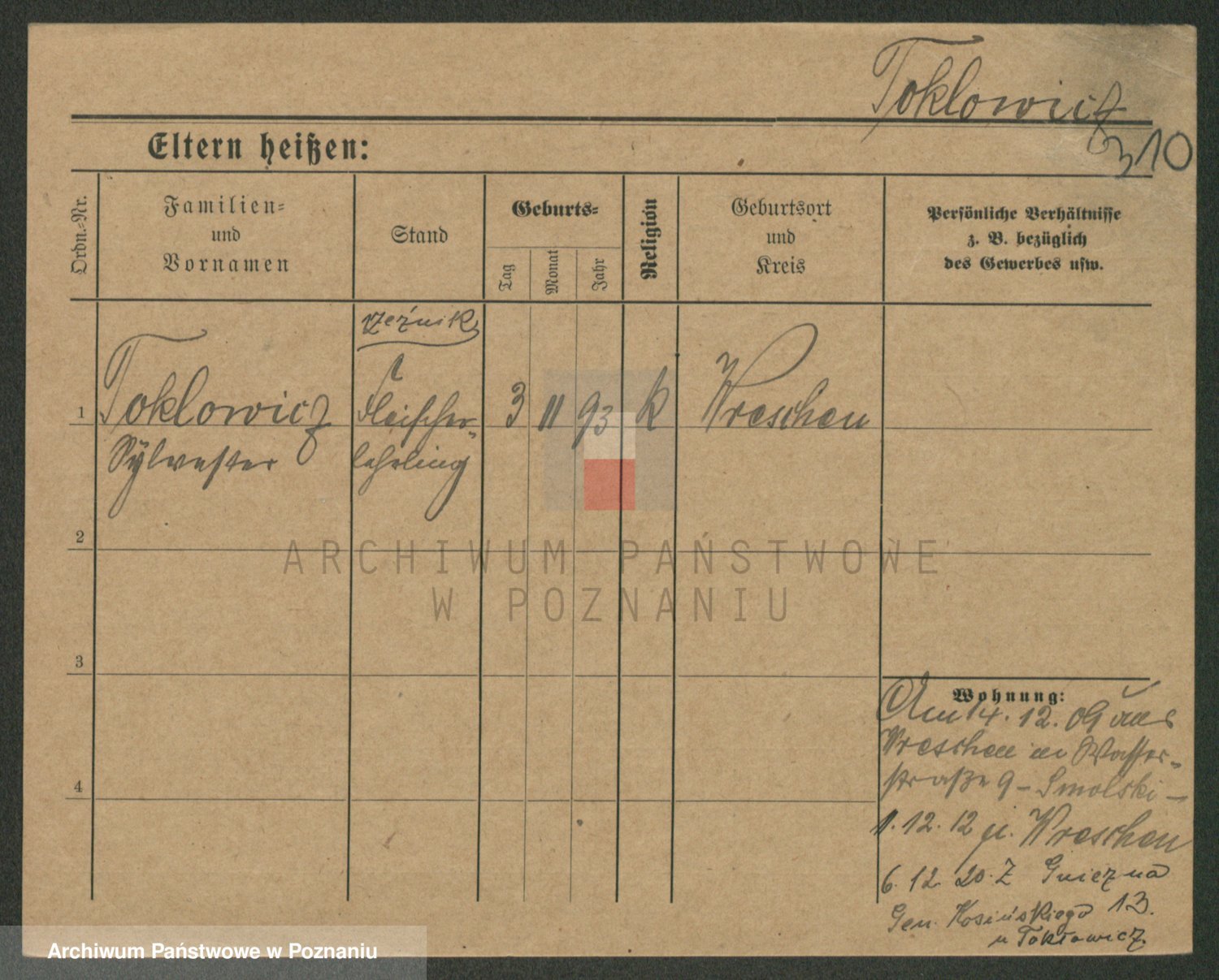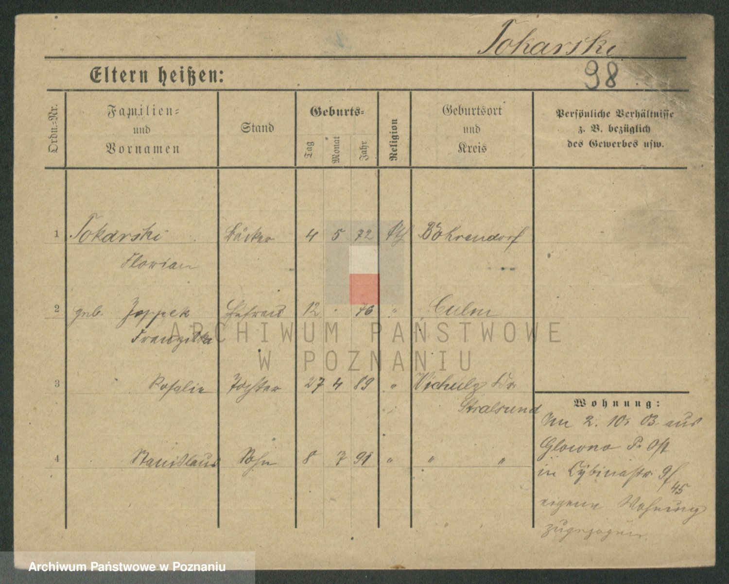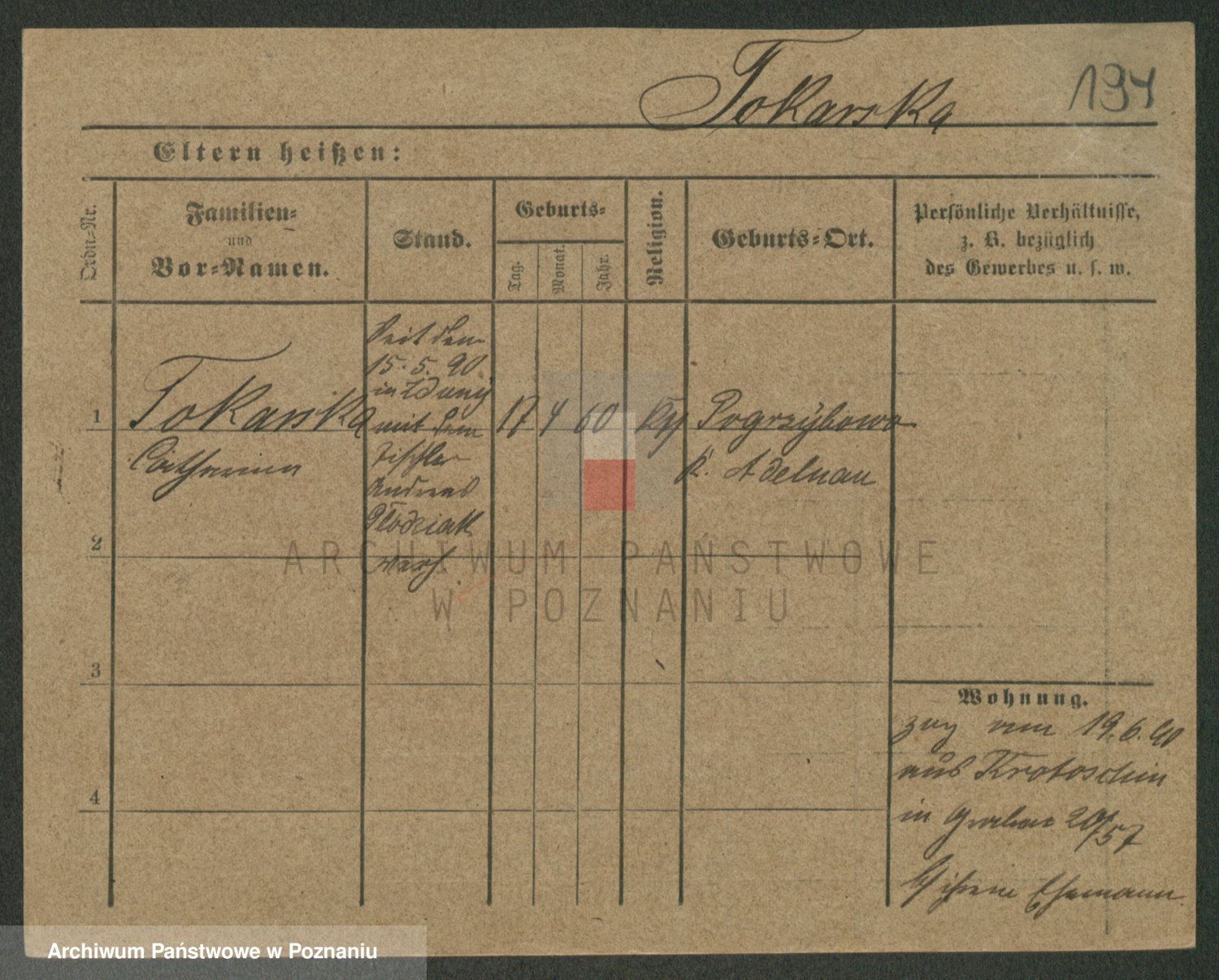 Podgląd karty osobowej dostępny jest po kliknięciu na nazwisko lub ikonkę karty. Można dokonywać powiększenia (ikony na górze) lub przechodzić między kolejnymi skanami (strzałki po bokach).