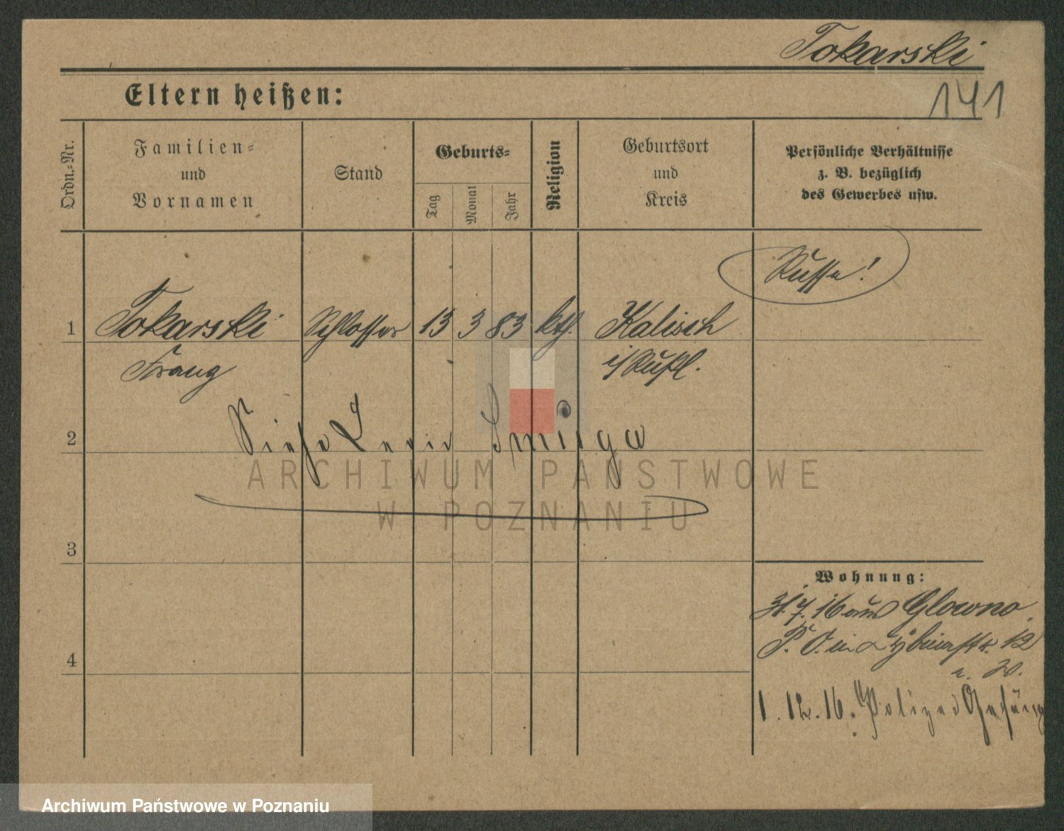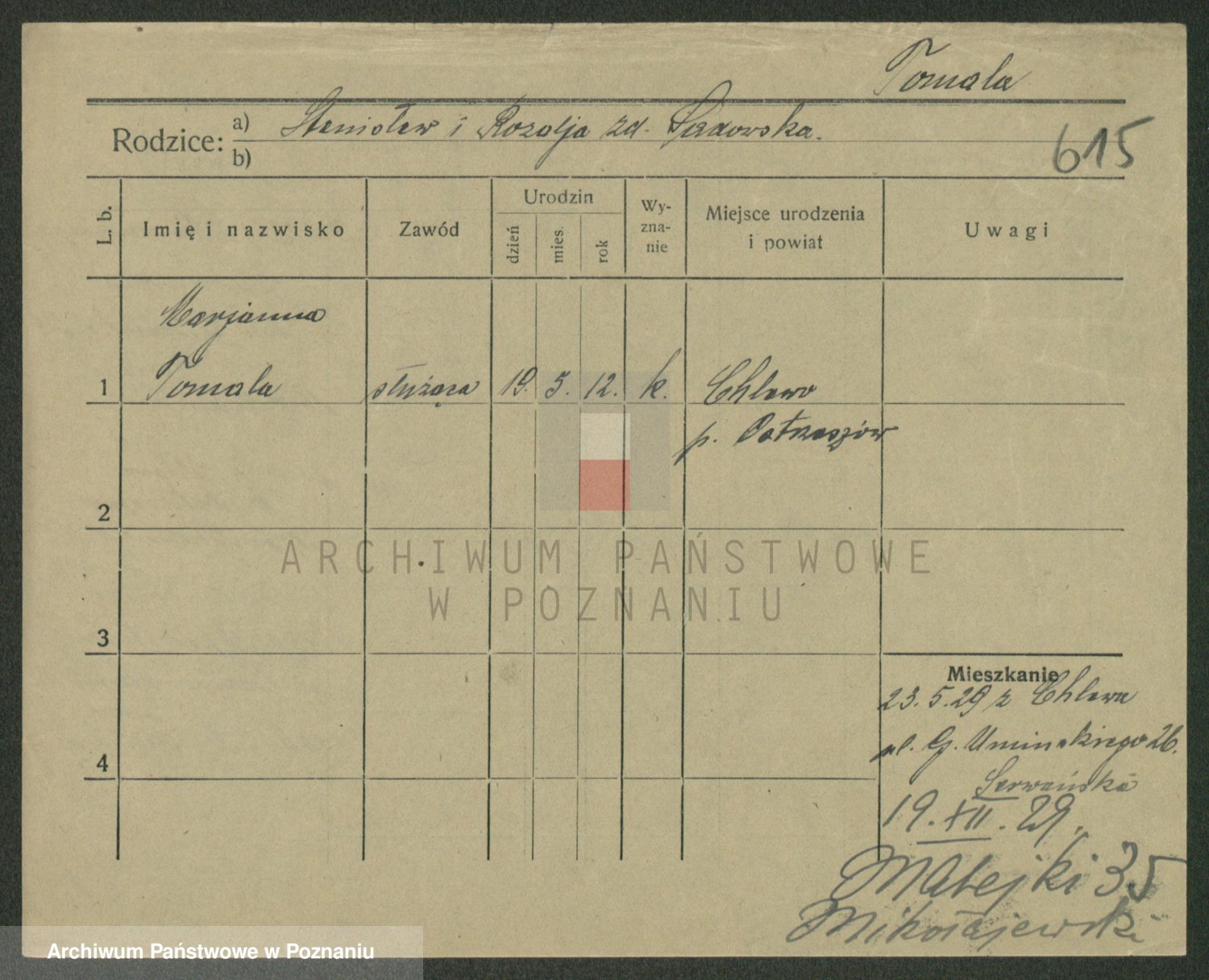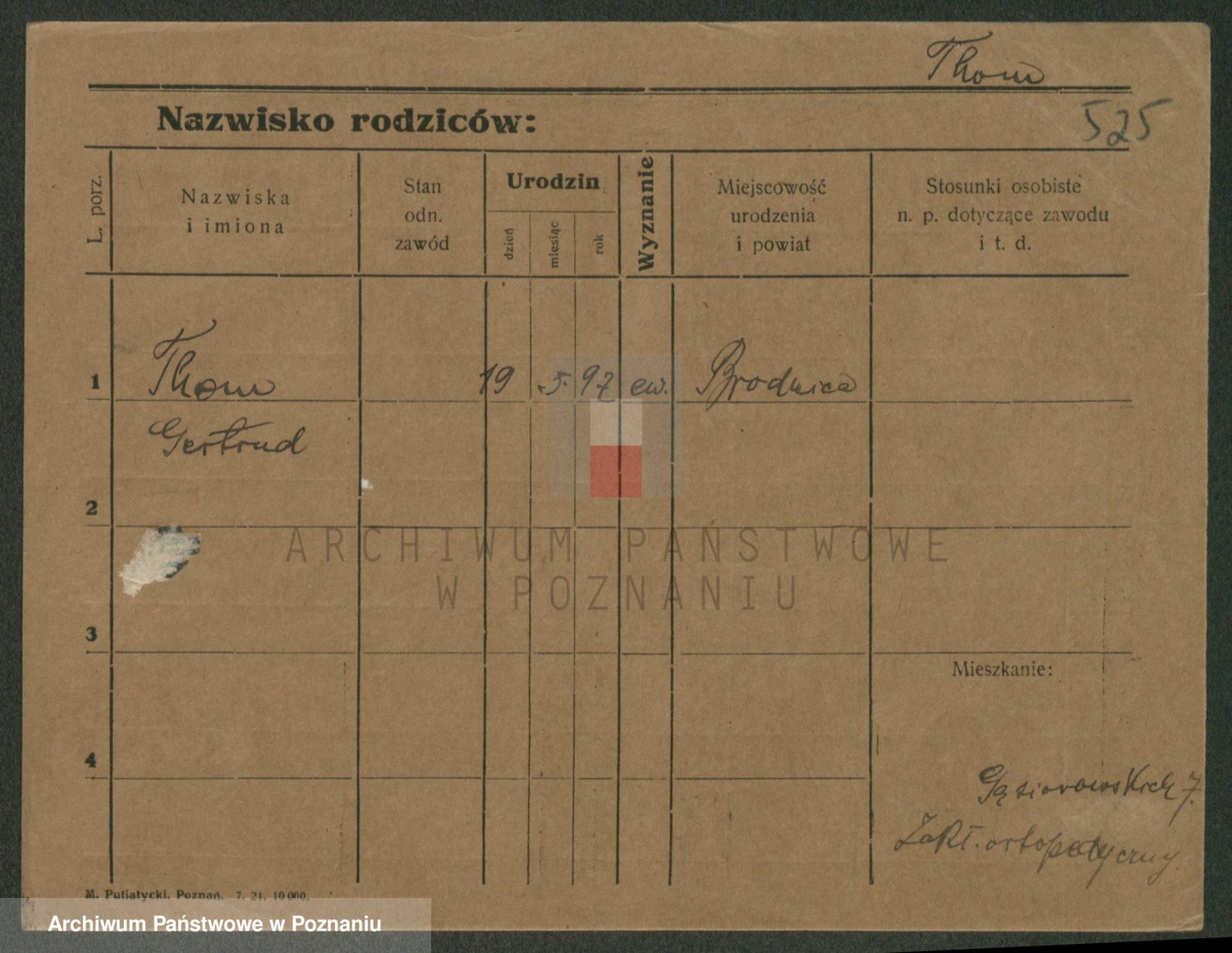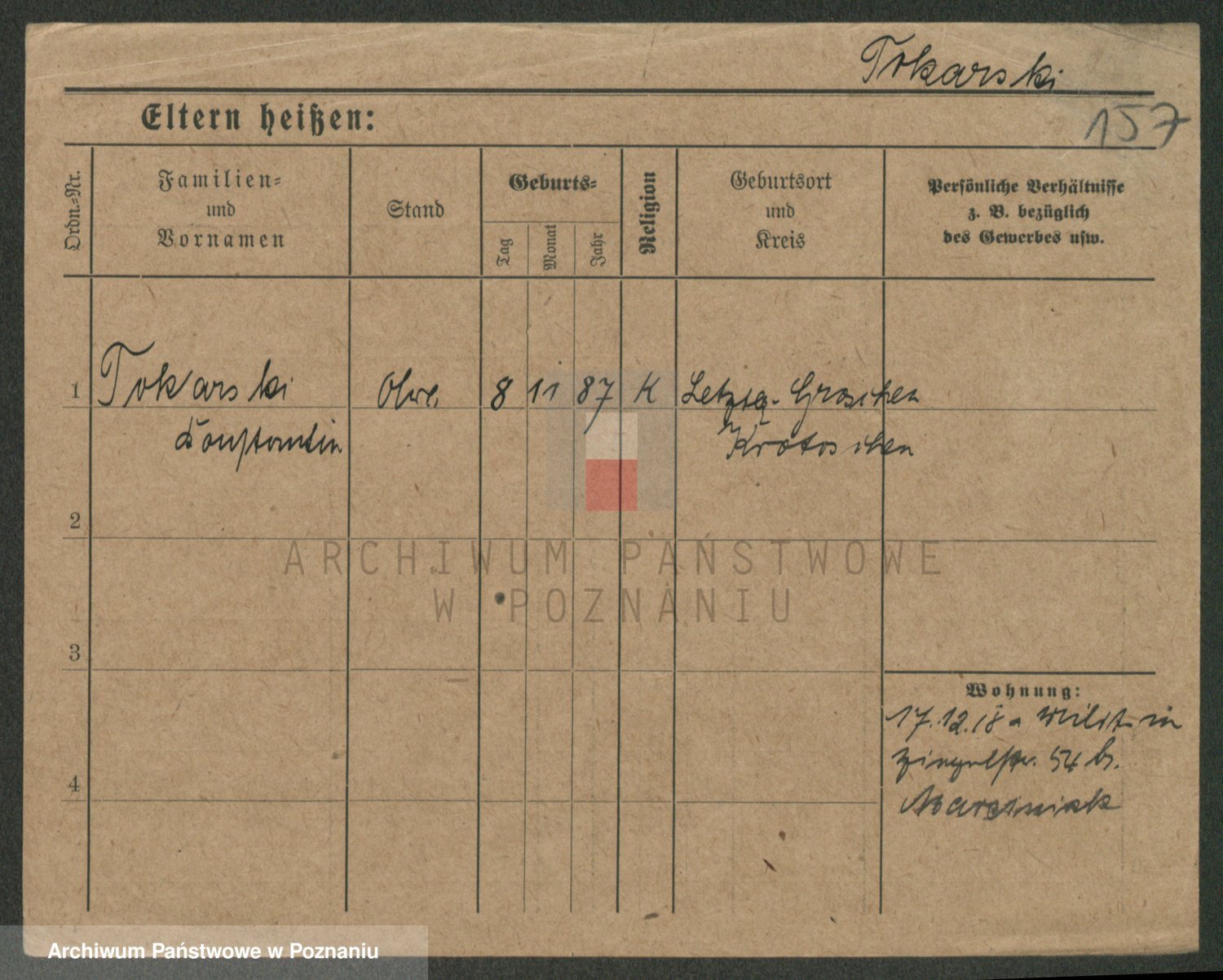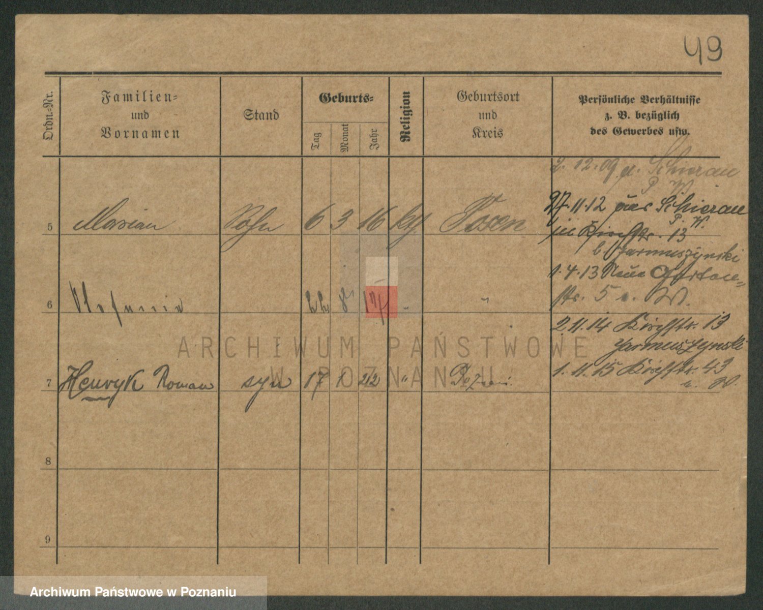 Podgląd karty osobowej dostępny jest po kliknięciu na nazwisko lub ikonkę karty. Można dokonywać powiększenia (ikony na górze) lub przechodzić między kolejnymi skanami (strzałki po bokach).
