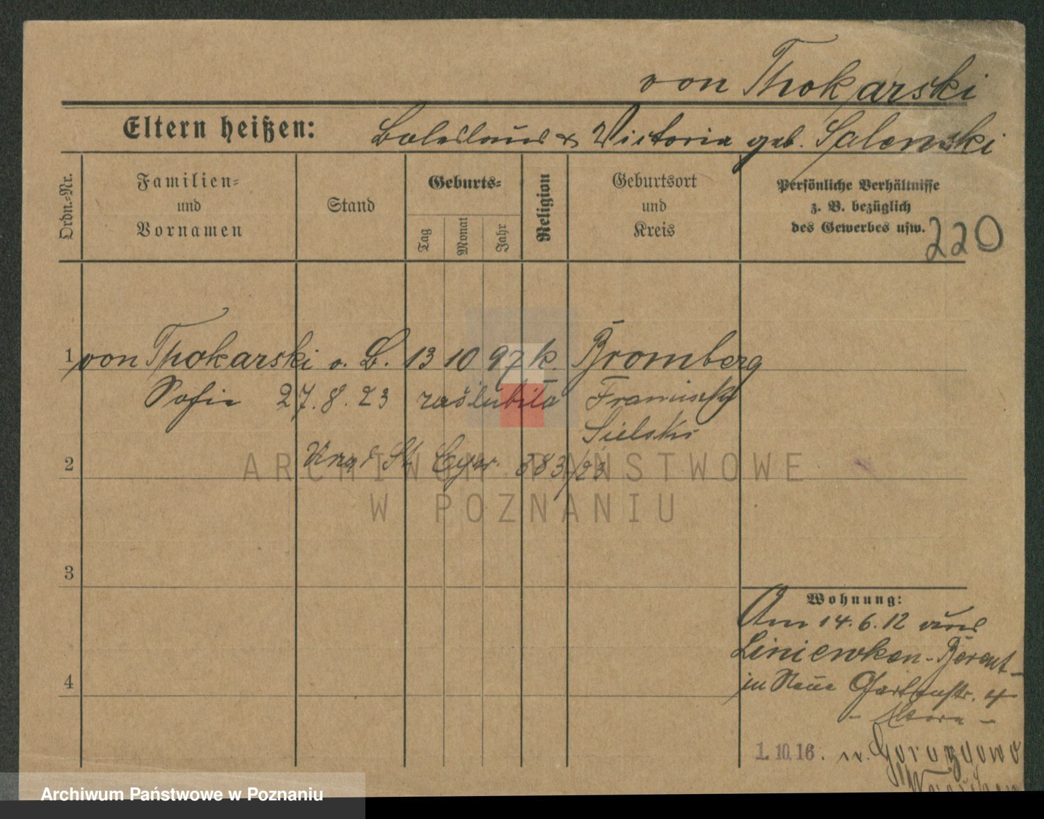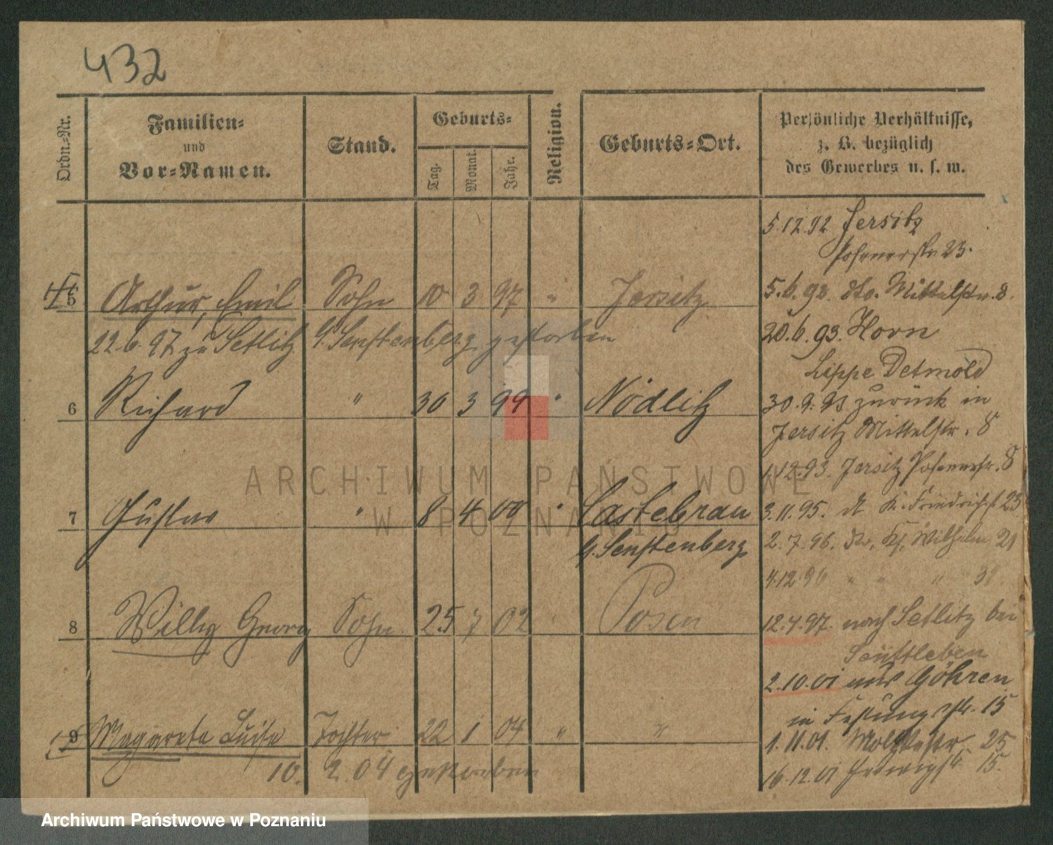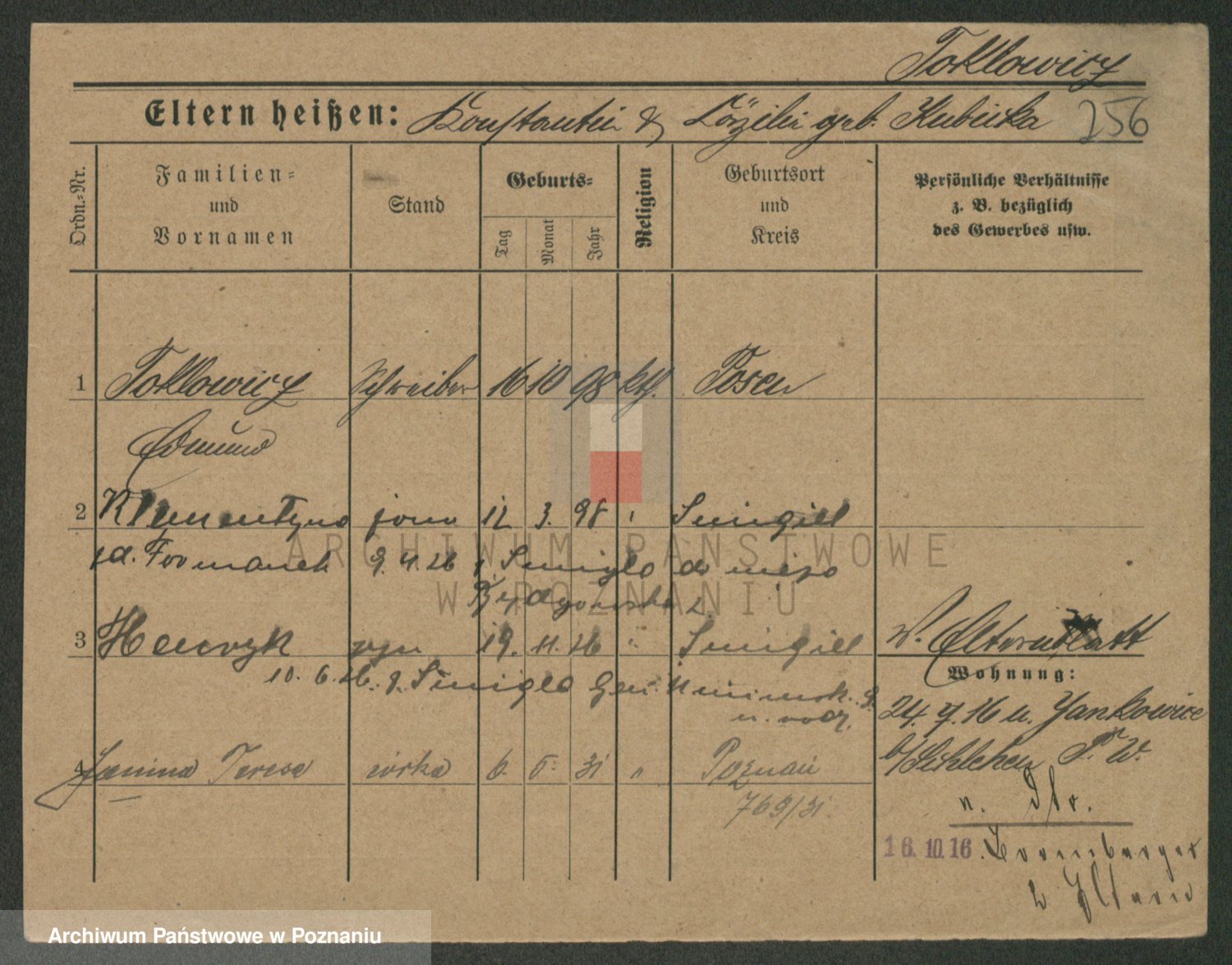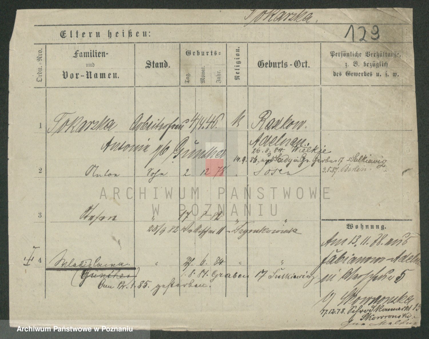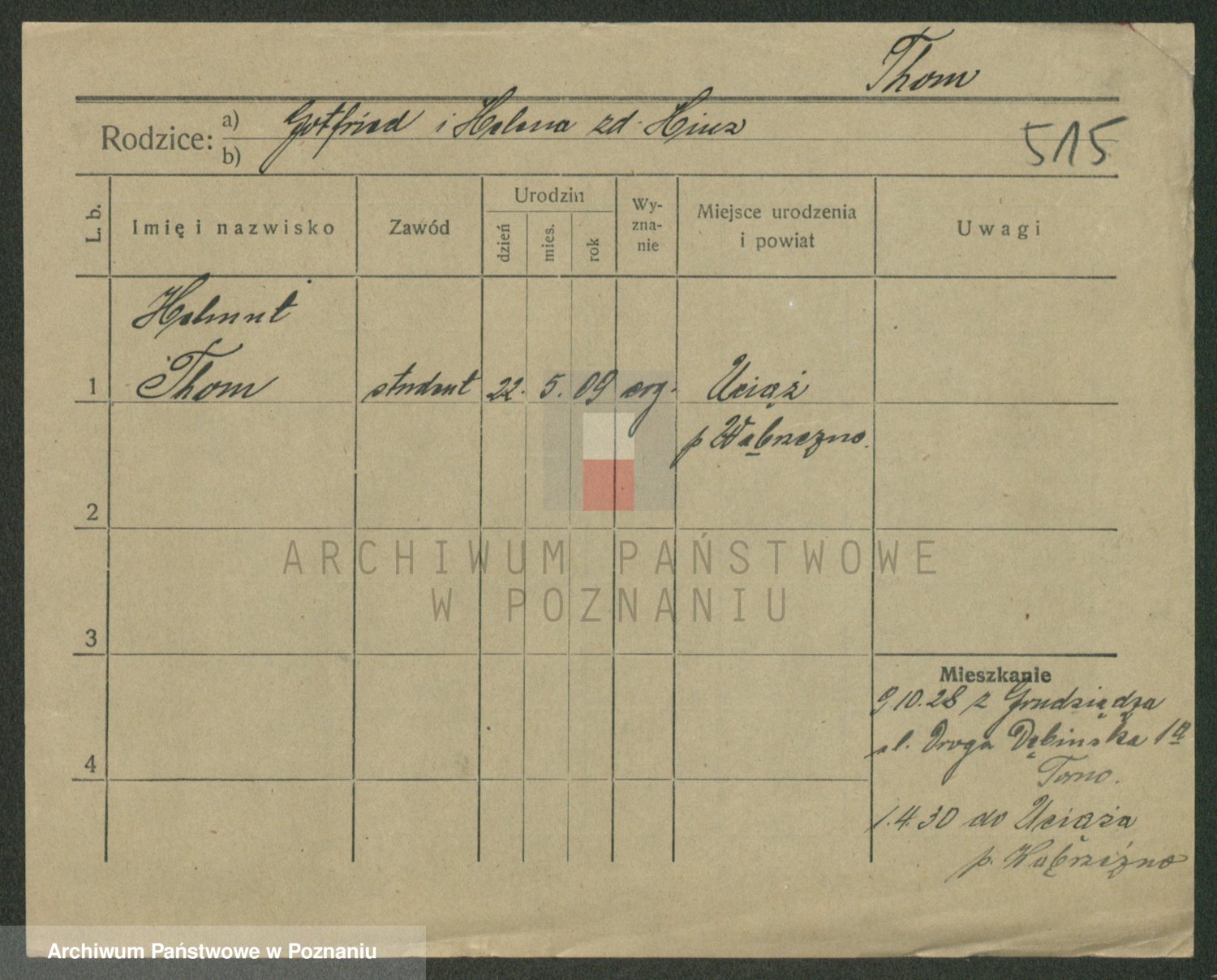 Podgląd karty osobowej dostępny jest po kliknięciu na nazwisko lub ikonkę karty. Można dokonywać powiększenia (ikony na górze) lub przechodzić między kolejnymi skanami (strzałki po bokach).