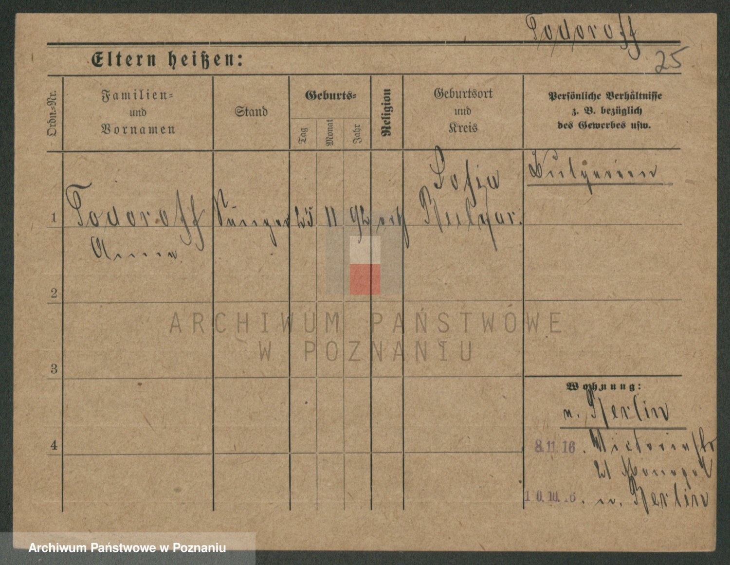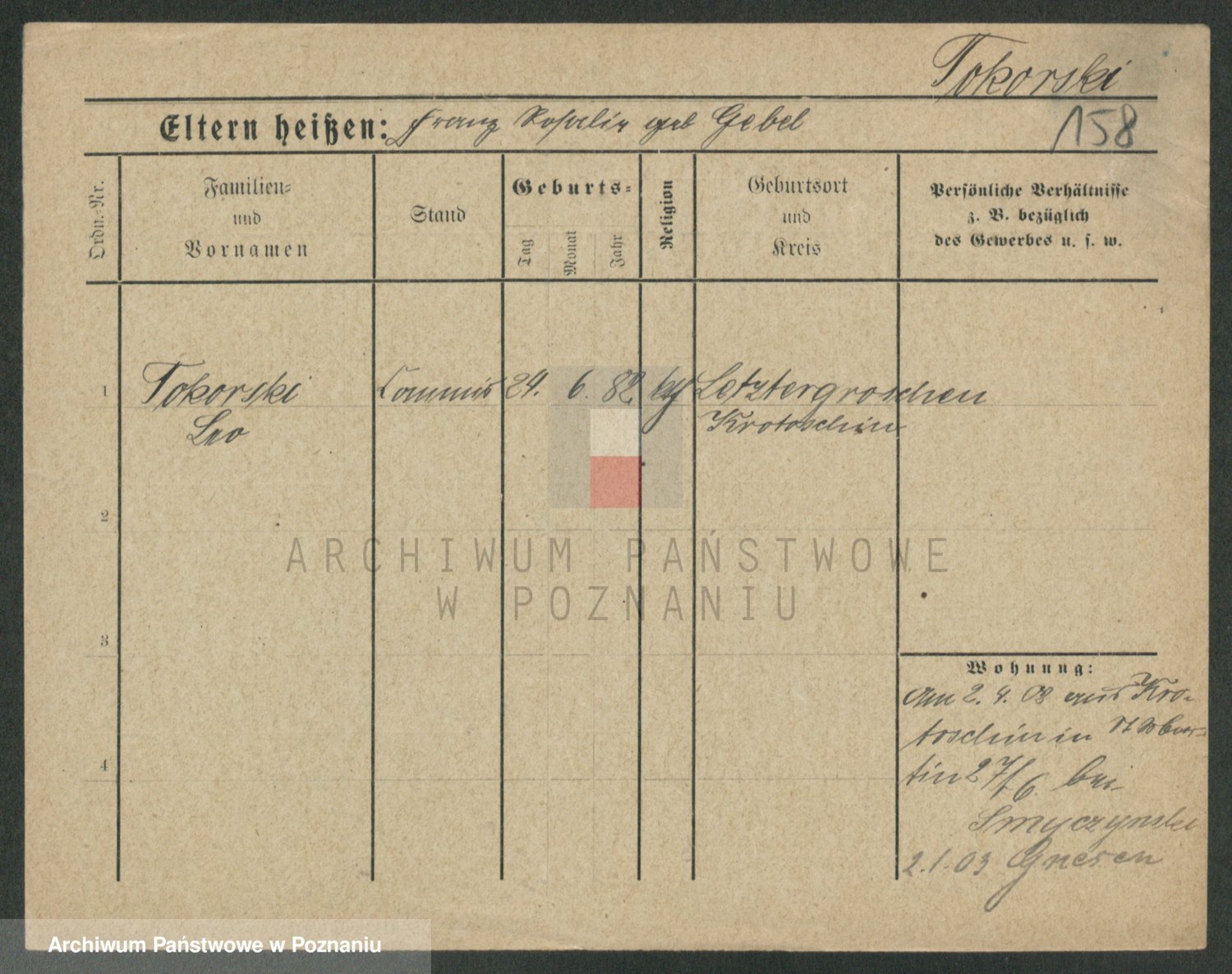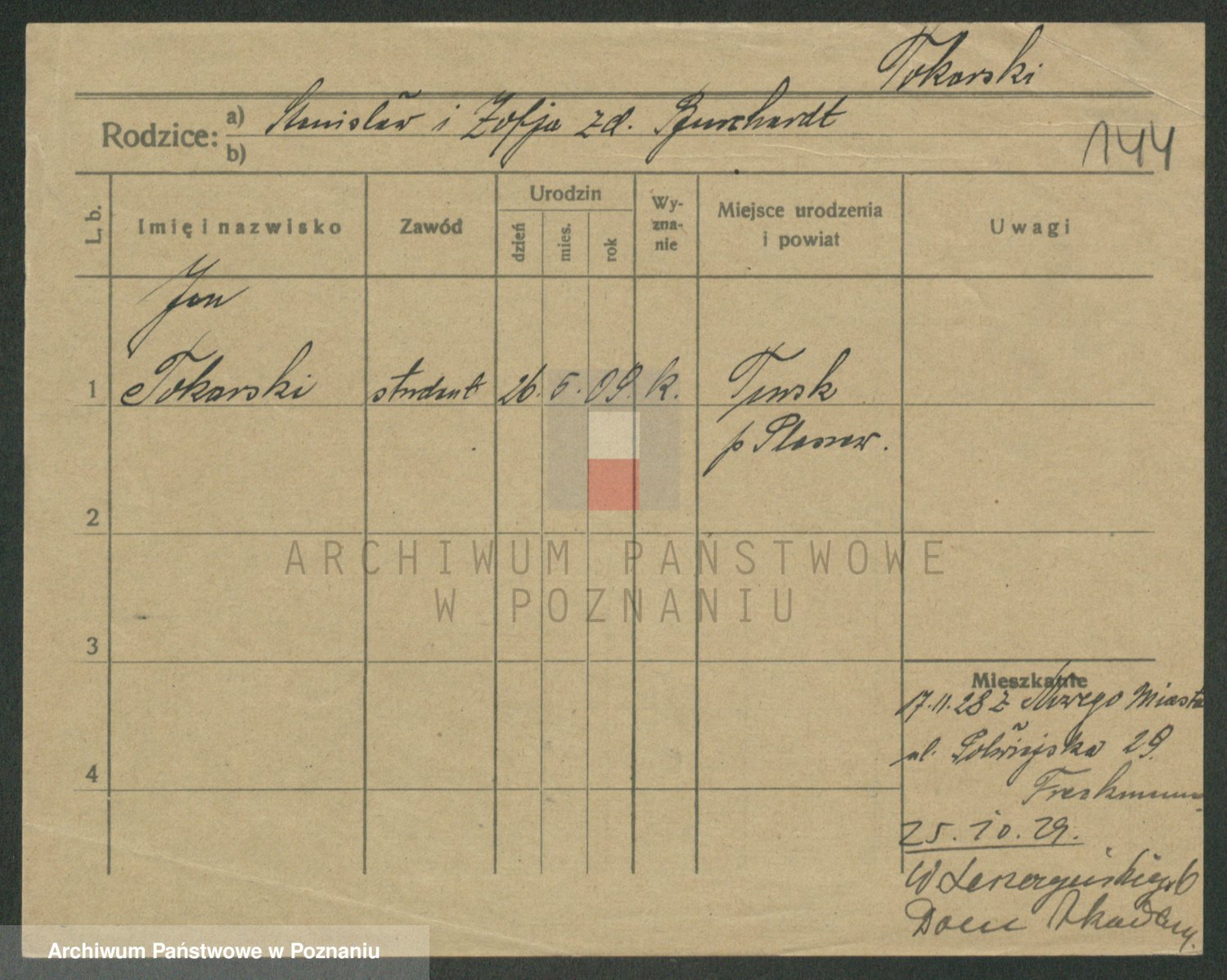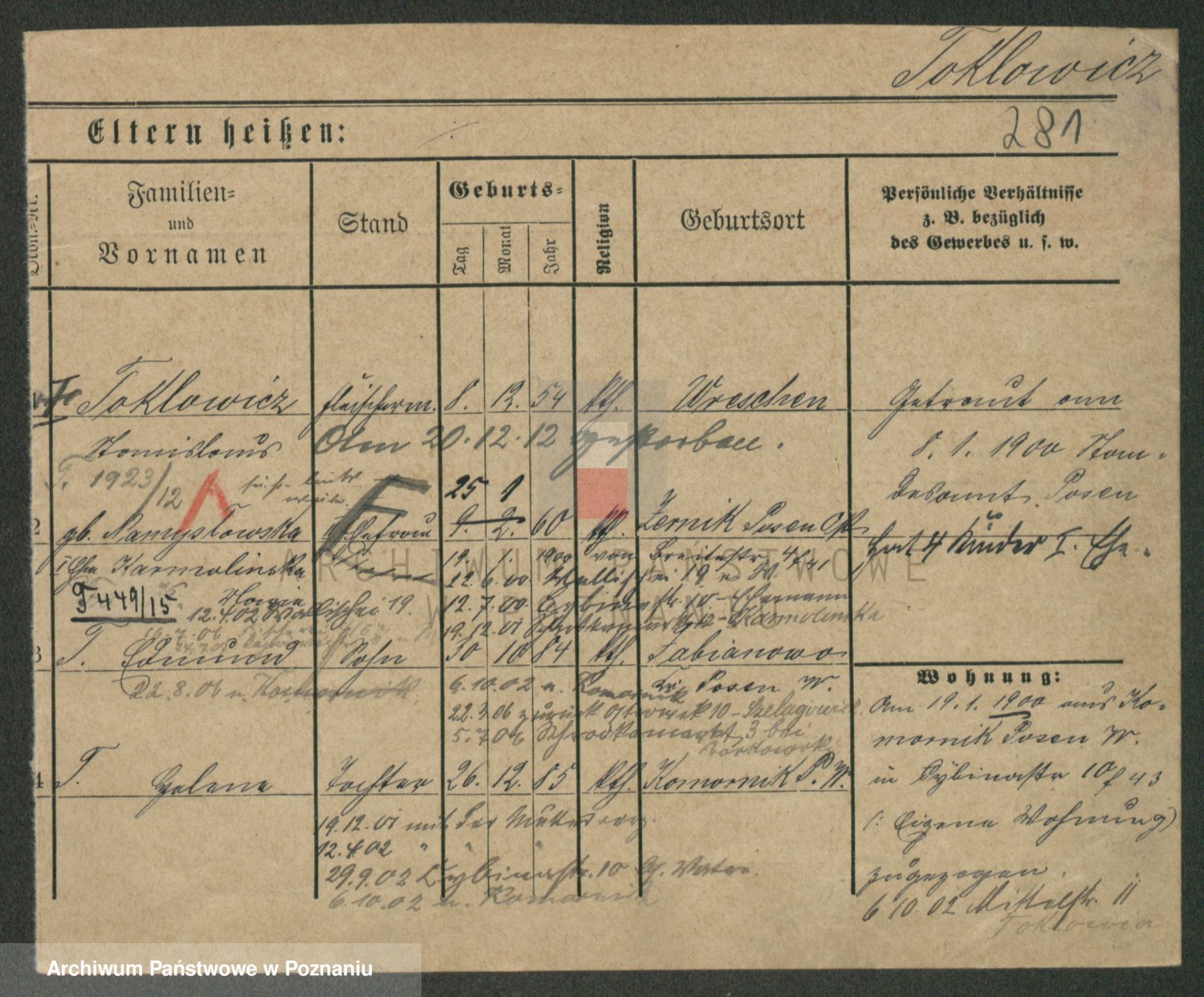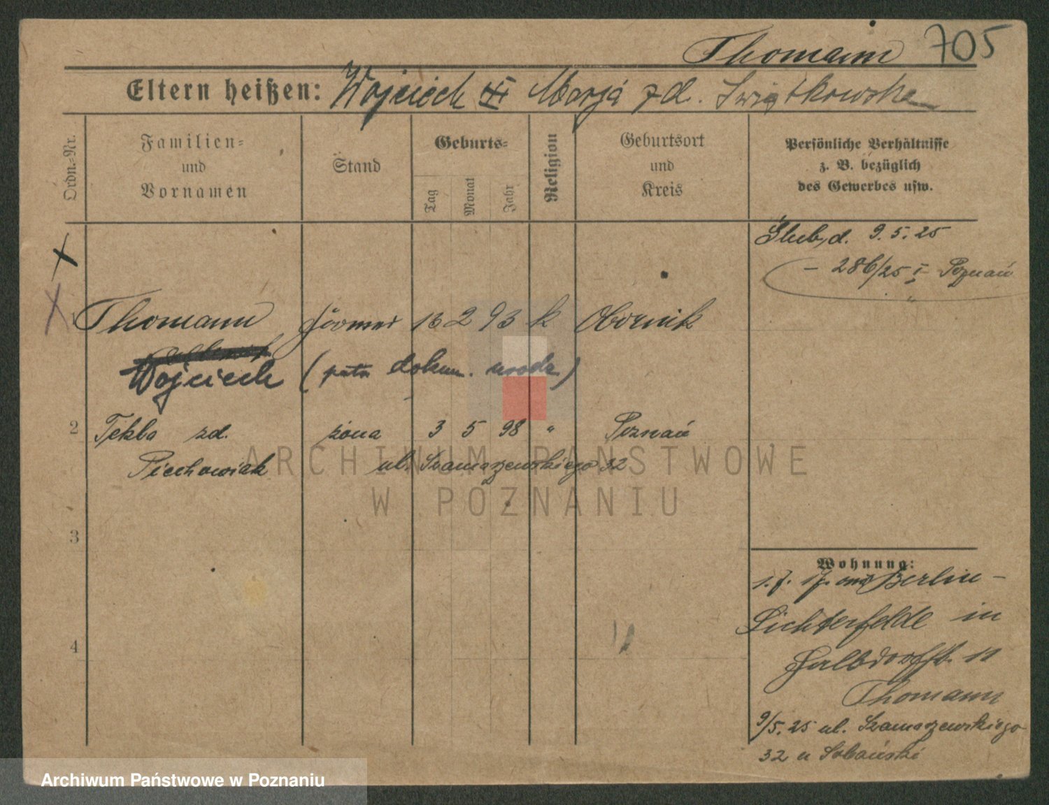 Podgląd karty osobowej dostępny jest po kliknięciu na nazwisko lub ikonkę karty. Można dokonywać powiększenia (ikony na górze) lub przechodzić między kolejnymi skanami (strzałki po bokach).