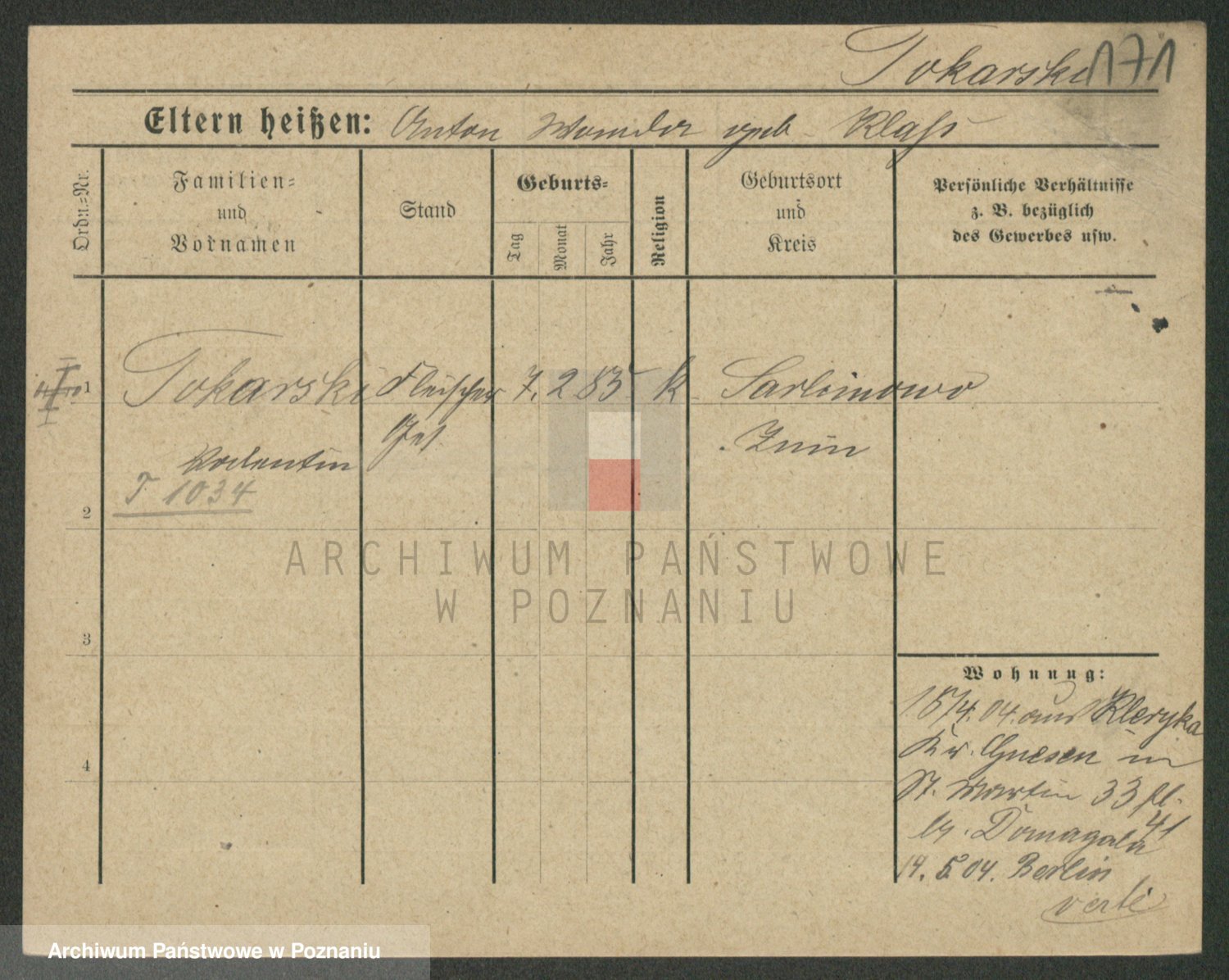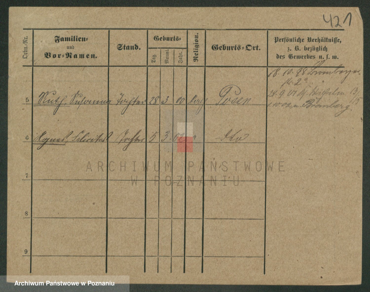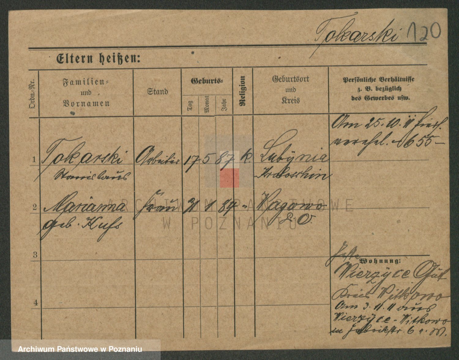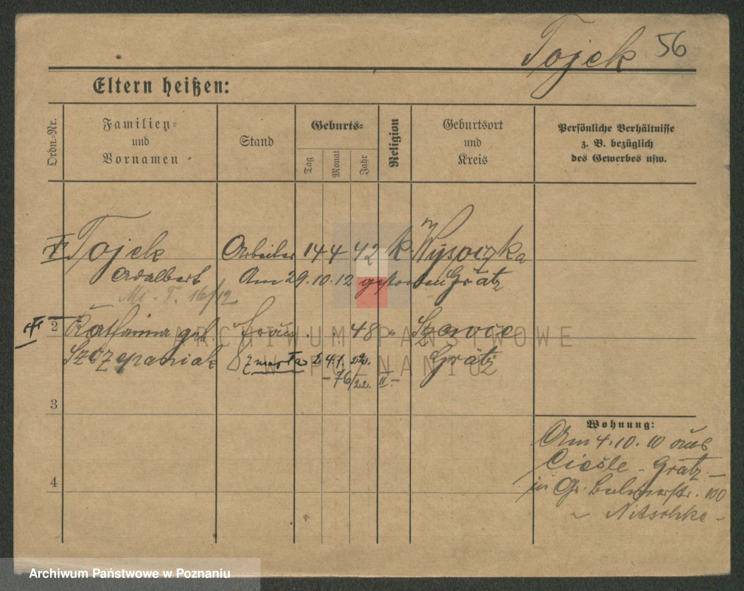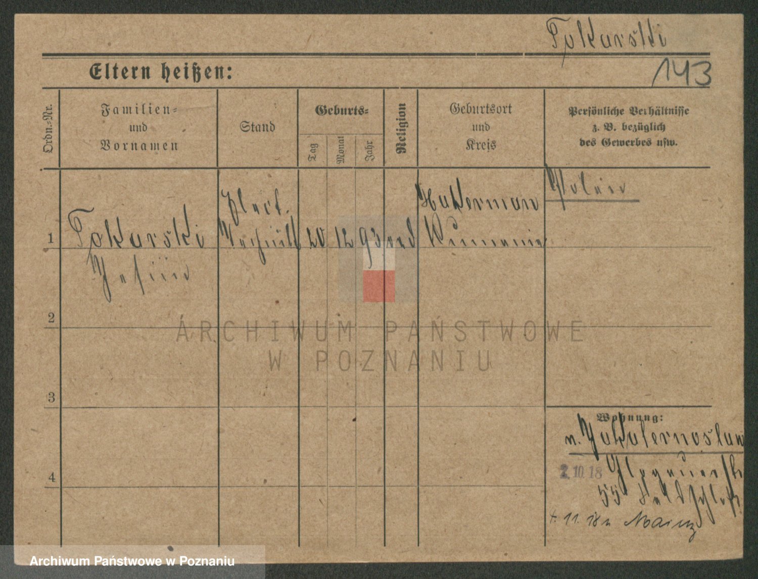 Podgląd karty osobowej dostępny jest po kliknięciu na nazwisko lub ikonkę karty. Można dokonywać powiększenia (ikony na górze) lub przechodzić między kolejnymi skanami (strzałki po bokach).