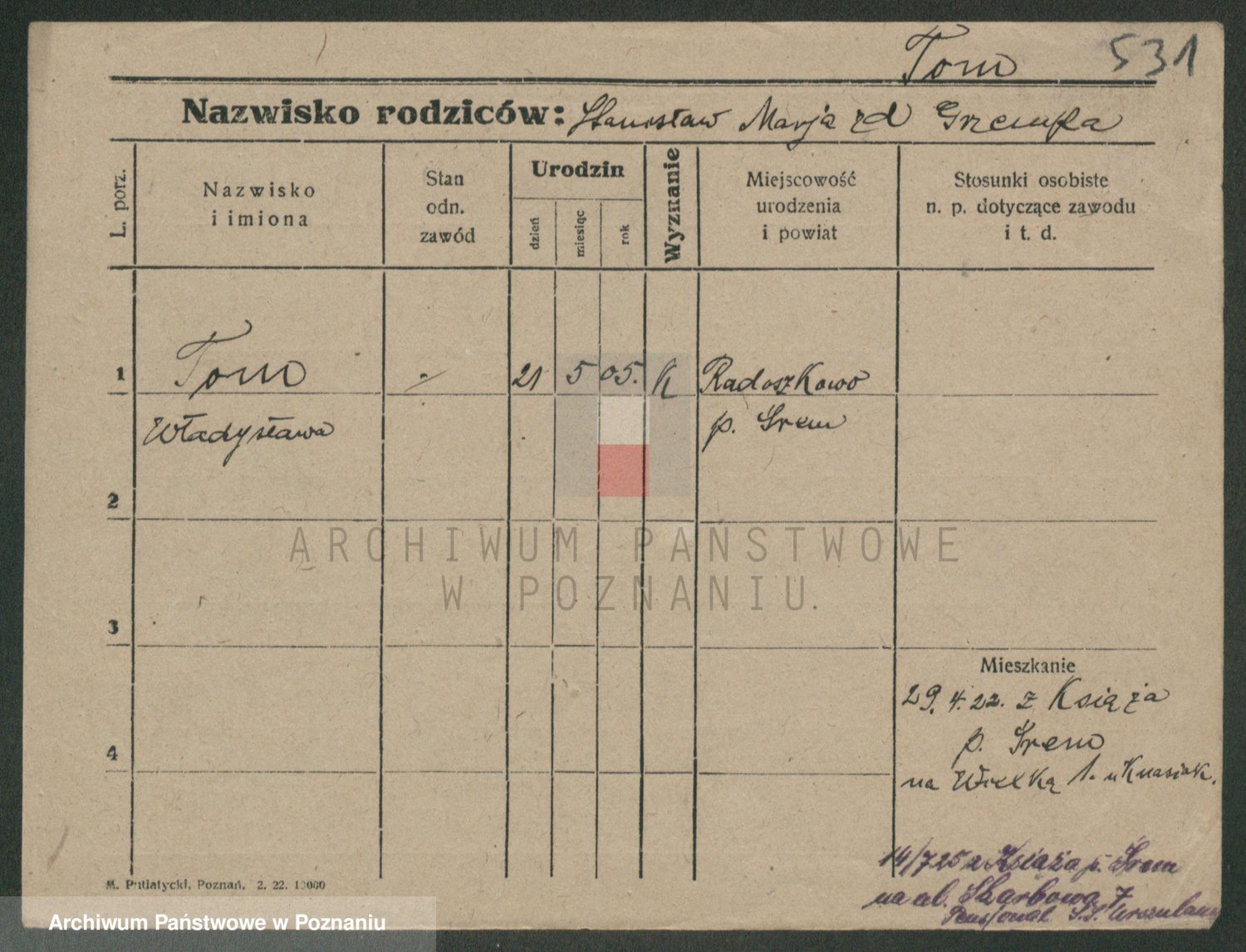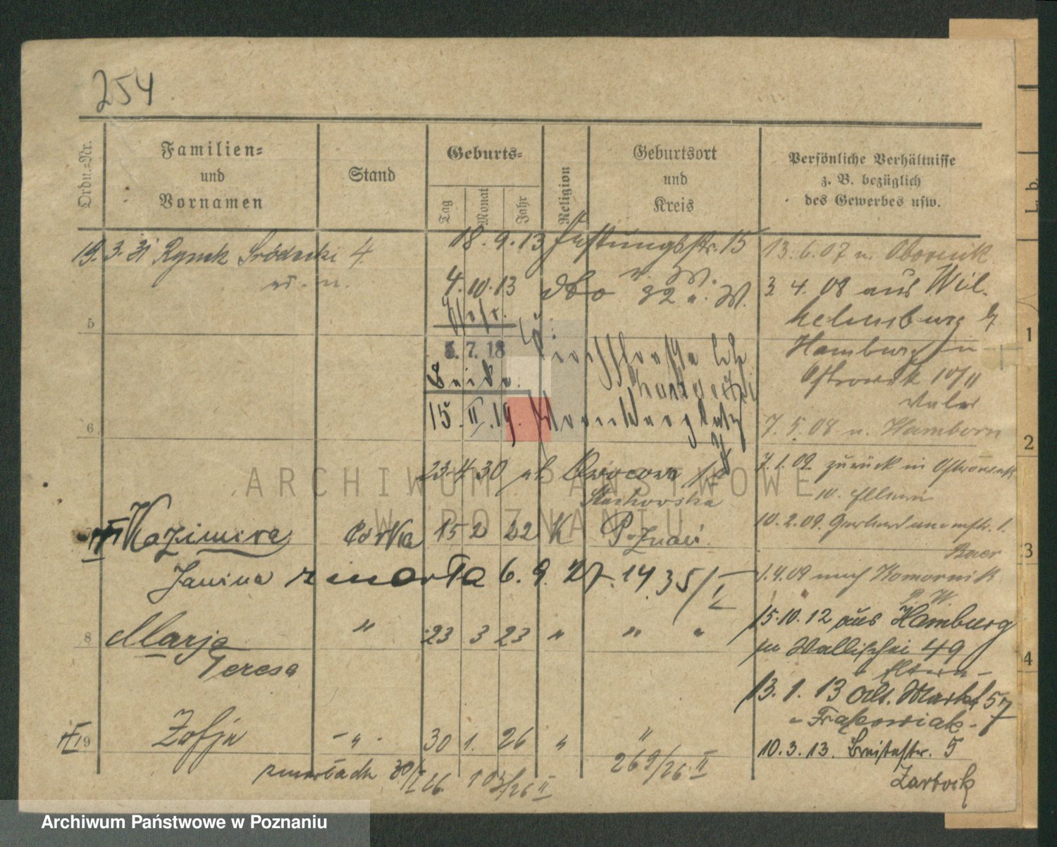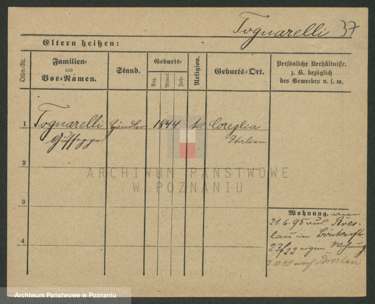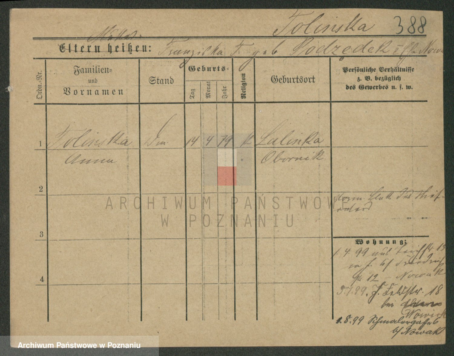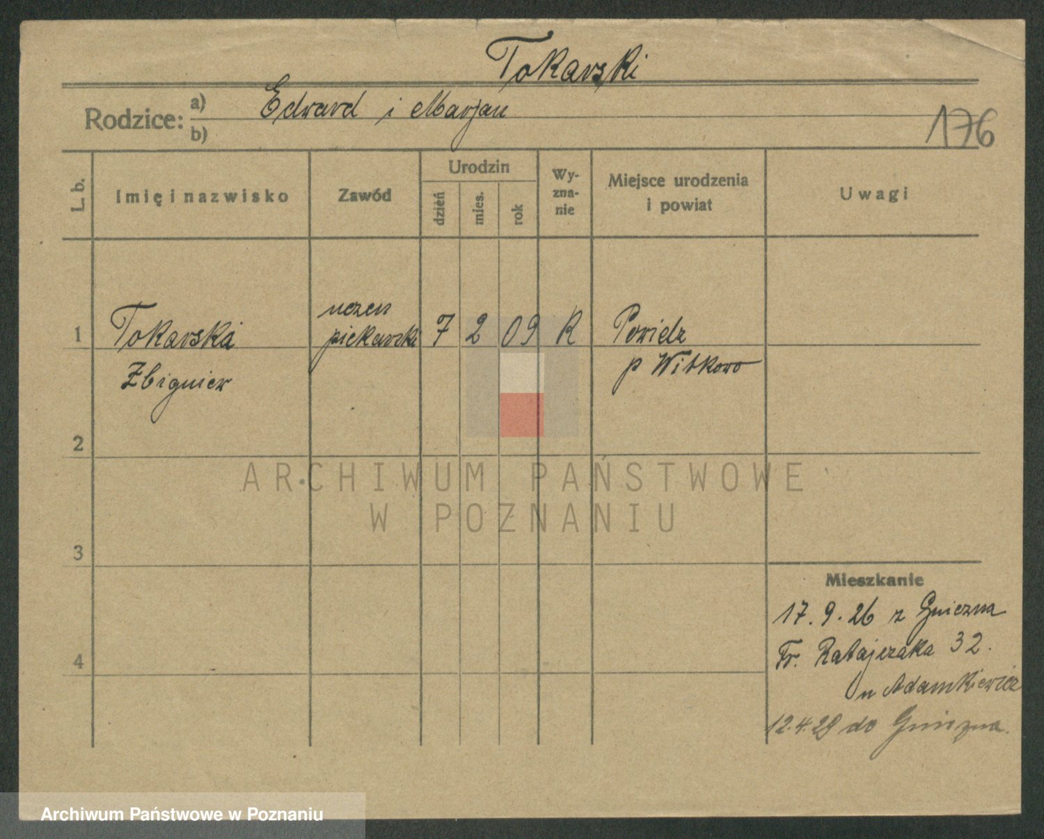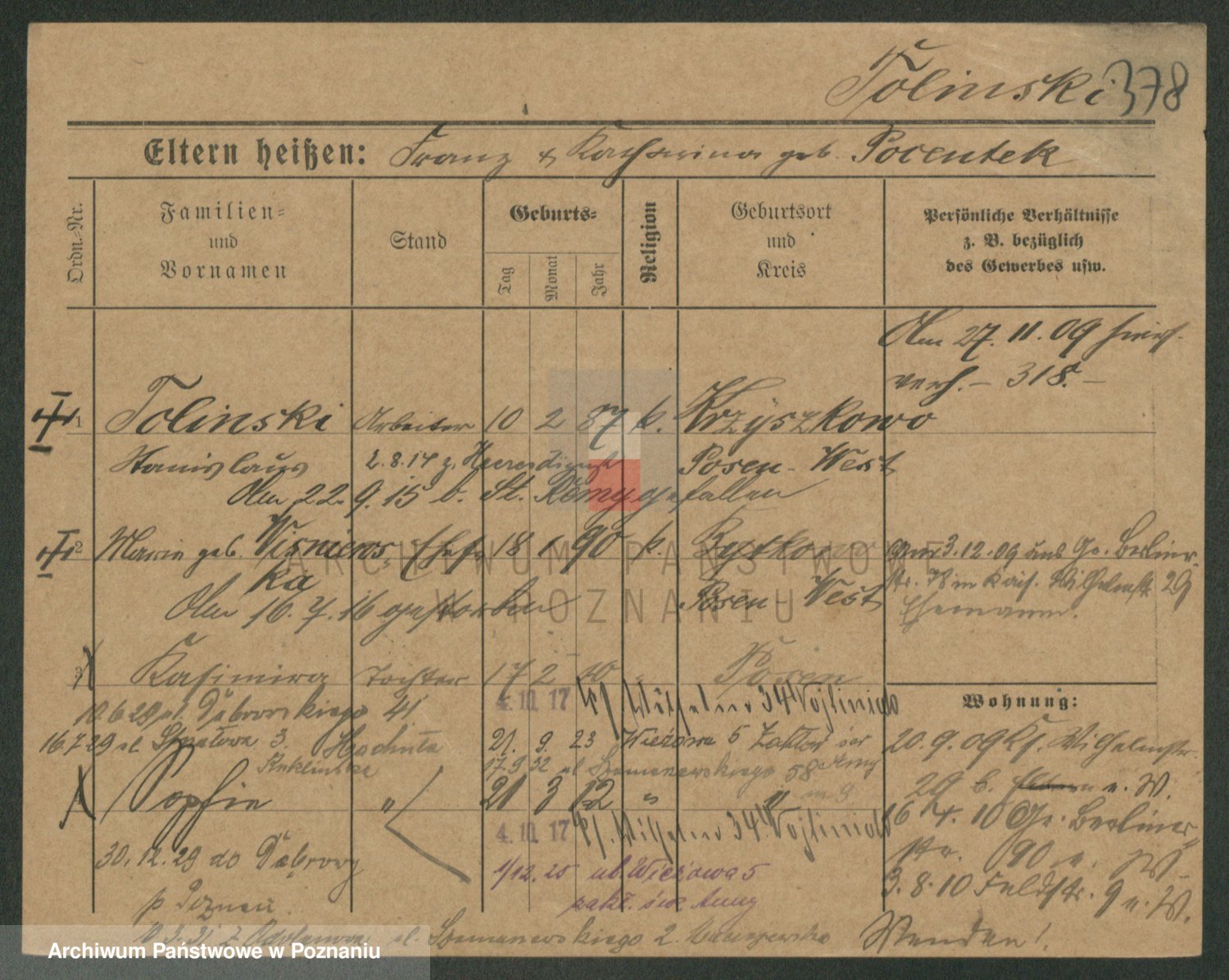 Podgląd karty osobowej dostępny jest po kliknięciu na nazwisko lub ikonkę karty. Można dokonywać powiększenia (ikony na górze) lub przechodzić między kolejnymi skanami (strzałki po bokach).