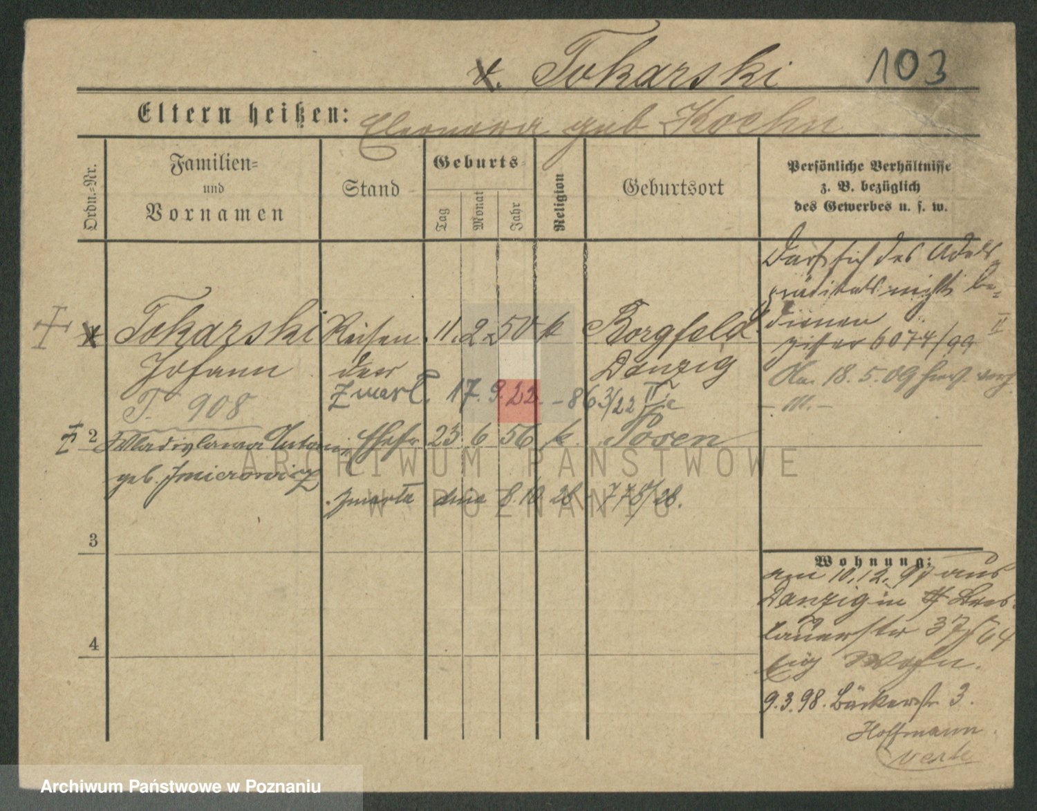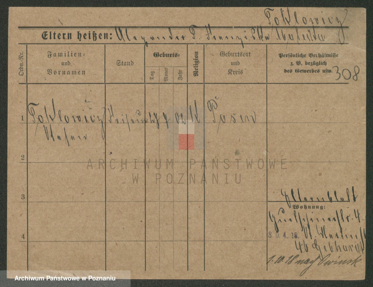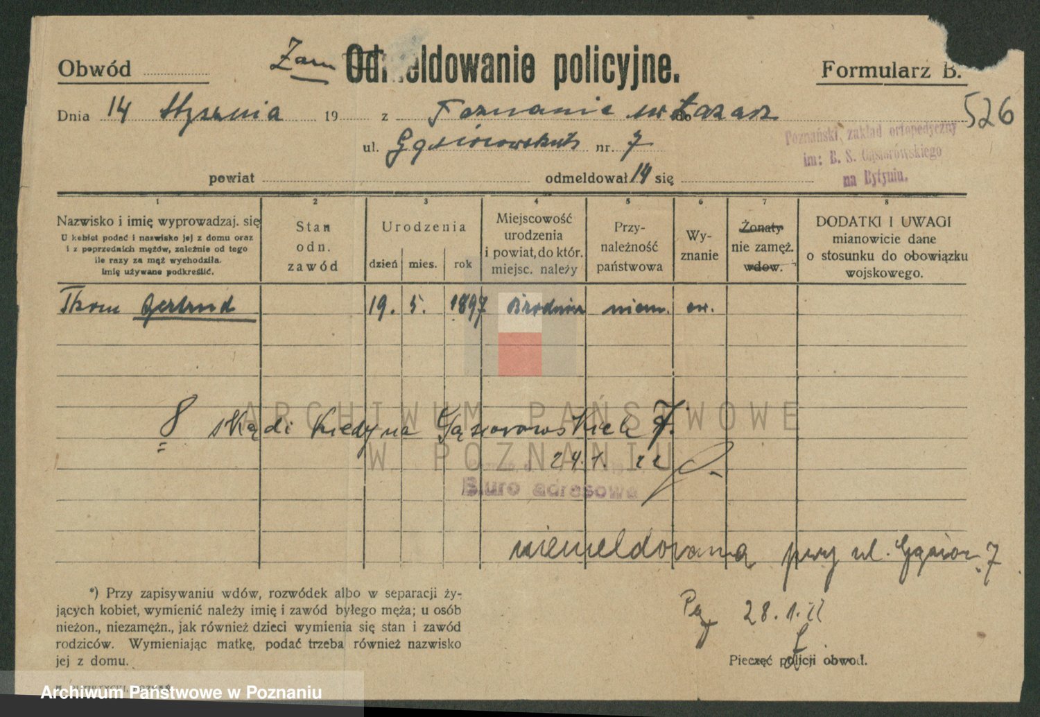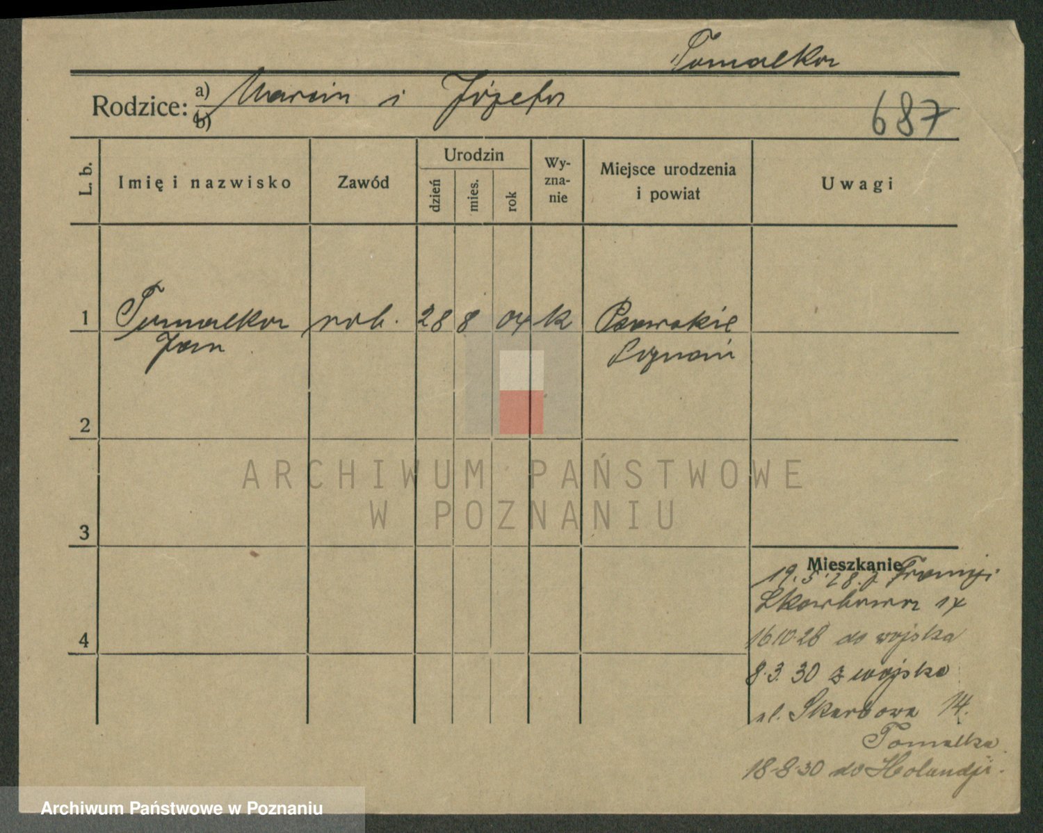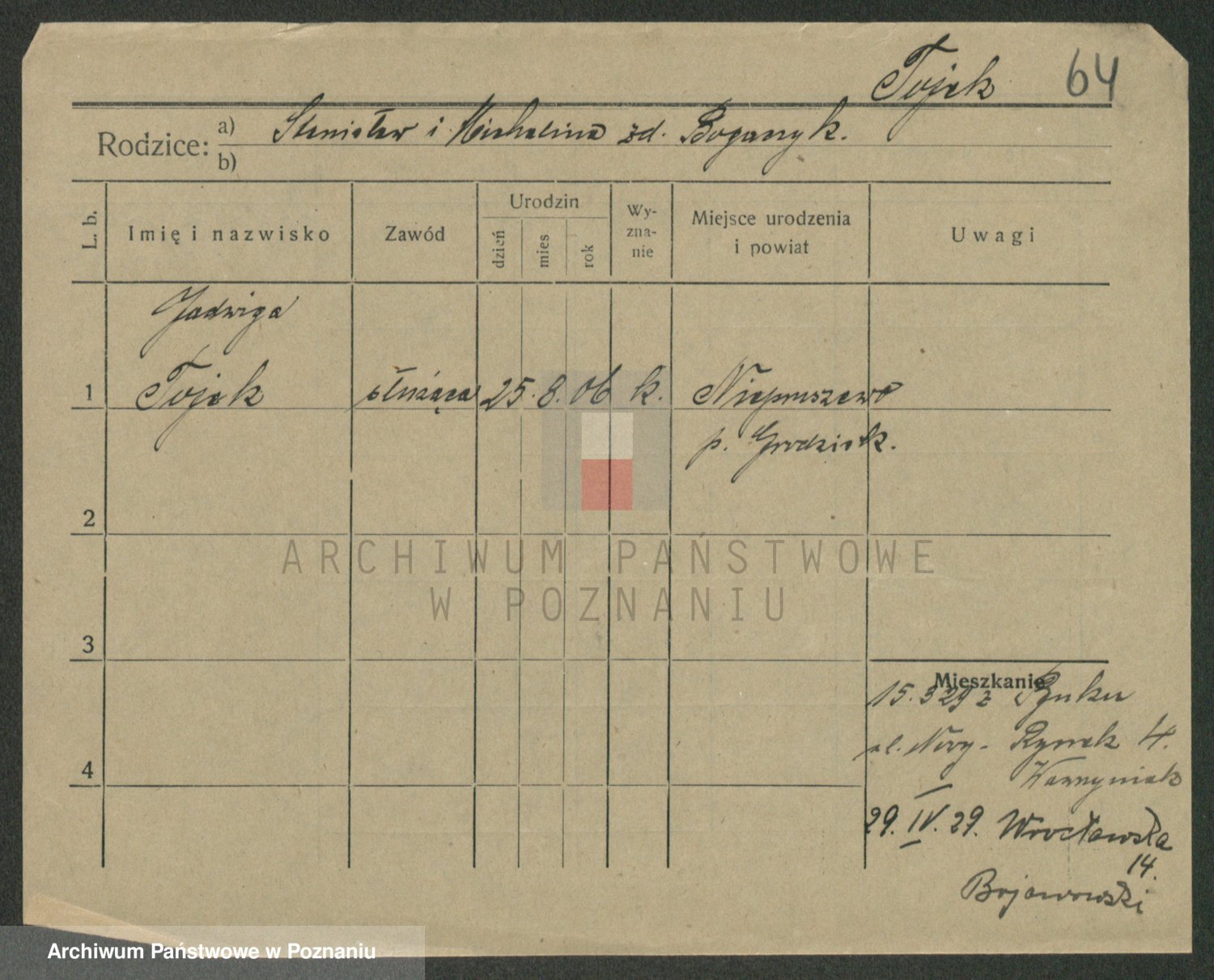 Podgląd karty osobowej dostępny jest po kliknięciu na nazwisko lub ikonkę karty. Można dokonywać powiększenia (ikony na górze) lub przechodzić między kolejnymi skanami (strzałki po bokach).