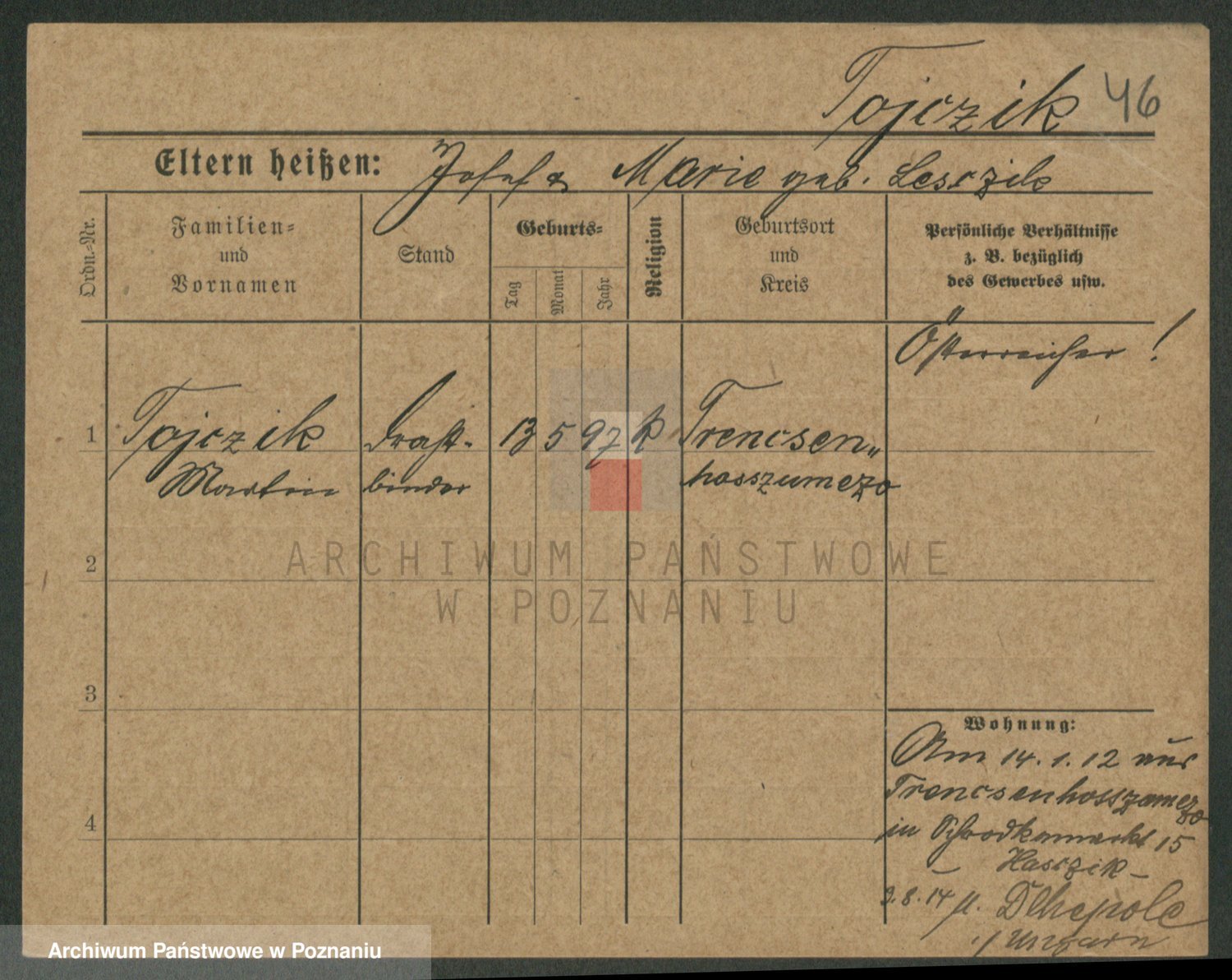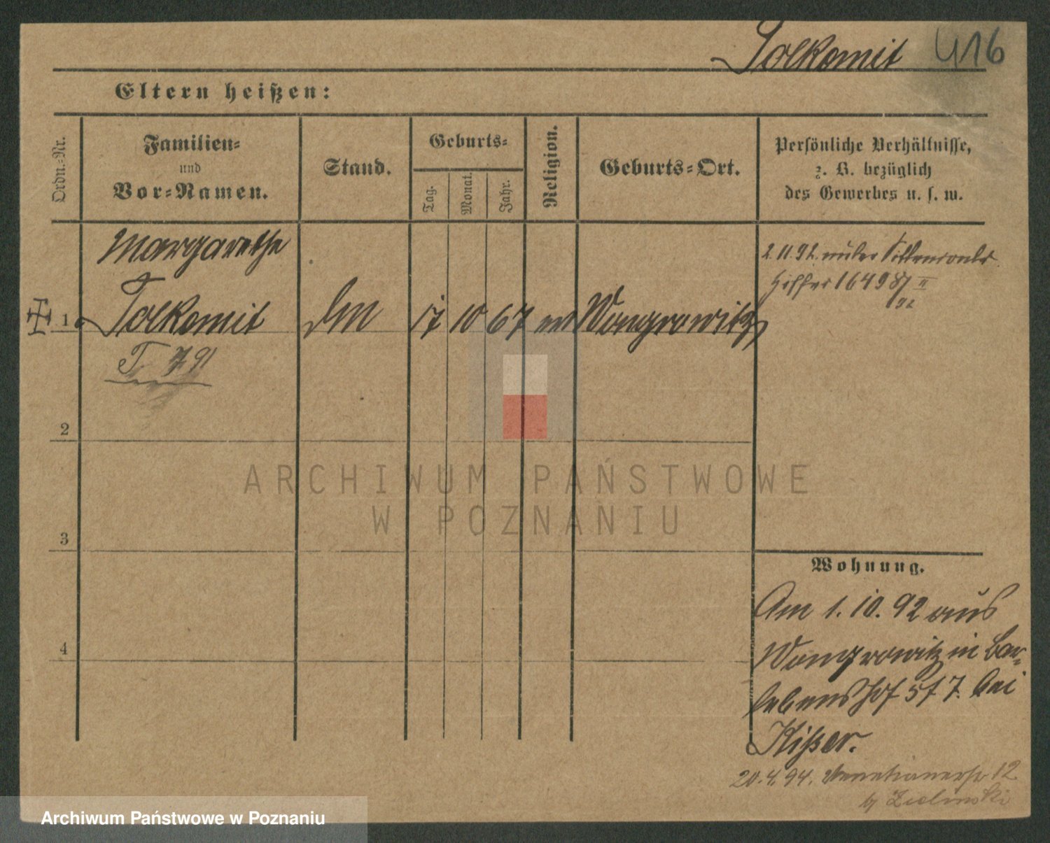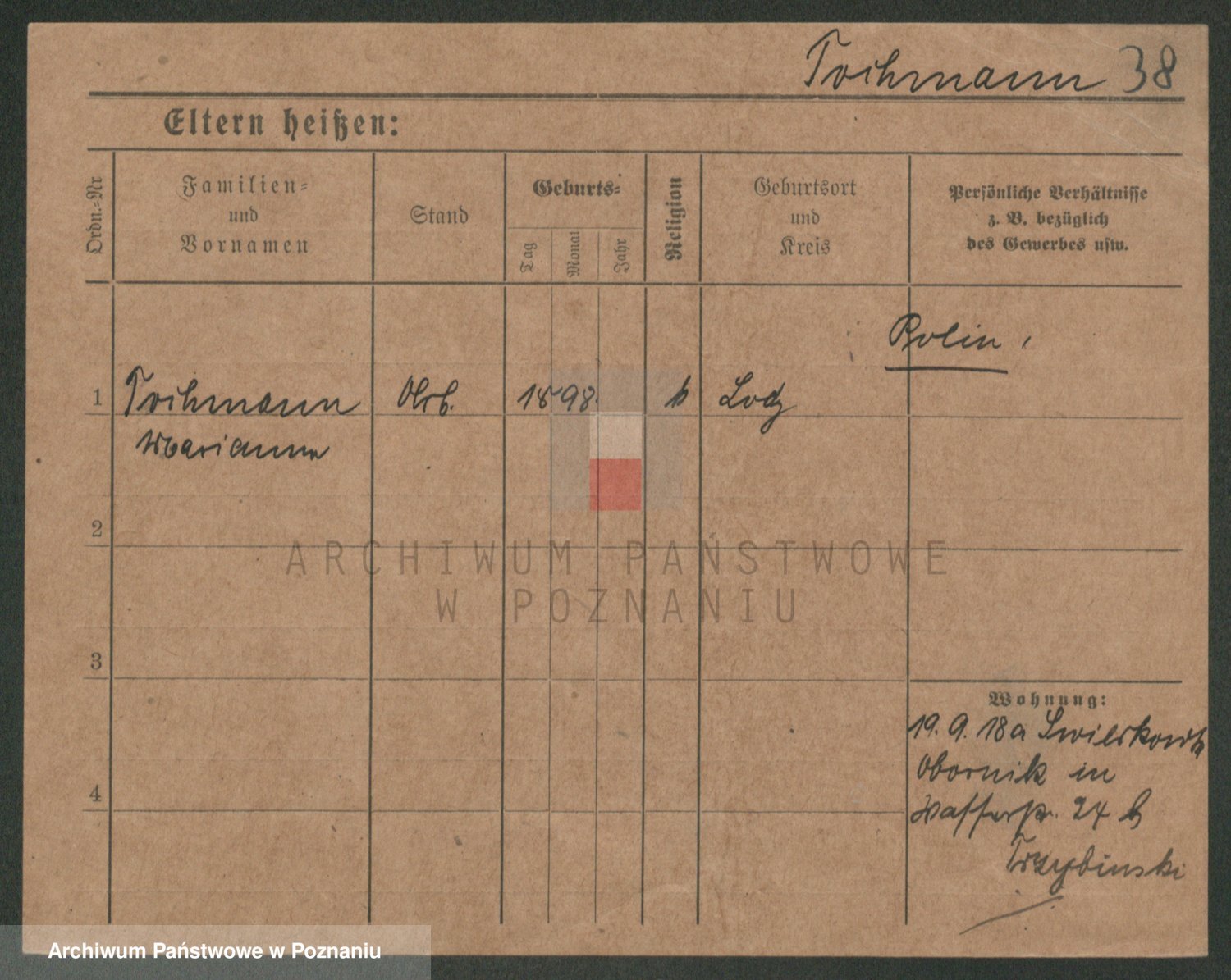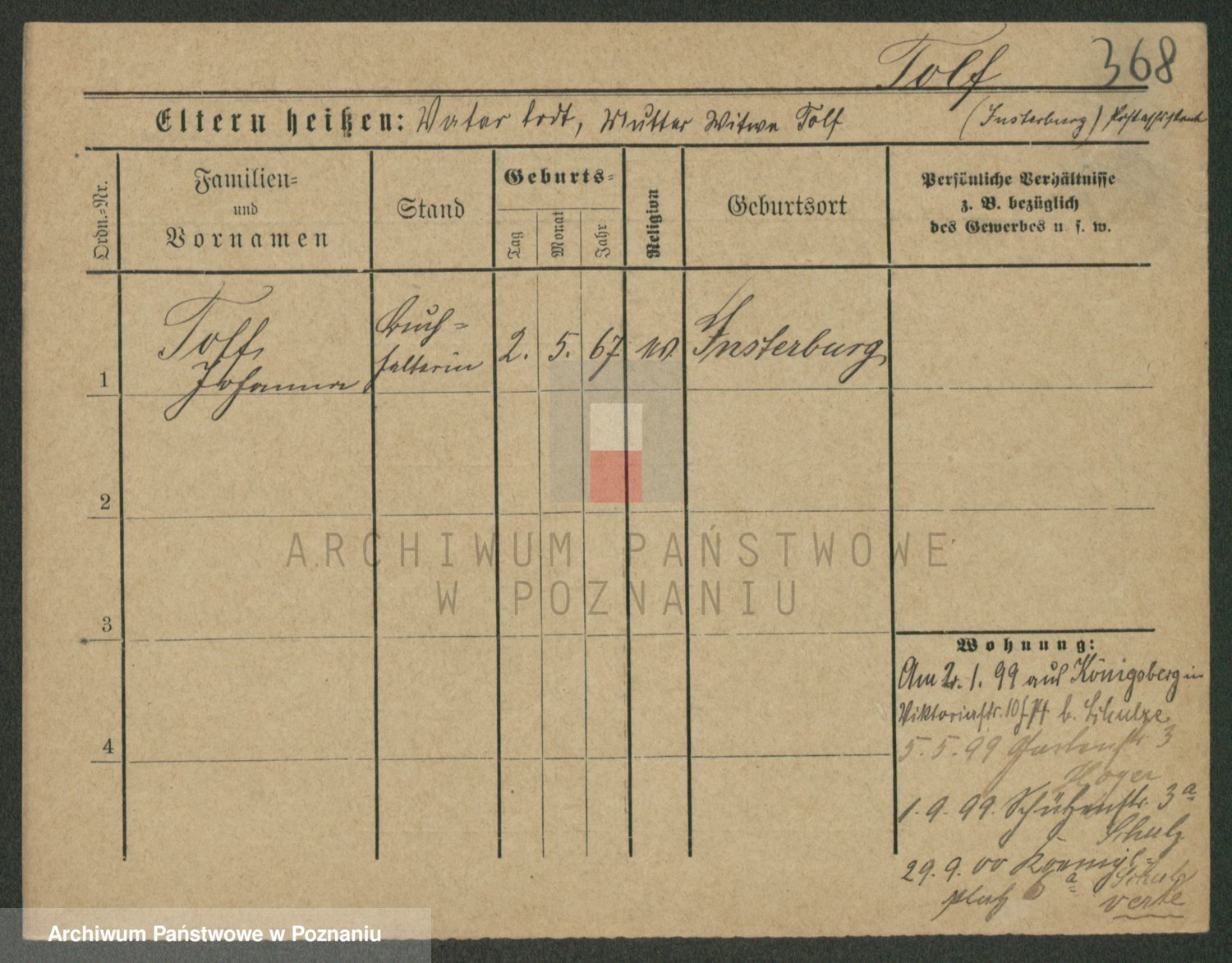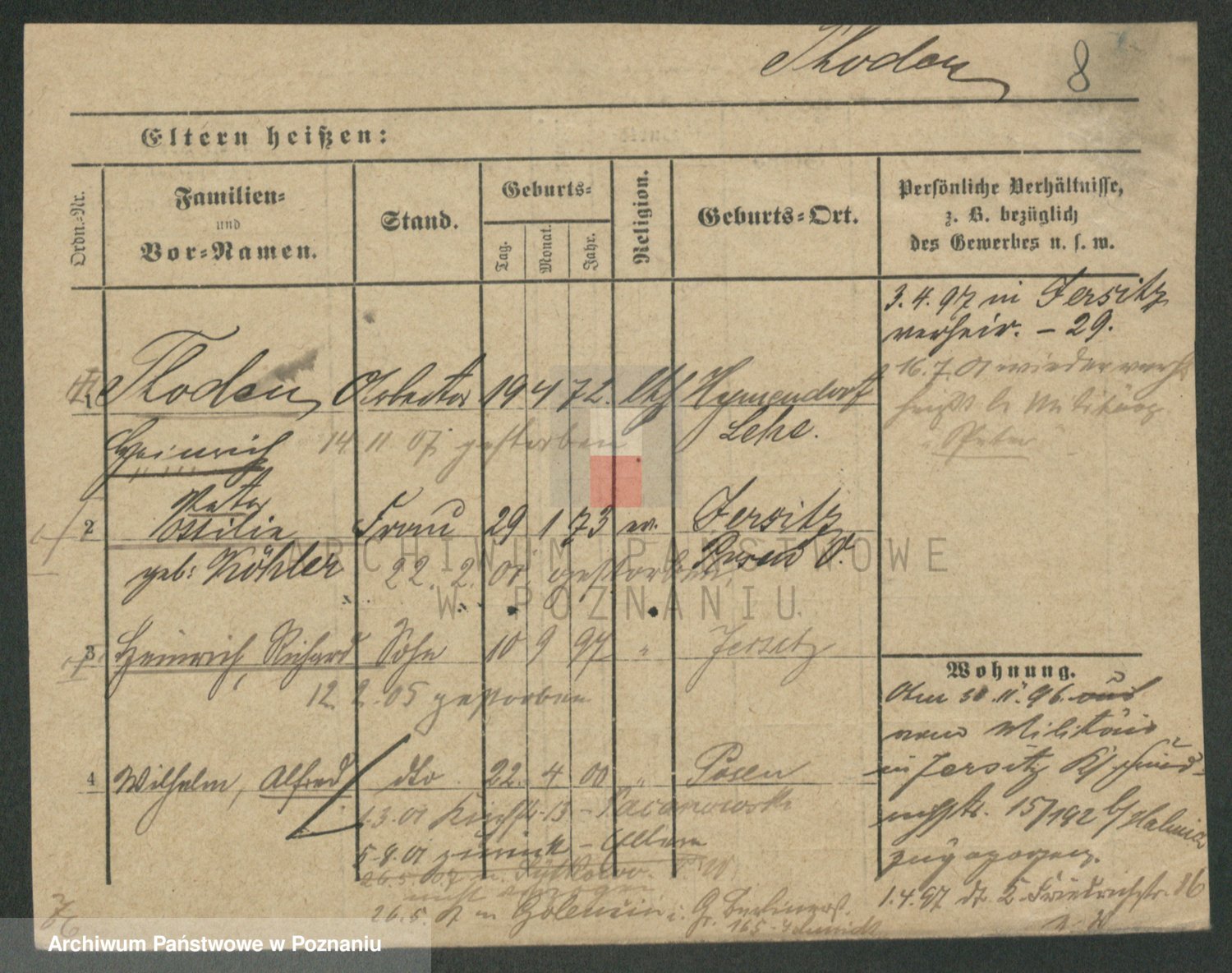 Podgląd karty osobowej dostępny jest po kliknięciu na nazwisko lub ikonkę karty. Można dokonywać powiększenia (ikony na górze) lub przechodzić między kolejnymi skanami (strzałki po bokach).