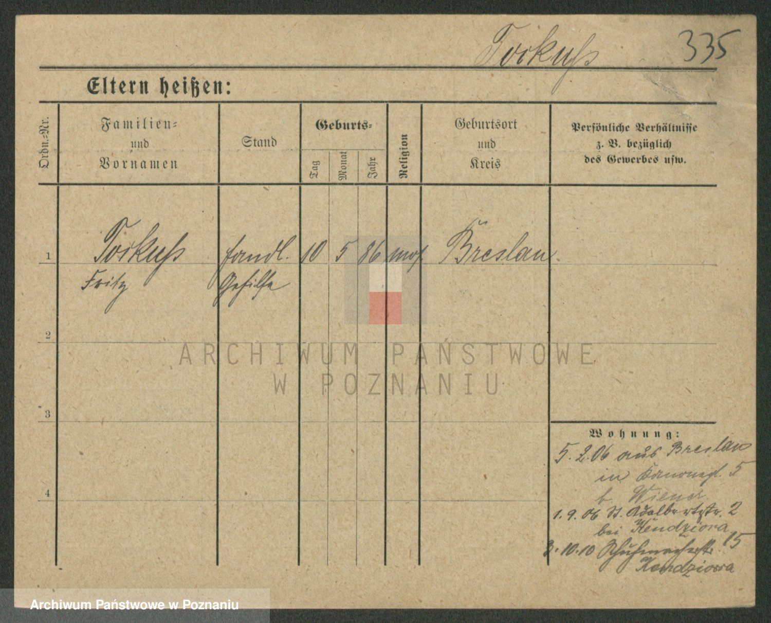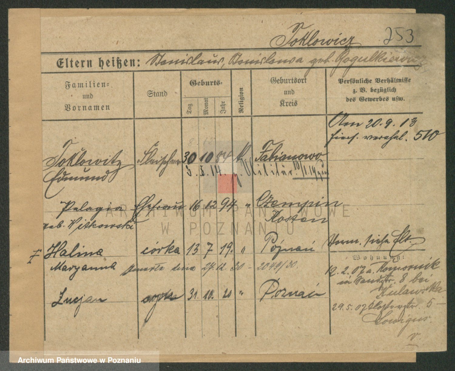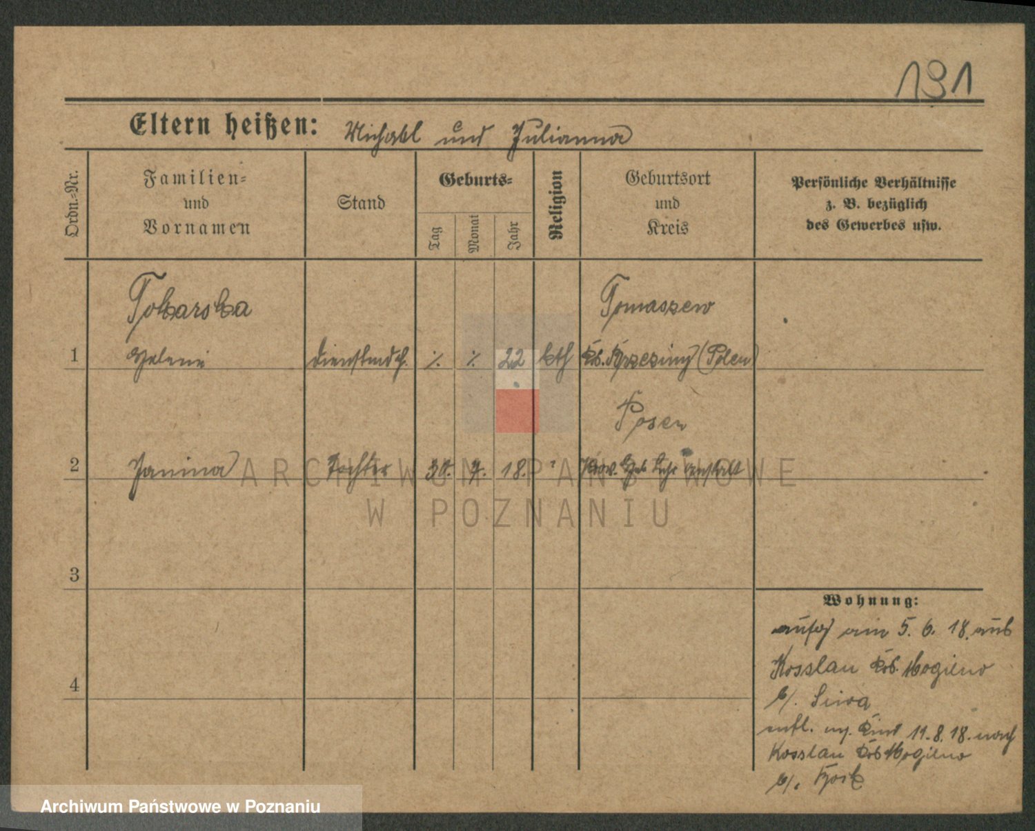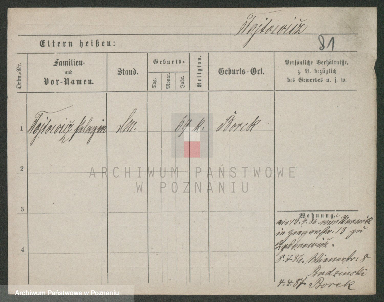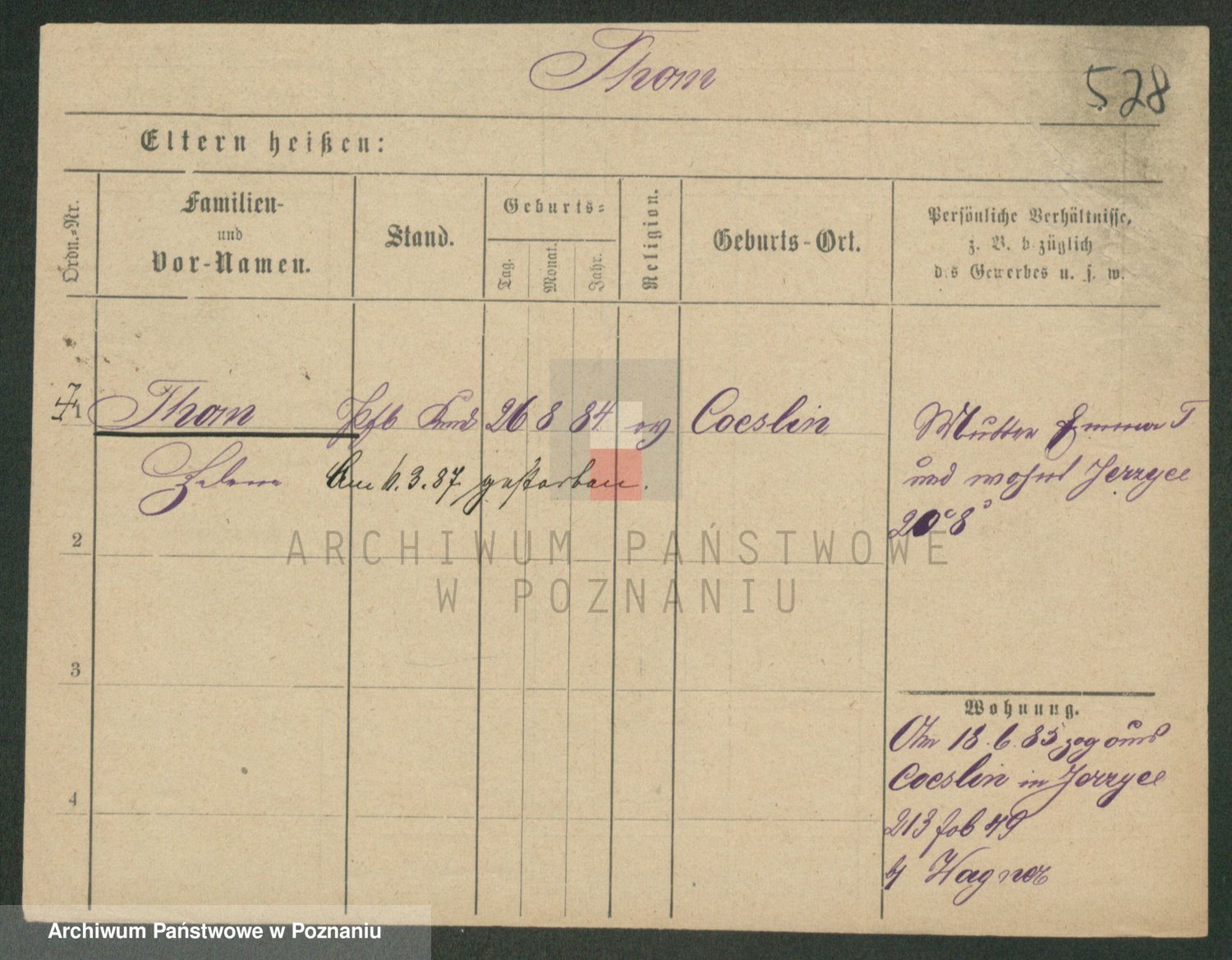 Podgląd karty osobowej dostępny jest po kliknięciu na nazwisko lub ikonkę karty. Można dokonywać powiększenia (ikony na górze) lub przechodzić między kolejnymi skanami (strzałki po bokach).