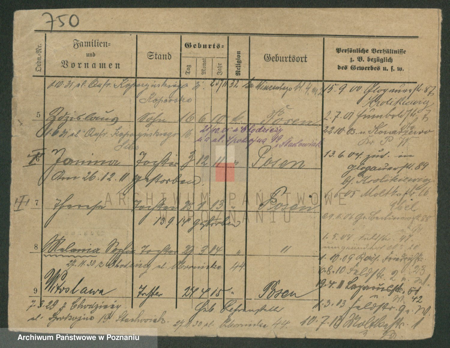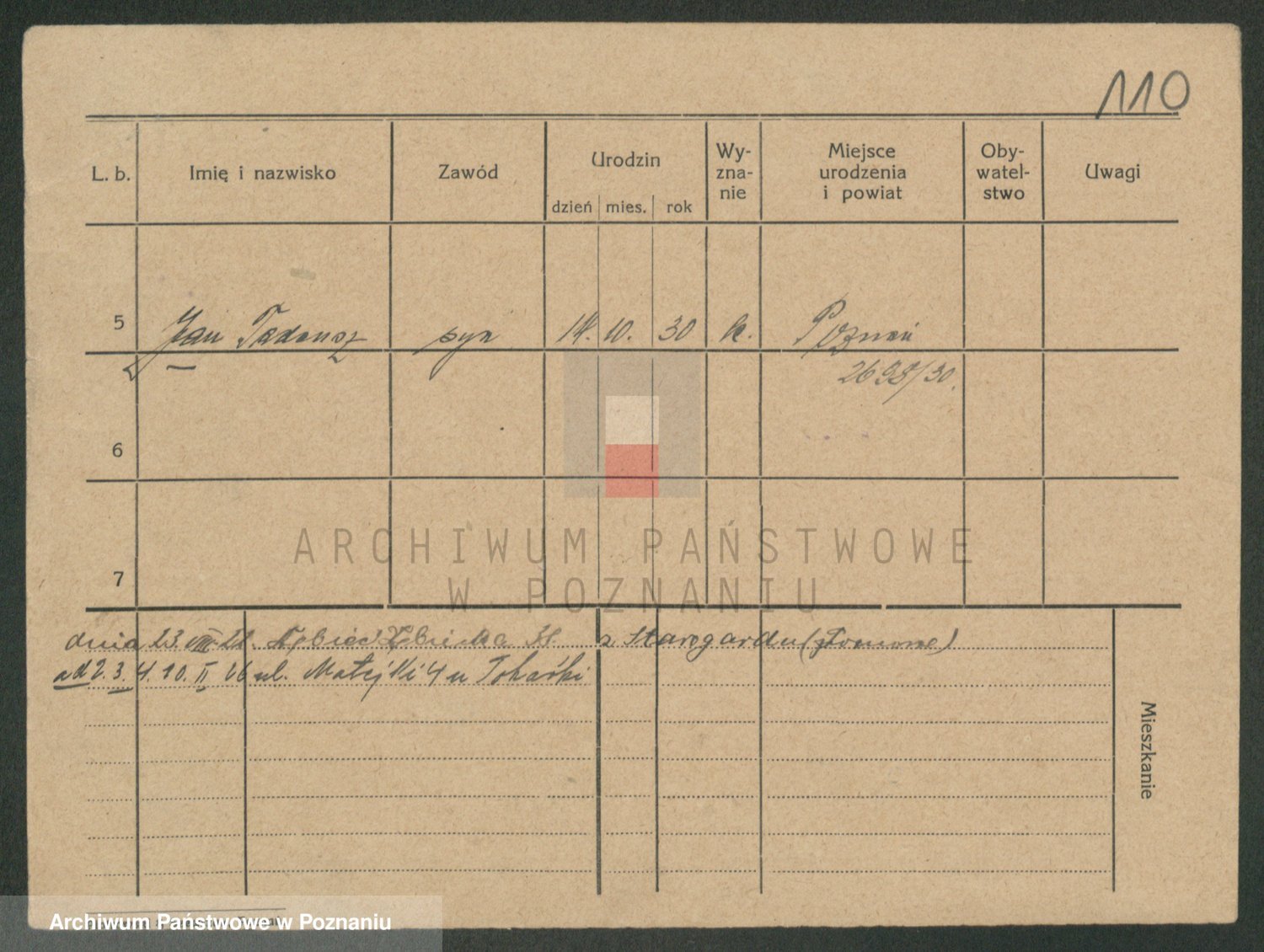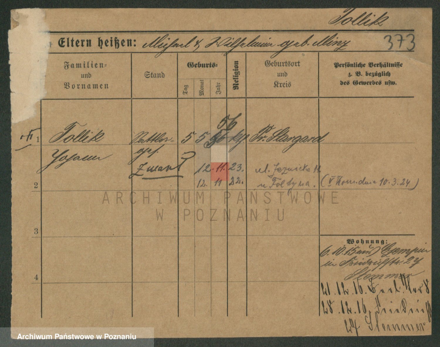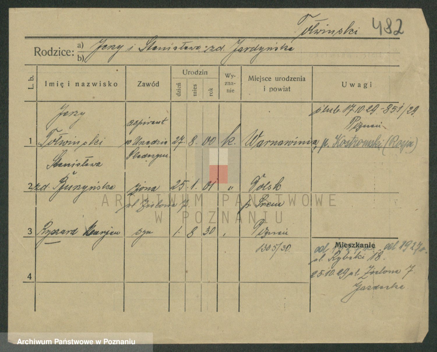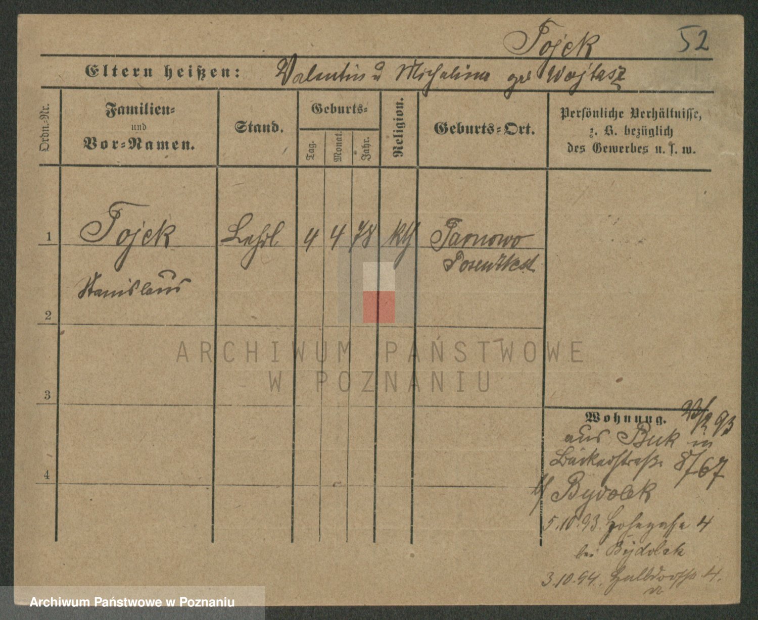 Podgląd karty osobowej dostępny jest po kliknięciu na nazwisko lub ikonkę karty. Można dokonywać powiększenia (ikony na górze) lub przechodzić między kolejnymi skanami (strzałki po bokach).
