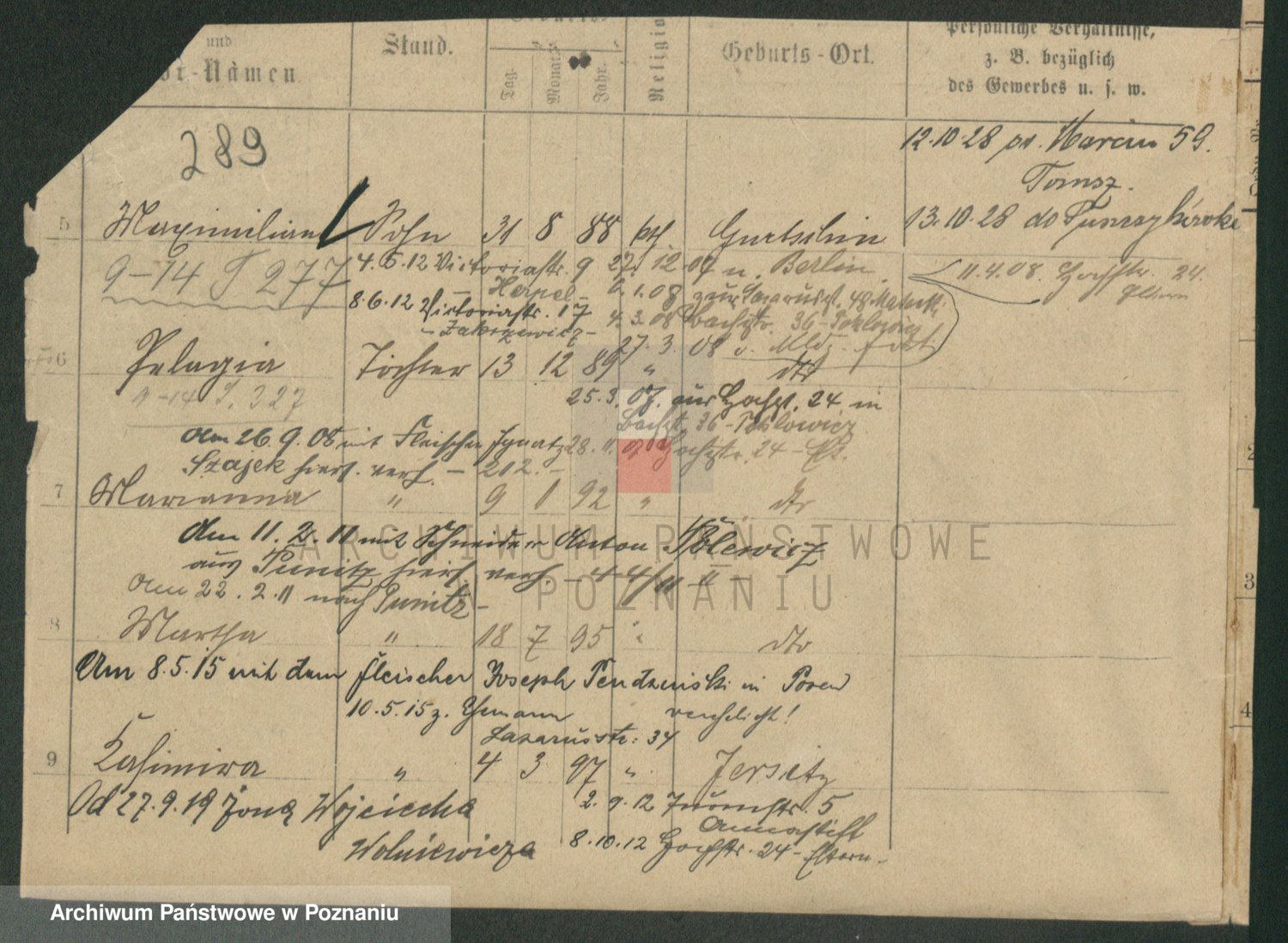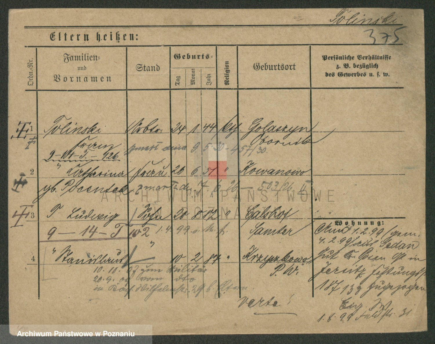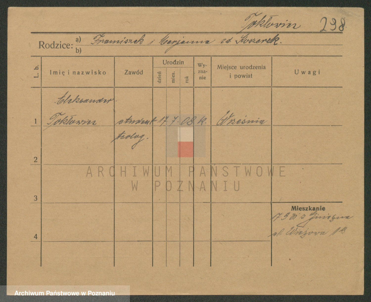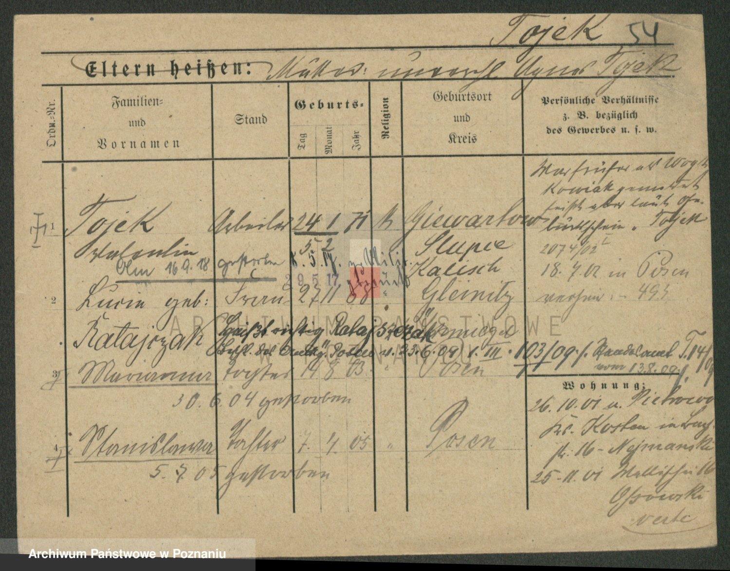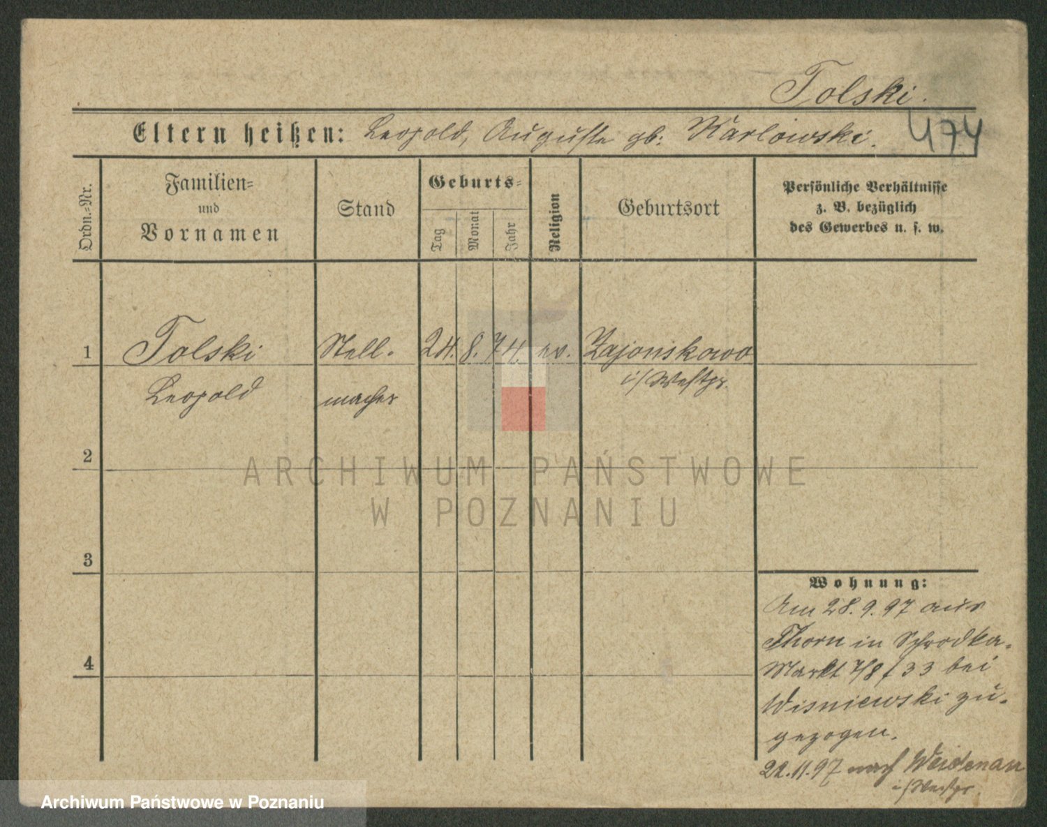 Podgląd karty osobowej dostępny jest po kliknięciu na nazwisko lub ikonkę karty. Można dokonywać powiększenia (ikony na górze) lub przechodzić między kolejnymi skanami (strzałki po bokach).