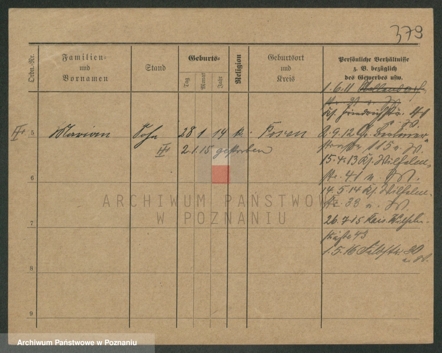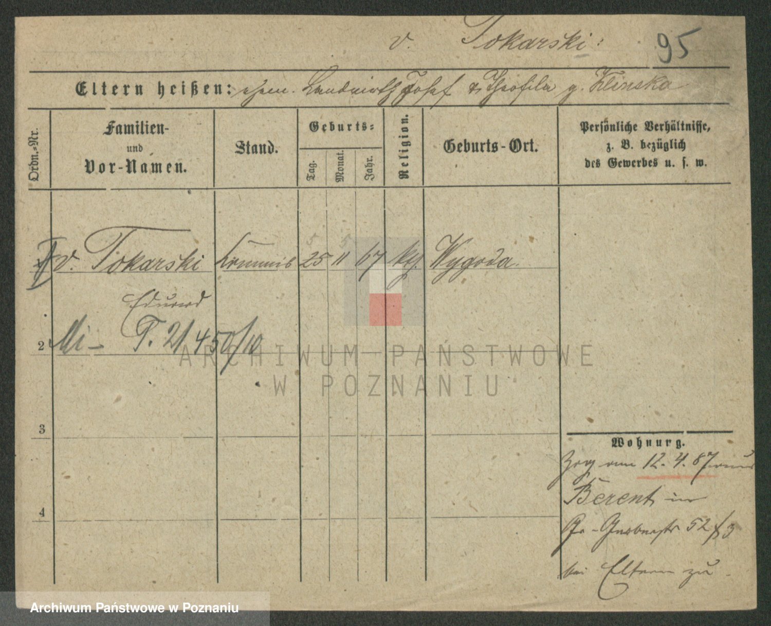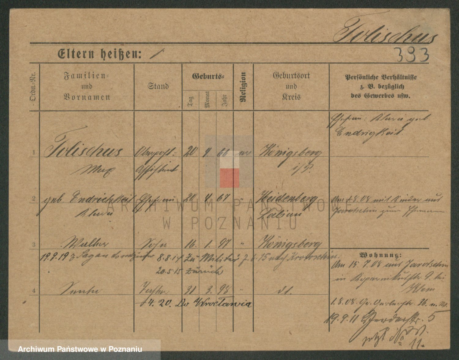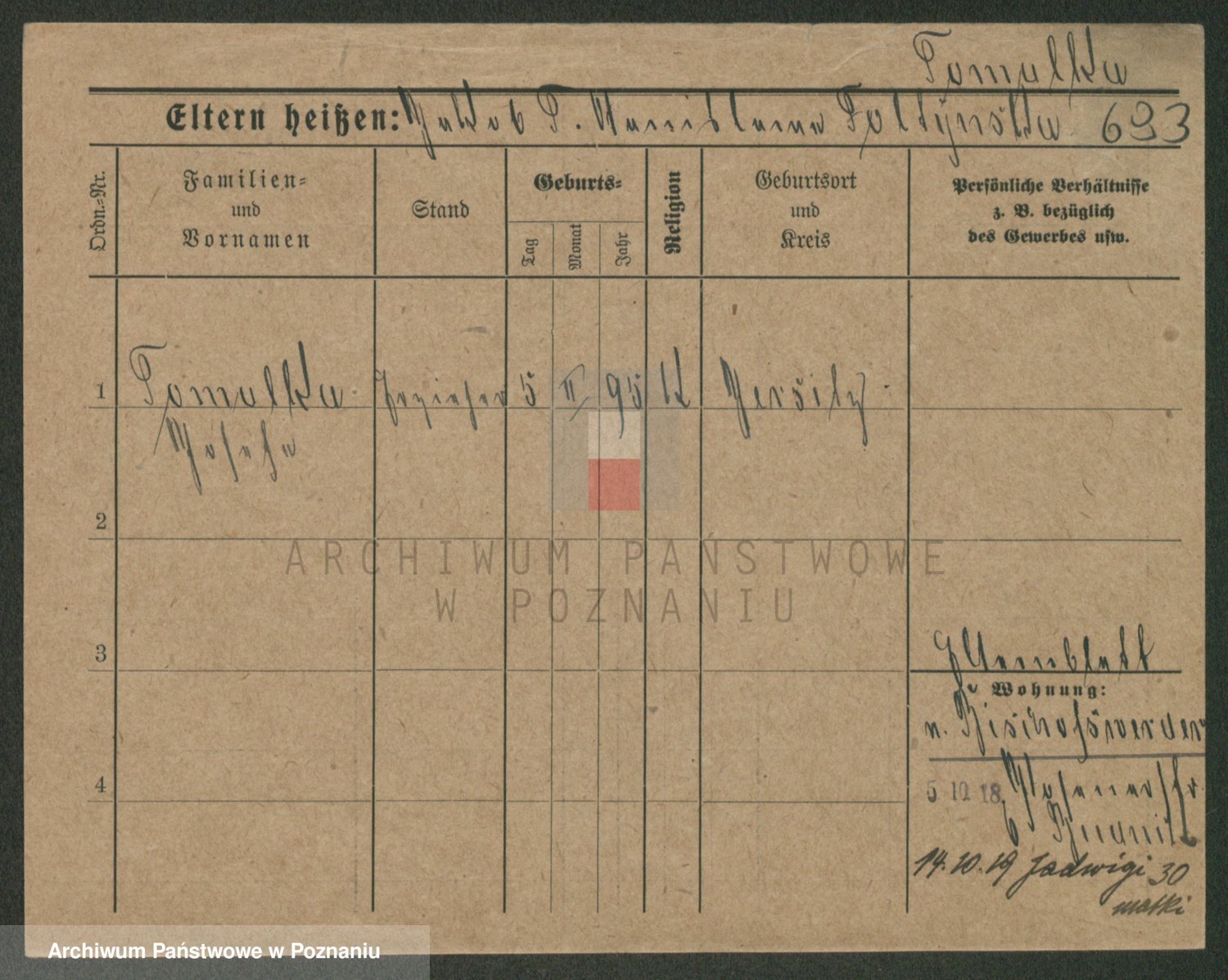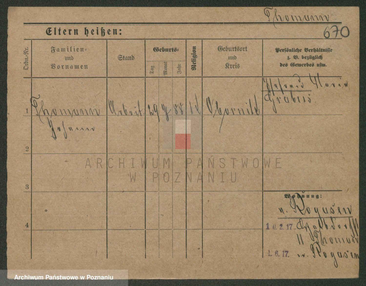 Podgląd karty osobowej dostępny jest po kliknięciu na nazwisko lub ikonkę karty. Można dokonywać powiększenia (ikony na górze) lub przechodzić między kolejnymi skanami (strzałki po bokach).