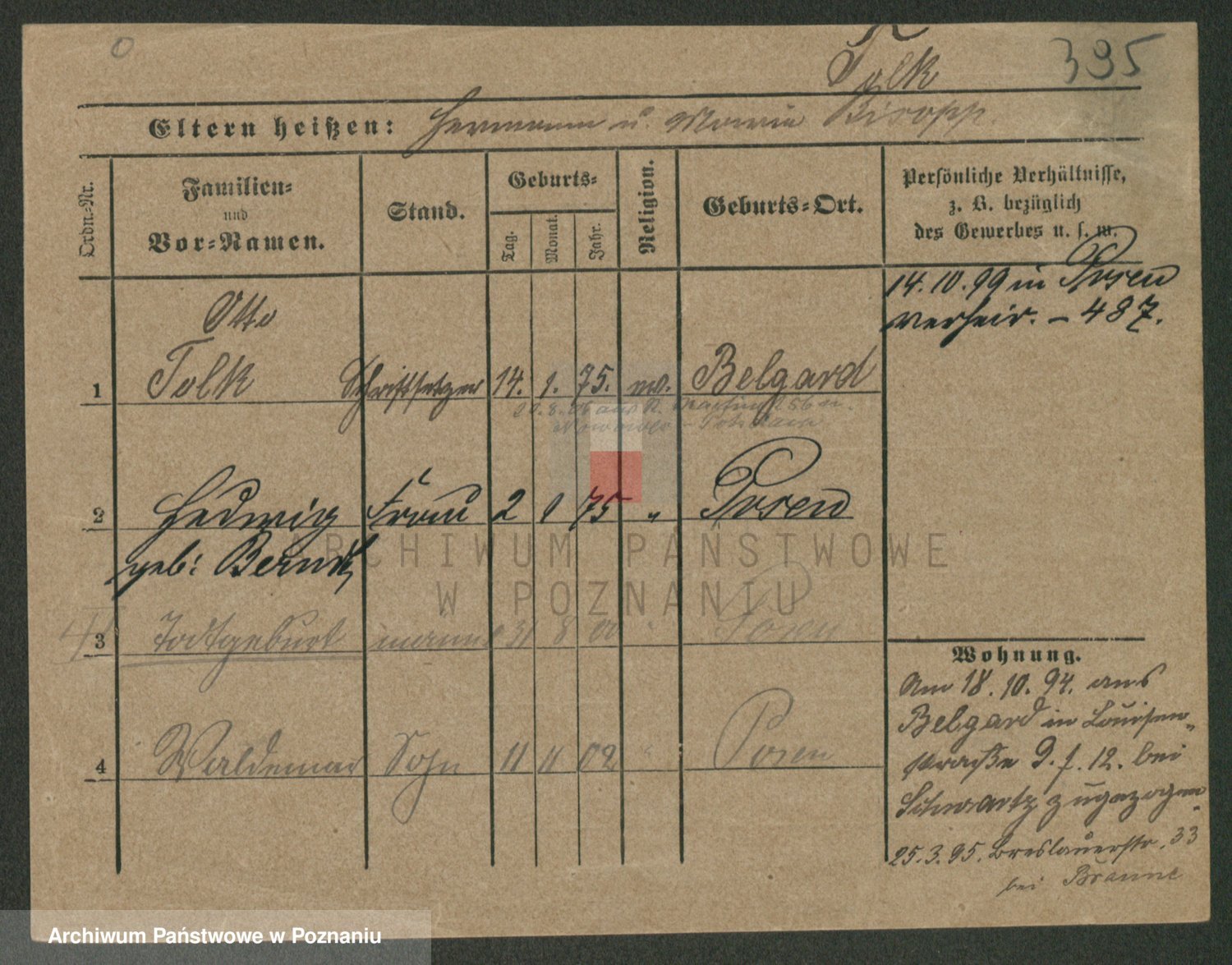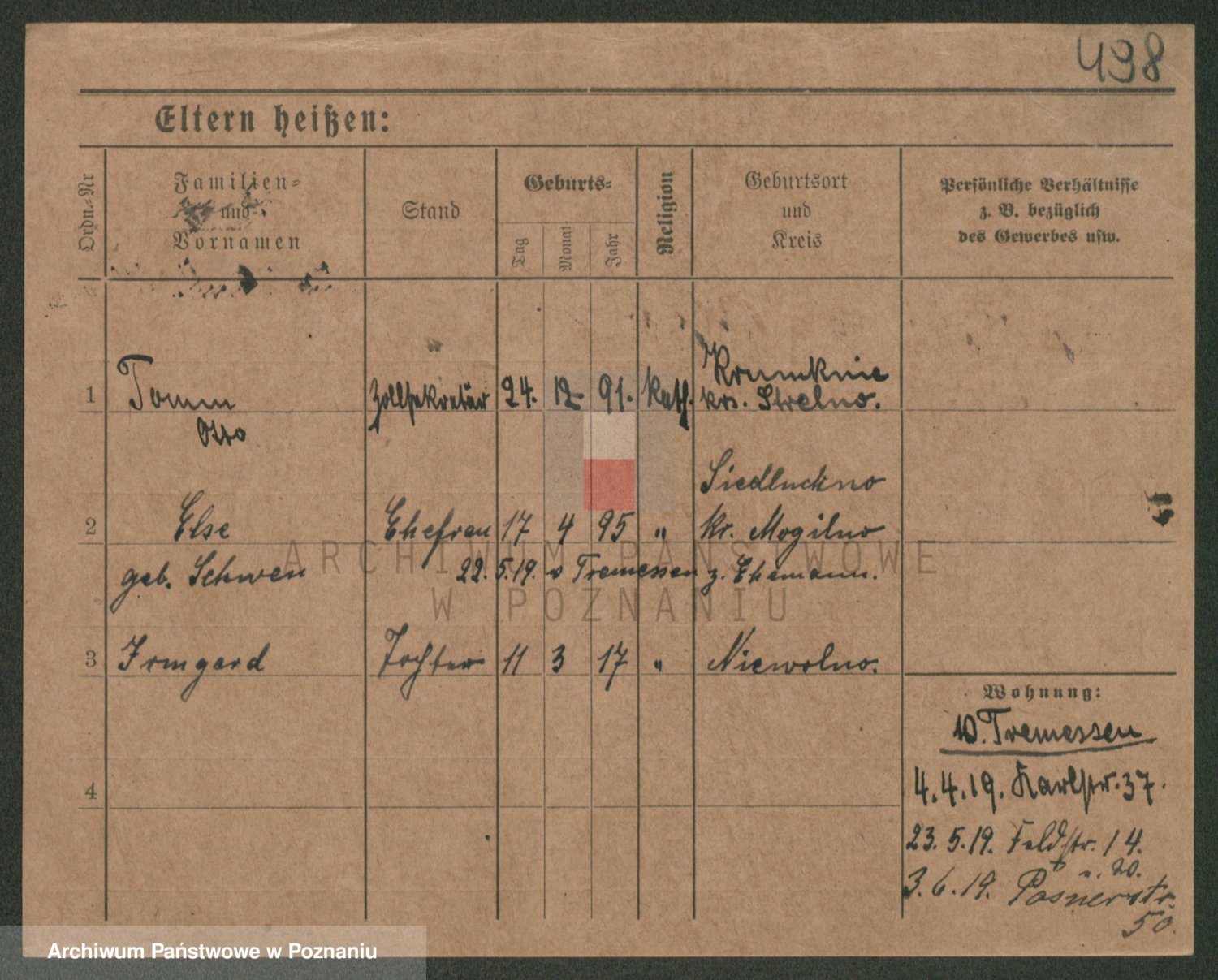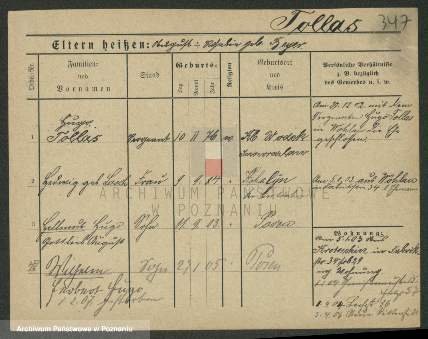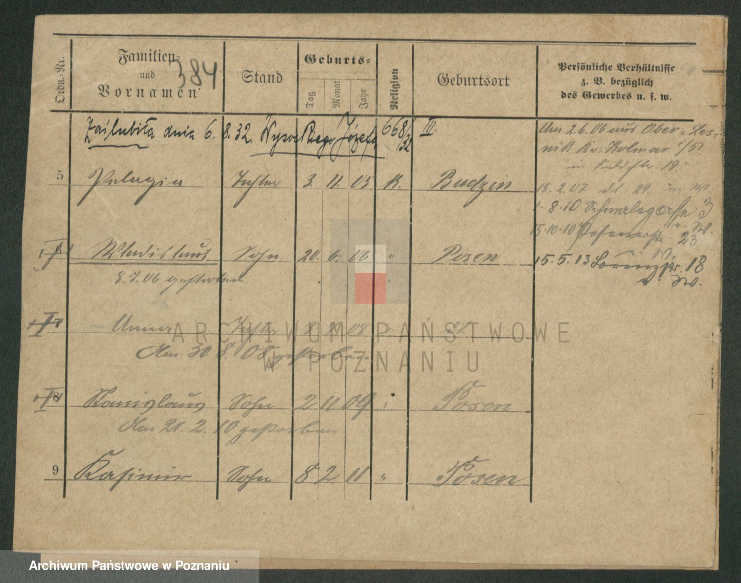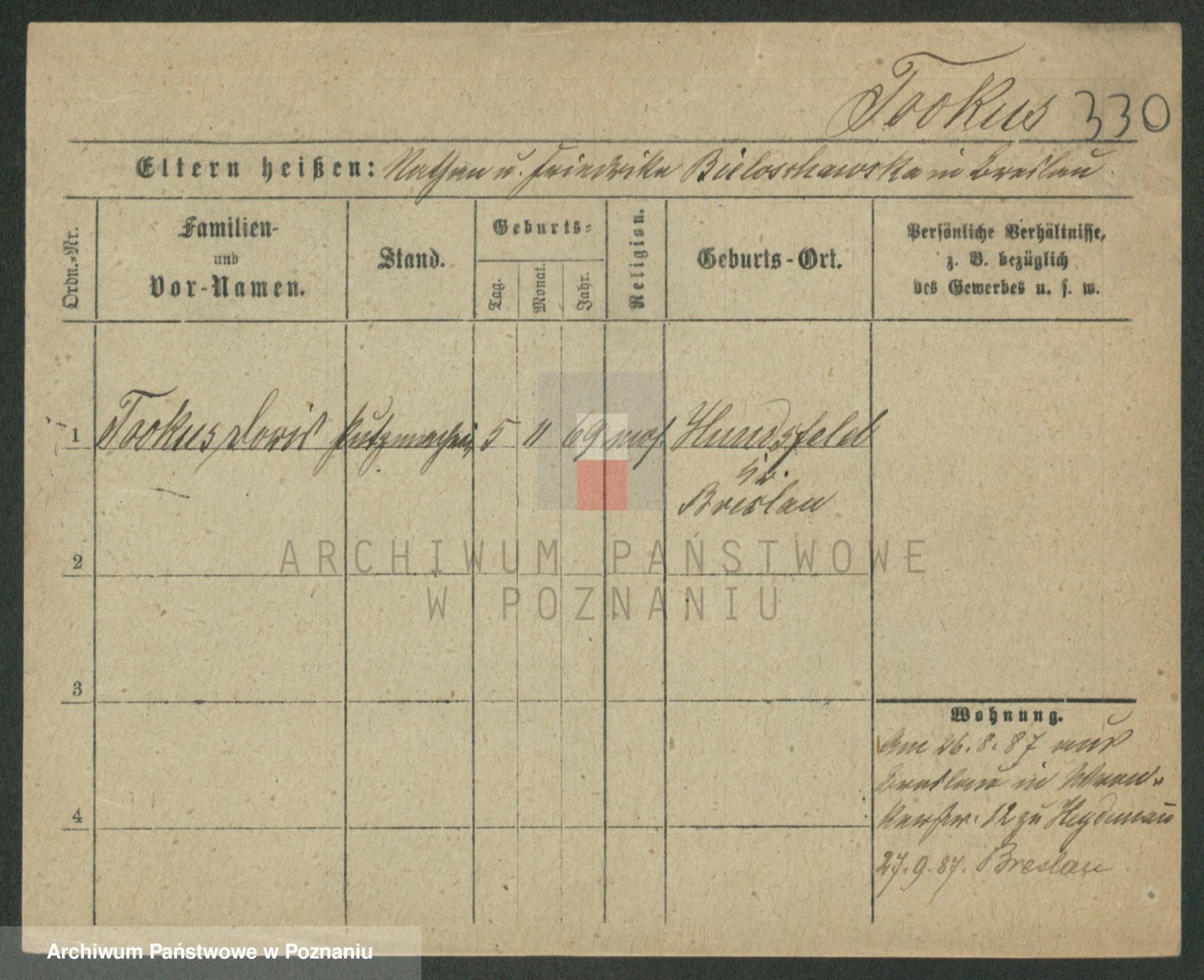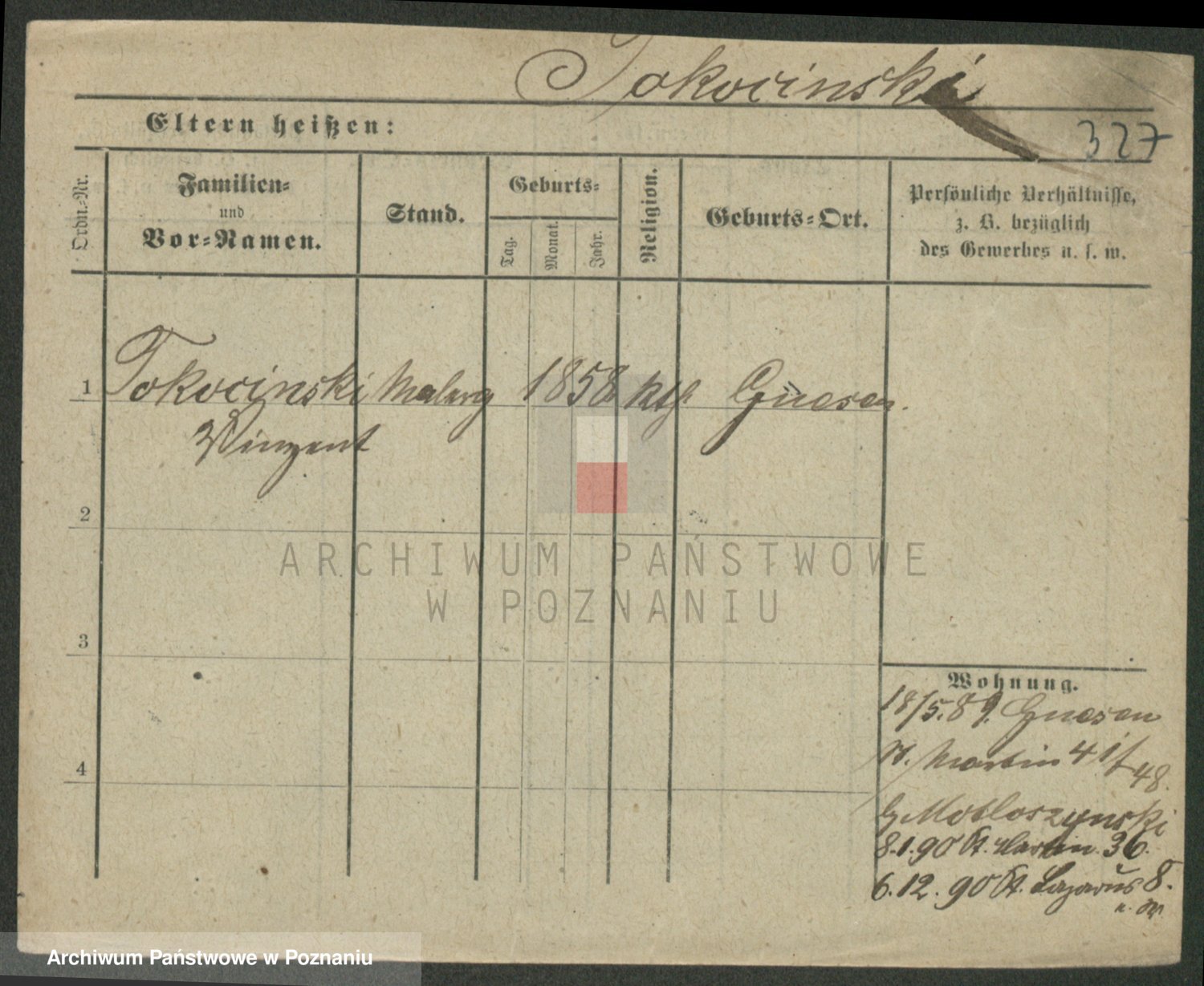 Podgląd karty osobowej dostępny jest po kliknięciu na nazwisko lub ikonkę karty. Można dokonywać powiększenia (ikony na górze) lub przechodzić między kolejnymi skanami (strzałki po bokach).